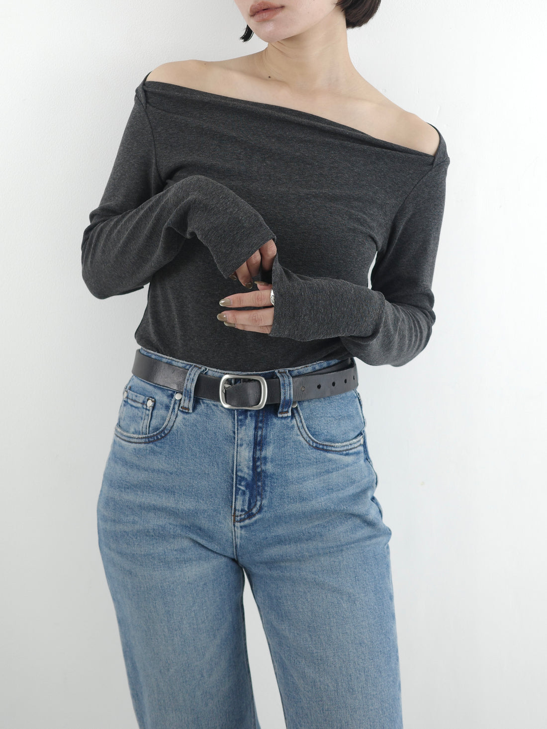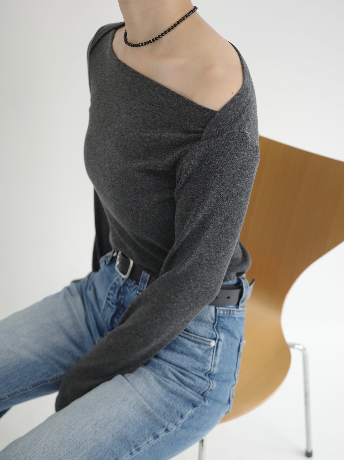 【アイテム】デコルテを美しく見せるボートネックが印象的なロングスリーブトップス。
