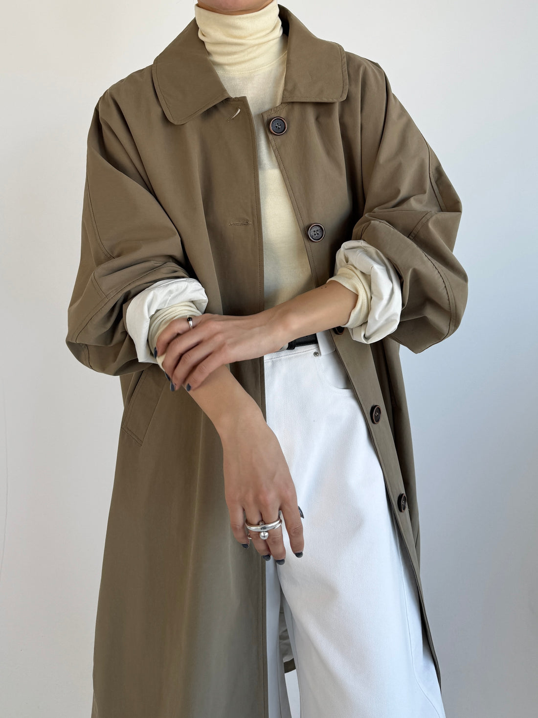 【発送予定日】 2月中旬〜2月下旬発送予定 決済完了後、発送準備が整い次第順次発送となります。複数商品をご購入の場合は、予約商品含み全ての商品のご用意が出来次第の発送となります。 【アイテム】綿と麻を使用した、軽やかな着心地の春ロングコート。 天然素材ならではのナチュラルな風合いで、季節の変わり目にも手に取りやすい一枚です。 身幅をたっぷりと取ったリラックス感のあるシルエットに加え、袖に切り替えを入れることで、自然な丸みのあるフォルムに。 腕まわりにやさしい立体感が生まれ、シンプルながらも柔らかく、女性らしい印象を与えてくれます。 ボタンを留めても開けても様になるデザインにこだわり、ロールアップしたときの袖の表情もスタイリングのさりげないアクセントに◎ 春の空気に自然と馴染み、コーディネート全体を軽やかに見せてくれる色味も魅力です。 原産国:中国 品番: 42601010001 モデルサイズ: aki...