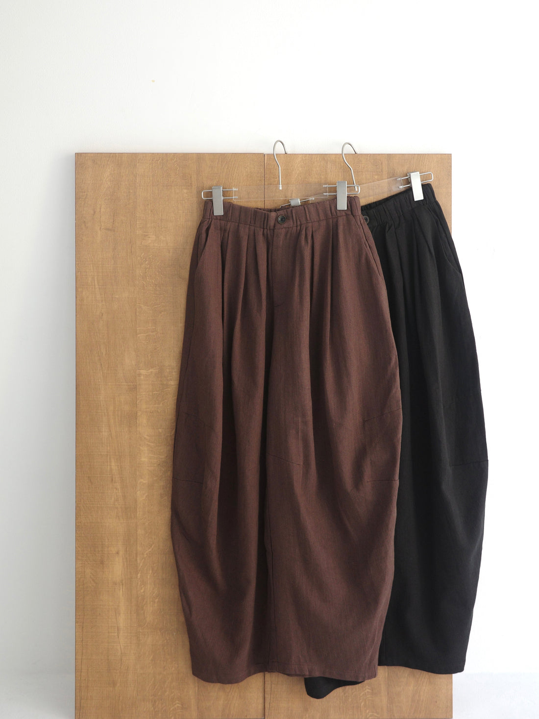 【発送予定日】4月下旬〜5月上旬発送予定 決済完了後、発送準備が整い次第順次発送となります。複数商品をご購入の場合は、予約商品含み全ての商品のご用意が出来次第の発送となります。 【アイテム】レーヨン混のナチュラルな風合いが魅力のワイドパンツ。さらりとした軽やかな素材感で、これからの季節にも快適に着られる1本です。 ウエストはゴム仕様でリラックス感のある履き心地に。 フロントにタックを施すことで立体感が生まれ、ボリュームのあるシルエットながらもすっきりとした印象に仕上げました。 サイドにはさりげない切り替えデザインを施し、丸みのあるフォルムをつくる立体的なシルエットが特徴。 ゆったりとしたワイドラインが動きのあるシルエットを生み、スタイリングに程よい存在感をプラスします。 シンプルなトップスと合わせるだけで雰囲気の出る、大人のリラックススタイルにおすすめのラフパンツです。 原産国:中国 品番:42601010405 モデルサイズ: aki 166cm /...