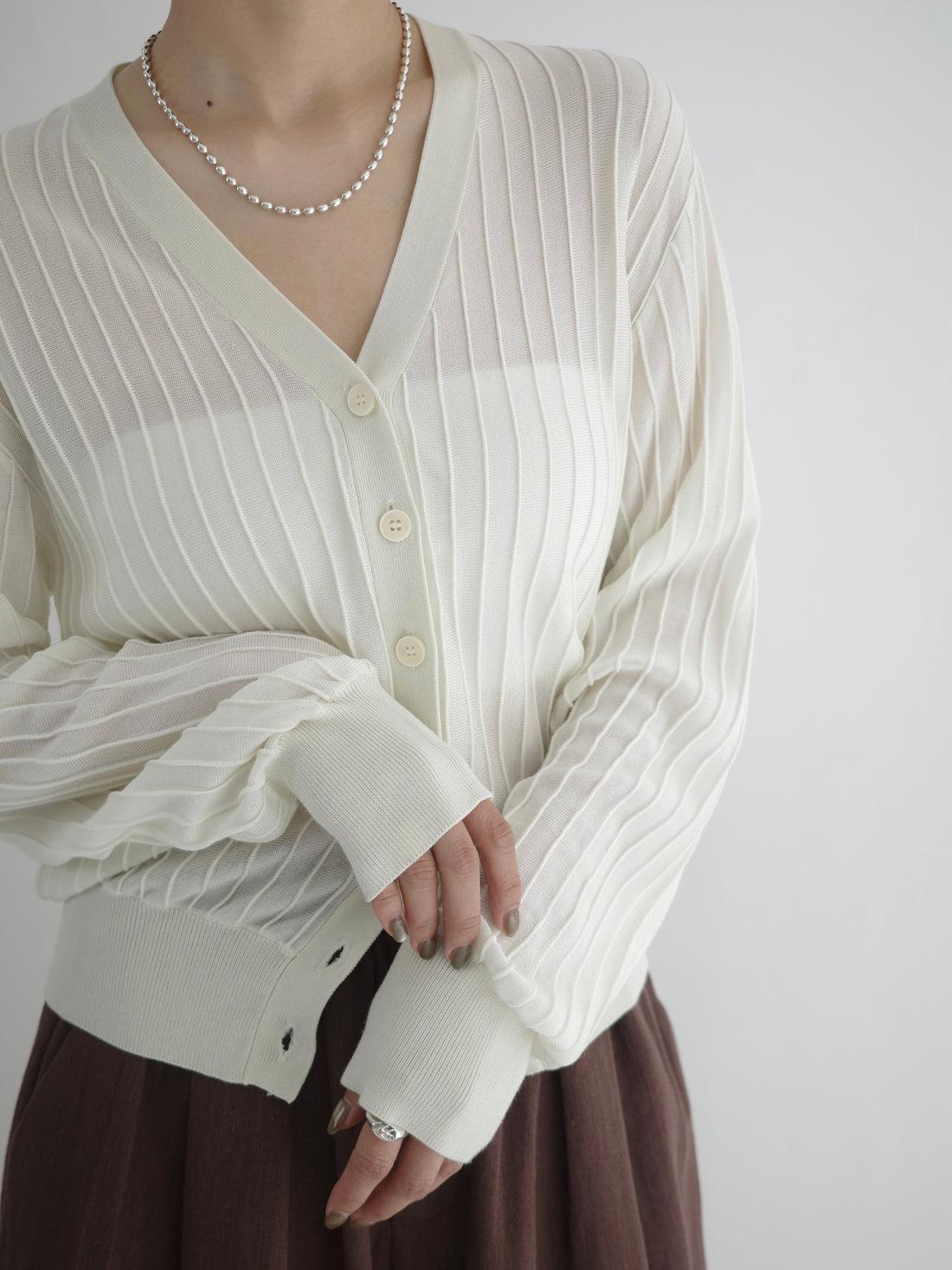 【PRE ORDER】Sheer Rib V Neck Cardi(5月上旬〜5月中旬発送予定)