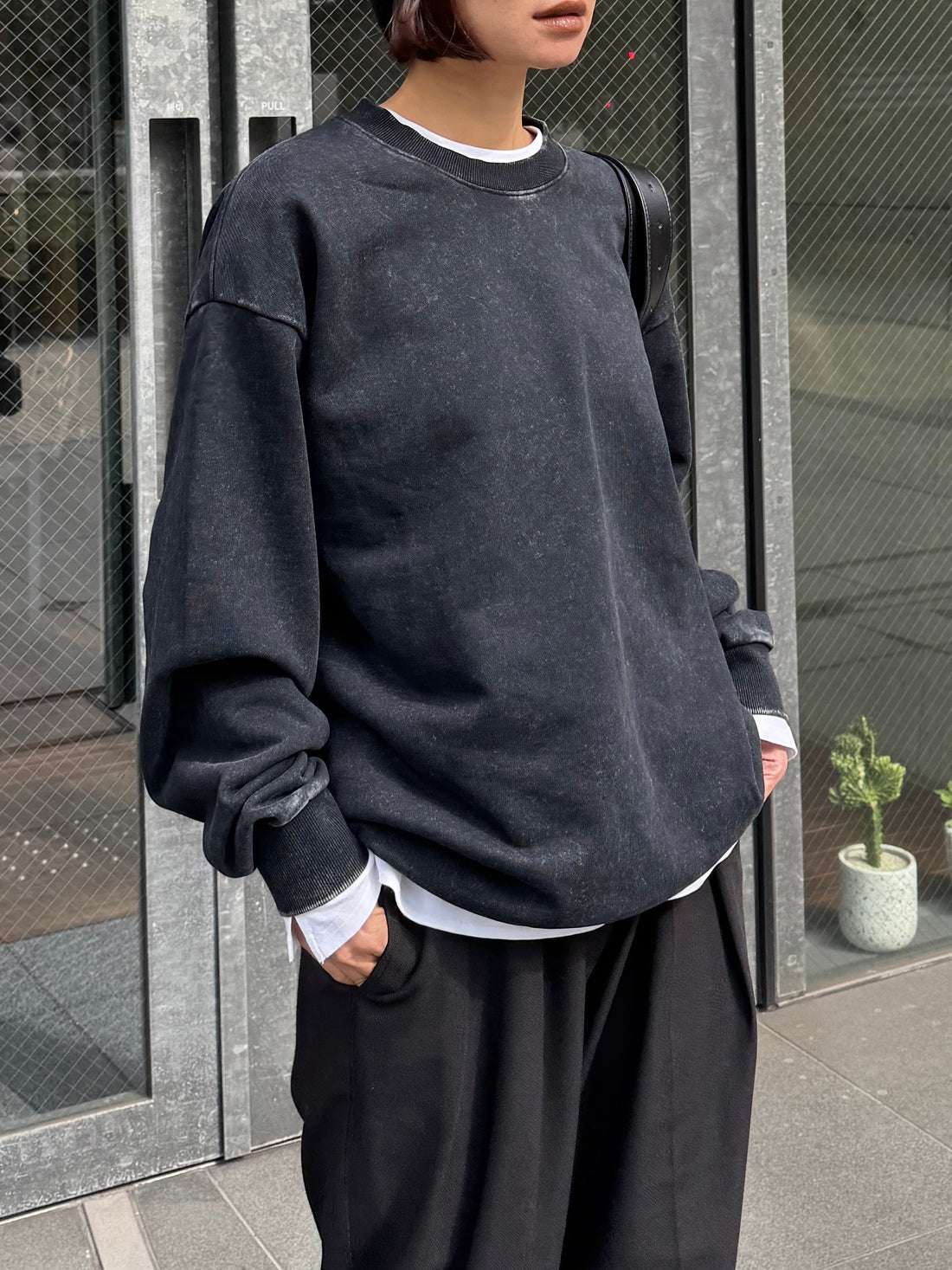 【アイテム】ヴィンテージライクな風合いが魅力の、ピグメントダイスウェットプルオーバー。 淡くムラ感のあるトーンとゆるやかなシルエットで、シンプルながら雰囲気が出る大人のリラックススタイルにぴったりの1枚。 見た目以上の柔らかさと肌あたり良い生地感でシーズンを通して快適にご着用いただけます。 ドロップショルダーのゆったりとしたシルエットに、女性らしさを演出するやや長めの袖丈が今らしいバランス。 後ろ裾にはブランドロゴを刻印したレザーパッチを配置。 さりげないディテールが、大人のカジュアルに上品なアクセントを添えてくれるアイテム。
