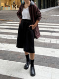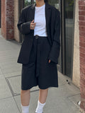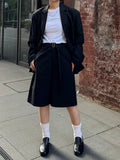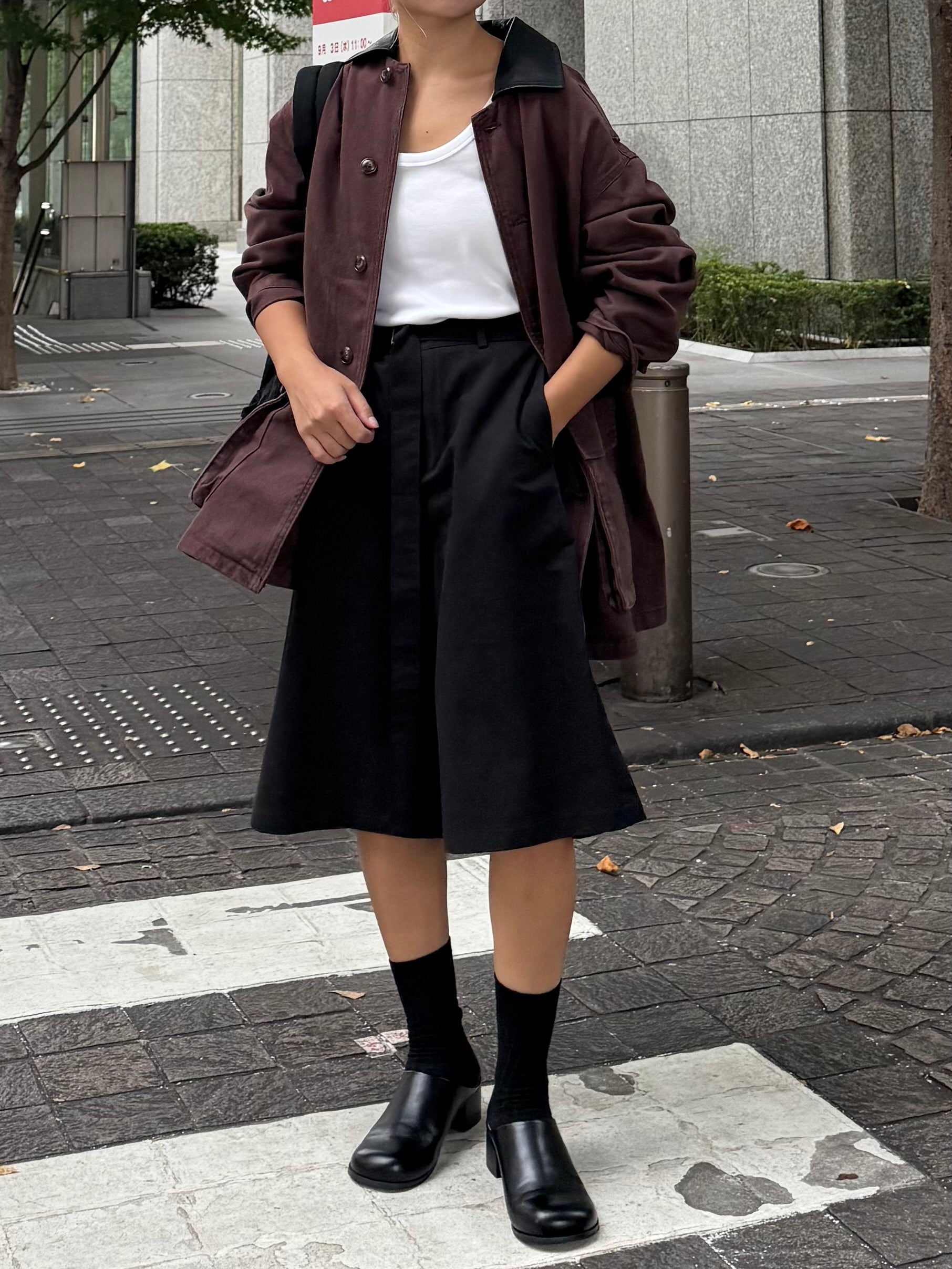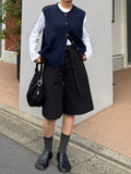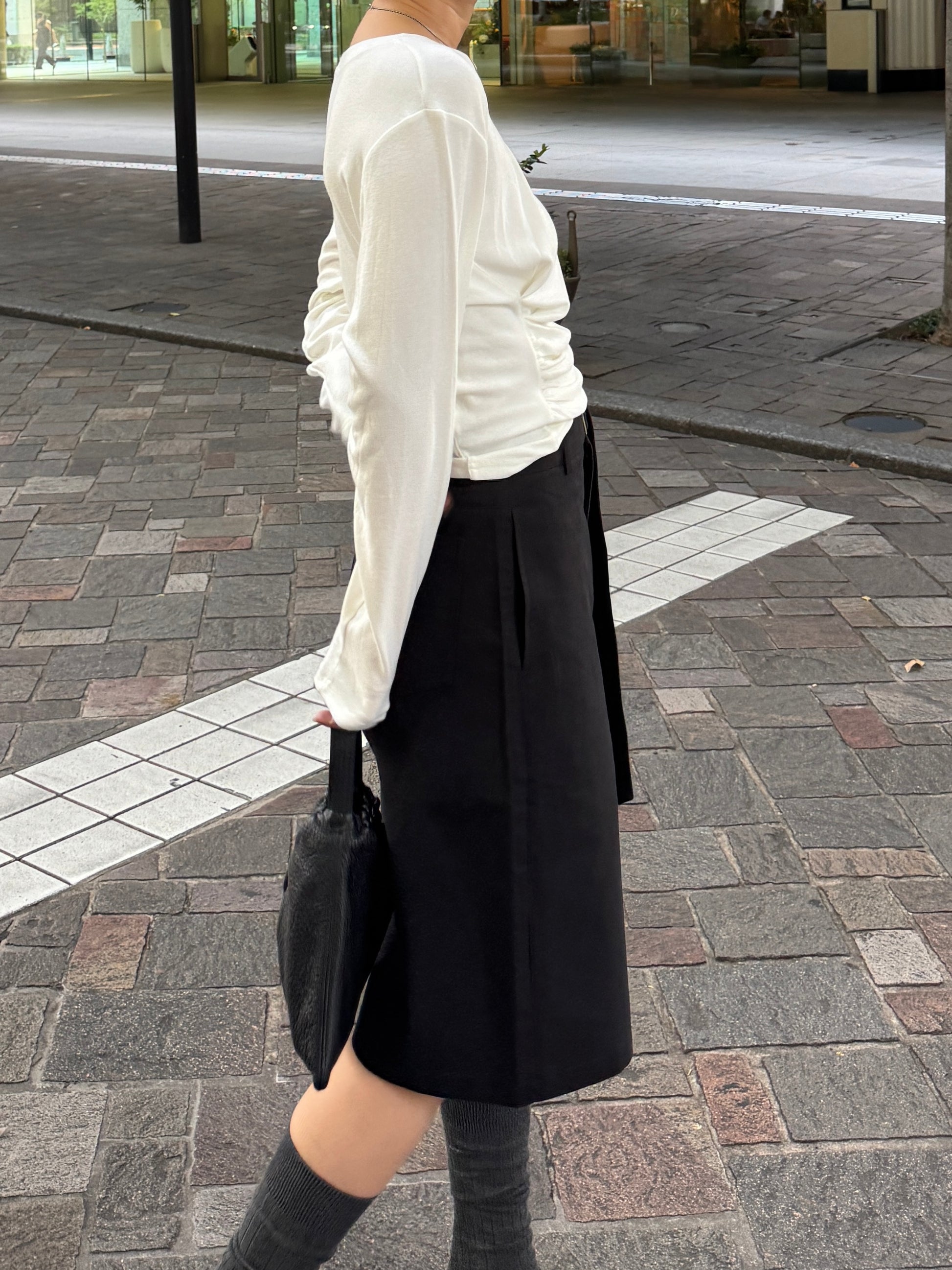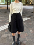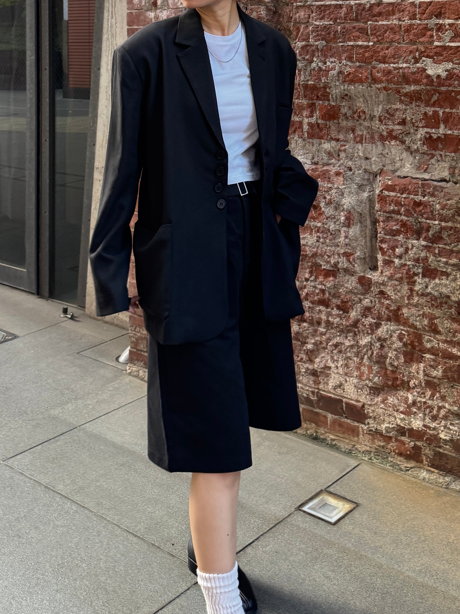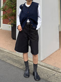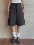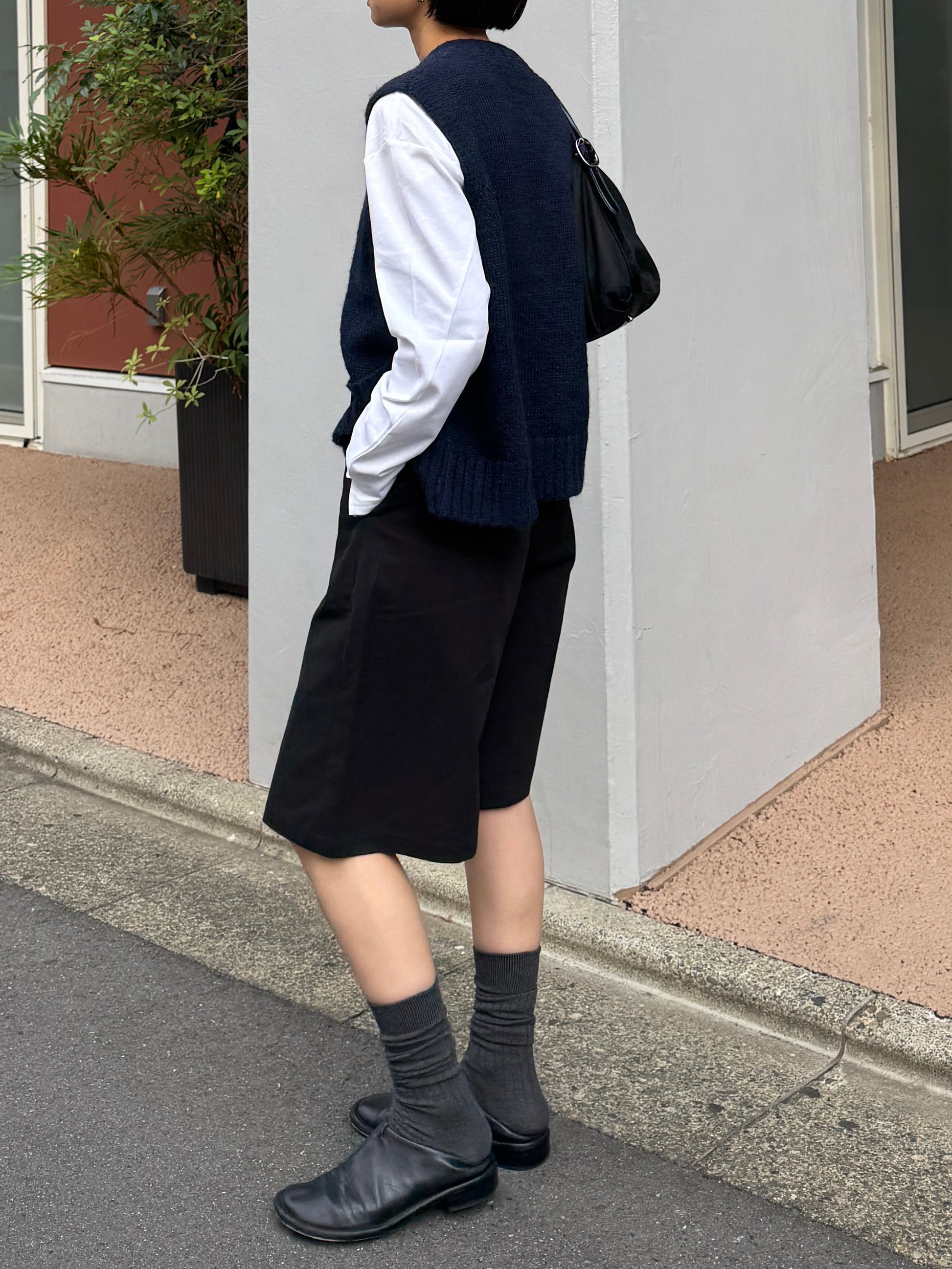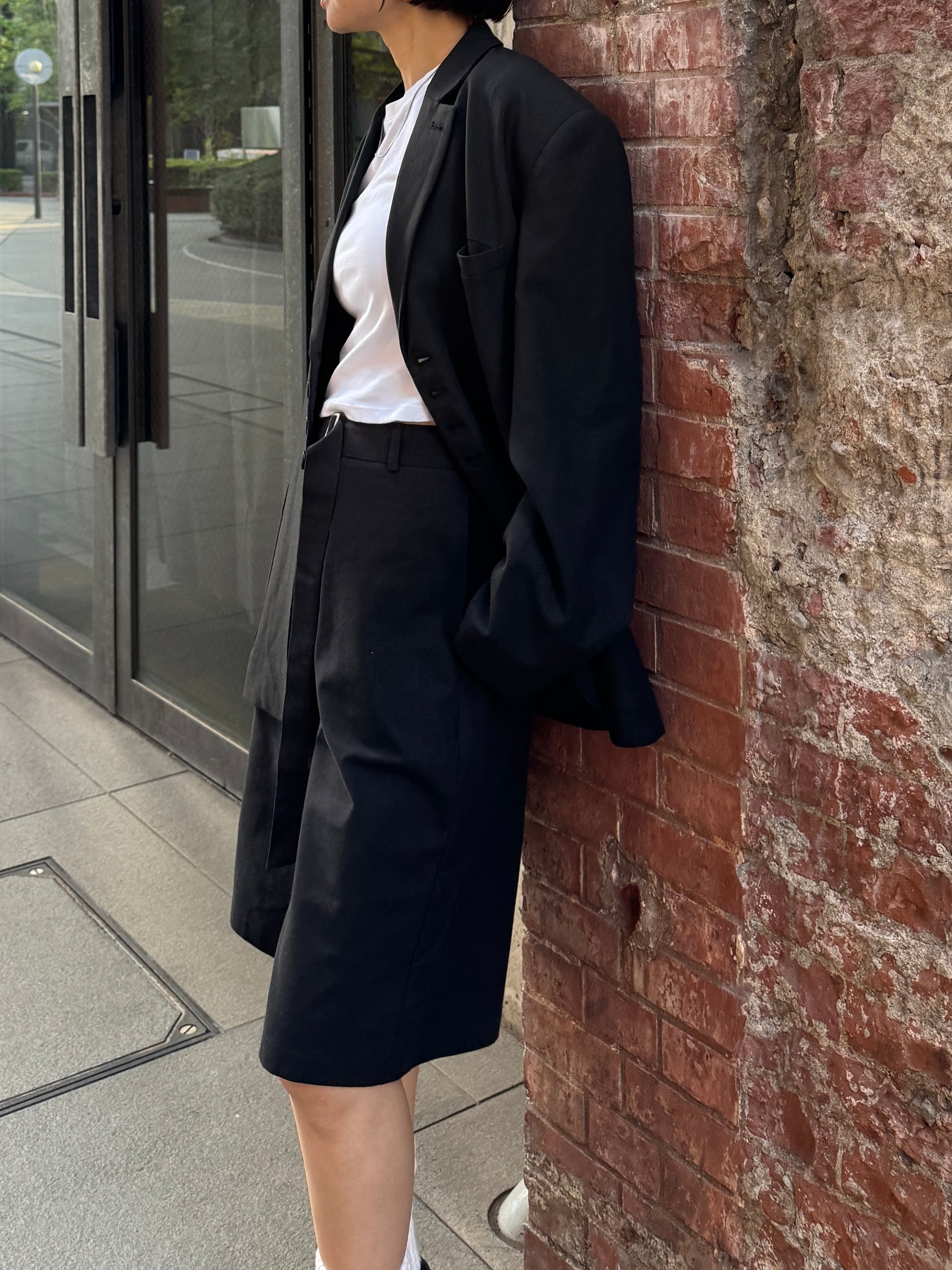 旬のシルエットを上品さとカジュアルどちらも落とし込み仕上げたワイドバミューダパンツ。 ウエストは共布ベルト付きでブラウジングするとメリハリのある印象に。 膝が隠れるくらいのミディ丈で体型カバー効果が高く、日常に取り入れやすいシンプルさとデザイン性を兼ね揃えた1本。 素材は程よいハリのある生地で、広がりすぎず洗練されたAラインシルエットにこだわりました。 カジュアルスタイルはもちろん、合わせるトップスやシューズで綺麗めな雰囲気まで幅広く楽しめるアイテム。