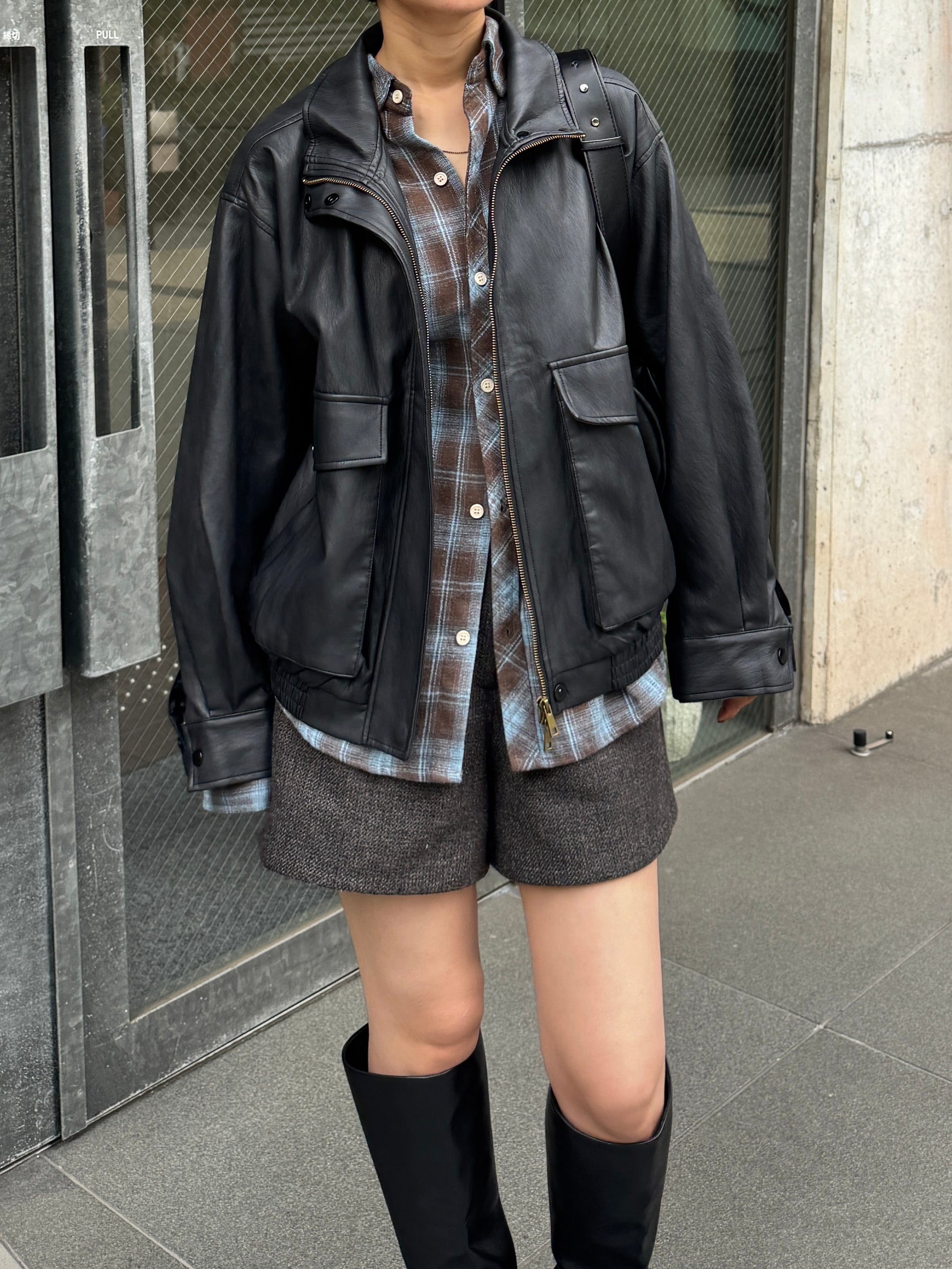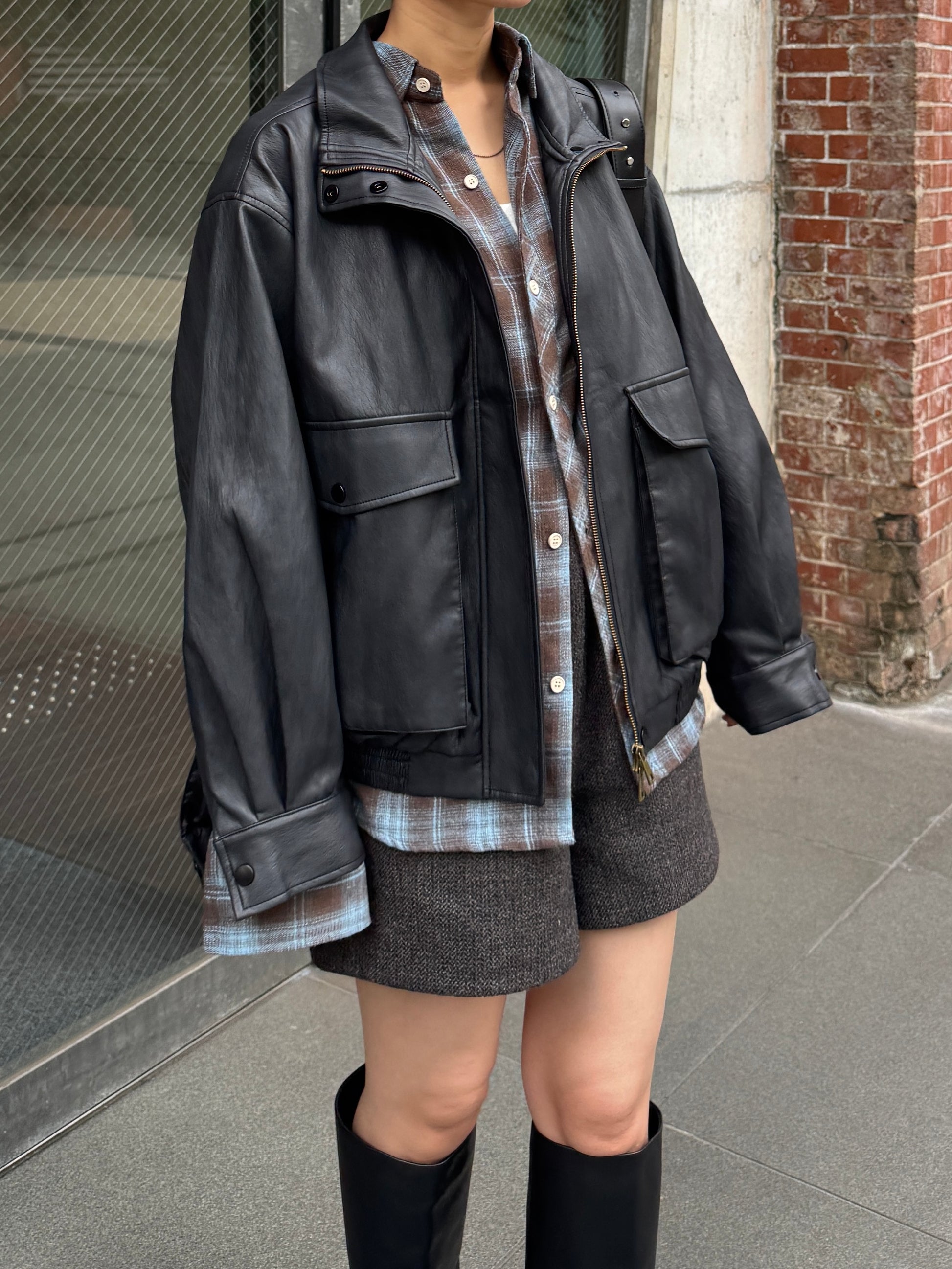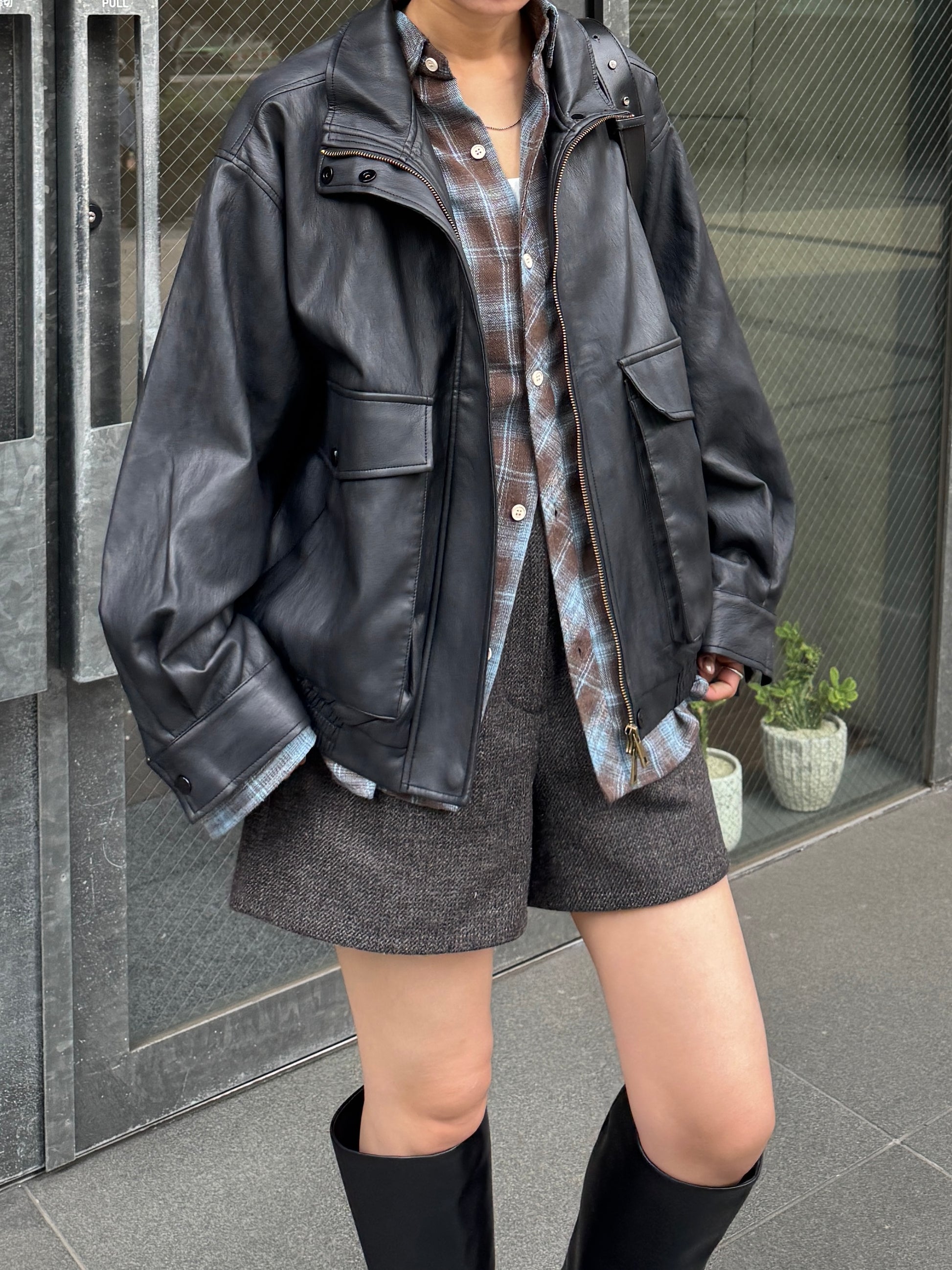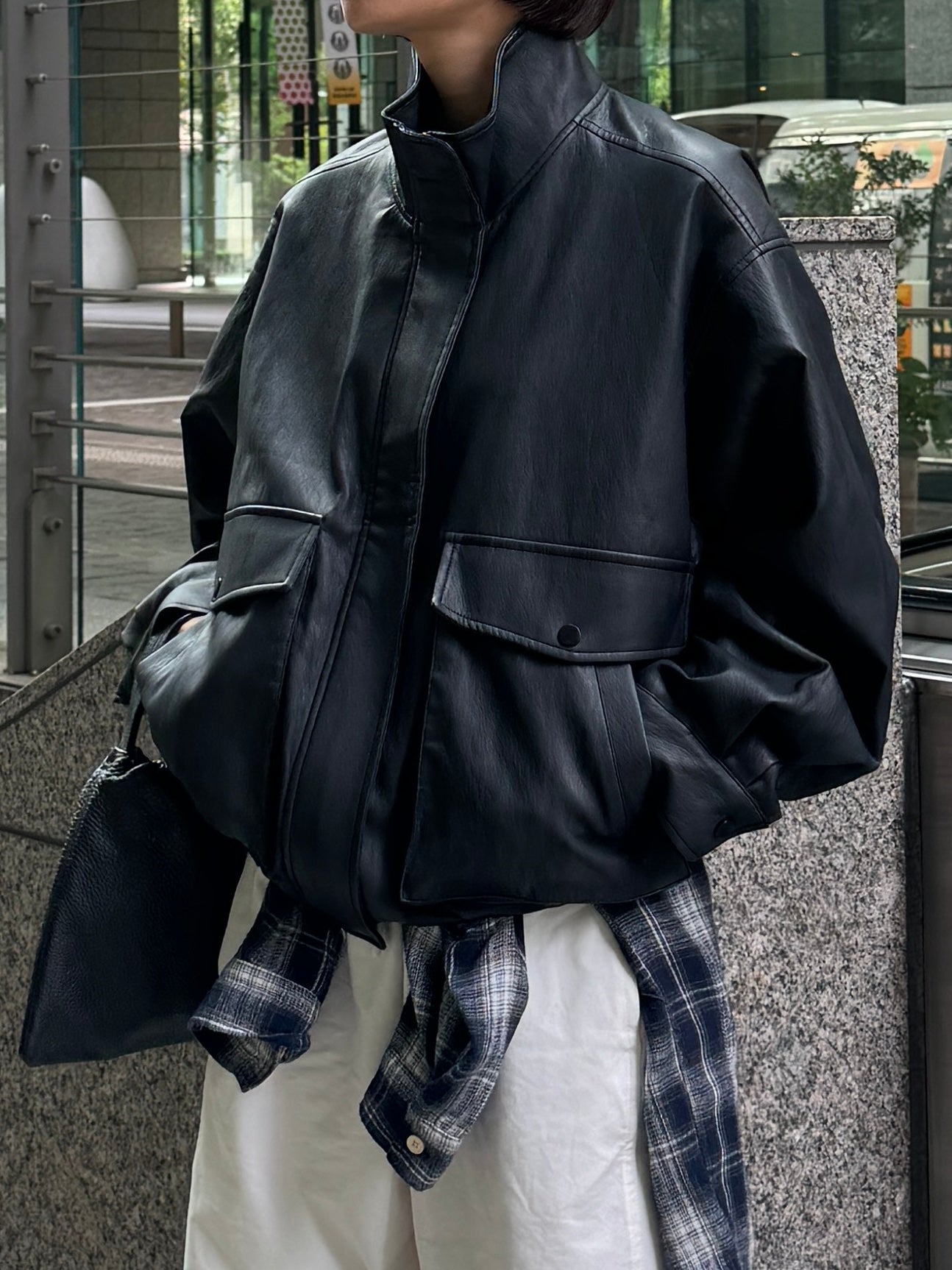 Big Pocket faux Leather Blouson(11月中旬〜11月下旬発送予定)