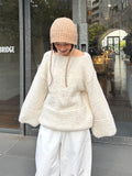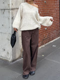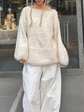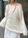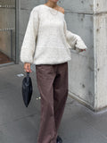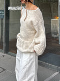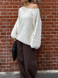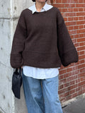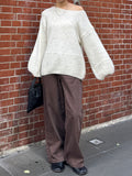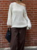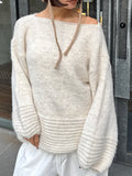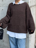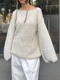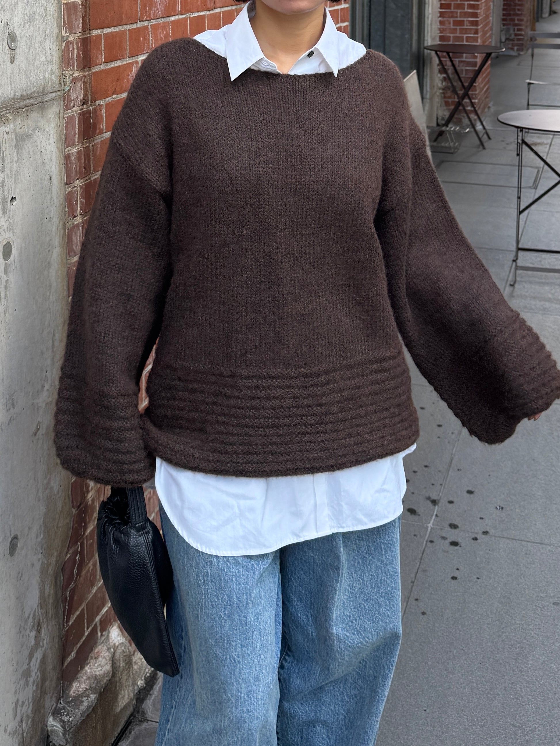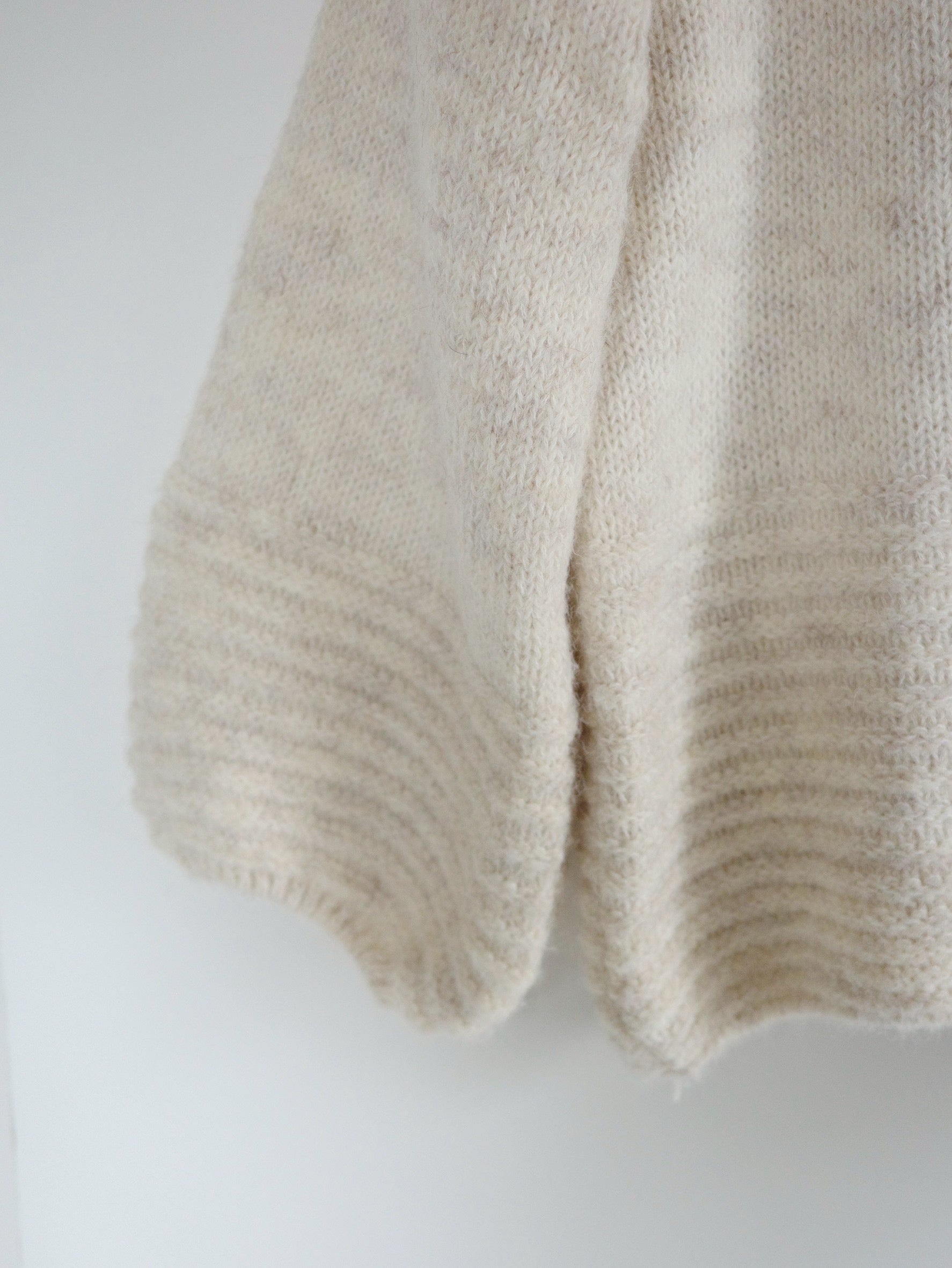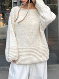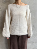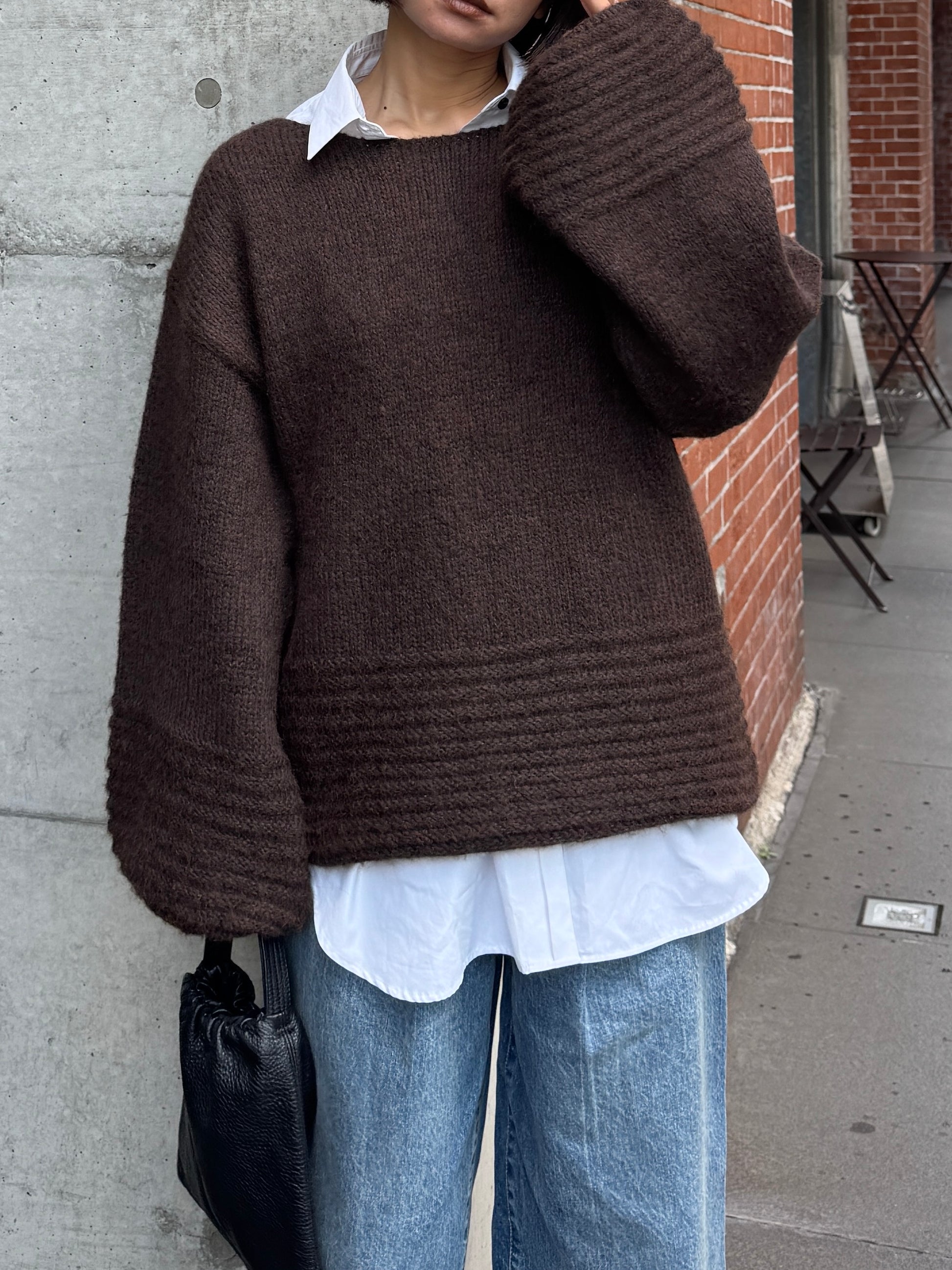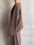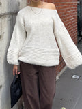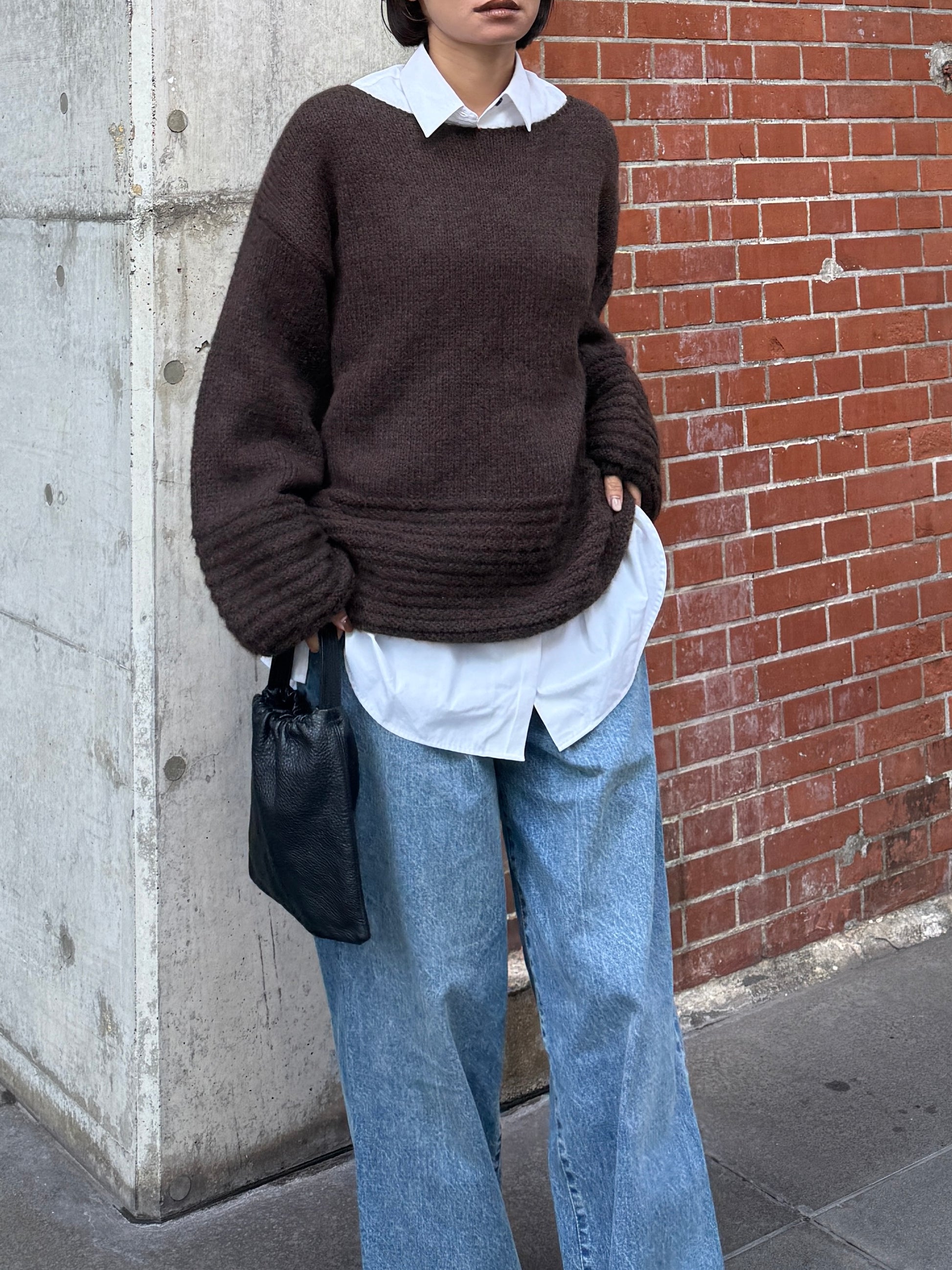 程よいボリューム感と柔らかな風合いが魅力のニットプルオーバー。 やわらかく包み込むような着心地で、カジュアルの中にも上品さを感じさせてくれます。 袖口と裾に施された太めのリブ編みがデザインのアクセントになり、立体的な表情を出してくれる1着。 首元はやや広めのボートネックにすることで、カットソーやシャツをレイヤードして襟をのぞかせたり、 ワンショルダー風の着こなしで女性らしい抜け感を演出したりと、 1枚でもレイヤードでもシンプルながらスタイリングの幅を広げてくれるアイテムです。
