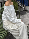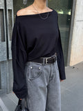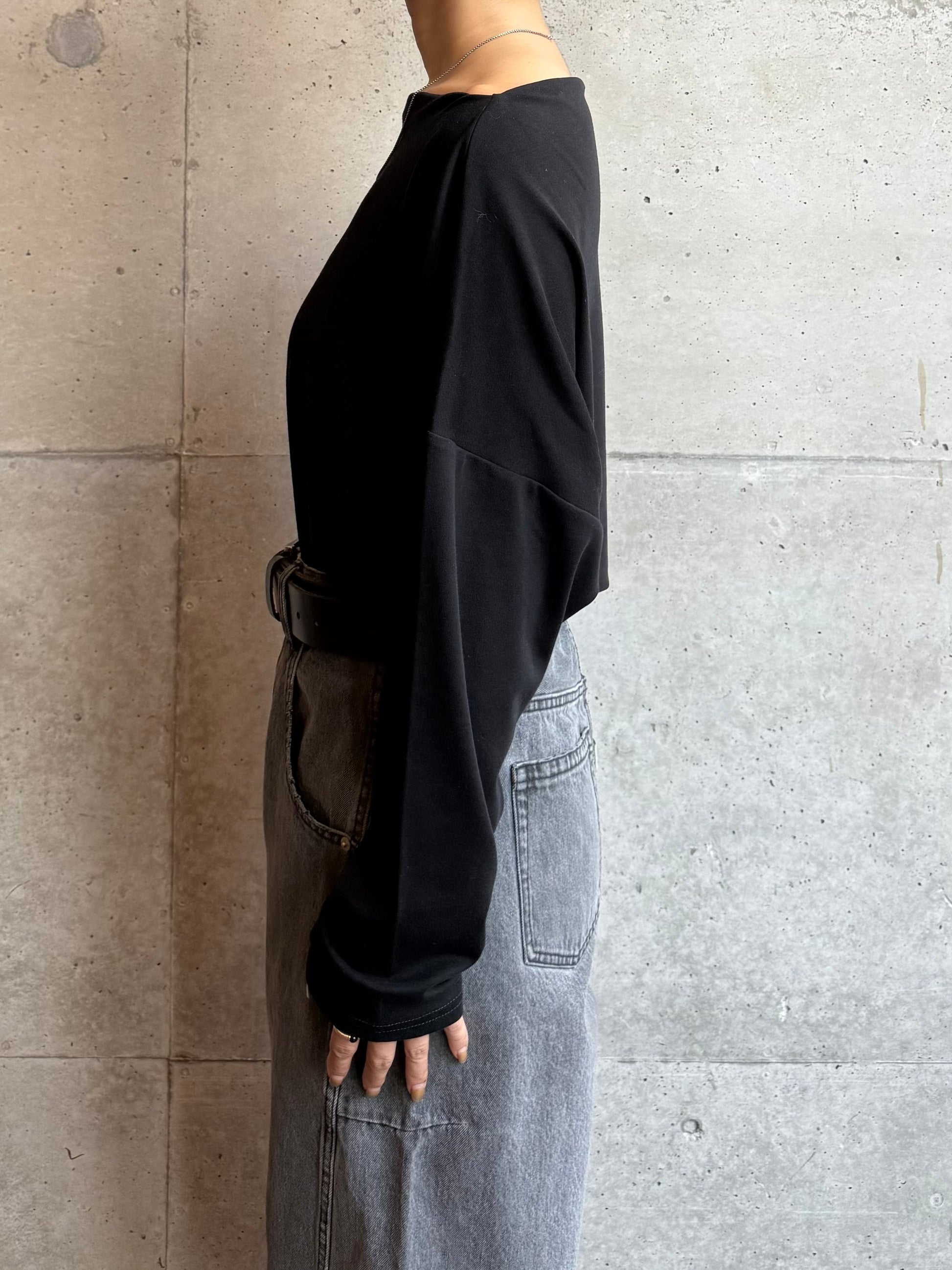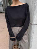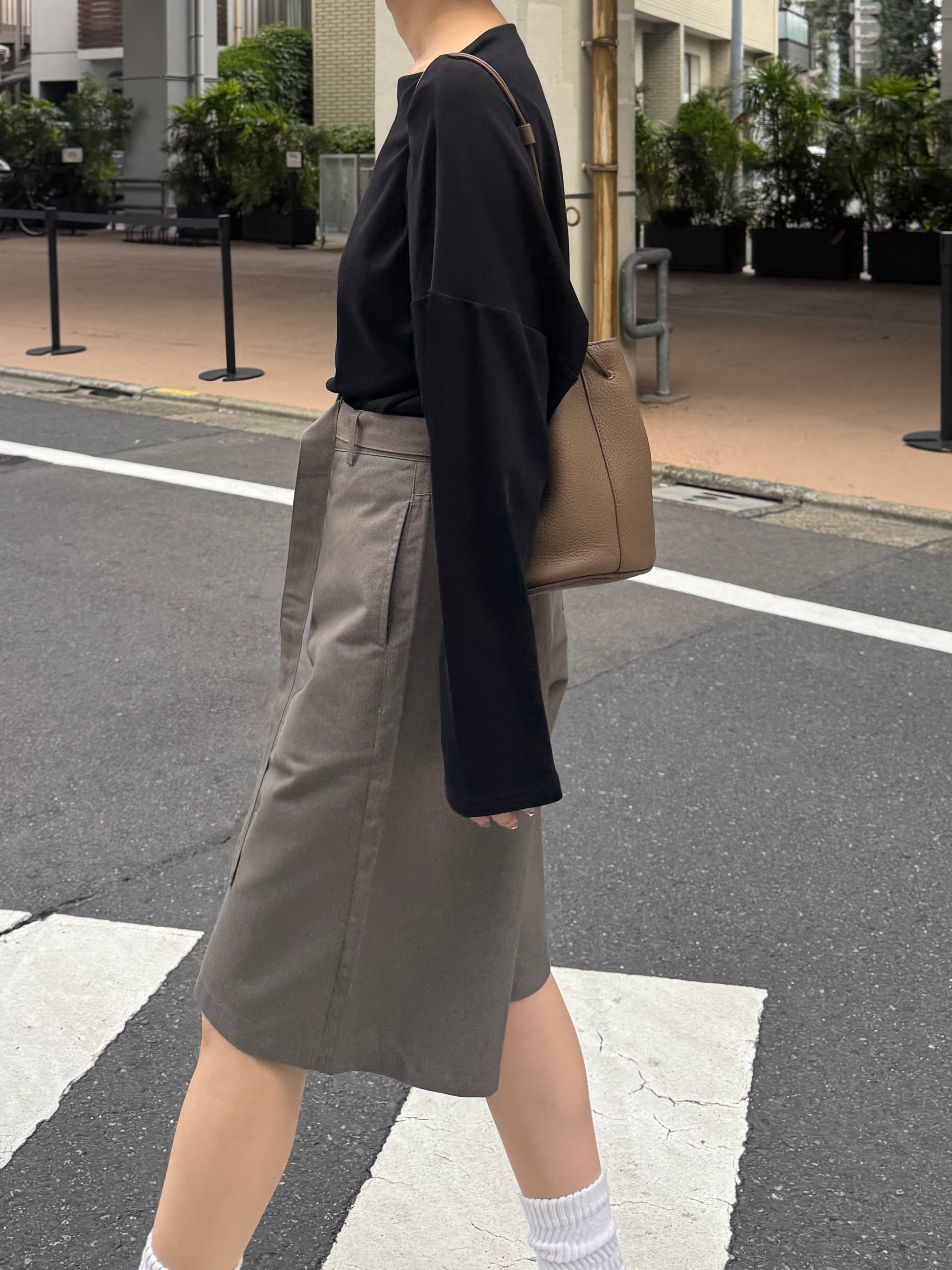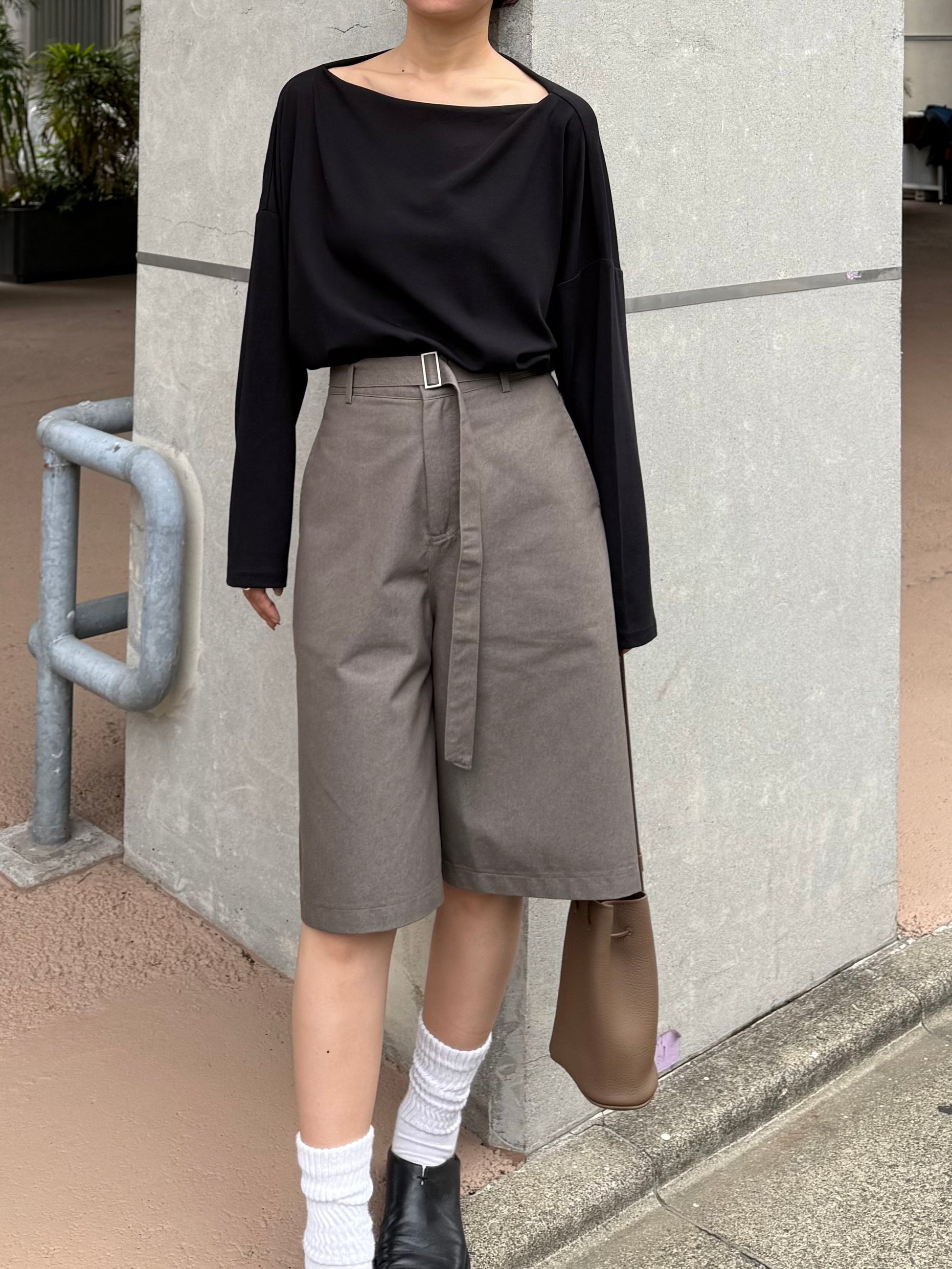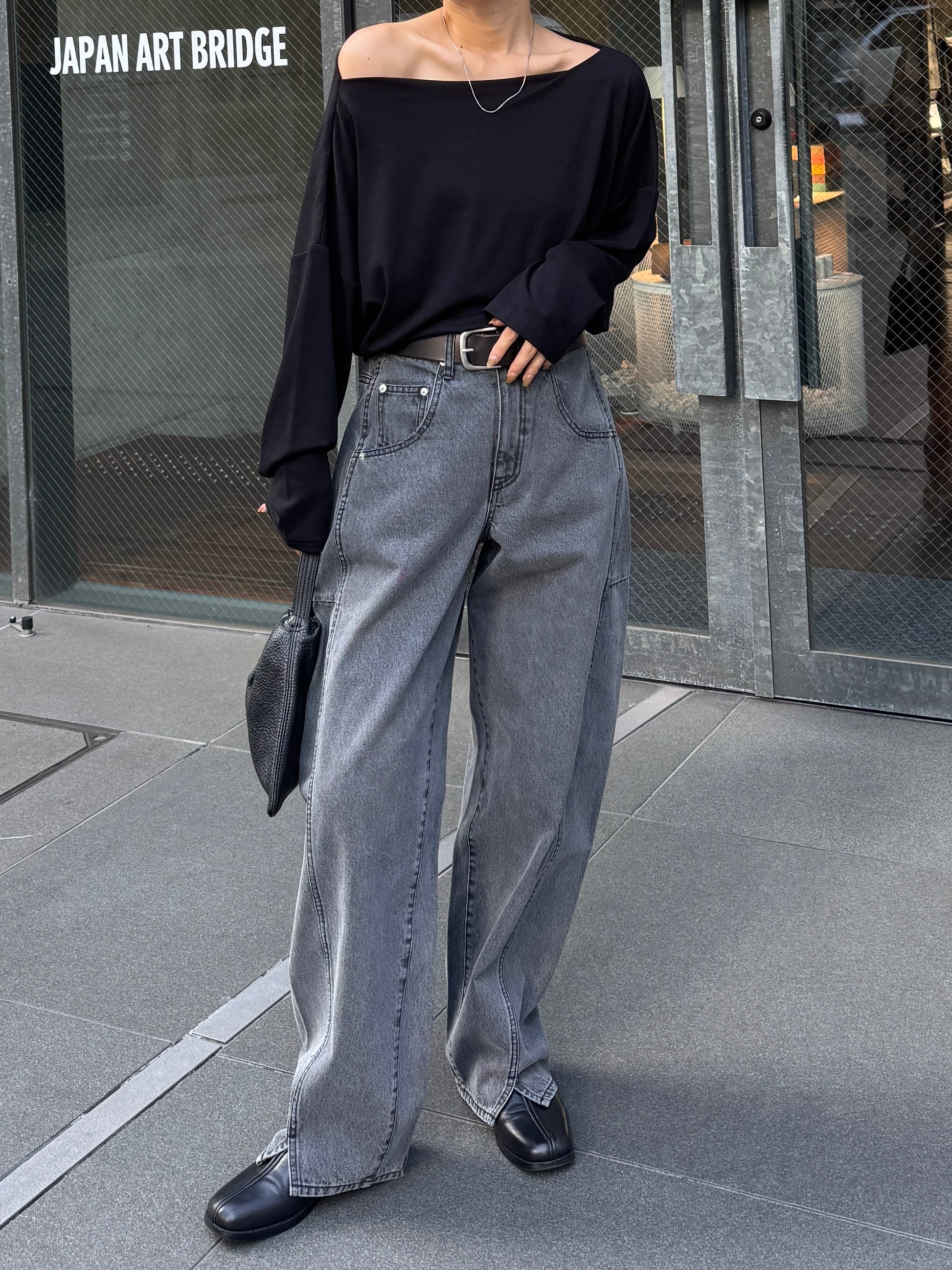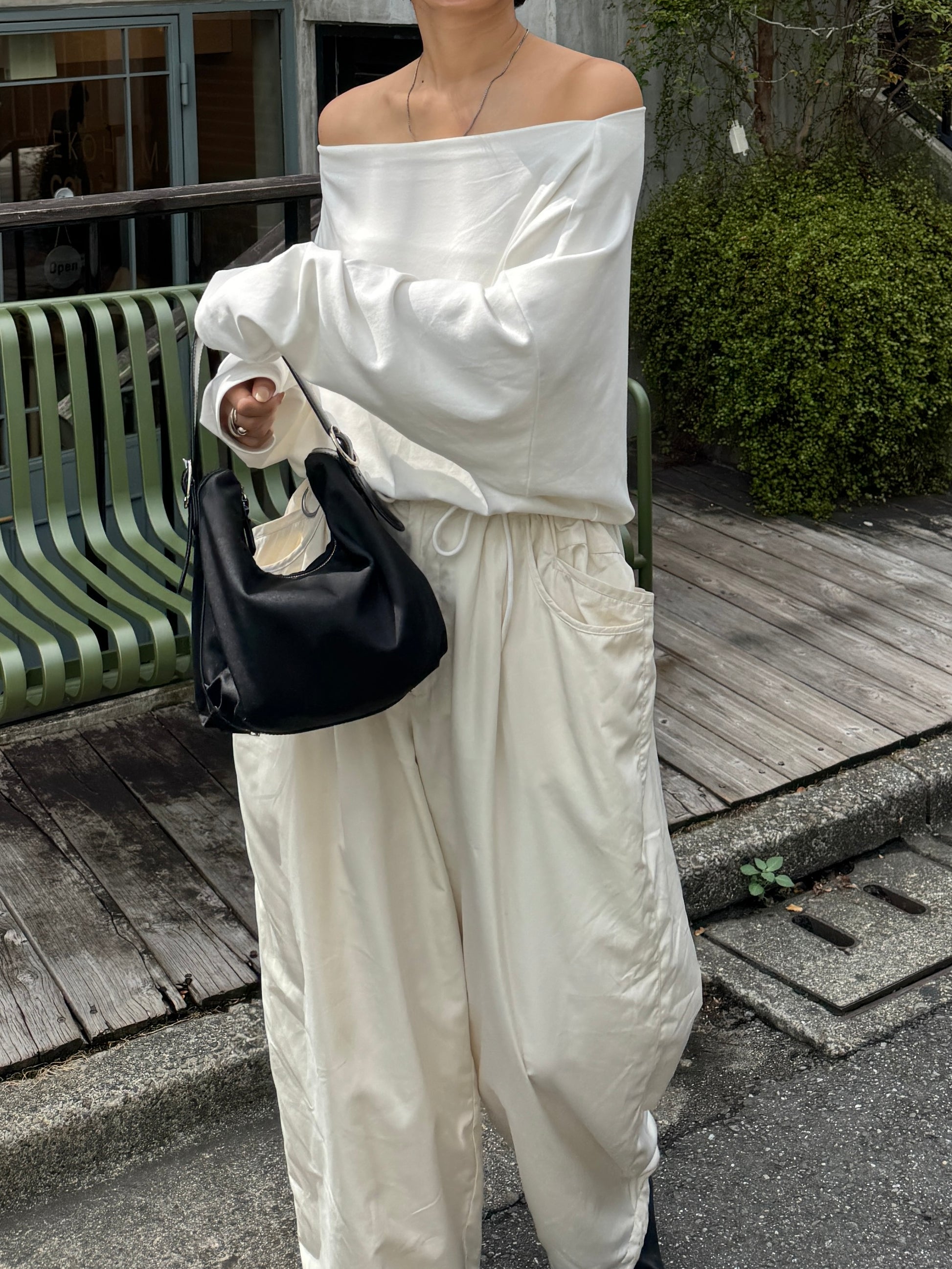 こだわりのシルエットが演出する上品な抜け感が魅力のロングスリーブトップス。 ゆったりとしたボートネックラインで、お好みでオフショルダー風の着こなしもおすすめ。 袖は長めのリラックススリーブで動きに合わせて自然にたまるドレープが生まれ、 体のラインを拾いすぎず大人らしい落ち着いた雰囲気に。 シンプルながらも顔まわりの見え方にこだわったデザインで、 デイリーからラフに着こなし感を出したい日にも幅広く使える1枚です。