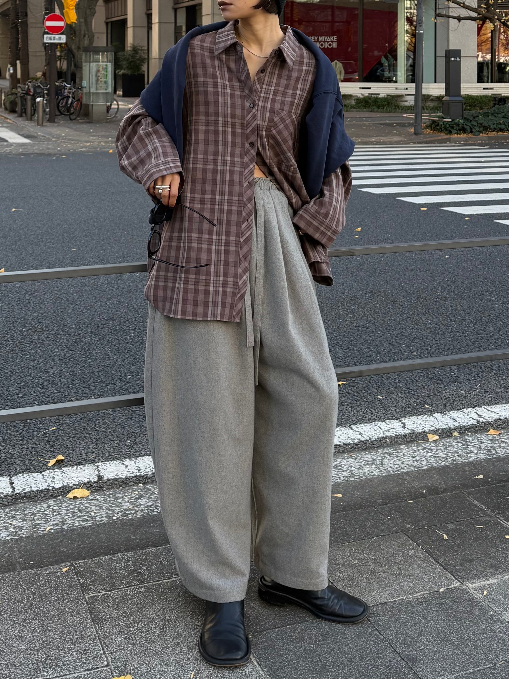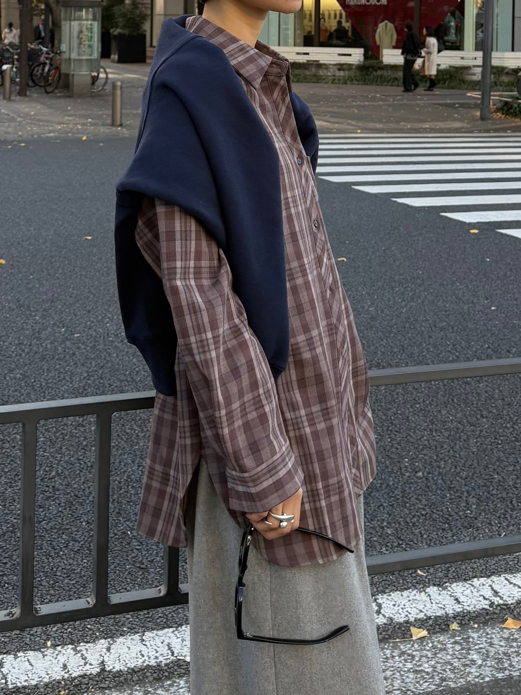 主張しすぎないニュアンスカラーと、ふわりと落ちるシルエットが大人のカジュアルスタイルに自然と馴染むルーズシャツ。 肩の力を抜いたたっぷりの身幅と、ヒップまで覆うリラックス感ある着丈設定で 1枚ではもちろんタンクトップやカットソーにさっと羽織るだけで、こなれた春のレイヤードが完成します。 フロントやカフス、ポケット部分にはさりげなく柄の向きを変えたディティールをプラス。 細部までこだわった仕上がりが、シンプルながら奥行きのある表情を演出してくれます。 素材はポリエステルをベースに、レーヨンとポリウレタンをブレンド。 しなやかな落ち感と軽やかな着心地で、冬の終わりから春本番まで心地よく着られる1枚です。