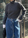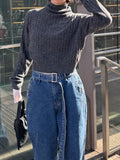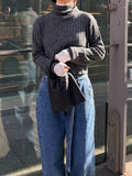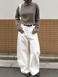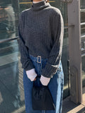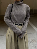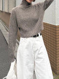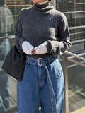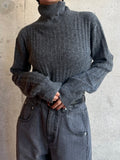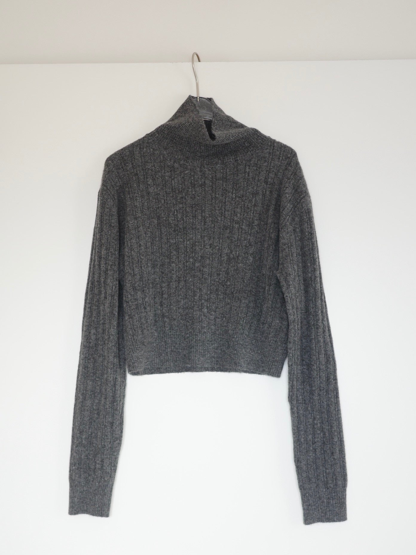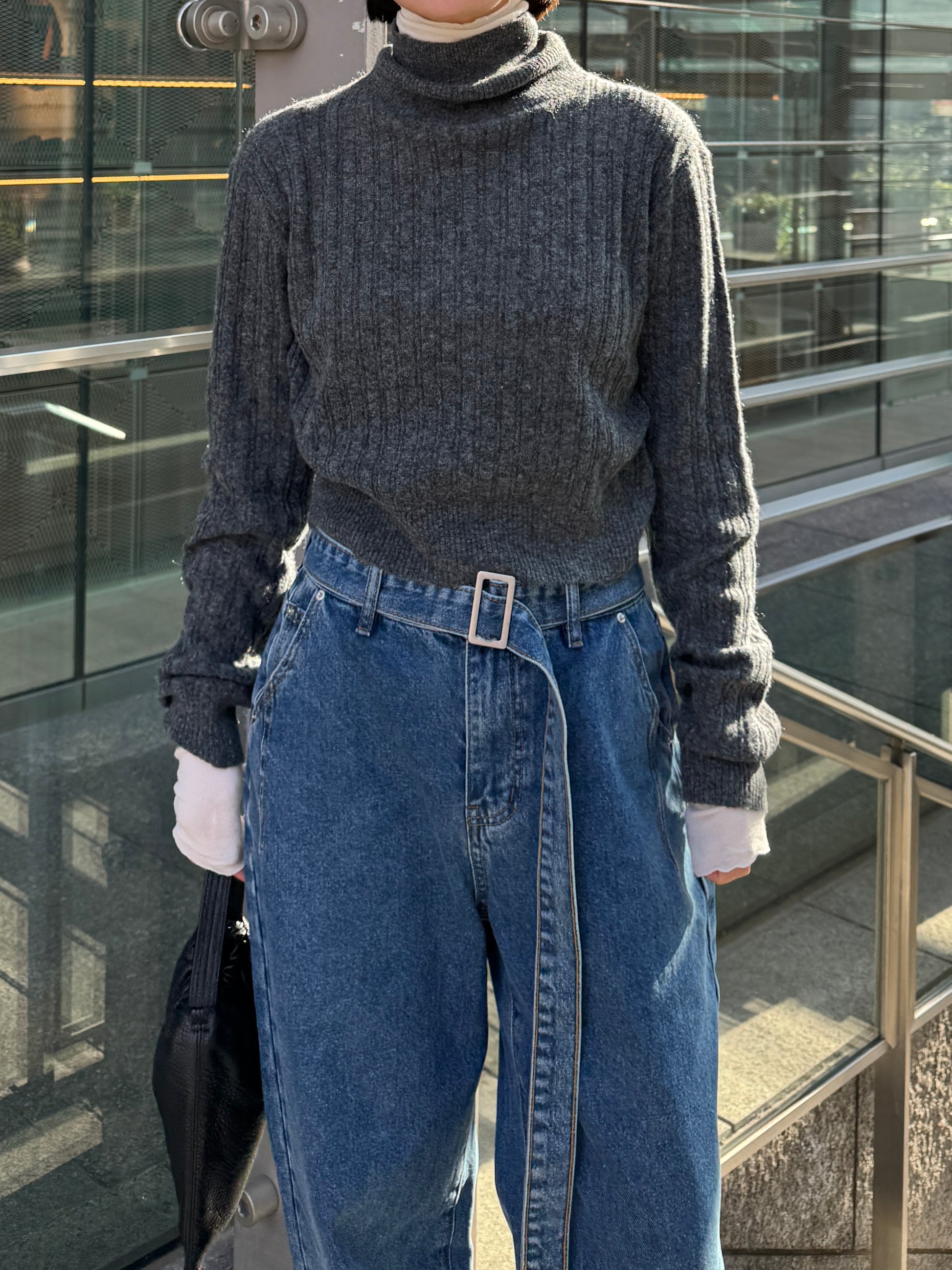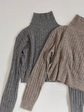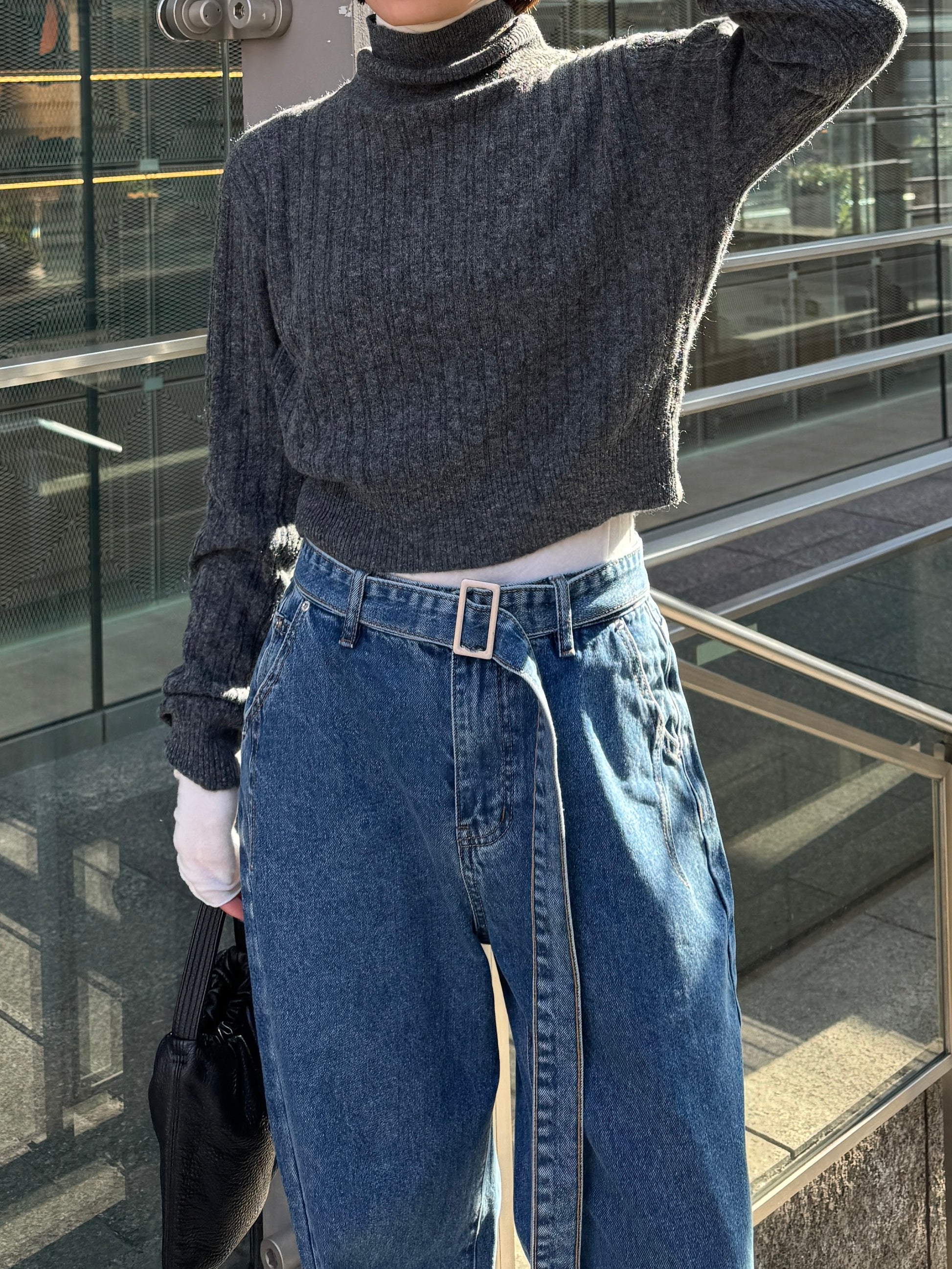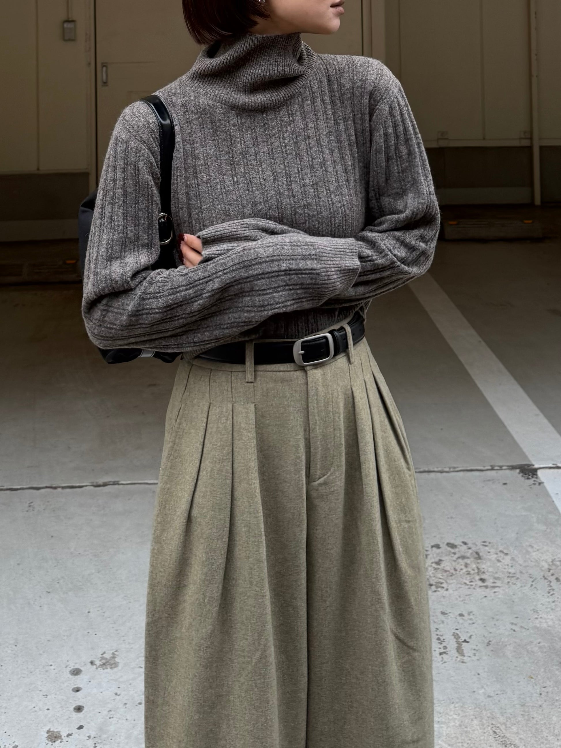 やわらかく、肌あたりの良い素材を使用したショート丈のタートルニット。
