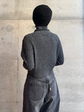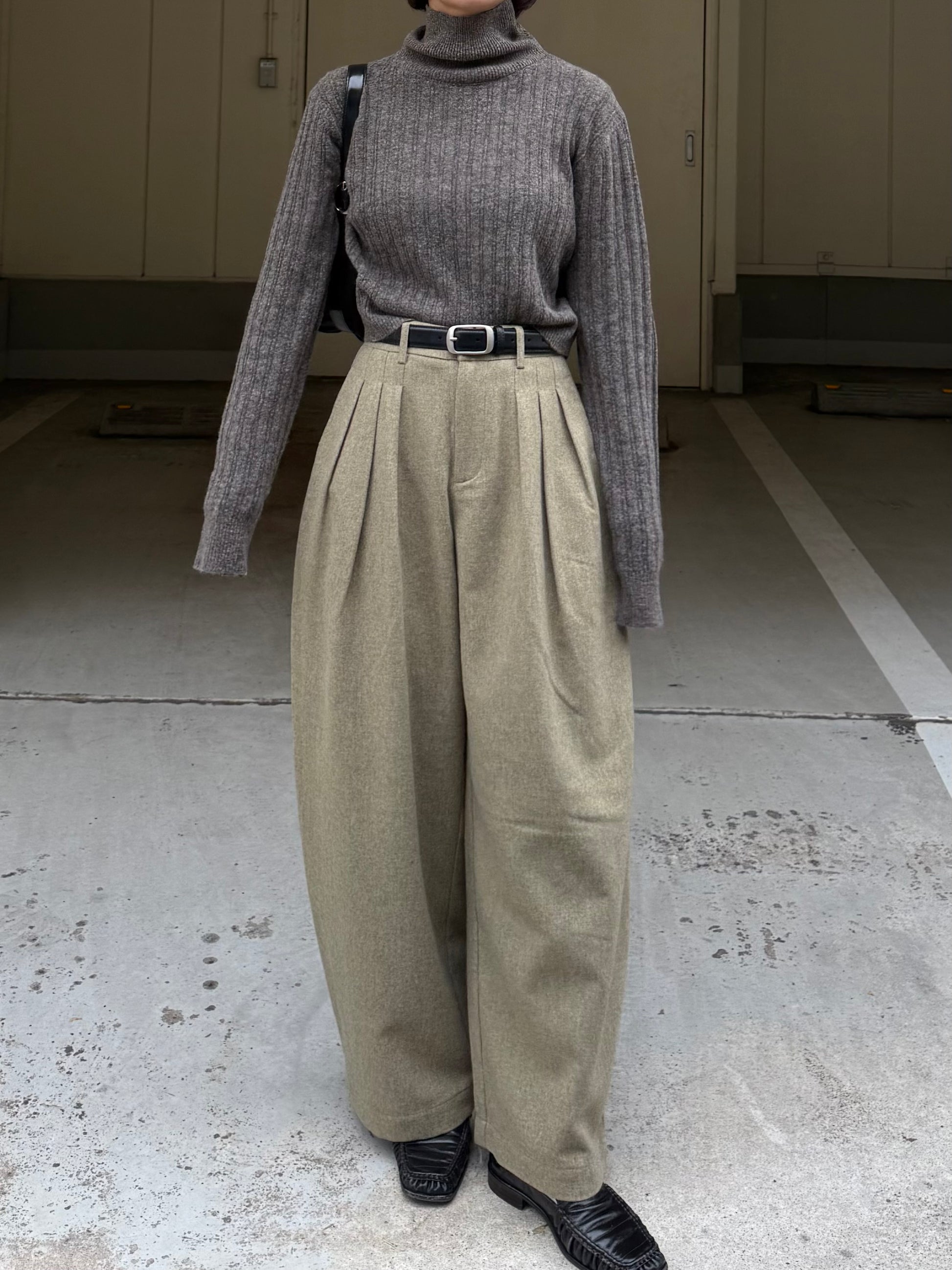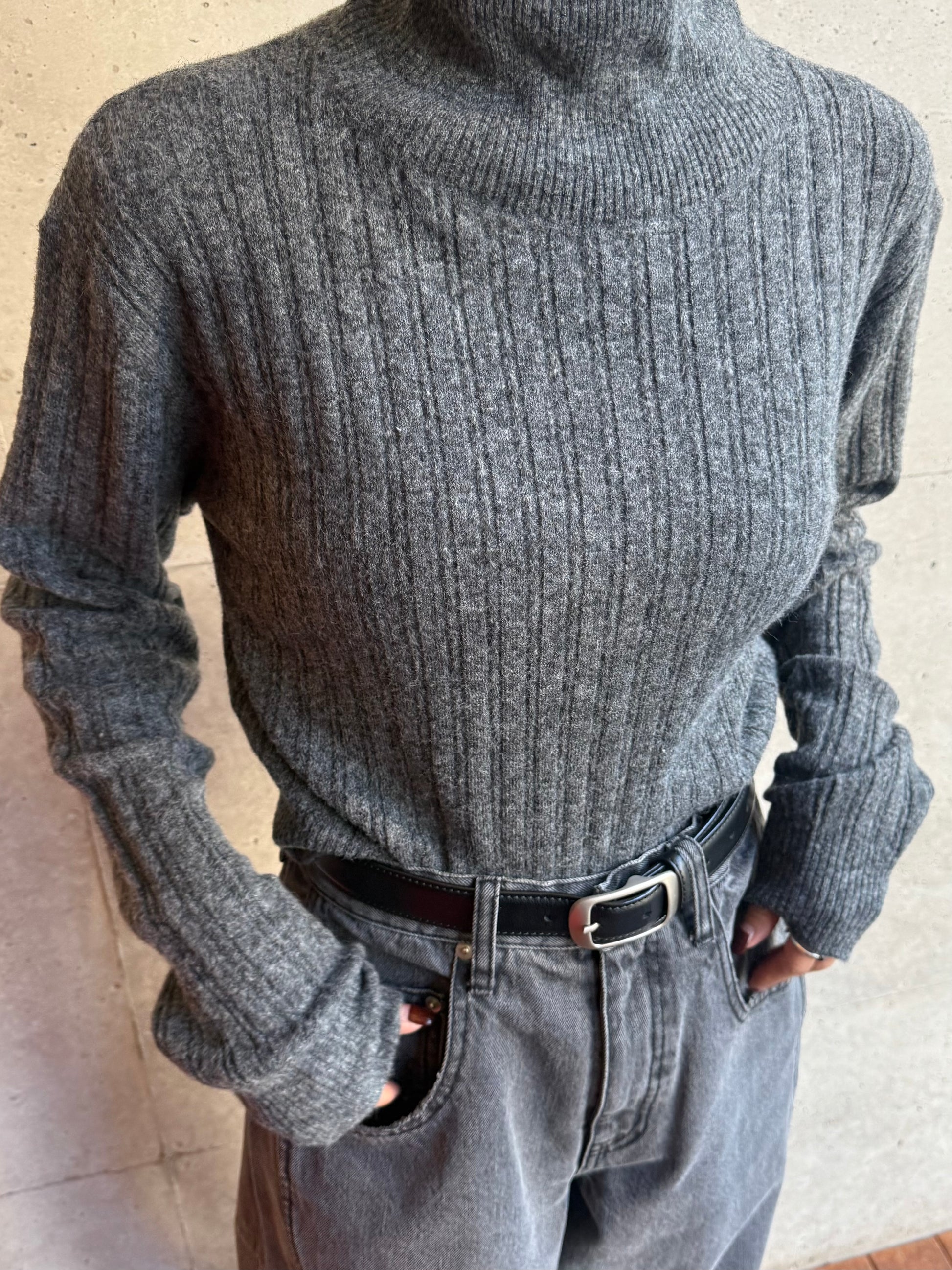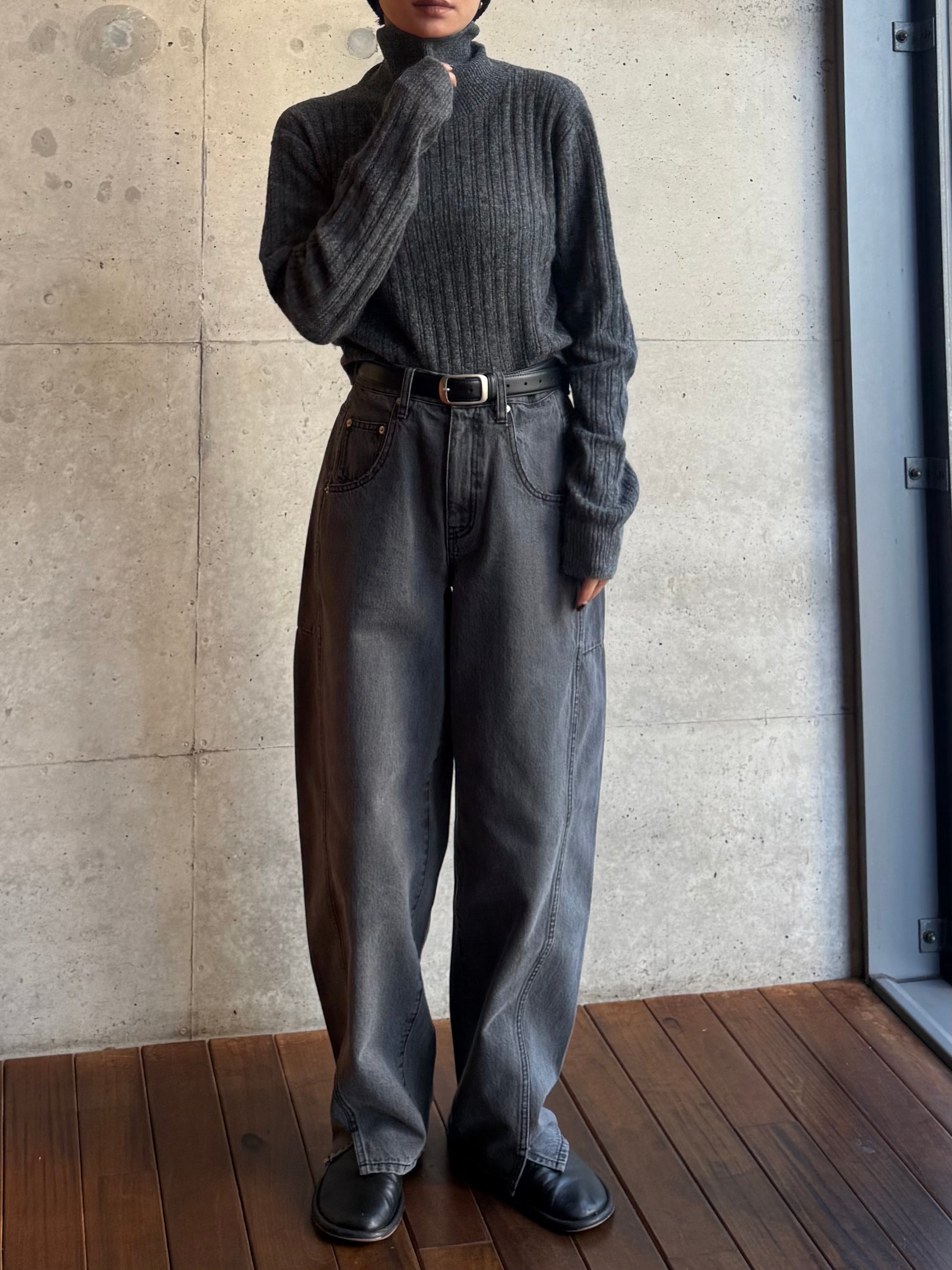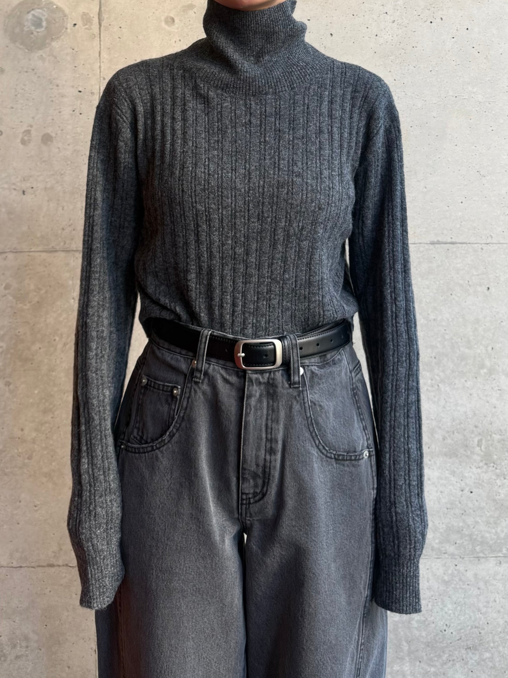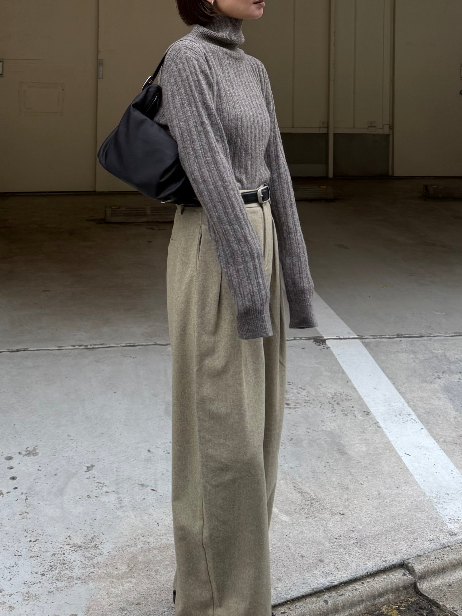リブ編みの縦ラインが自然と身体に沿い、コンパクトながらも窮屈さのないシルエットに。