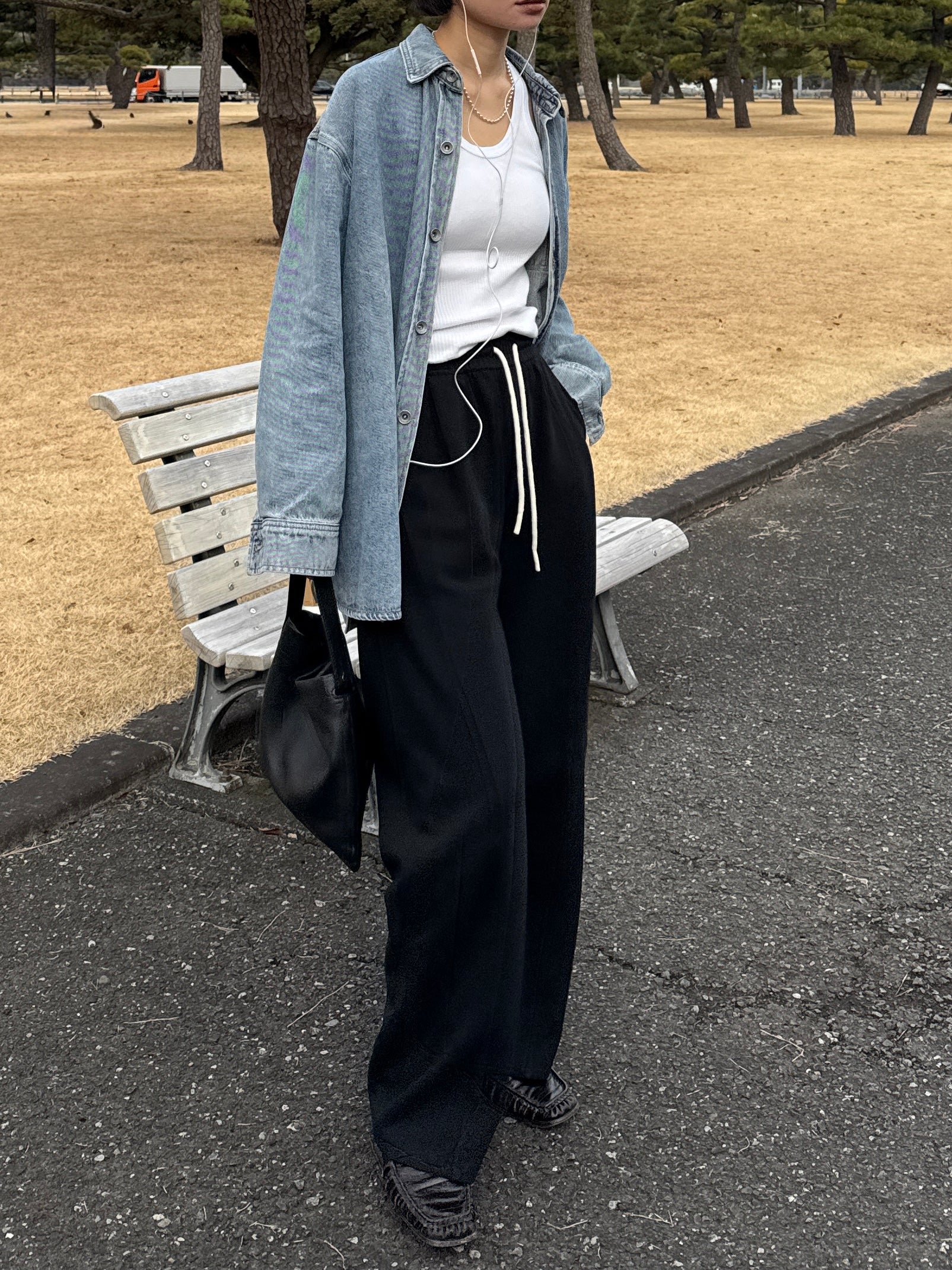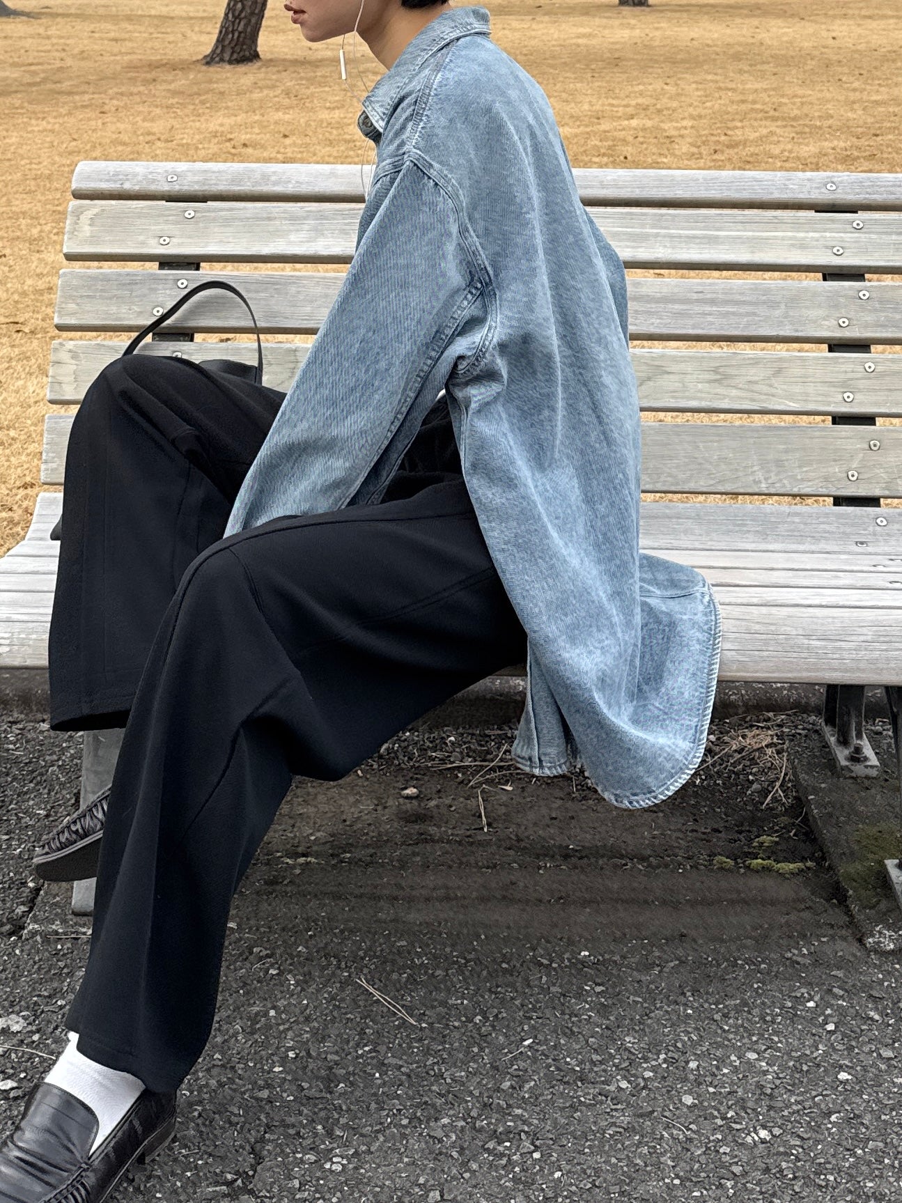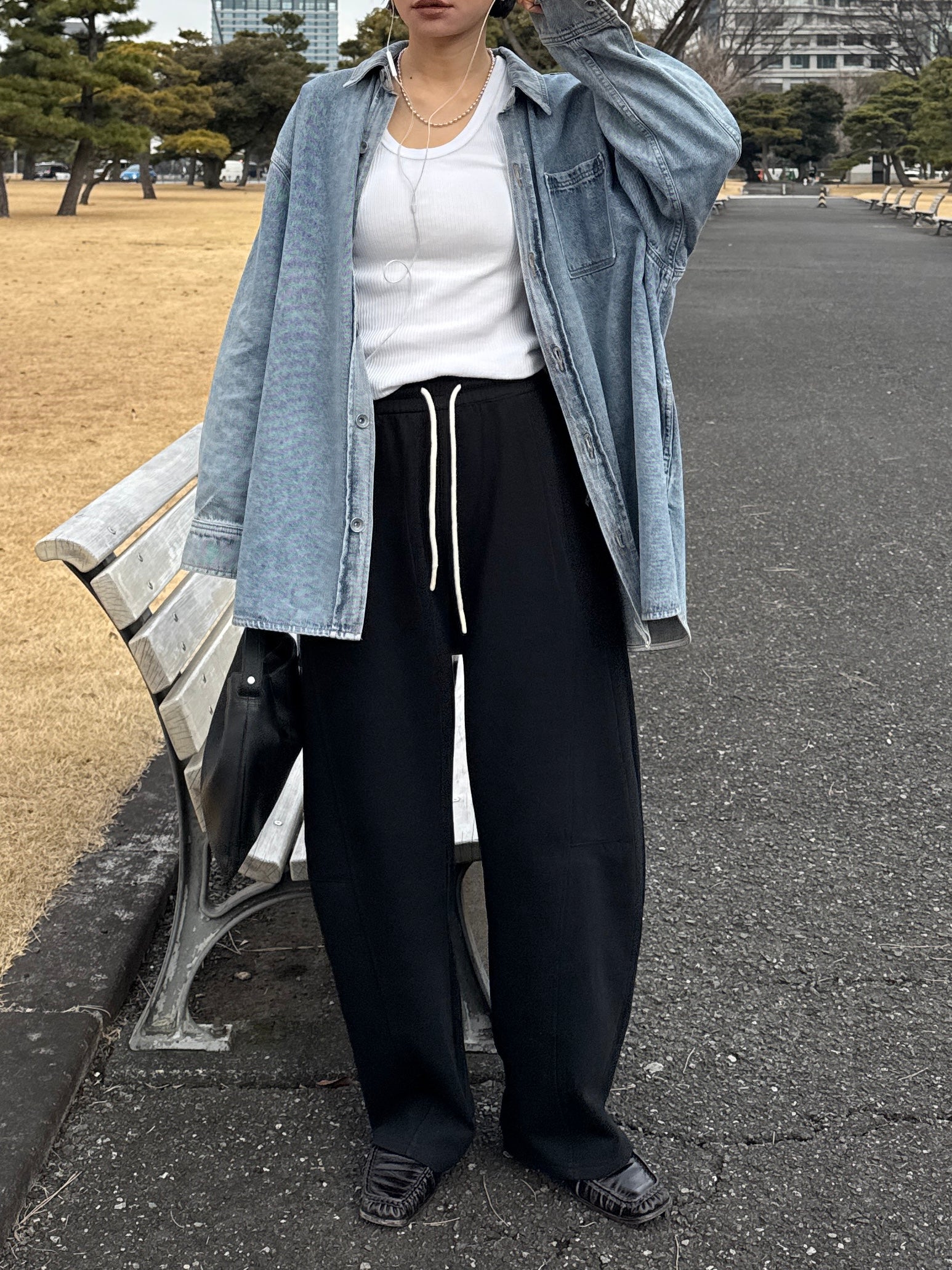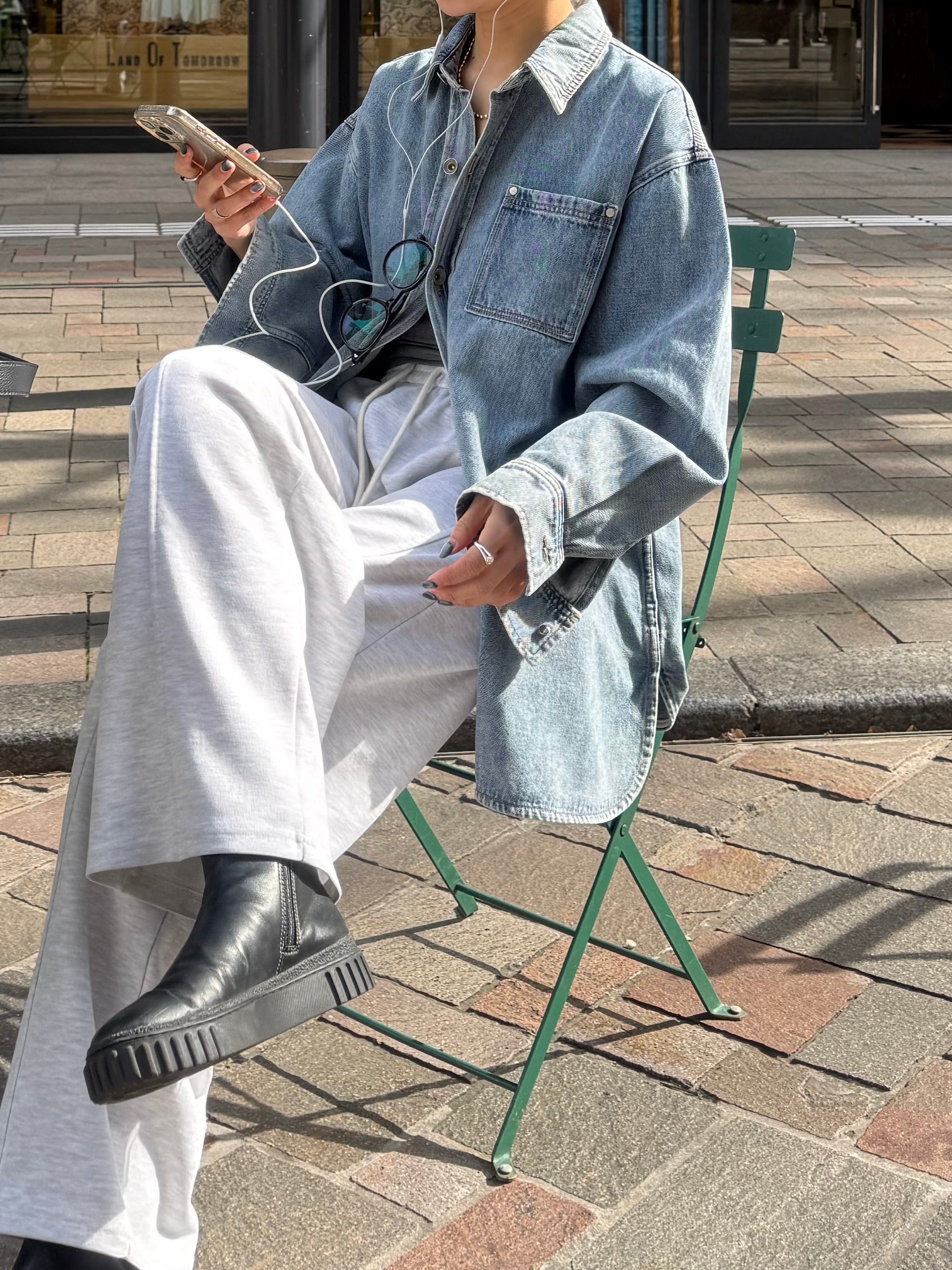 ドロップショルダーの落ち感が抜けを生み、カジュアルながらも大人っぽいバランスに整えてくれます。