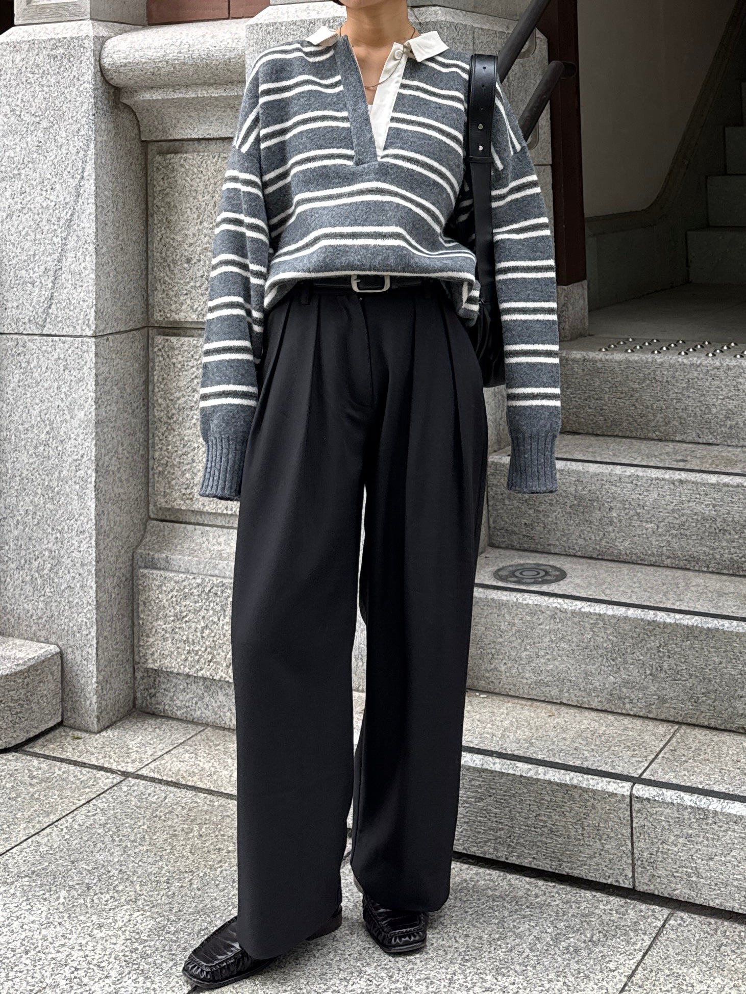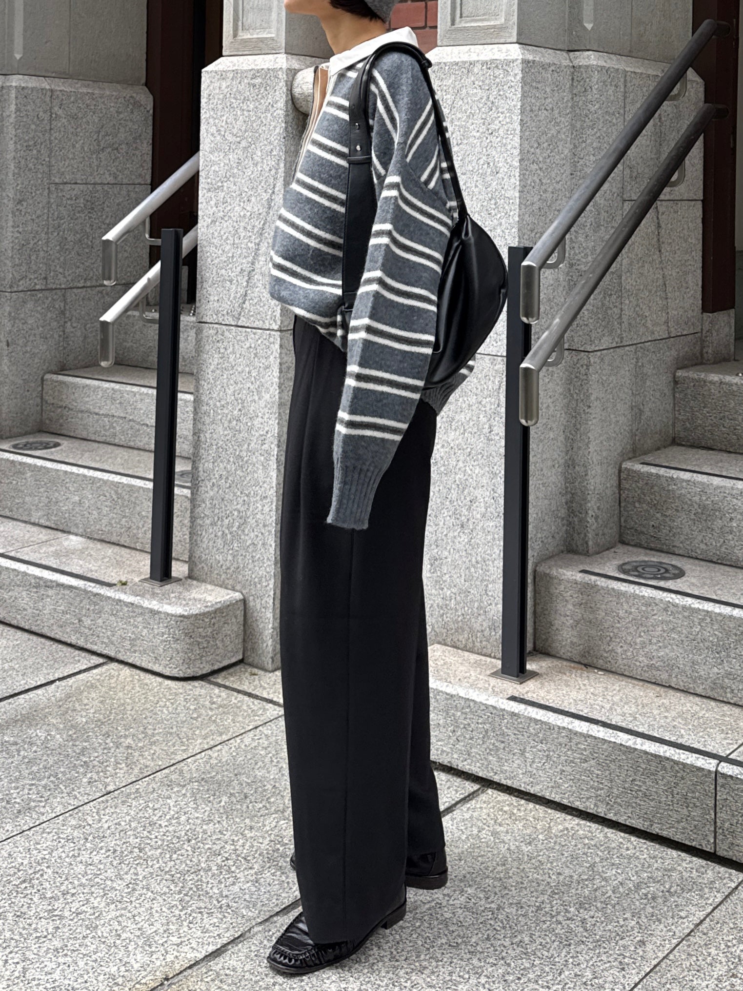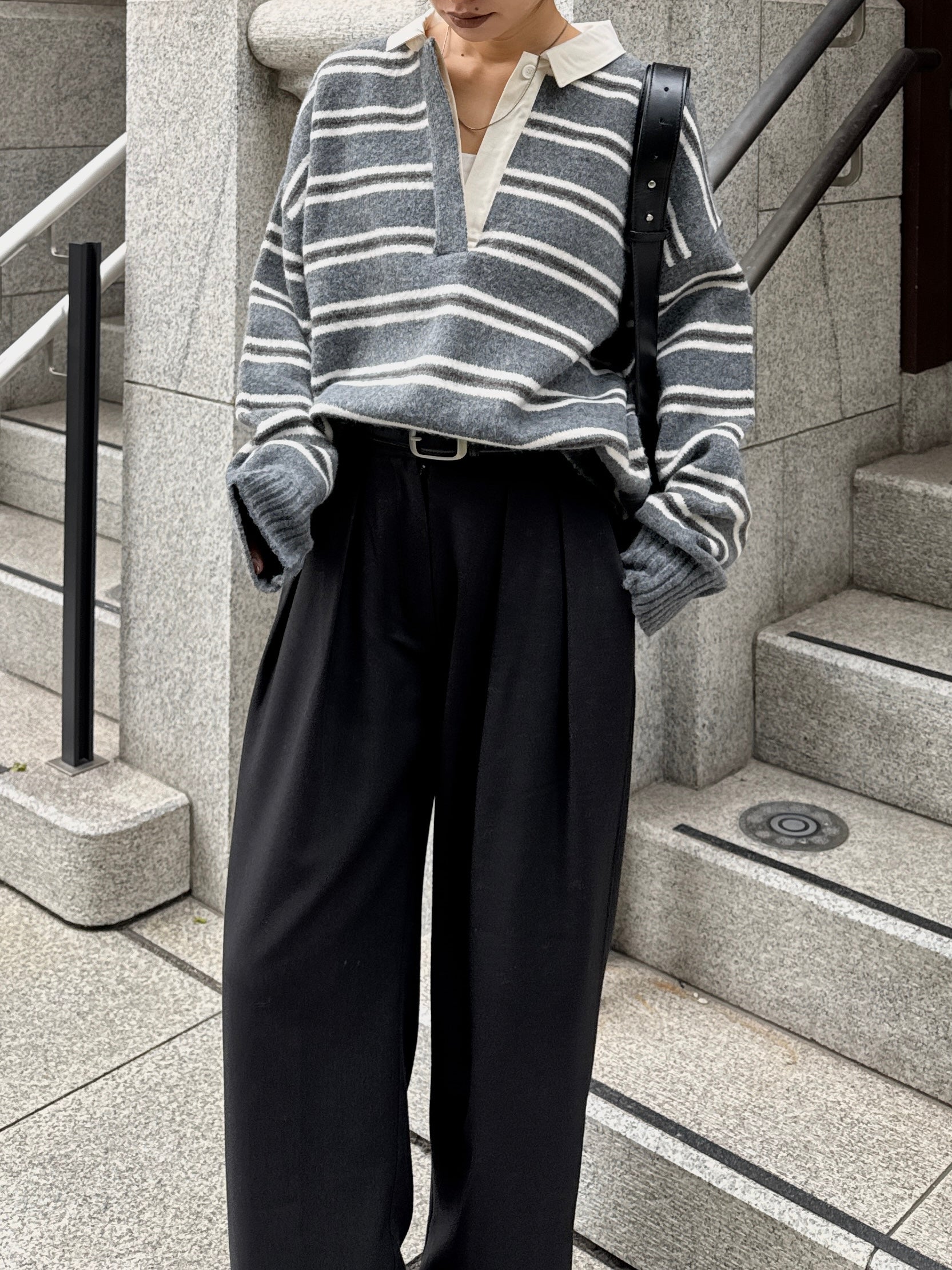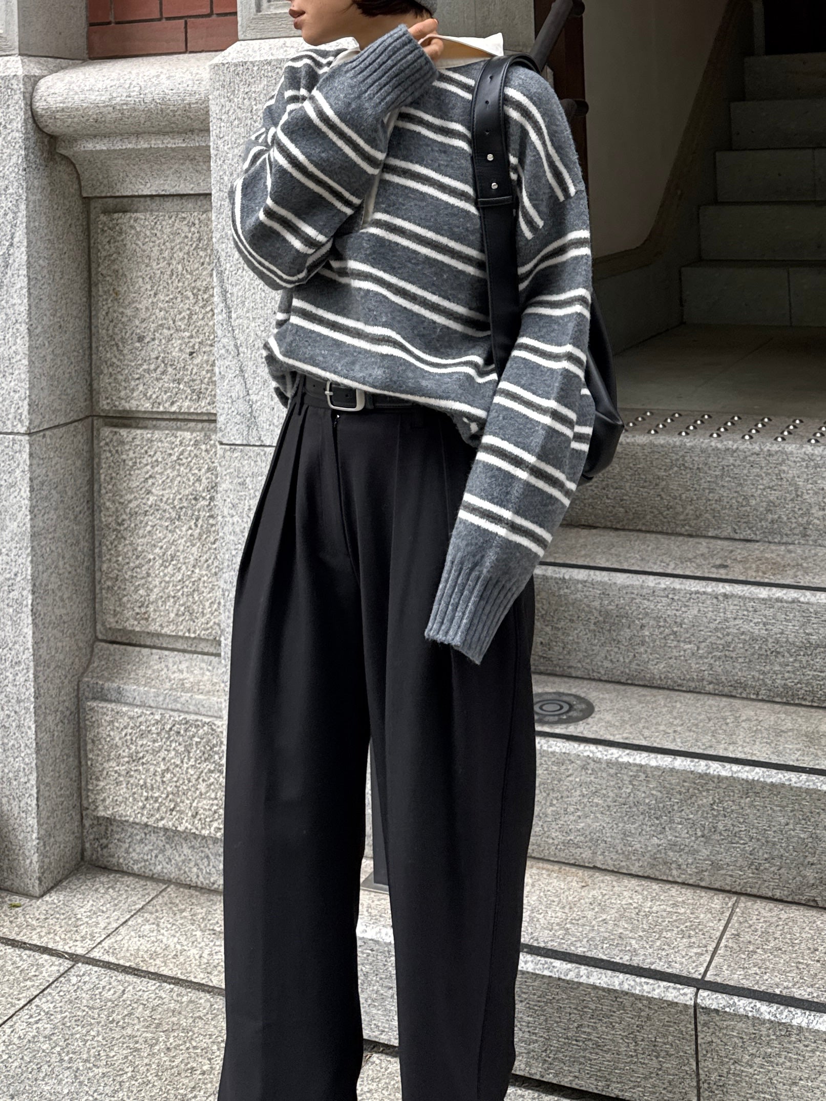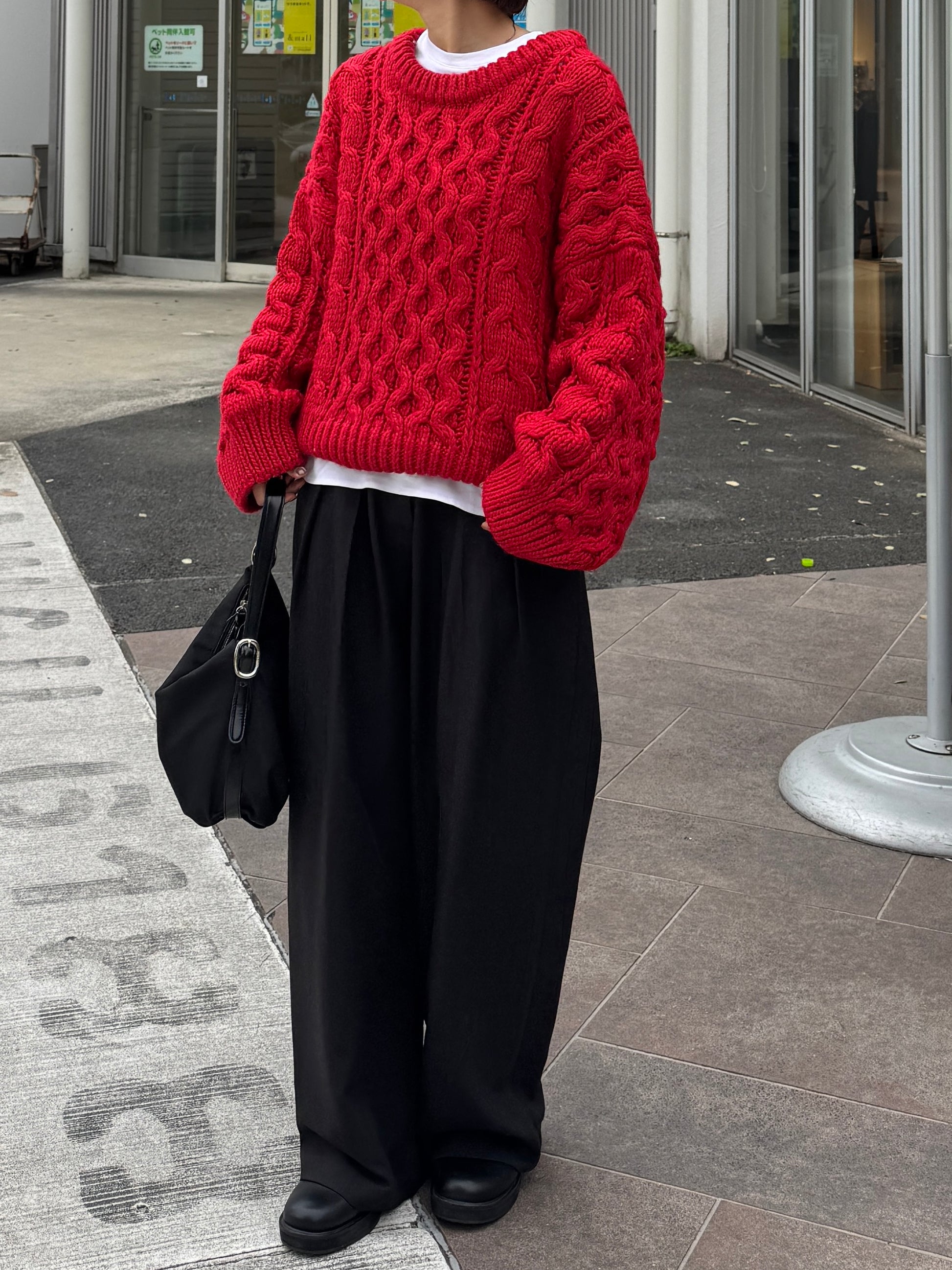 上質でマニッシュな印象のトラウザーズ。 フロントに施したタブルタックがポイントとなり、上品なシルエットが魅力。 丈は少し長めに設定する事で、どの角度からも綺麗に履けるマストバイアイテムに仕上がりました。 この1本があるだけで「着たくなる」を叶えた1本です。 パンツのシルエットを際立たせるシンプルなトップスをインして着て頂くのはもちろんゆるっとした表情あるニットやカジュアルなスウェット合わせなどもおすすめです。