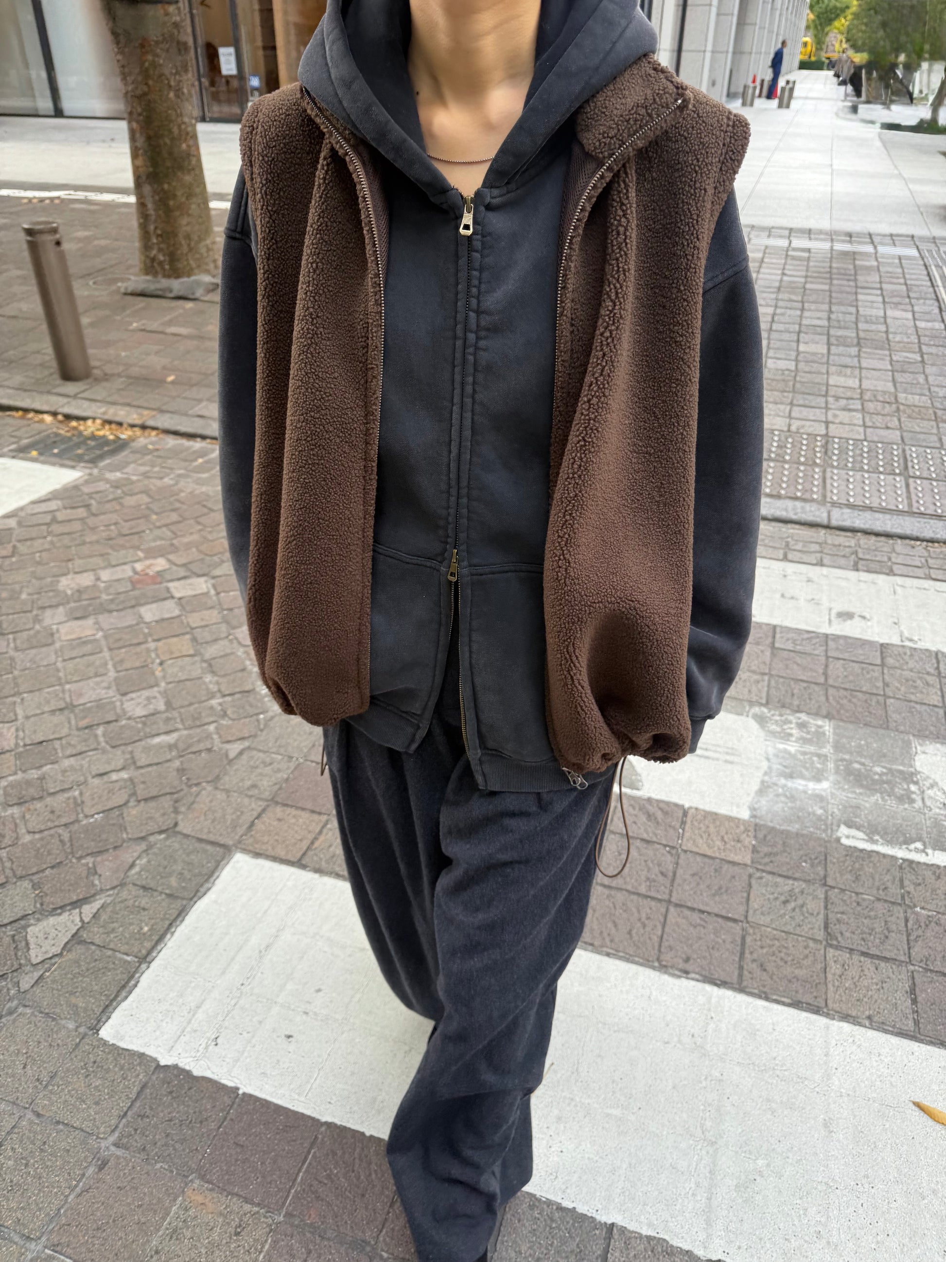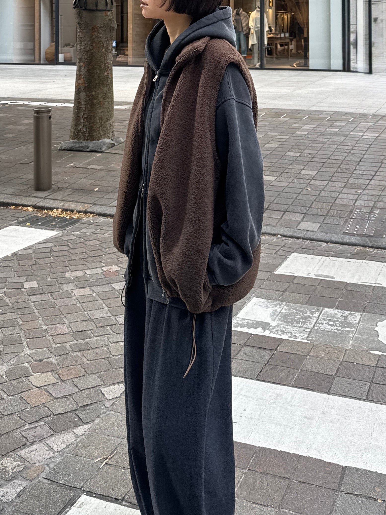 春に大人気だったボアベストに待望の〈BLK〉が今期登場。 軽さが特徴の手軽に羽織れるボアベストは、シンプルなコーディネートに合わせるだけでこなれた印象に。 最適な高さに設定したハイネックが顔周りの印象を引き出し、 ゆったりめな丈はヒップ周りをカバーしながらシルエットを綺麗に見せてくれます。 裾はドロスト仕様でスタイリングの幅を広げ、様々なテイストに合わせやすい1着に仕上げました。