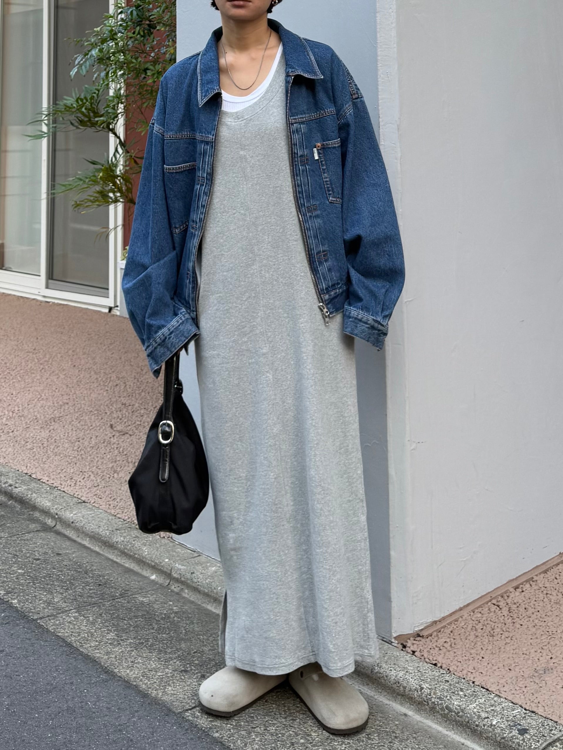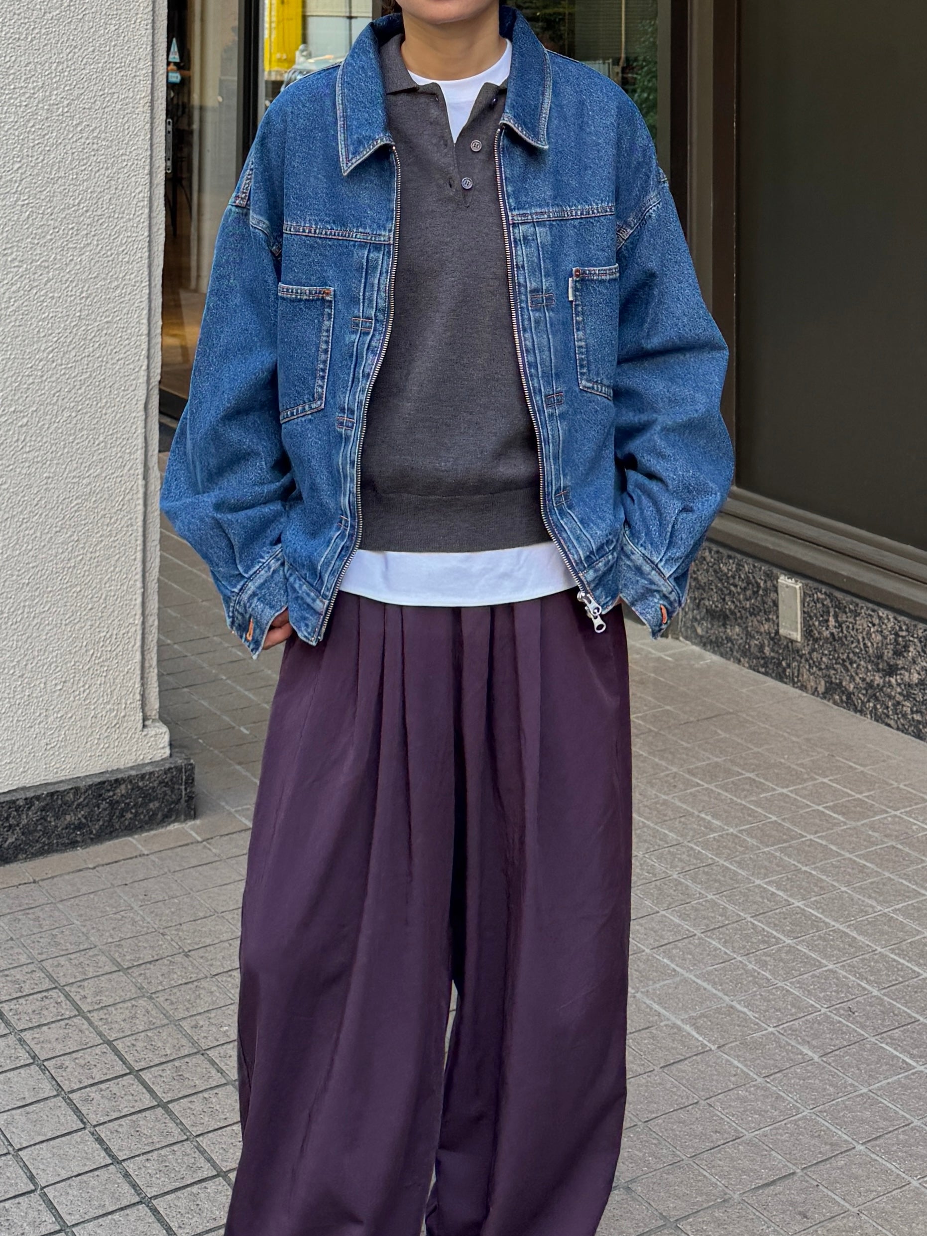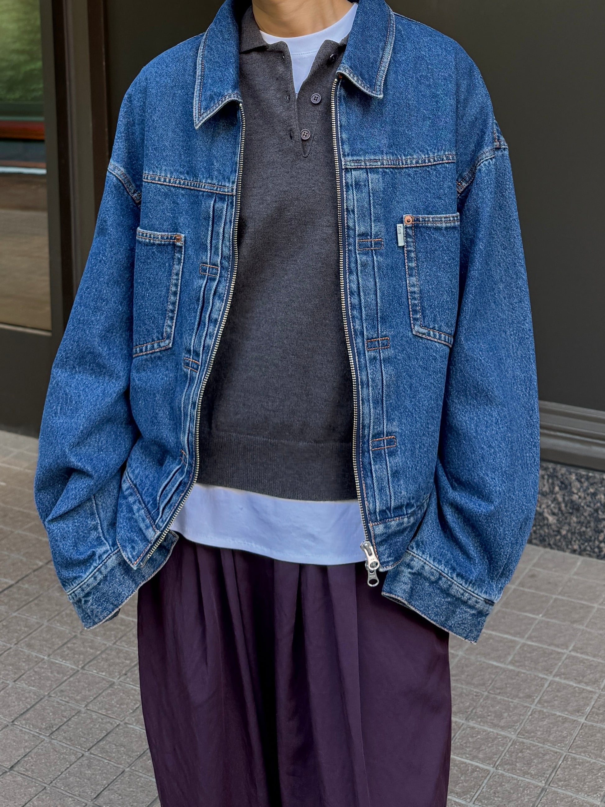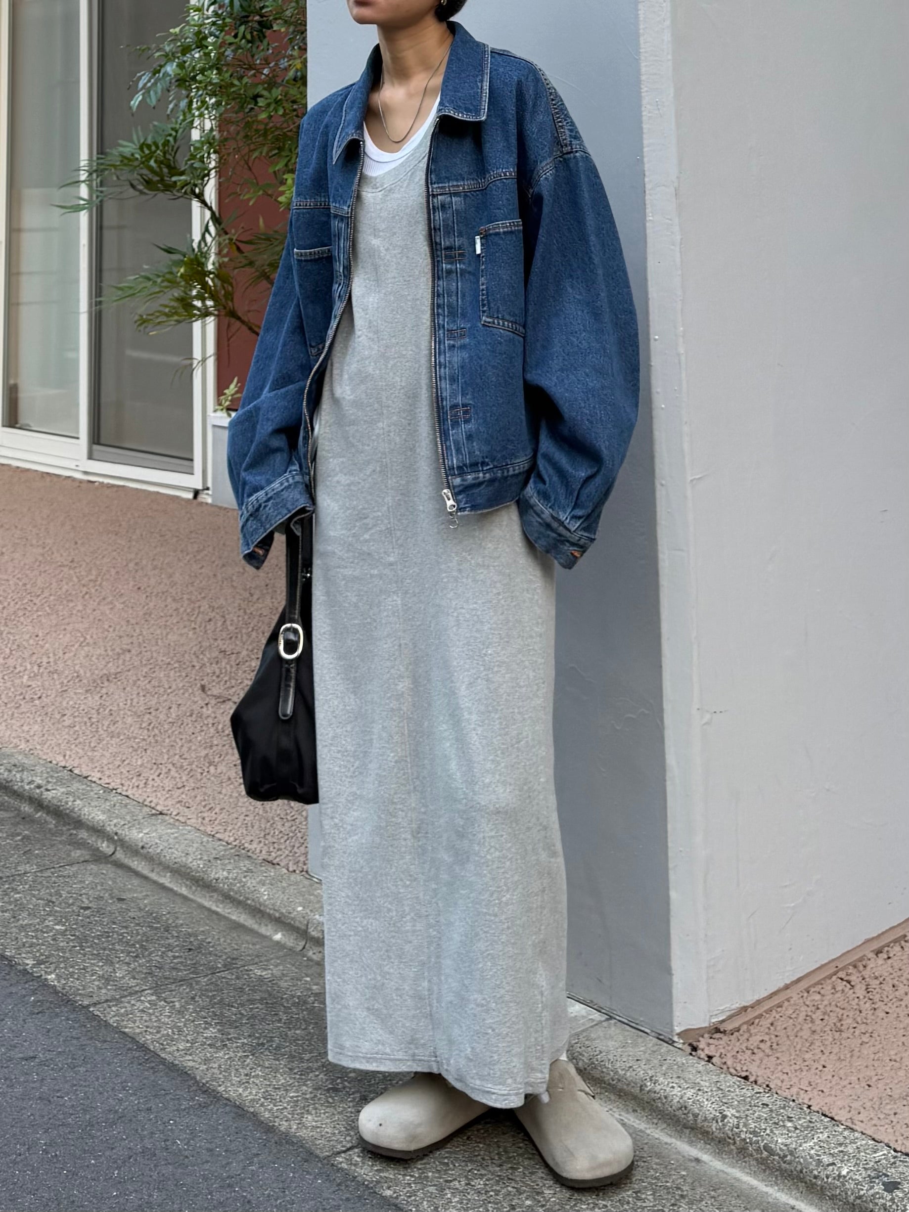 ディテールにこだわったデザインが魅力のオリジナルデニムジャケット。 デニム素材でラフさもありながらヴィンテージライクな加工を施し、シンプルながらも存在感のある1着に仕上げました。 程よくゆとりのあるシルエットが映えるハリ感と風合いが、洗練された大人のこなれ感を演出。 襟ぐりを広めにすることで顔まわりの印象をすっきりに、アームホールのたっぷり感も女性らしさを引き立たせてくれるポイントです。 フロントのダブルジップや裾タブの開閉次第で、バランスも取りやすく様々な着こなしのや変化がお楽しみいただけます。 幅広いスタイルに馴染む落ち着いた飽きのこないカラーで、ワードローブに加えたくなる秋のマストハブアイテムです。
