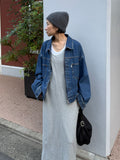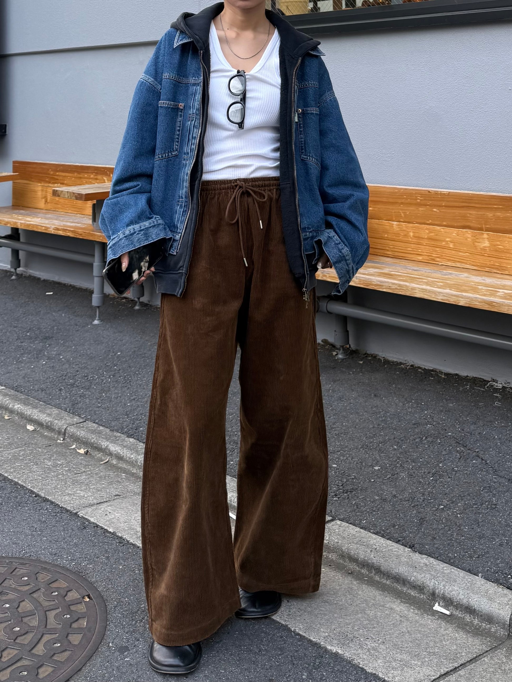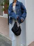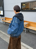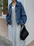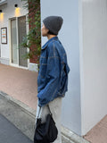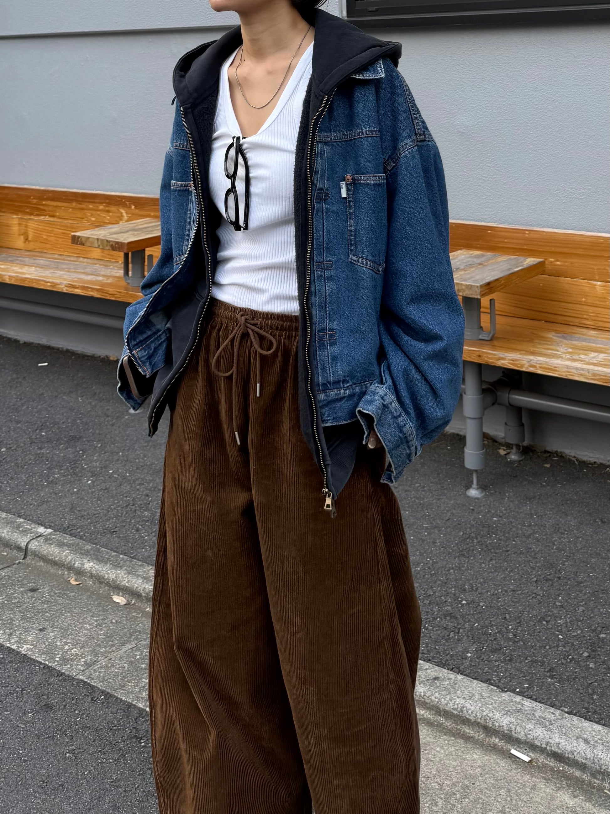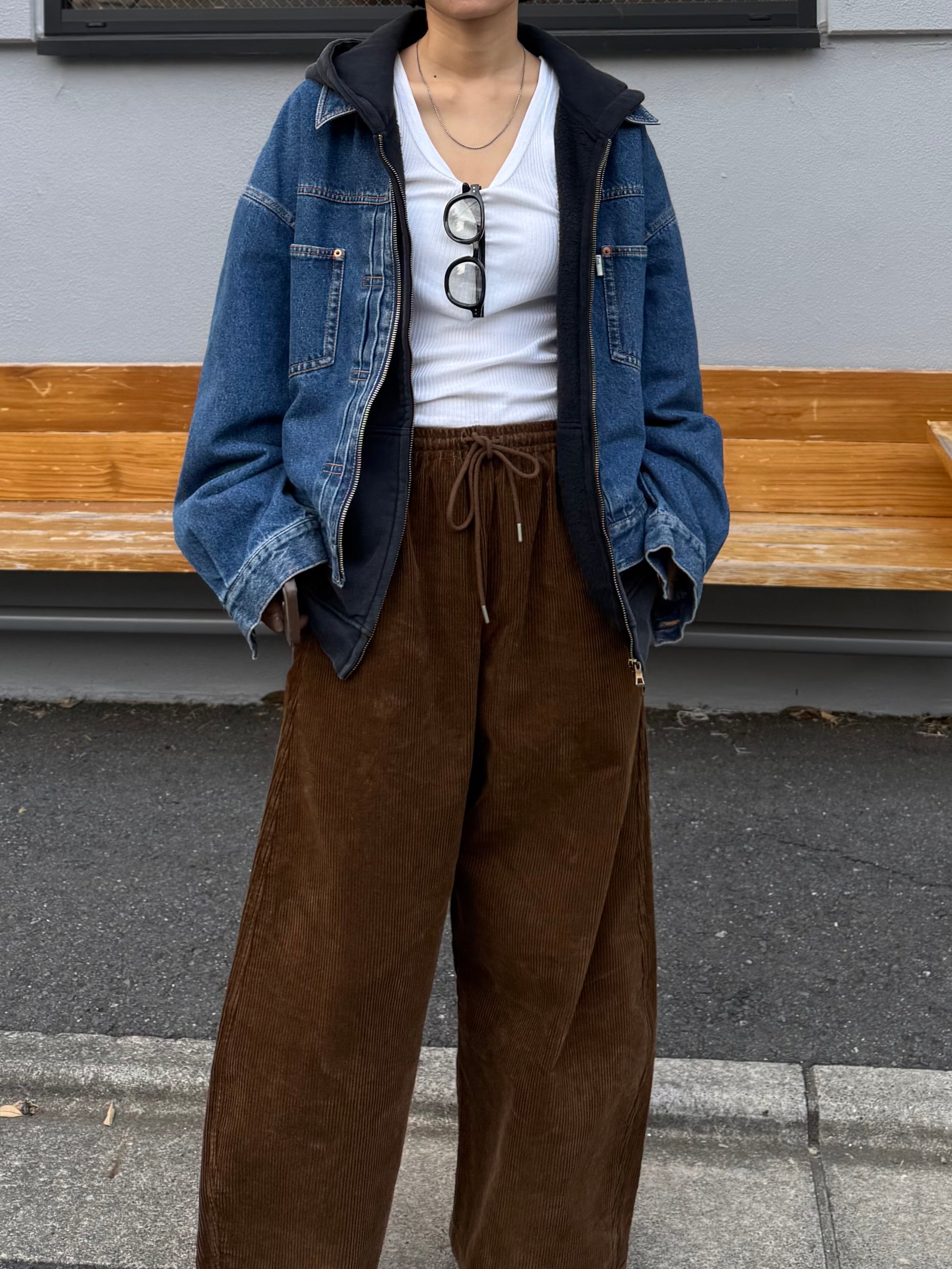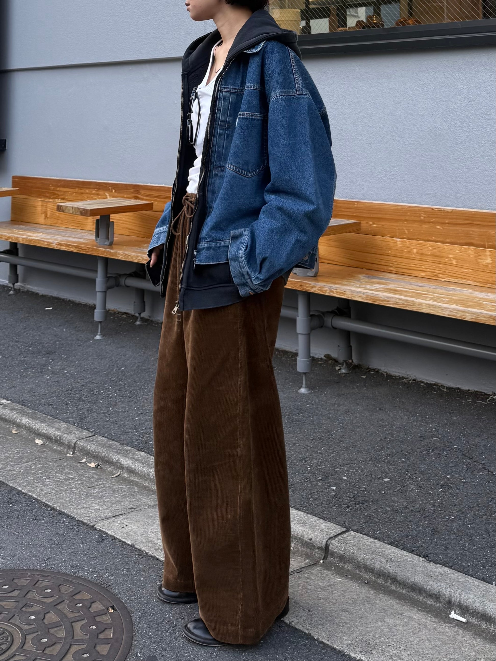 ディテールにこだわったデザインが魅力のオリジナルデニムジャケット。 デニム素材でラフさもありながらヴィンテージライクな加工を施し、シンプルながらも存在感のある1着に仕上げました。 程よくゆとりのあるシルエットが映えるハリ感と風合いが、洗練された大人のこなれ感を演出。 襟ぐりを広めにすることで顔まわりの印象をすっきりに、アームホールのたっぷり感も女性らしさを引き立たせてくれるポイントです。 フロントのダブルジップや裾タブの開閉次第で、バランスも取りやすく様々な着こなしのや変化がお楽しみいただけます。 幅広いスタイルに馴染む落ち着いた飽きのこないカラーで、ワードローブに加えたくなる秋のマストハブアイテムです。