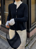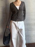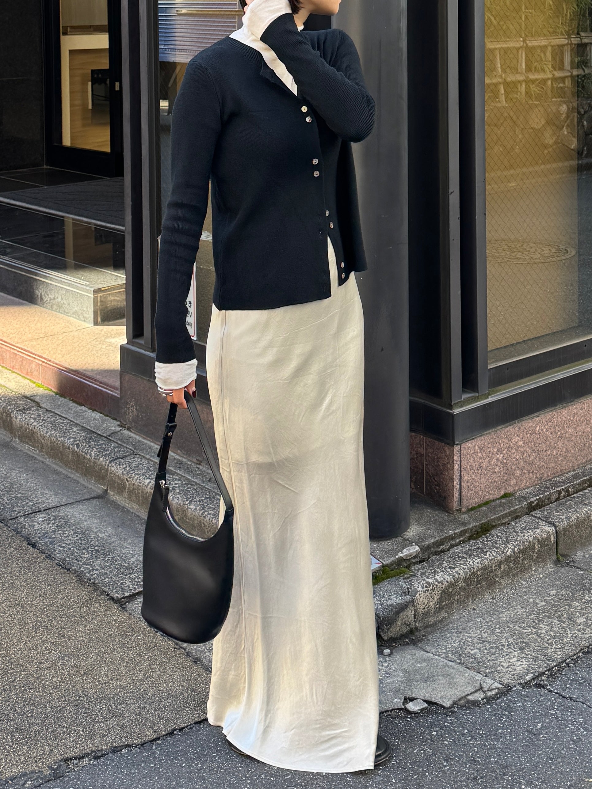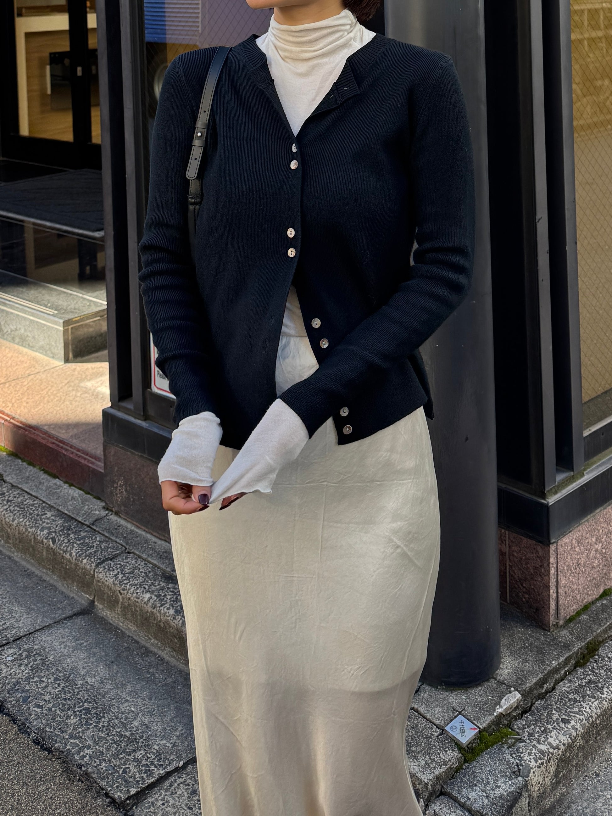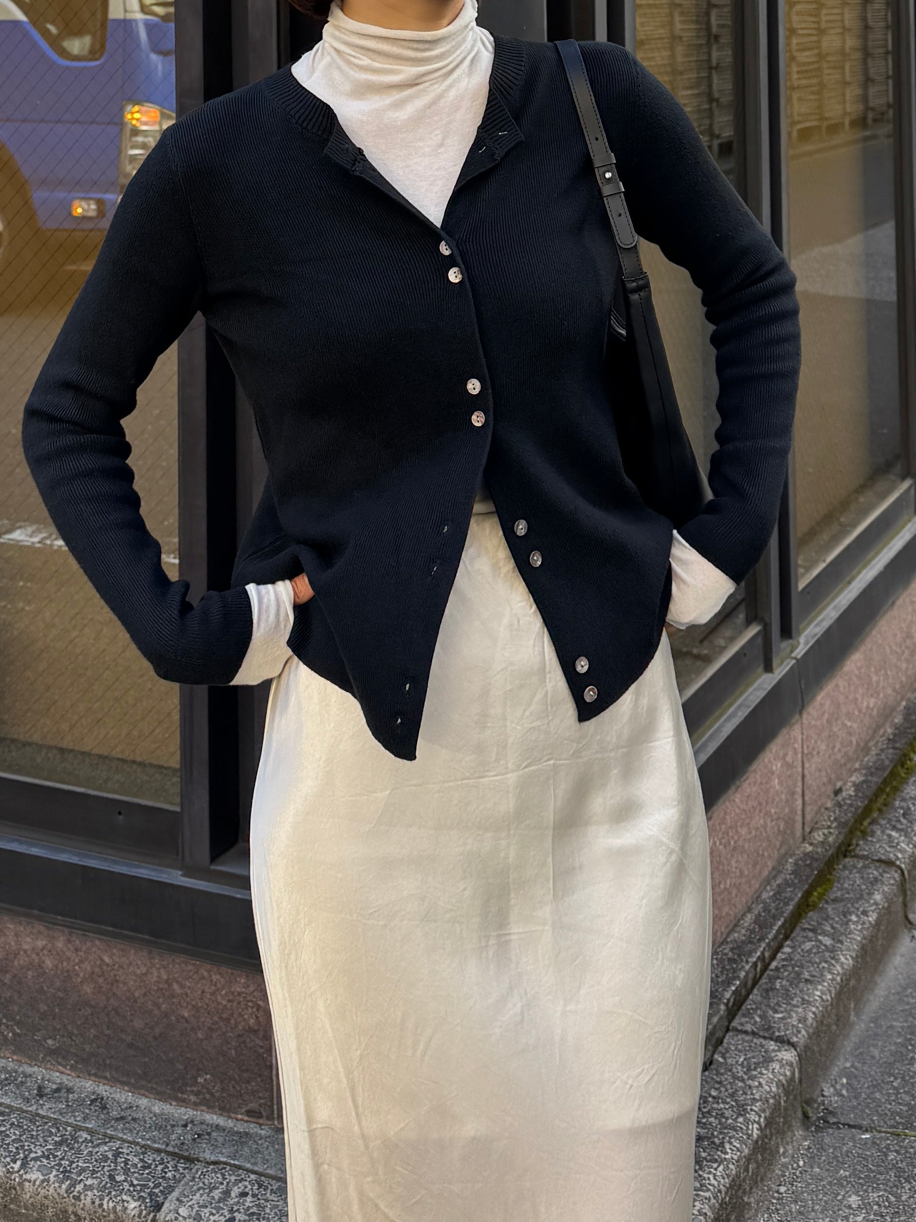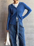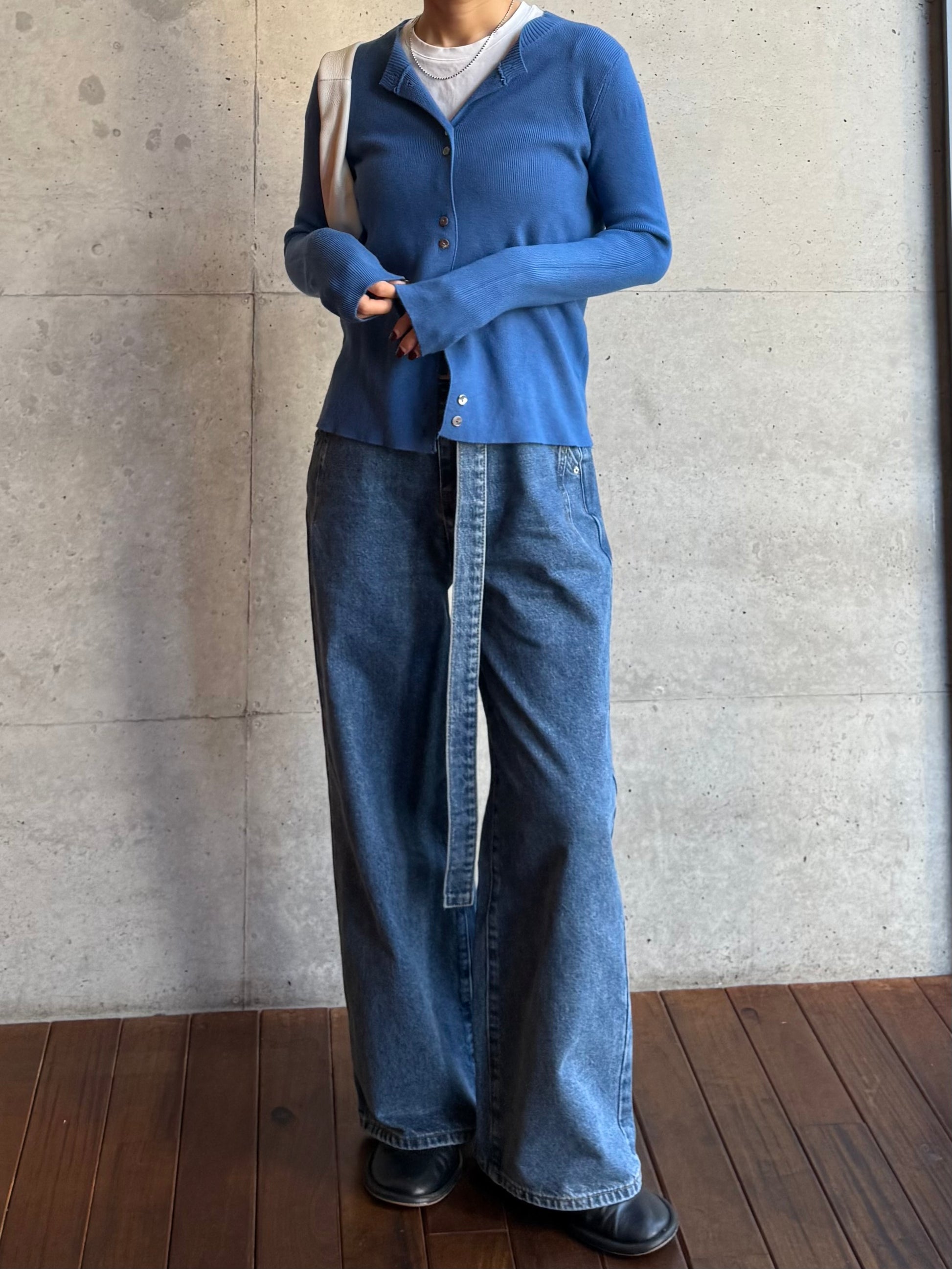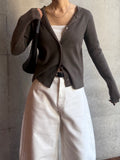 しなやかな伸縮性があり、身体にやさしく馴染む着心地の良いニットカーディガン。 軽やかな着用感で、春先の気温差にも対応しやすい一枚です。 全体に施された細めのリブ編みが、縦のラインを強調し、すっきりとした印象に◎ 柔らかさの中に程よいフィット感があり、長時間の着用でもストレスを感じにくいのも魅力です。 フロントには上品な光沢感のあるシェル素材のボタンを使用し、春らしい軽さとさりげない華やかさをプラス。 カットソーやタートルとのレイヤードもしやすく、ボタンを留めてトップス感覚でも、羽織りとしても活躍します。 装いが軽くなるこれからの季節に、デイリーに取り入れやすいアイテムです。