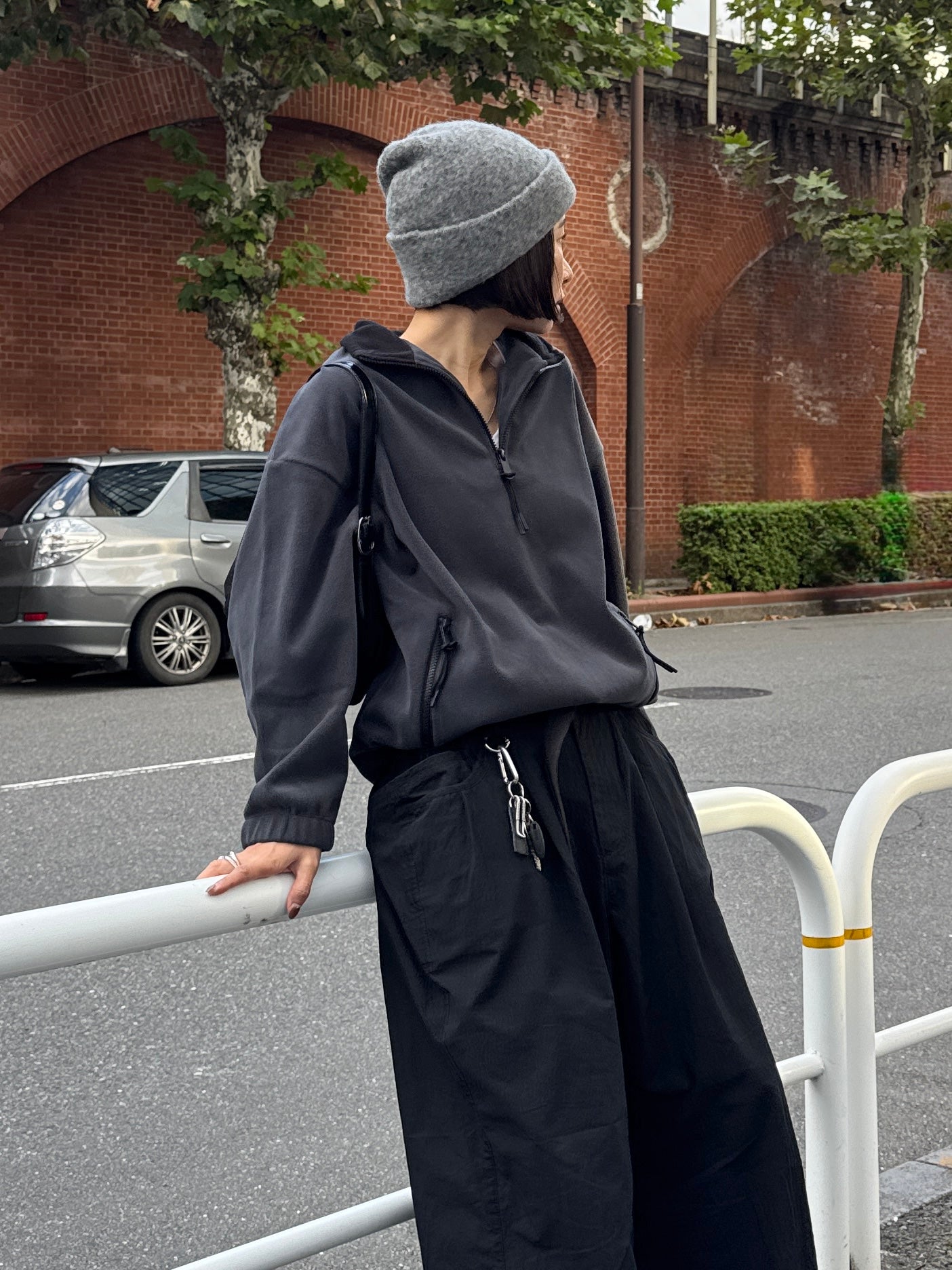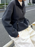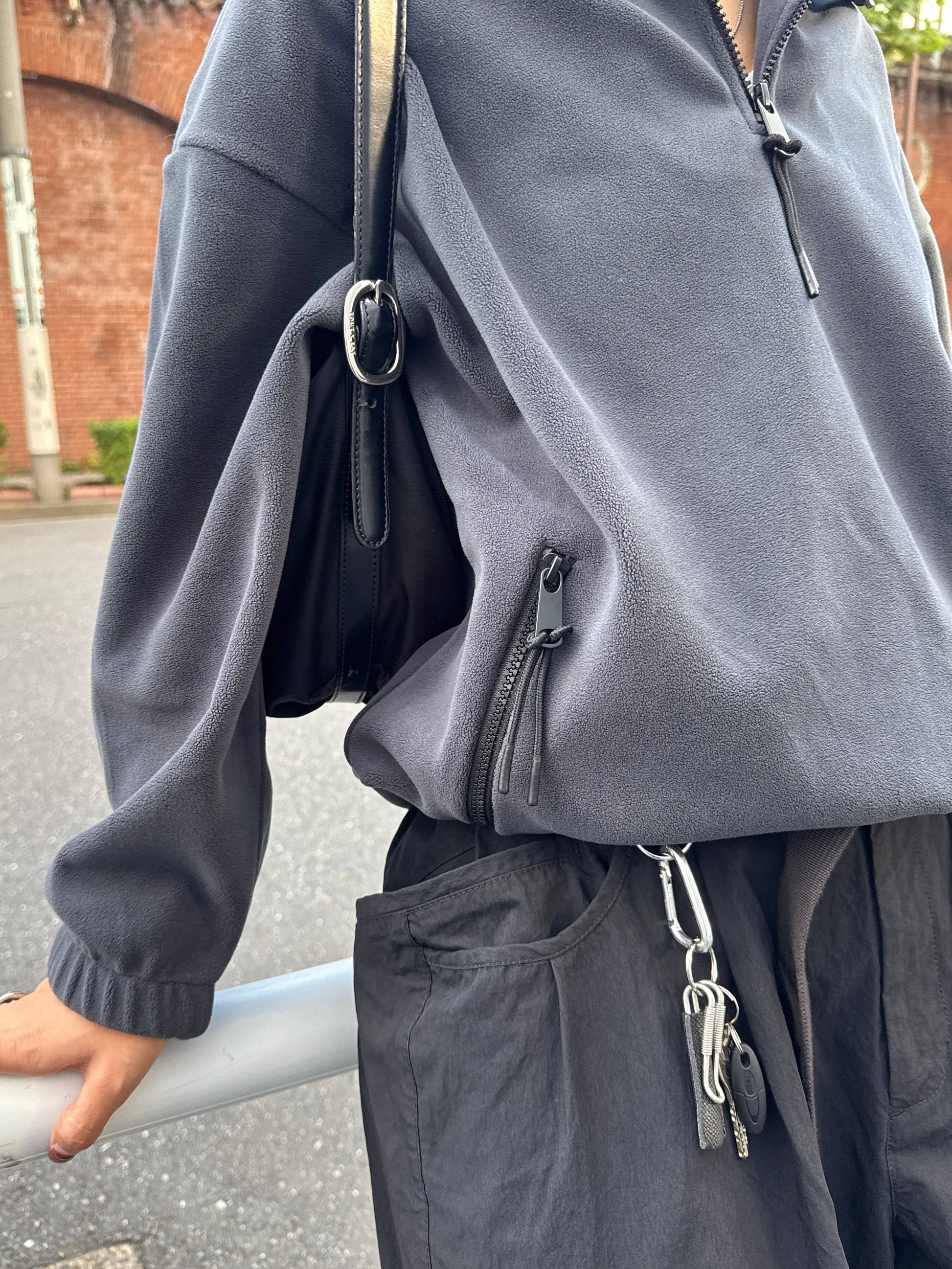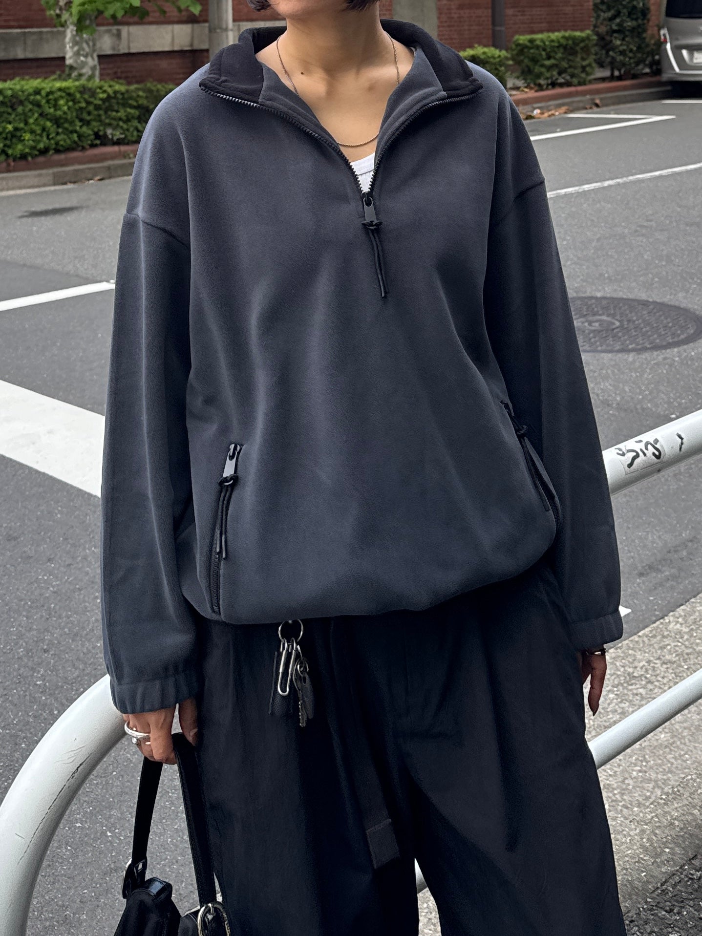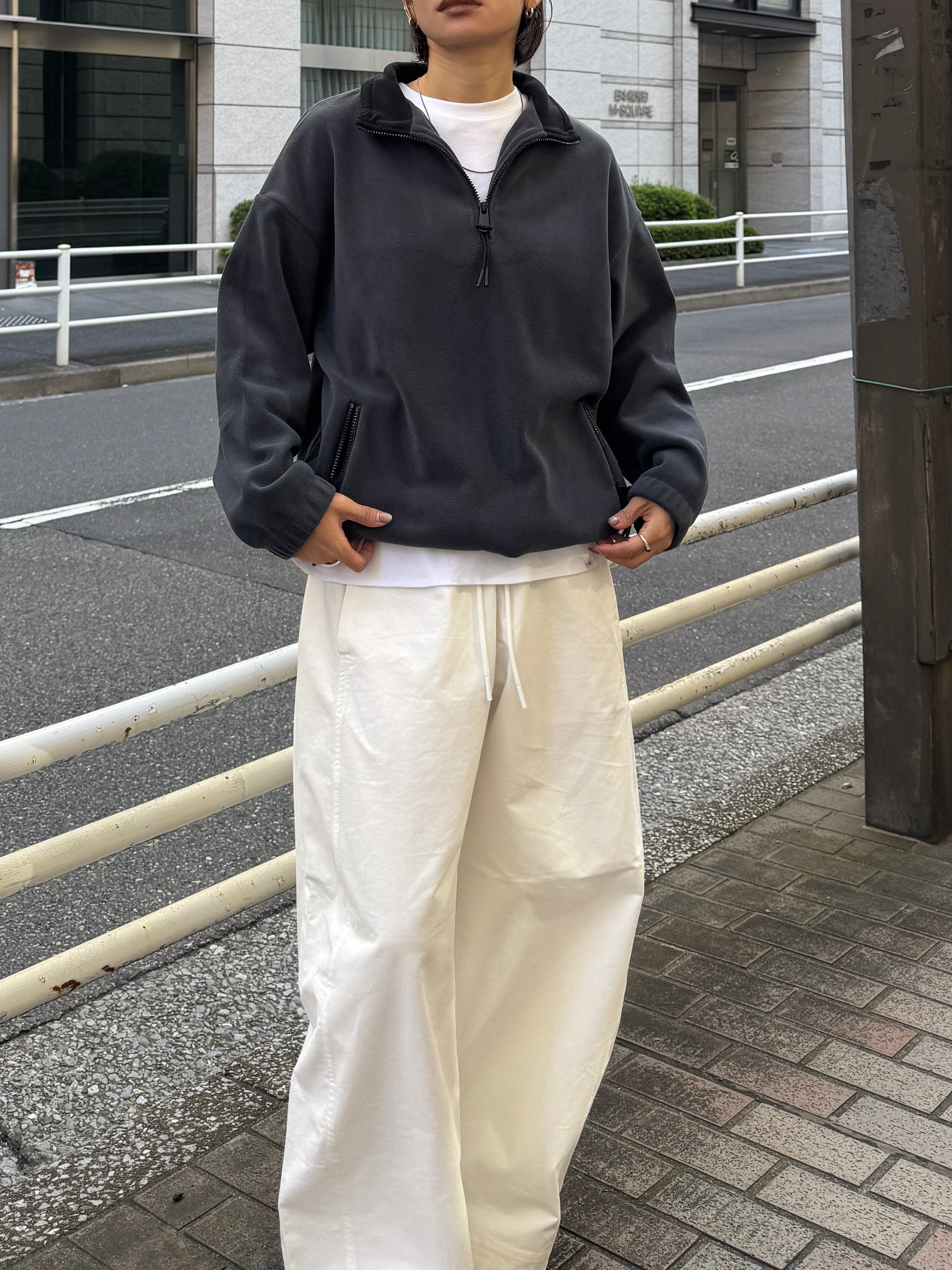 やわらかな温もりと軽やかな着心地が魅力の、ハーフジップフリースプルオーバー。 マットな質感と滑らかな肌触りが特徴のフリース素材は、程よい厚みでデイリーに着やすく 秋冬シーズンの羽織りにもインナー使いにも活躍してくれます。 襟元のハーフジップは開け方次第で表情を変えられ、インナーを覗かせることでスタイリングに奥行き感をプラス。 ジップの先端にはさりげないコード付きで、カジュアルながらも上品にまとまるデザインに仕上げました。 裾のドロストを絞ればバランスの良い丸みシルエットになり、幅広いボトムスと相性◎ 全体的に無駄のないシンプルなデザインながら、素材の表情とシルエットで大人のこなれ感を演出してくれる1枚です。