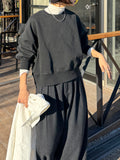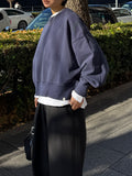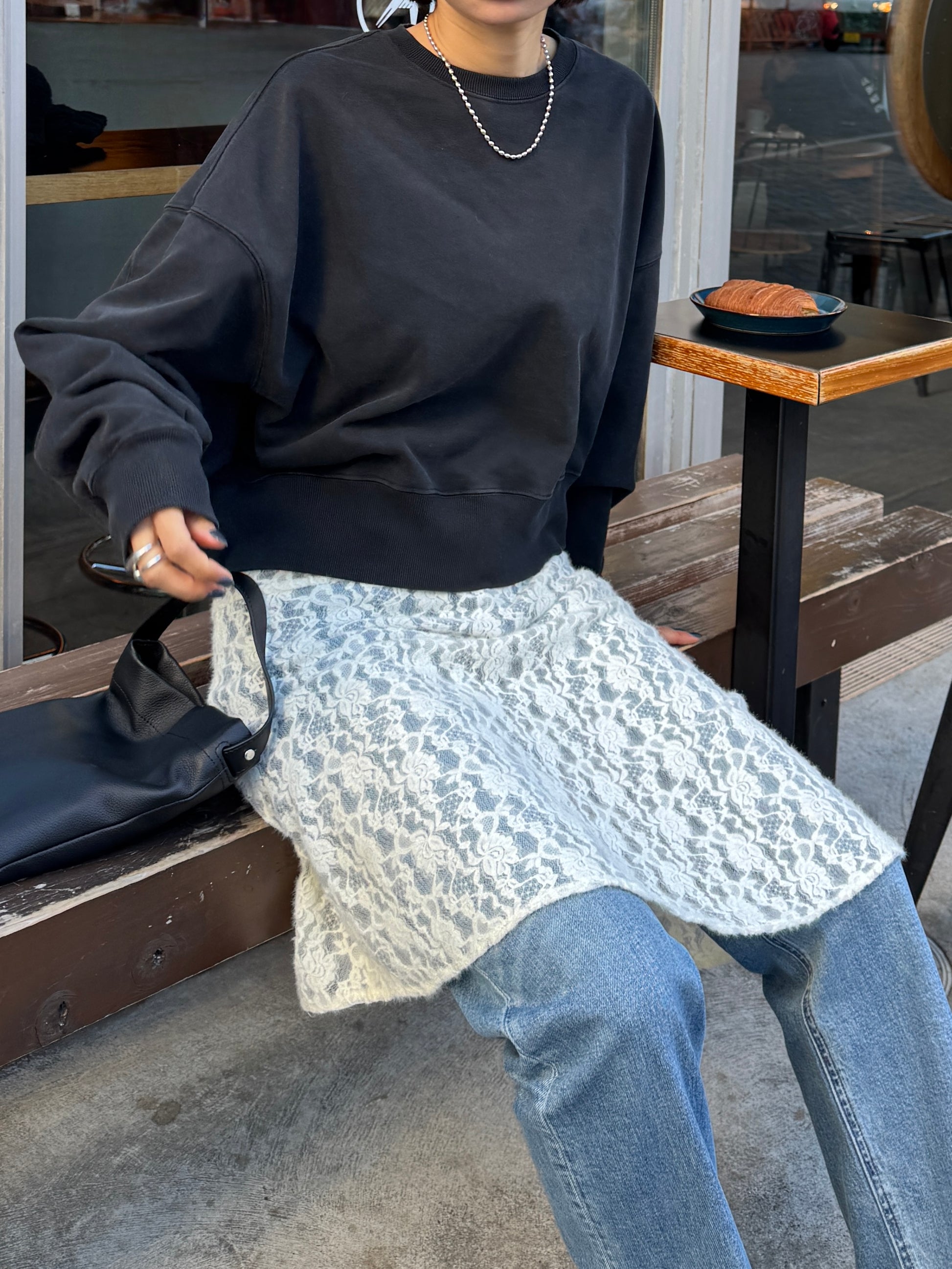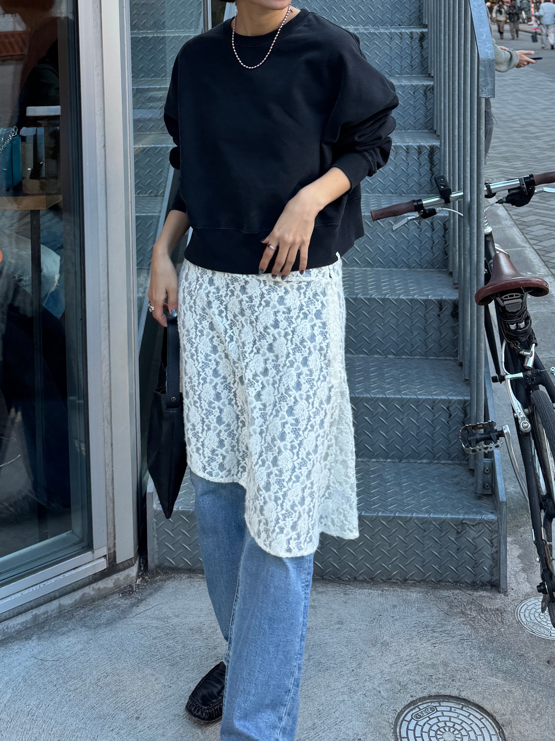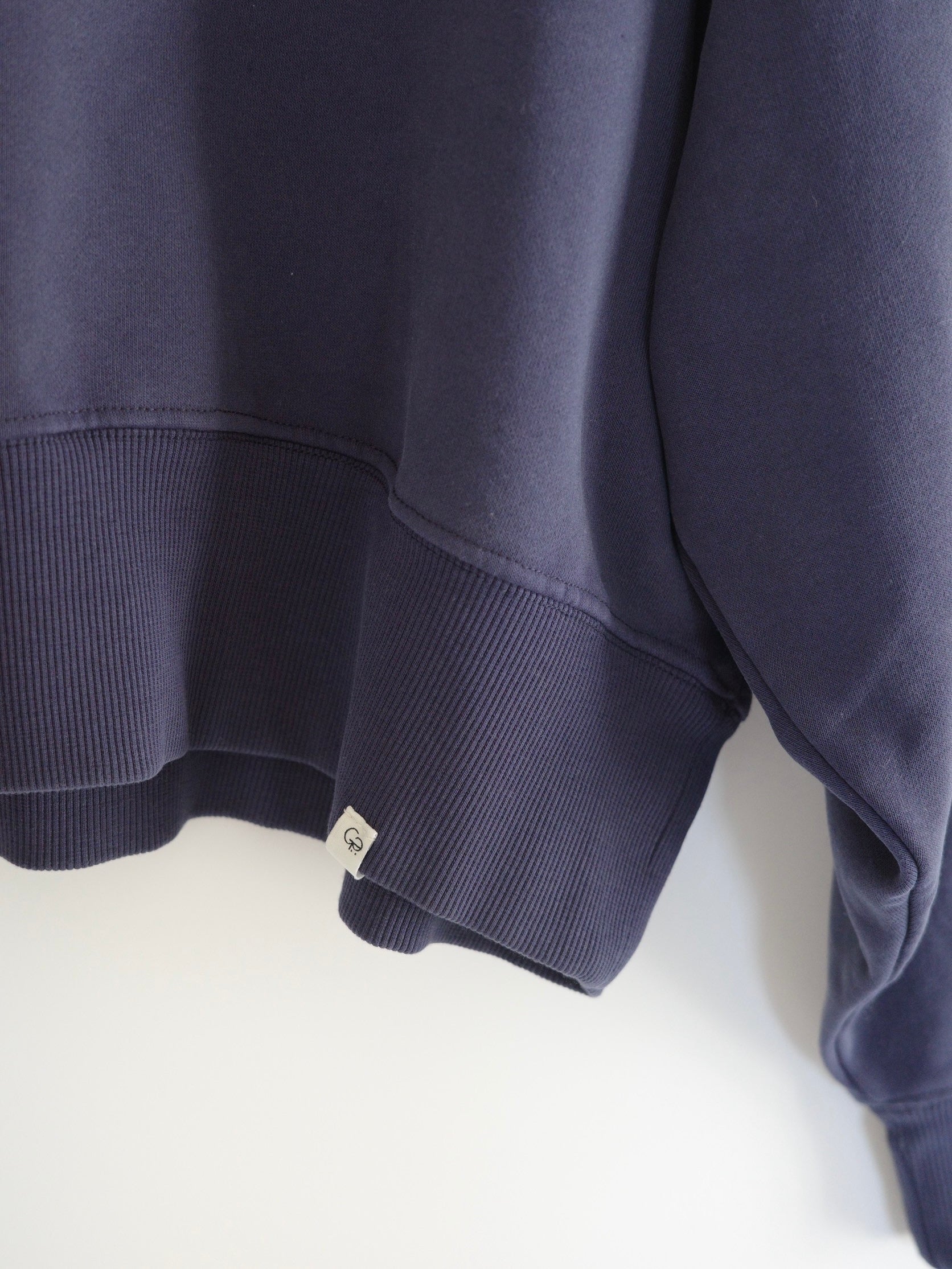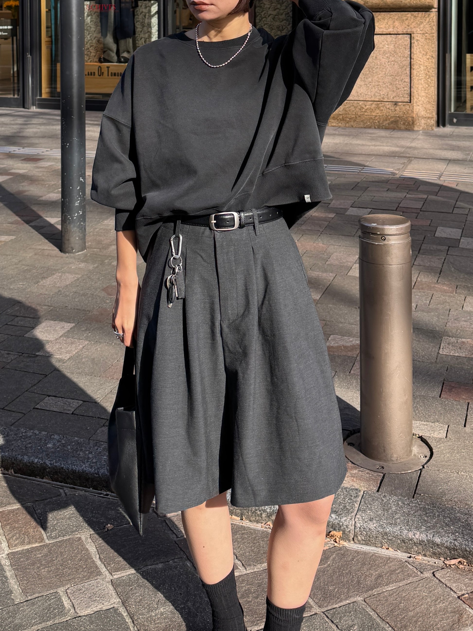 程よいショート丈と、立体感のあるシルエットが魅力のスウェットトップス。 肩まわりから袖にかけてゆとりを持たせたデザインで自然に丸みのあるフォルムが生まれ、ラフになりすぎず大人のカジュアルスタイルに馴染みます。 身頃と裾のリブ部分は切り替え位置にこだわり、シンプルながらもさりげないデザインアクセントに。 程よく色落ちさせたヴィンテージライクなウォッシュ加工を施し、こなれ感のある表情に仕上げているのもポイント。 インナーとのレイヤードで季節の変わり目にも幅広く活躍する1枚。