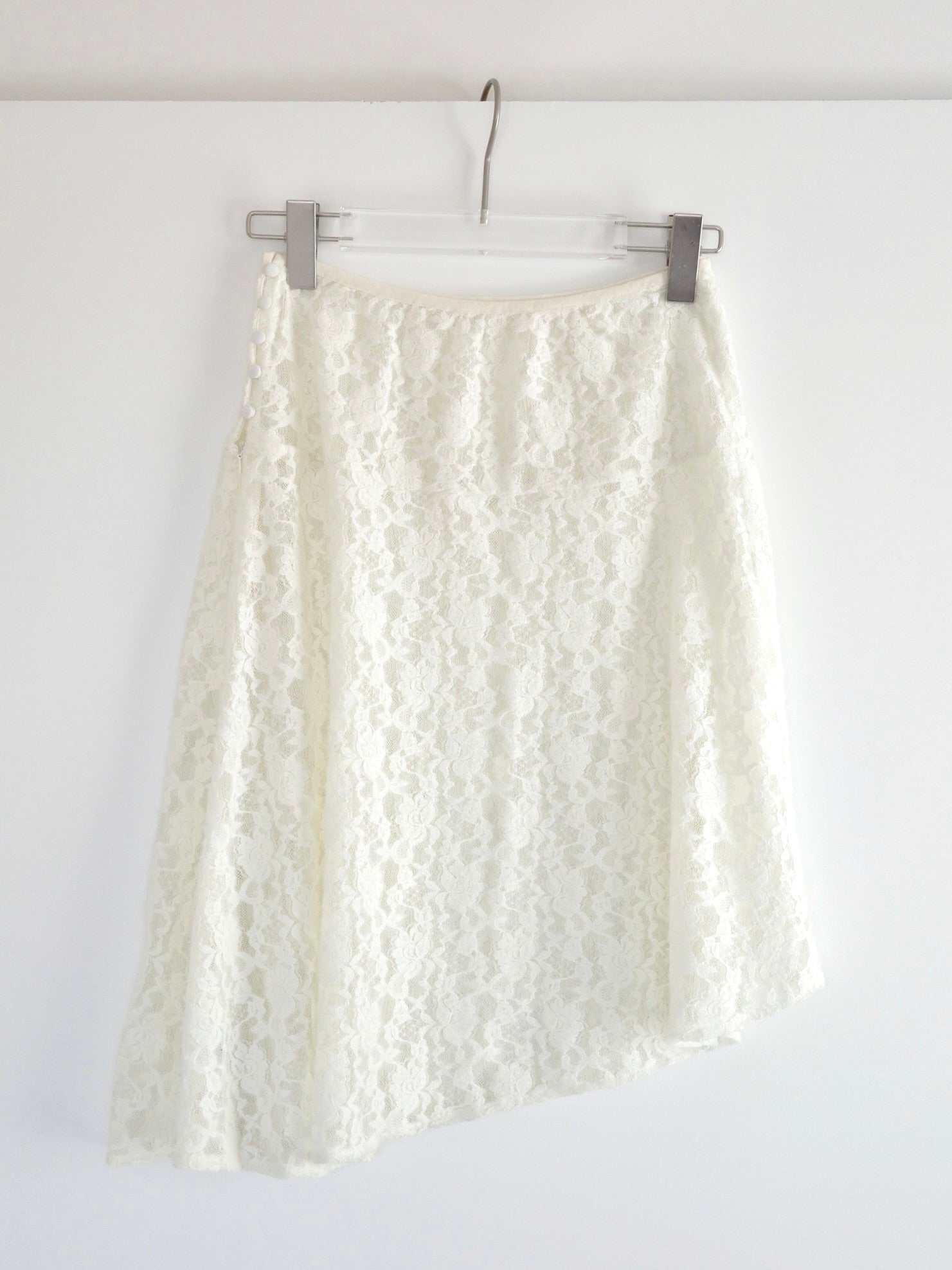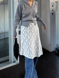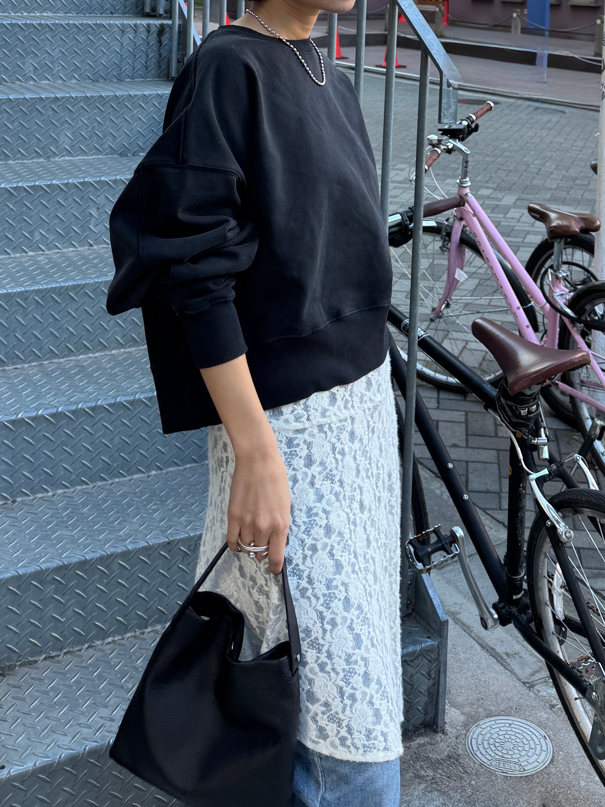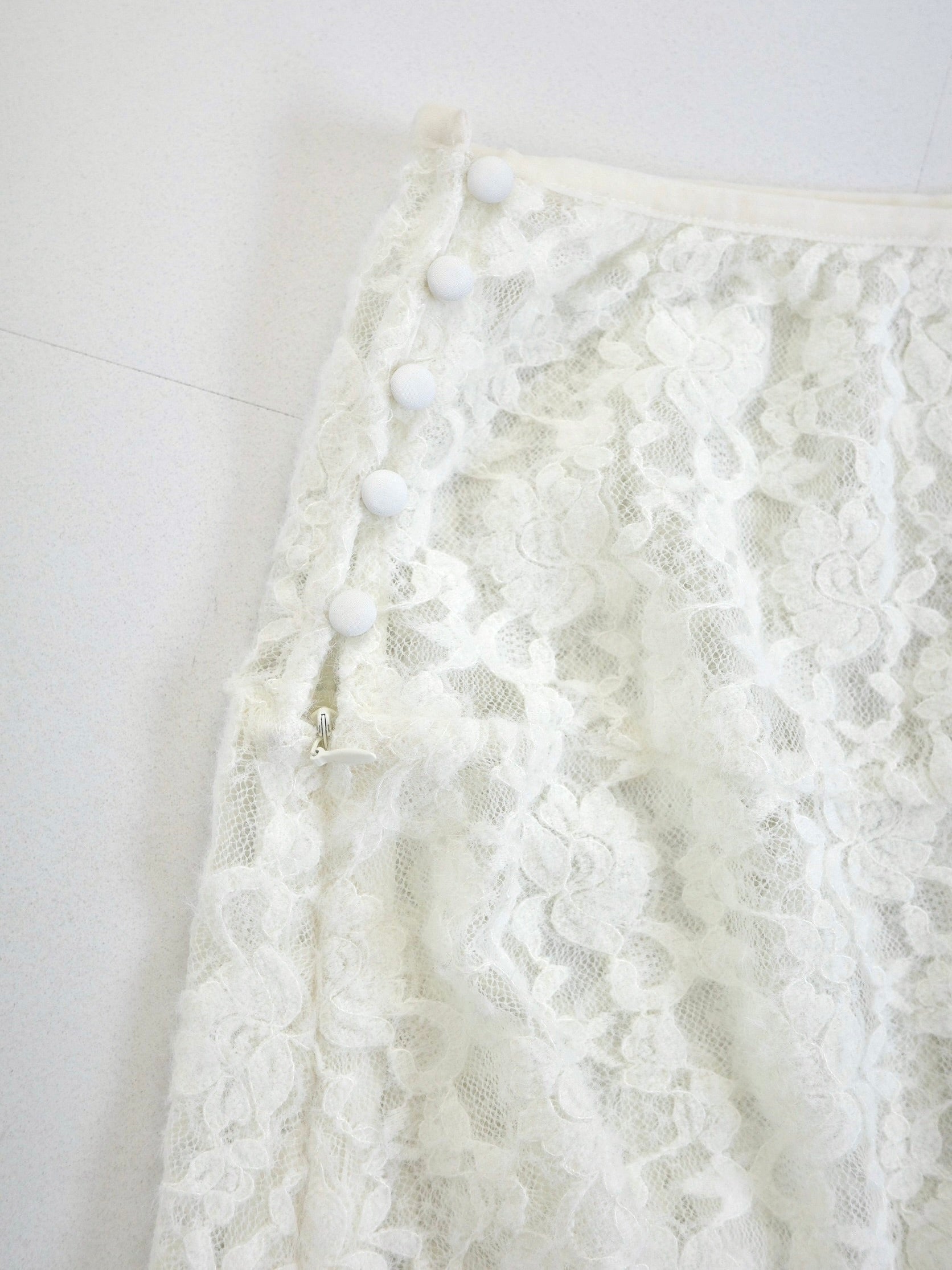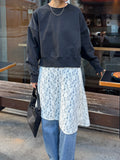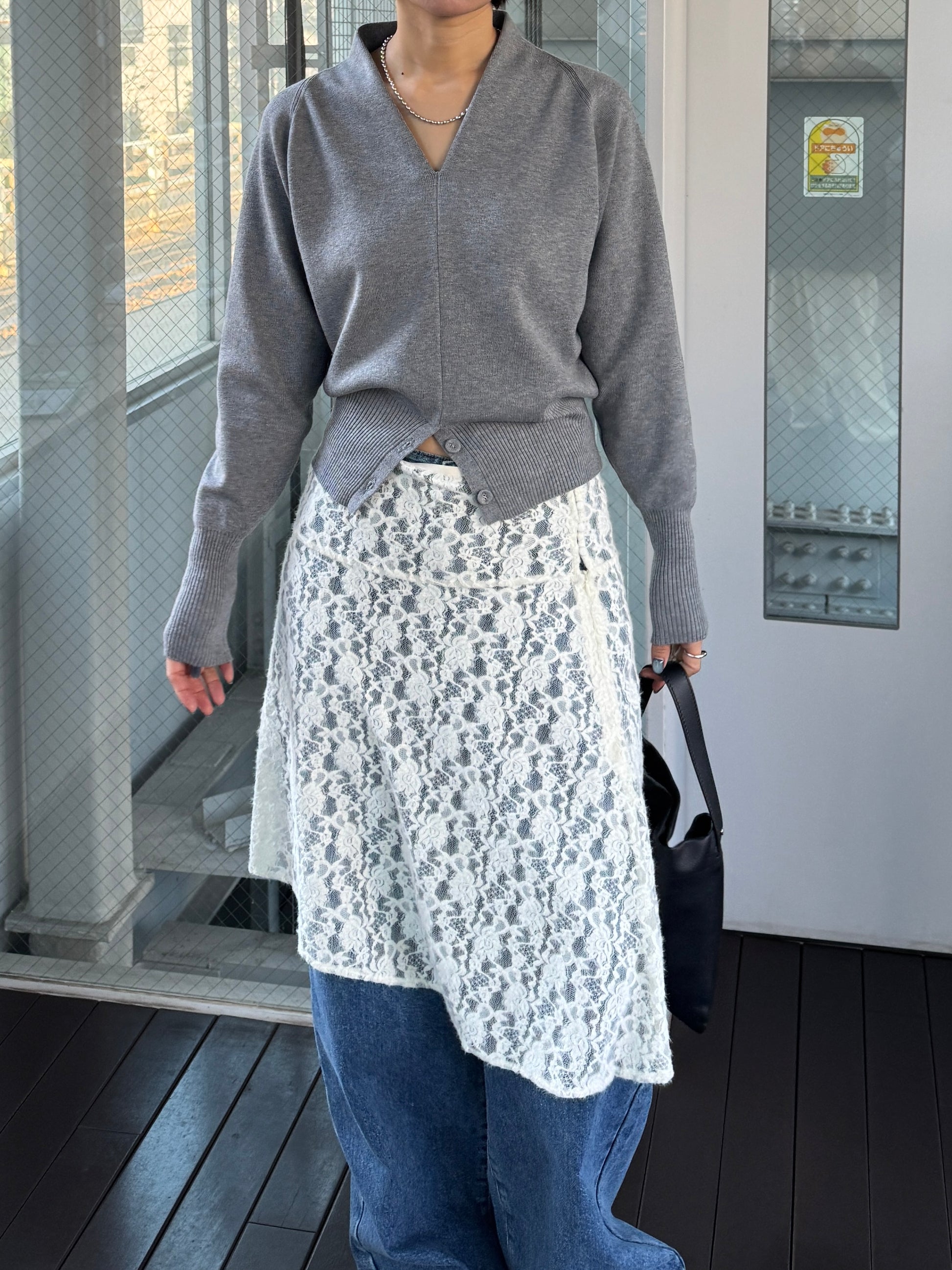 繊細なレース素材を使用しながらも、カジュアルなスタイリングに取り入れやすいレーススカート。 裾はアシンメトリーなデザインになっており、動くたびに表情が変わるのがポイント。 シンプルなコーディネートに合わせるだけで、さりげないアクセントをプラスしてくれます。 甘くなりすぎないレース感なので、スウェットやカットソー、デニムとのレイヤードスタイルとも相性◎ カジュアルなアイテムに合わせても程よく女性らしさを添えてくれる1枚。 春のデイリースタイルに取り入れやすく、スタイリングのの幅を広げてくれるアイテムです。