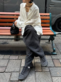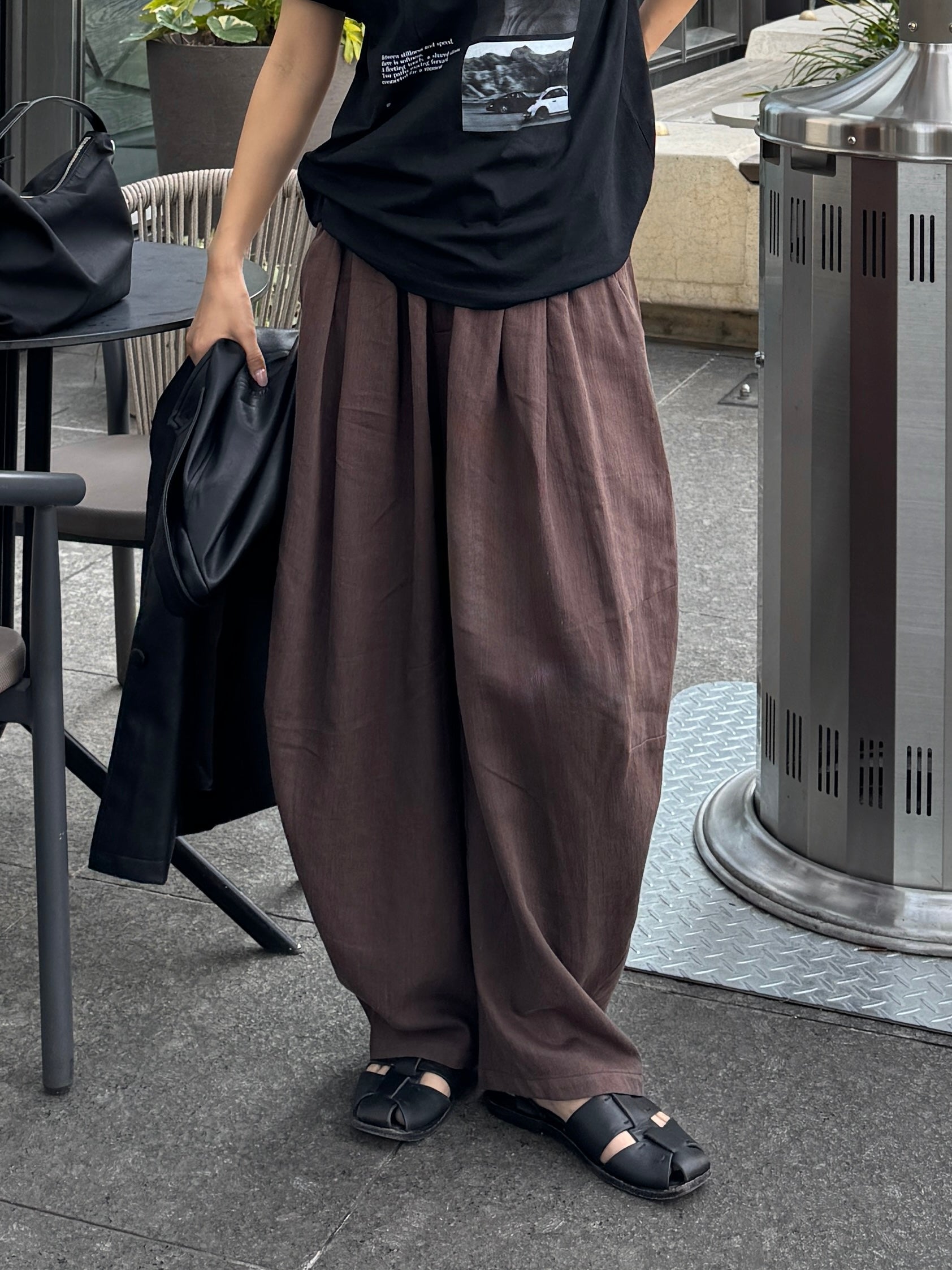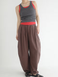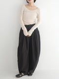 シンプルなトップスと合わせるだけで雰囲気の出る、大人のリラックススタイルにおすすめのラフパンツです。