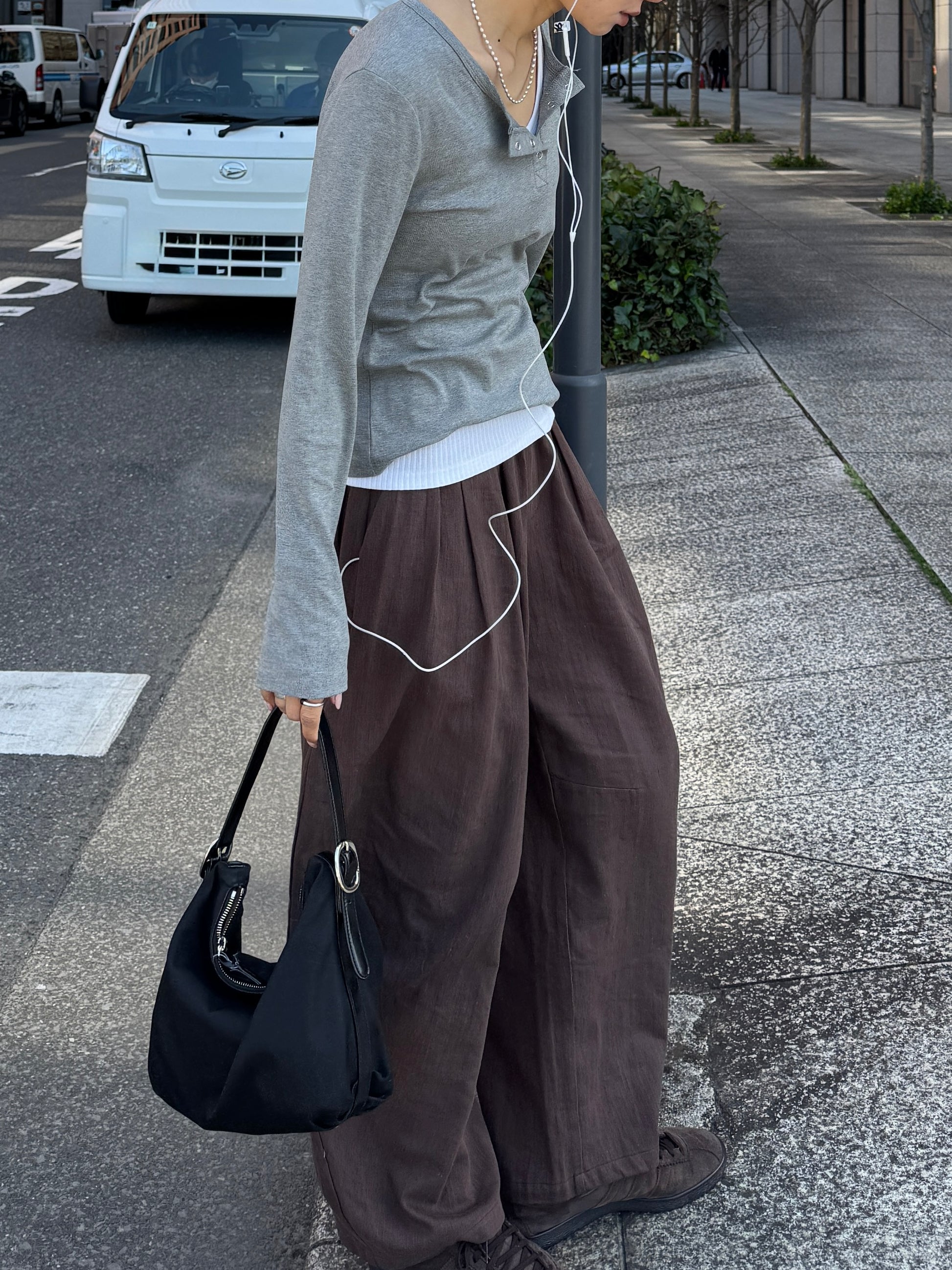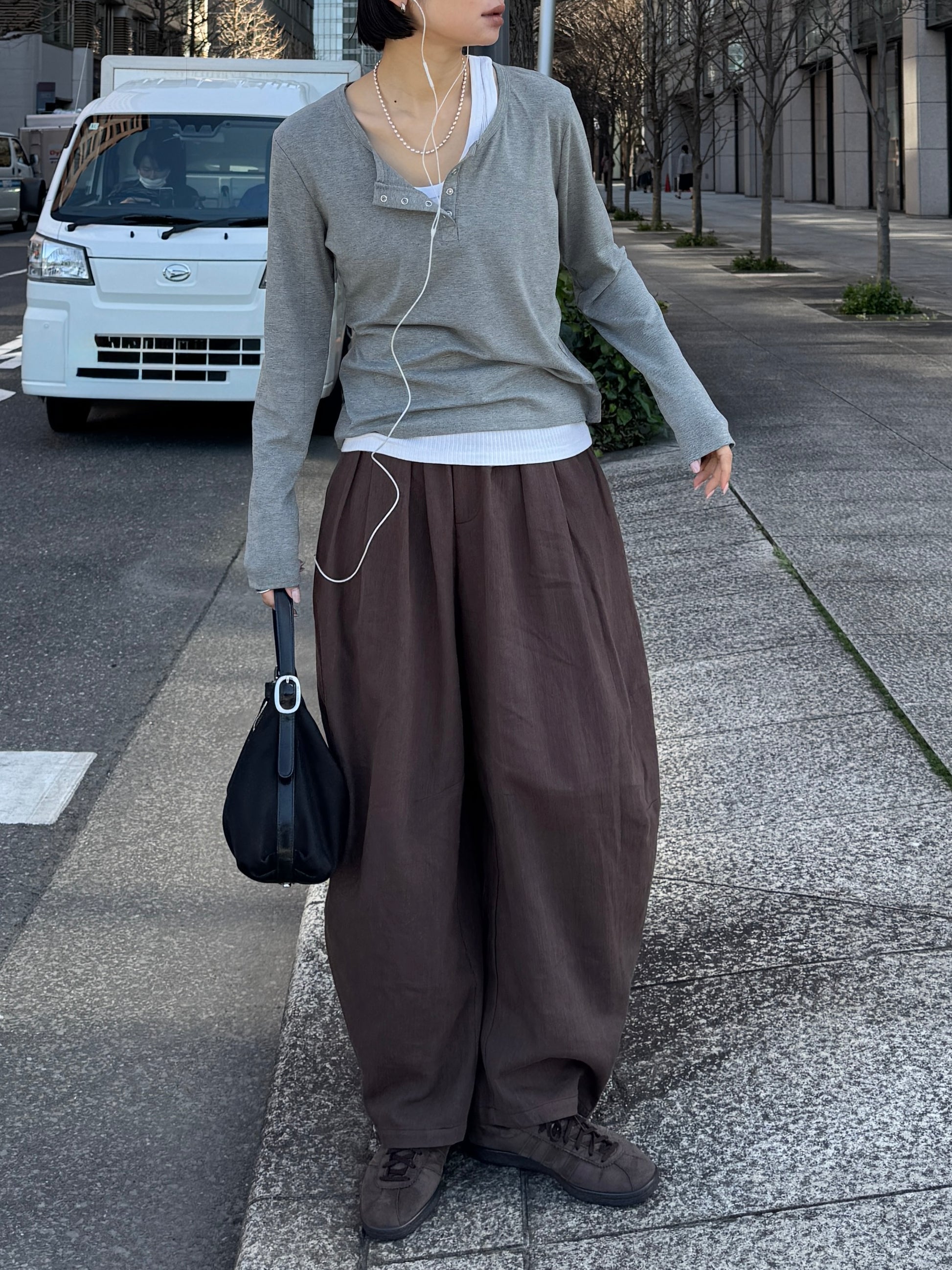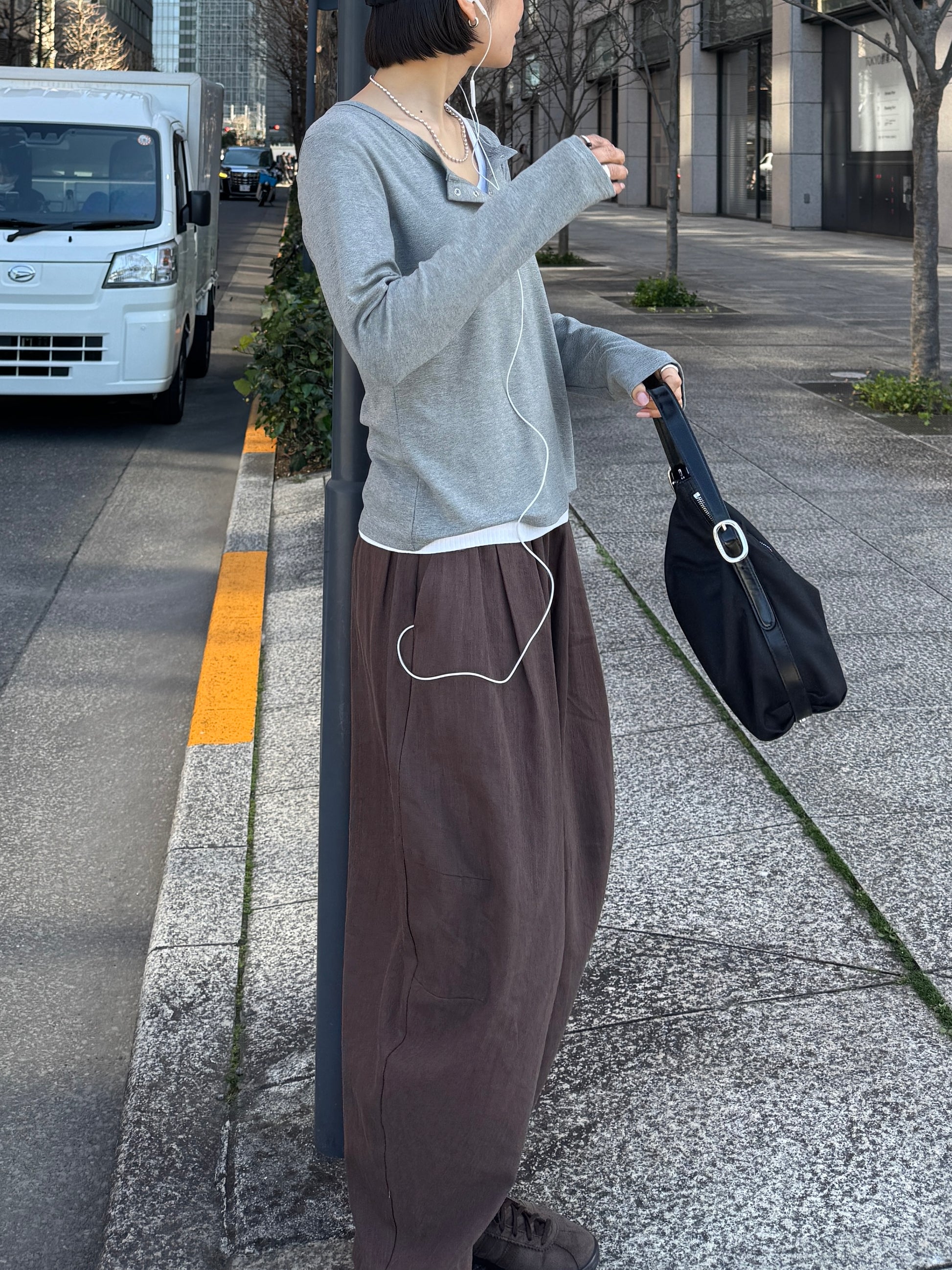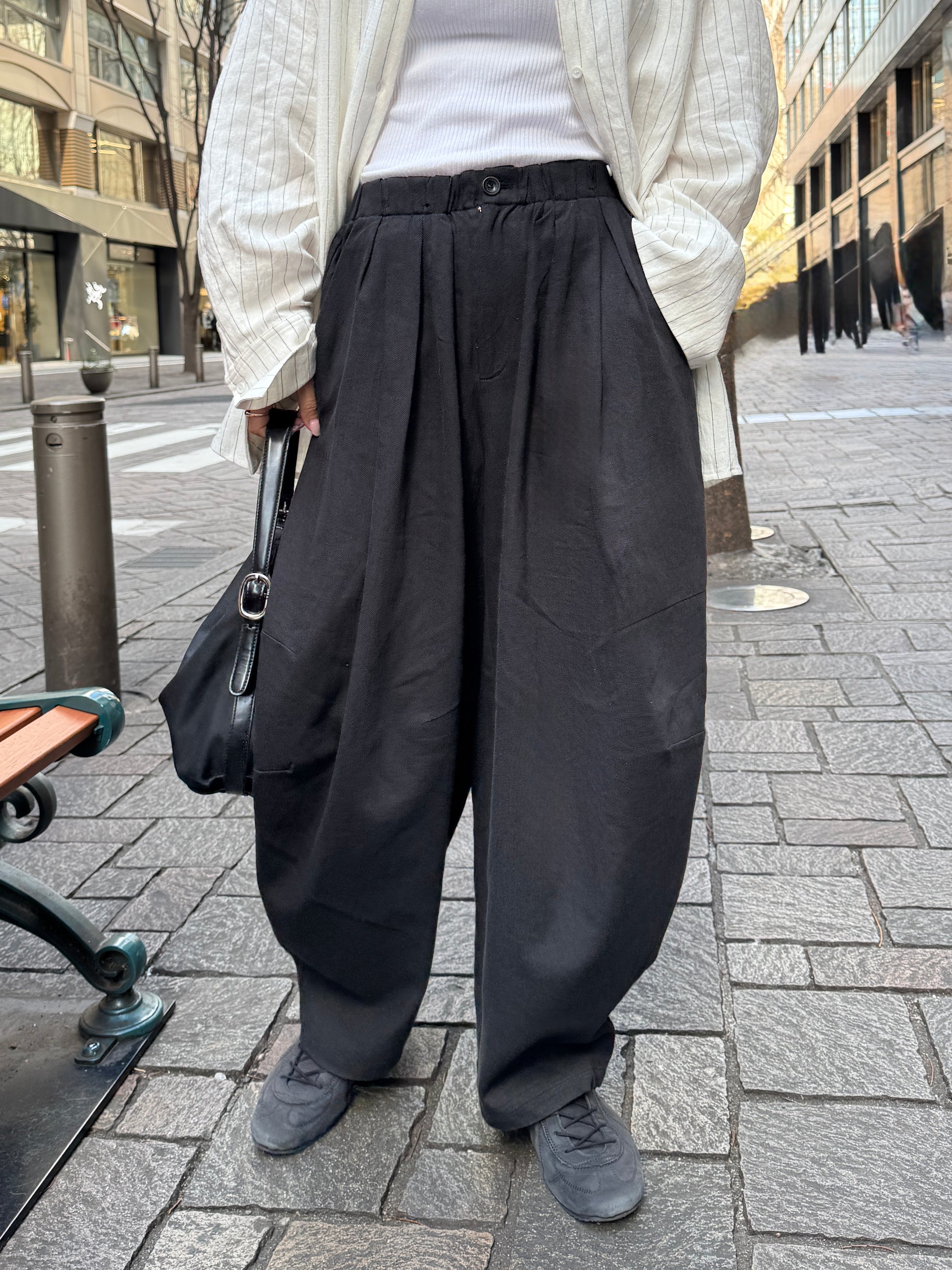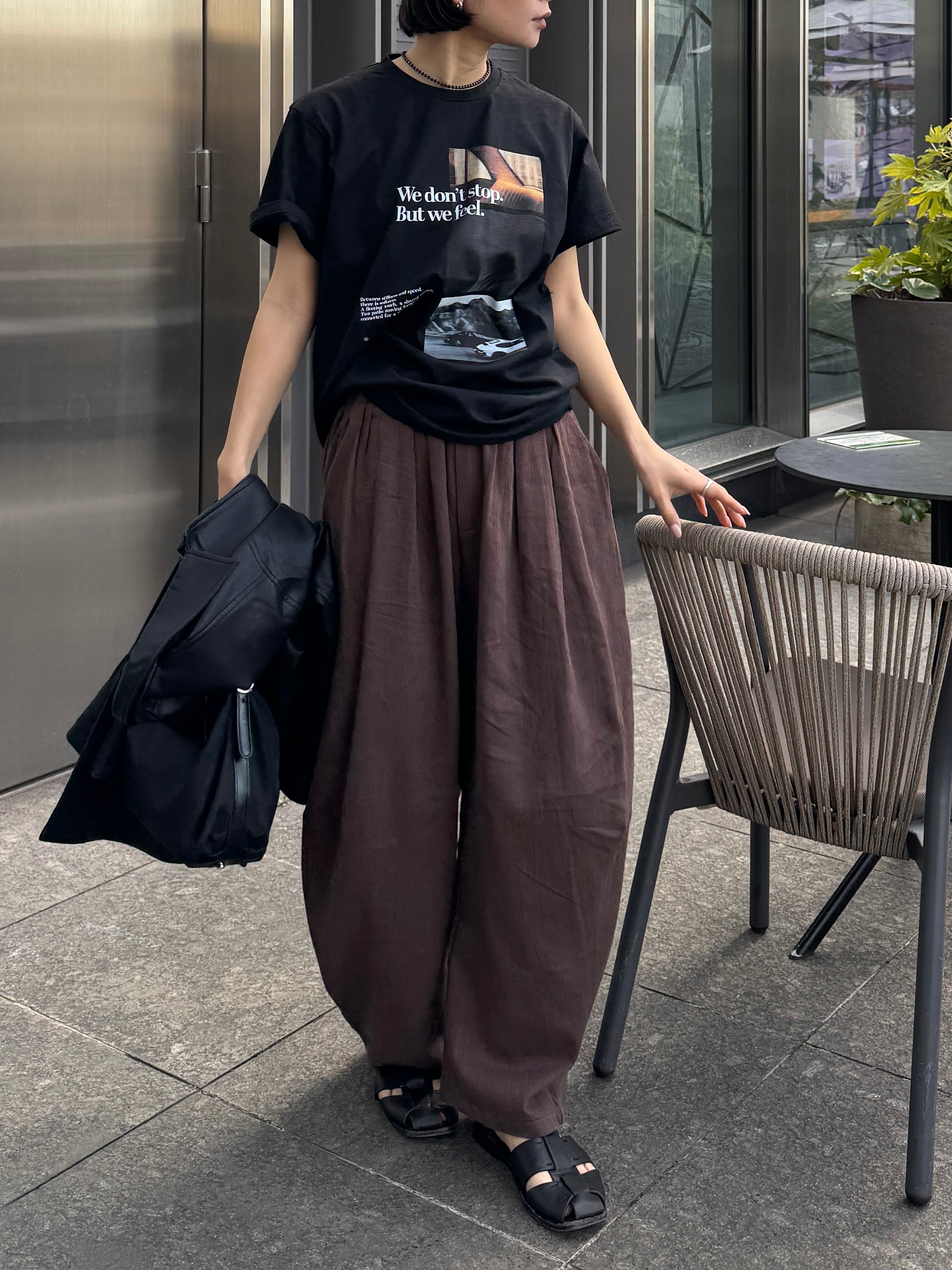 ゆったりとしたワイドラインが動きのあるシルエットを生み、スタイリングに程よい存在感をプラスします。