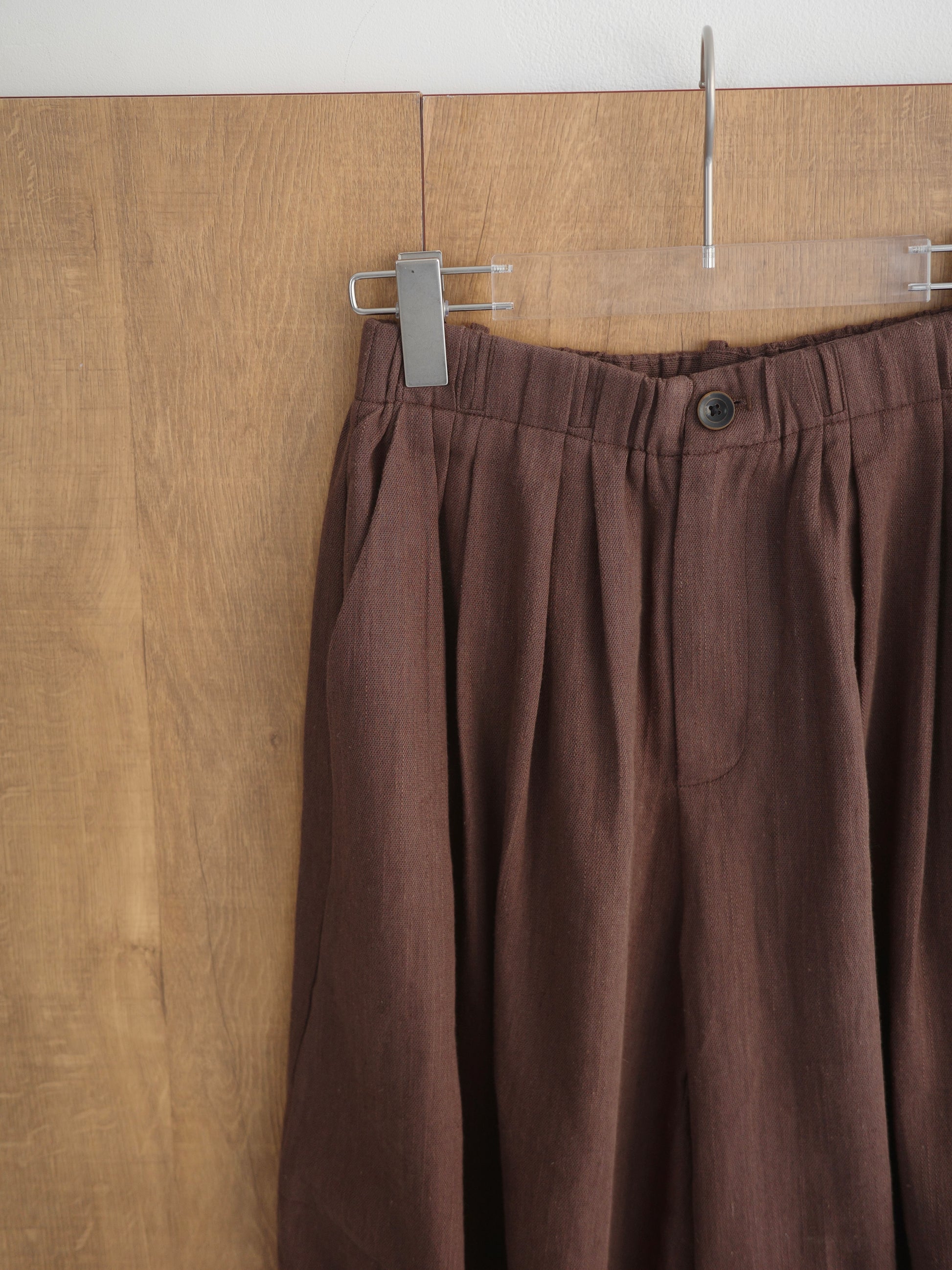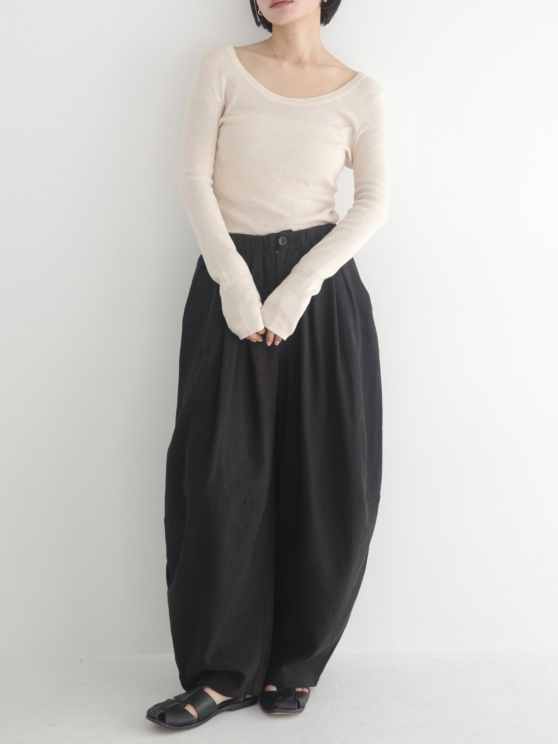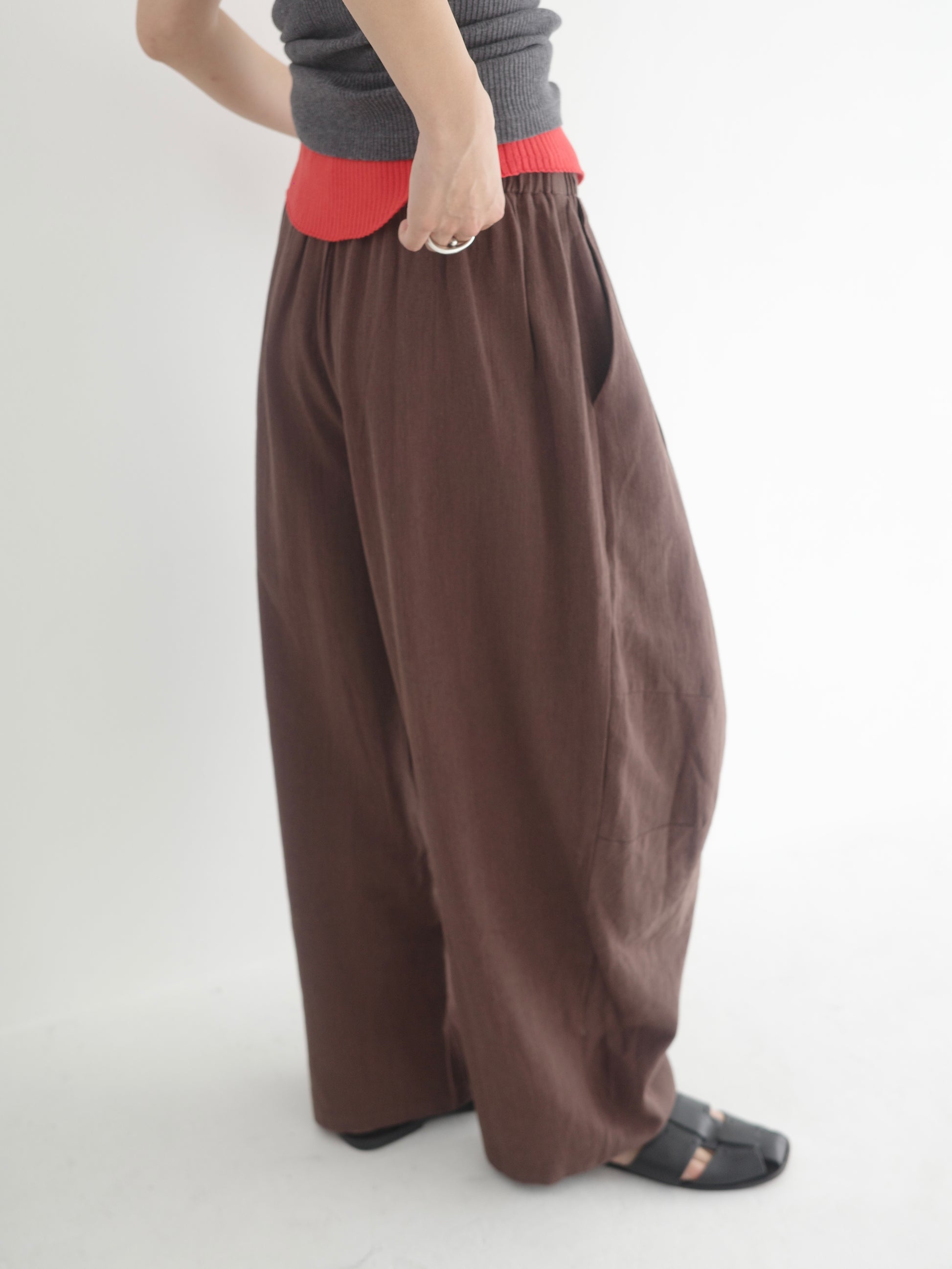 リネン混のナチュラルな風合いが魅力のワイドパンツ。さらりとした軽やかな素材感で、これからの季節にも快適に着られる1本です。