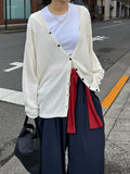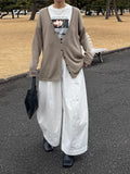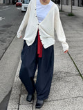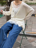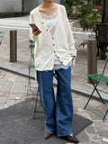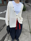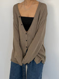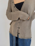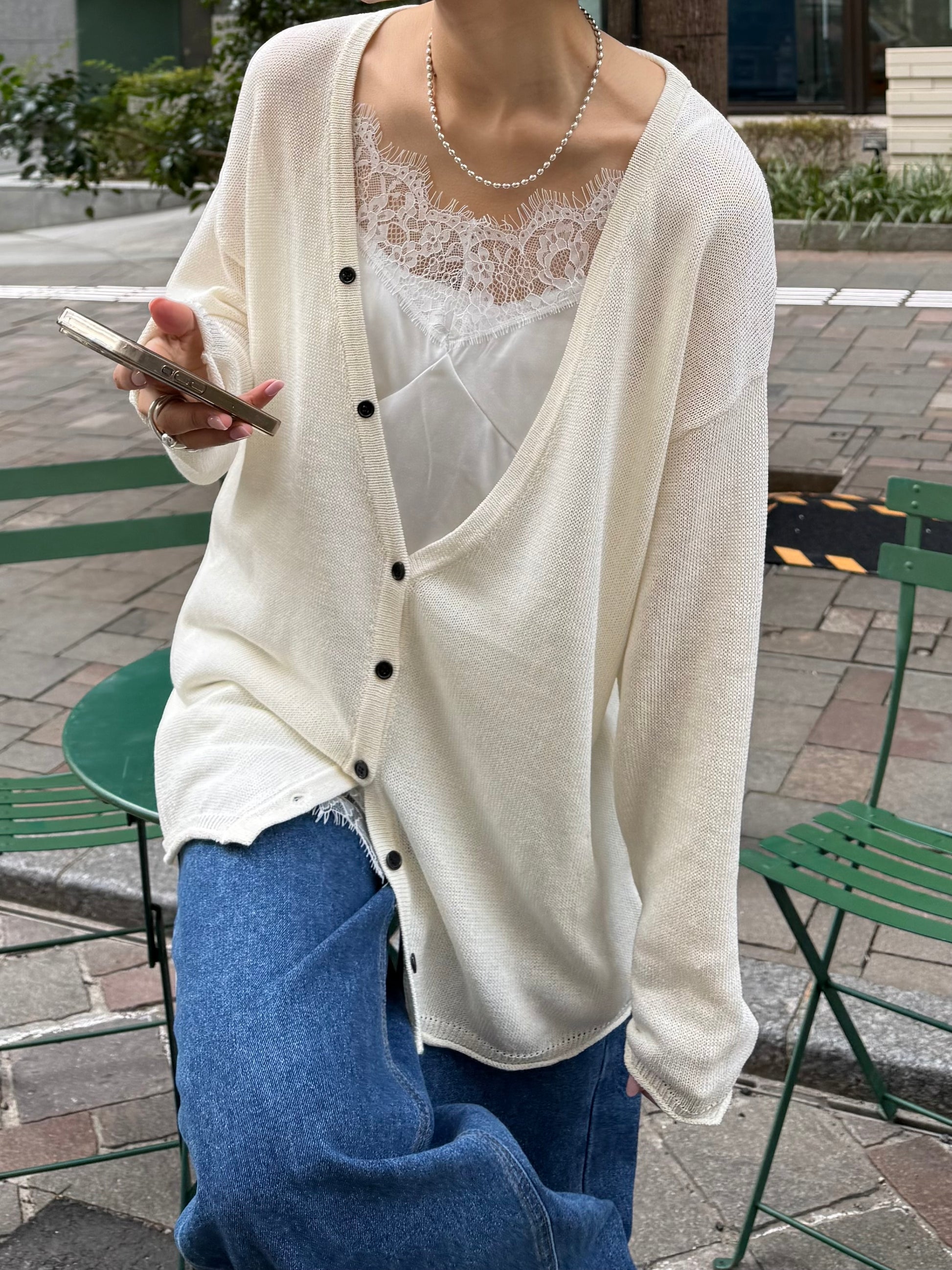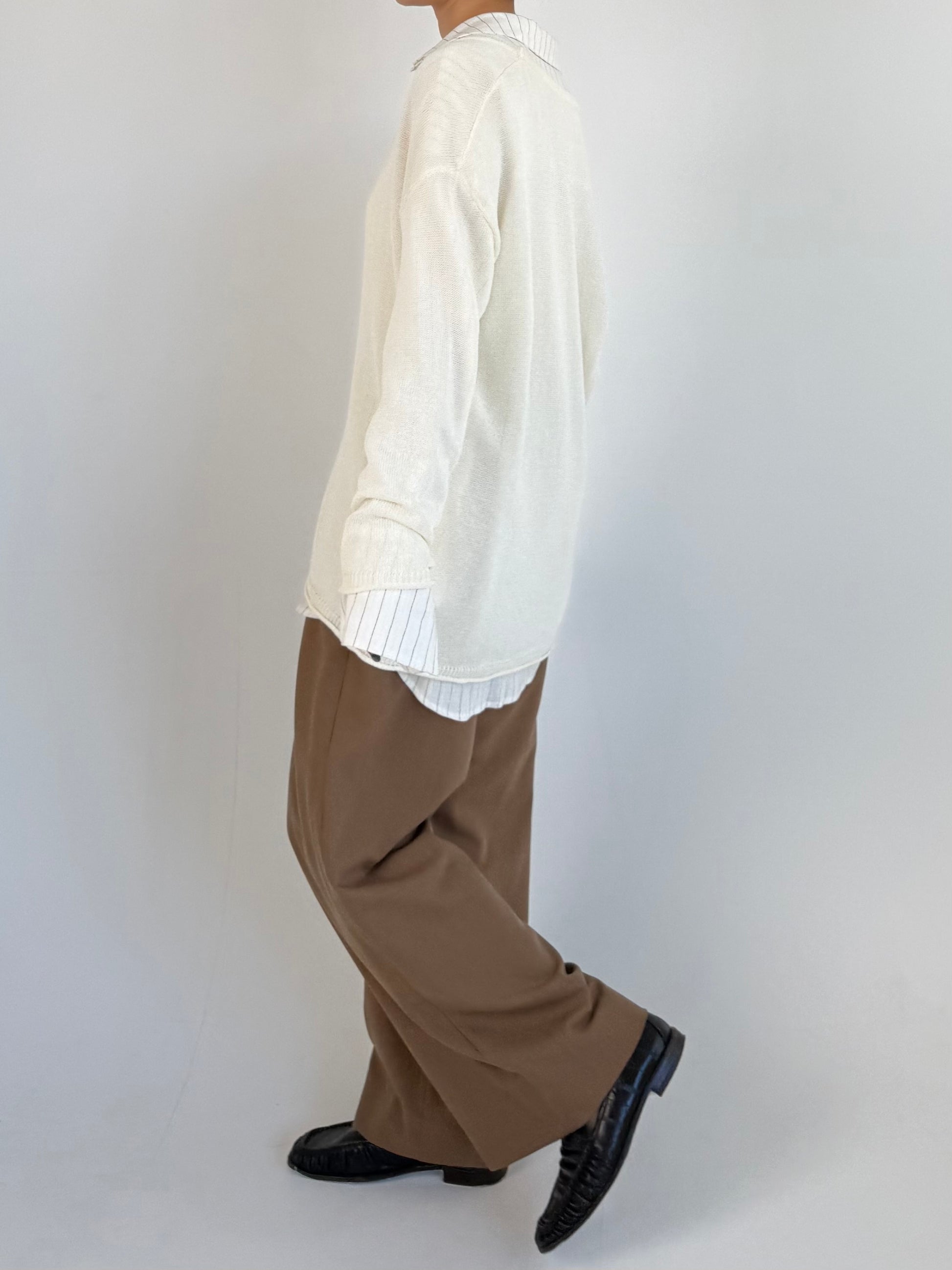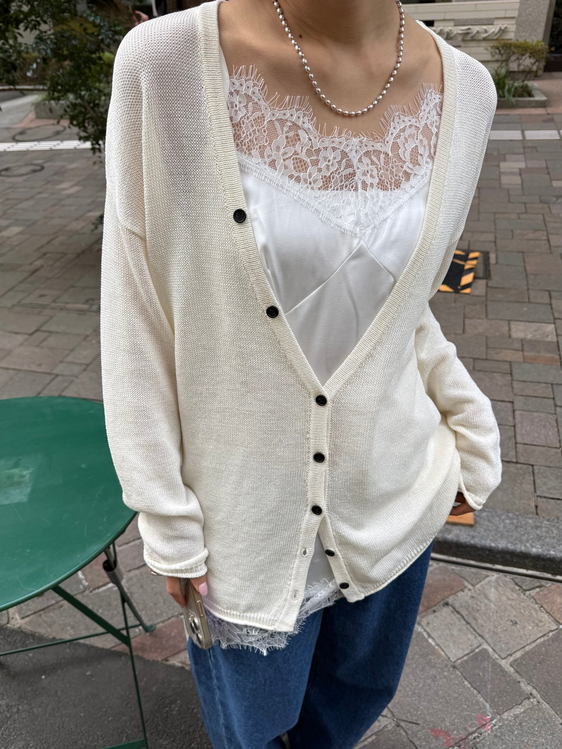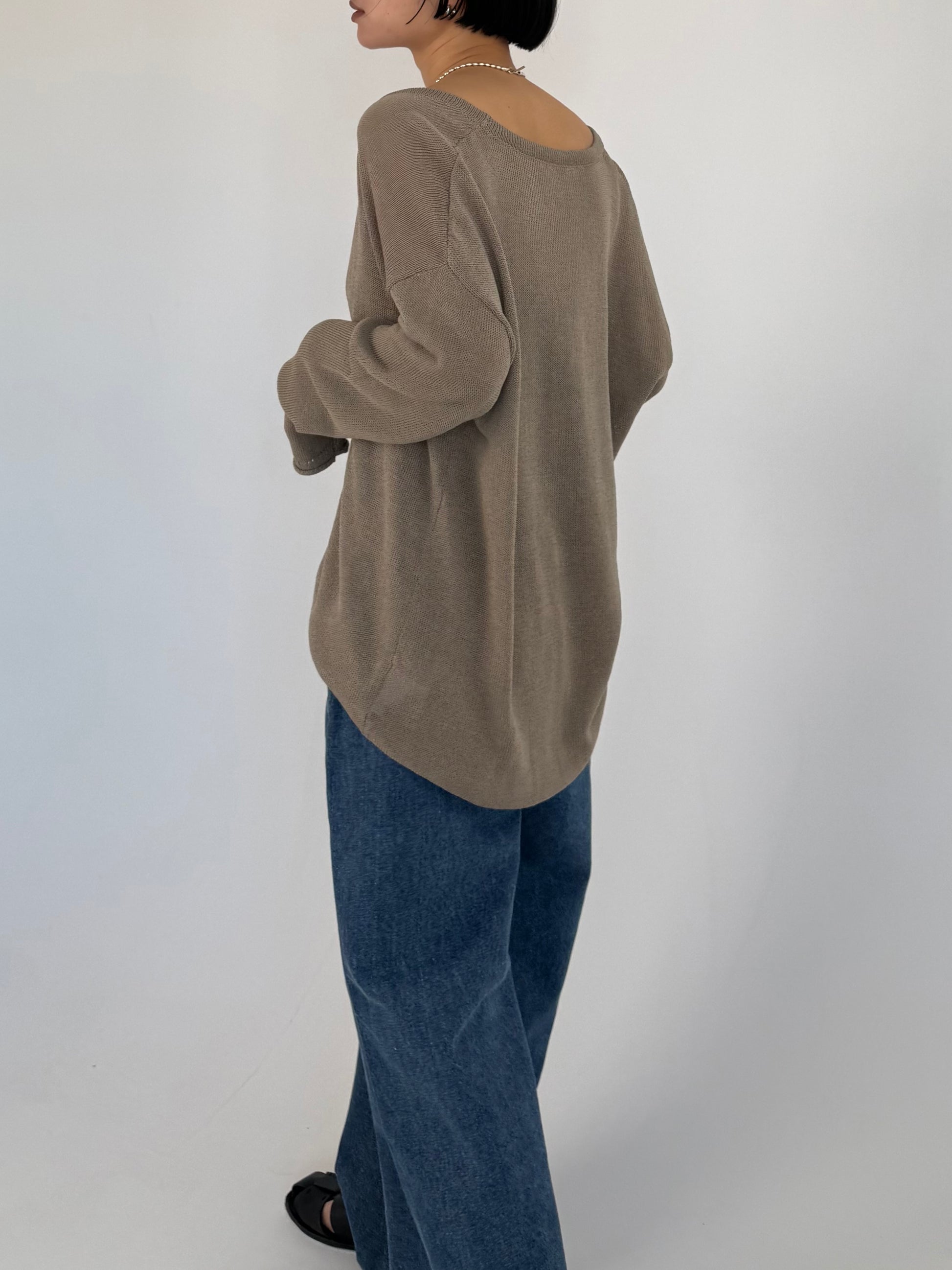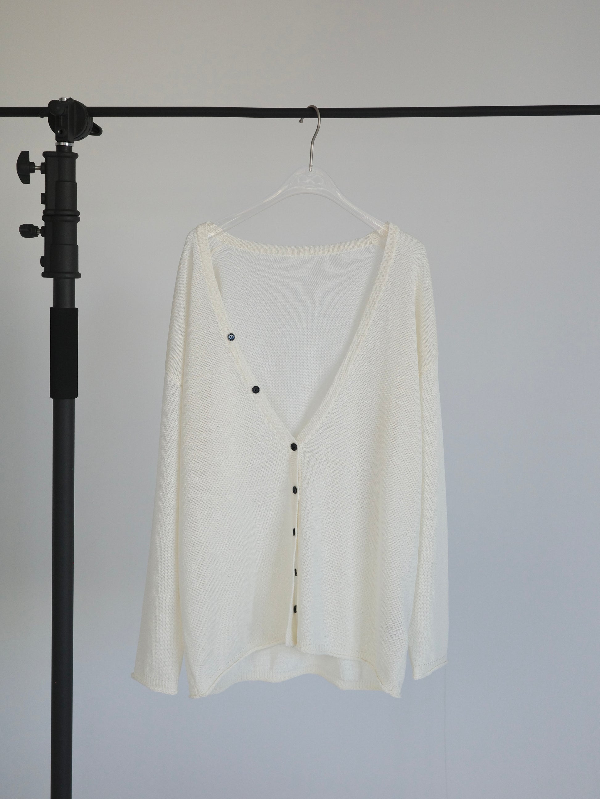 ざっくりと深めに開いたVネックと、華奢なボタンデザインがさりげないアクセントに。
