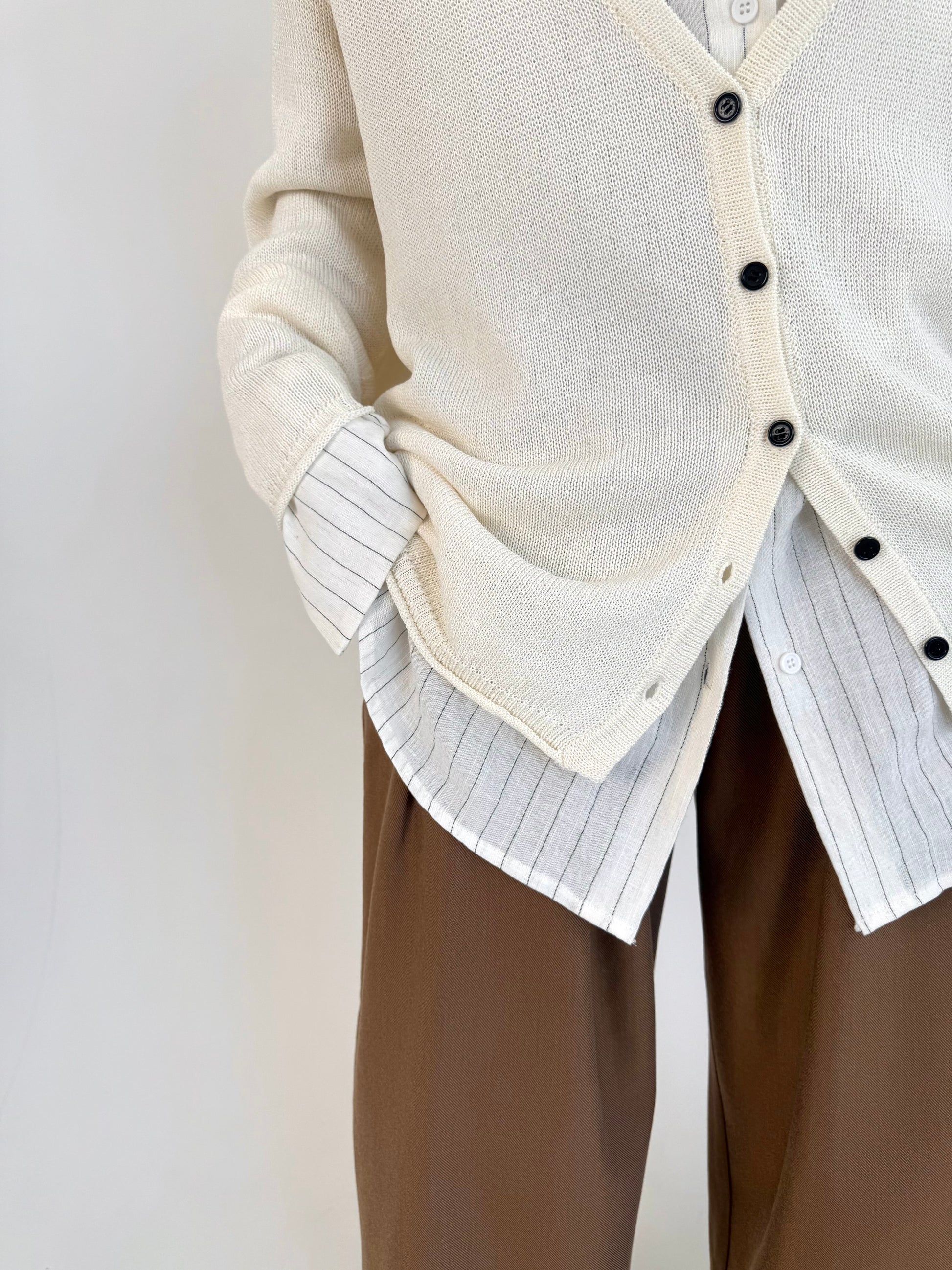 テイストを選ばず、デイリーに取り入れやすい大人のためのカーディガンです。