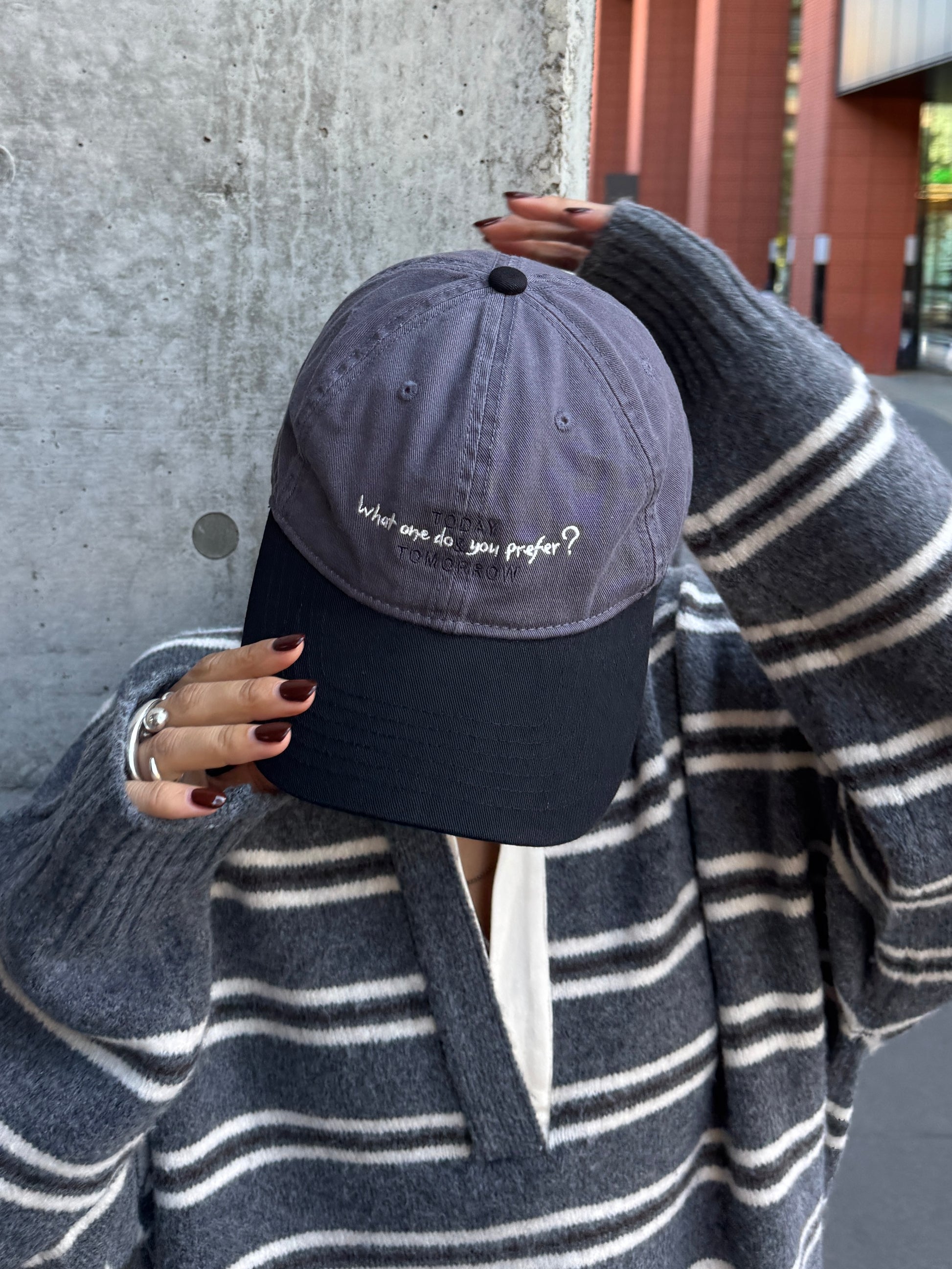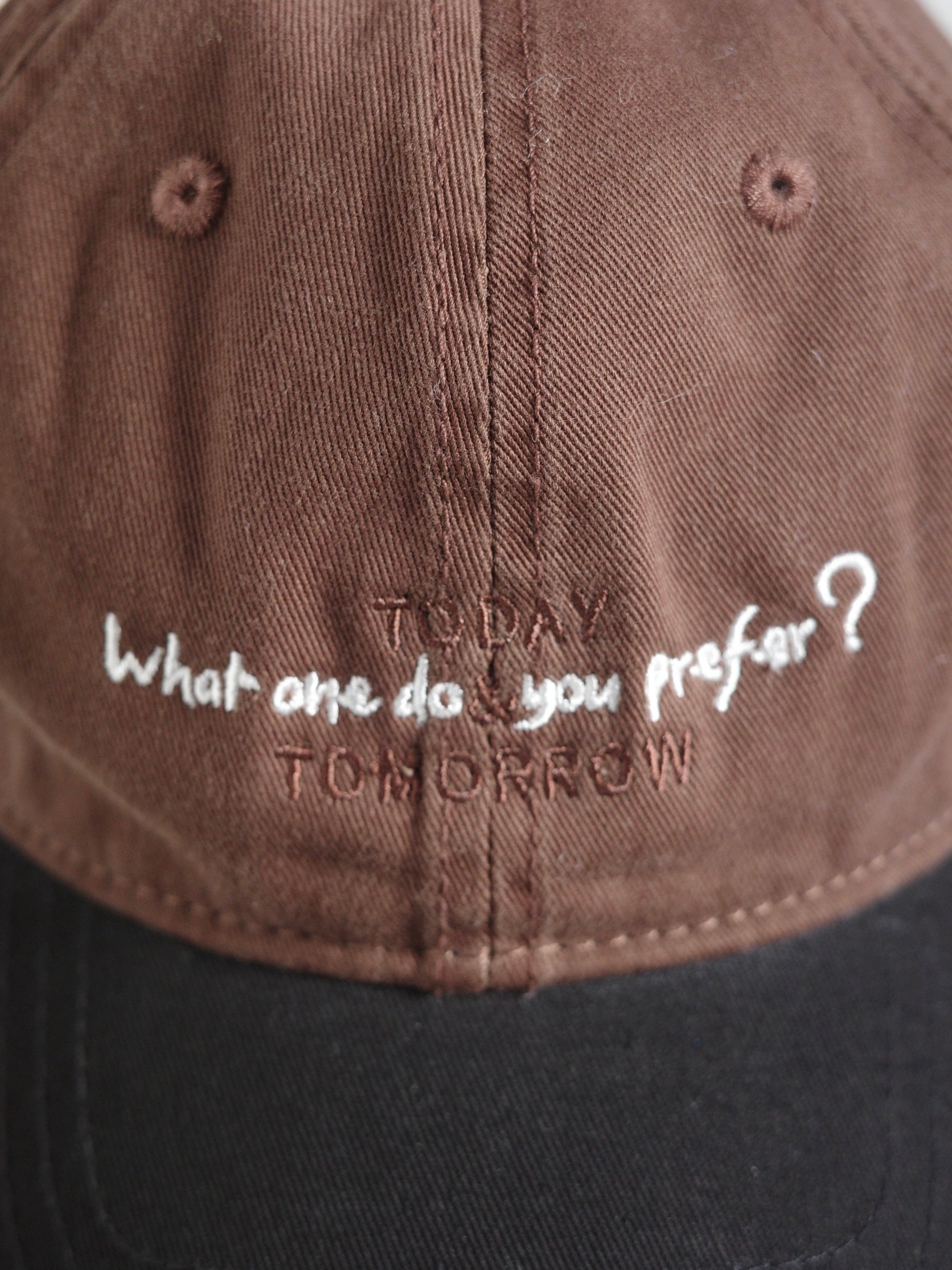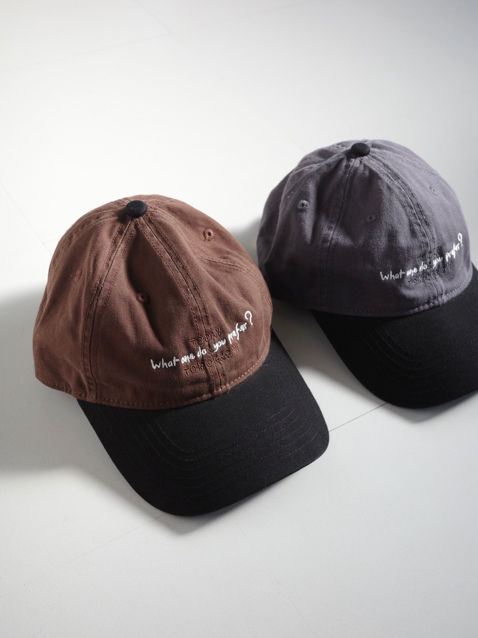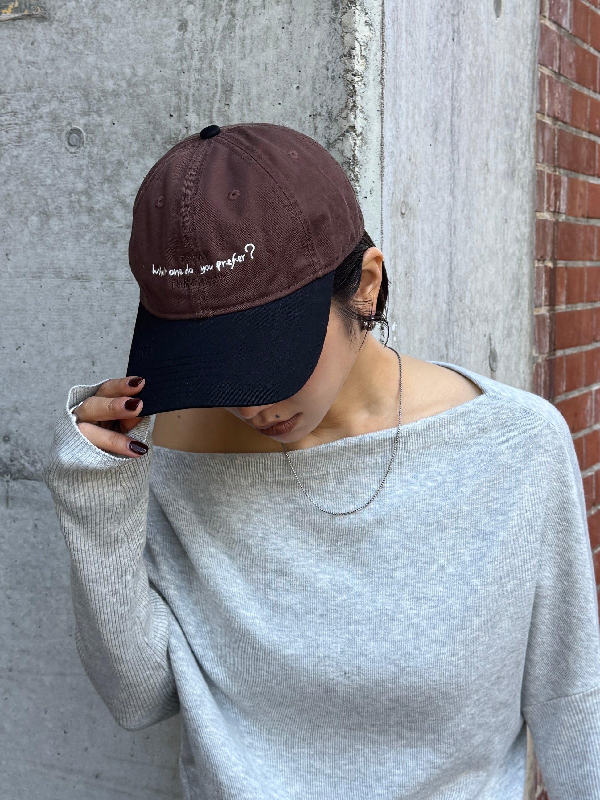 シンプルなコーデに程よい遊び心を添えてくれる、オリジナル刺繍入りキャップ。 ラフになりすぎず大人でも取り入れやすいカラーリングが魅力で、落ち着いたブラウン・グレーのボディにブラックのツバを合わせた絶妙なバイカラー仕様。 程よいウォッシュ感のあるコットンツイル素材が、こなれた雰囲気と柔らかさを演出してくれます。後ろにはアジャスター付きでサイズ調整も簡単◎ フロント刺繍は配色バランスにこだわりながら、馴染みの良いサイズ感で仕上げさりげないアクセントに。 日常のカジュアルコーデにはもちろんきれいめスタイルのハズしとしても、毎日に取り入れやすい大人の抜け感とセンスが詰まったアイテムです。