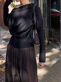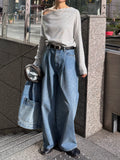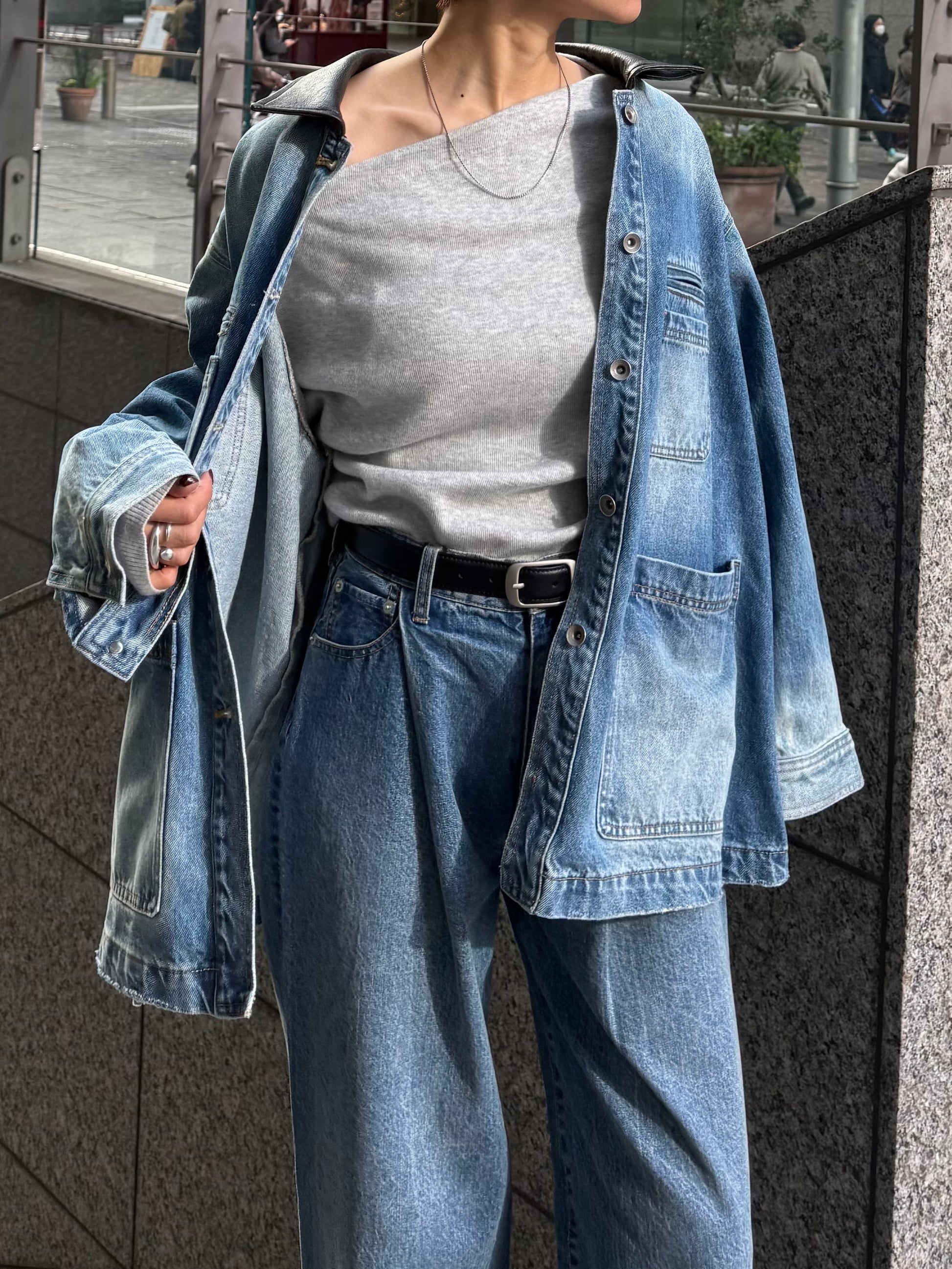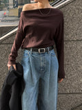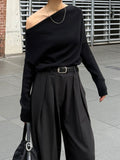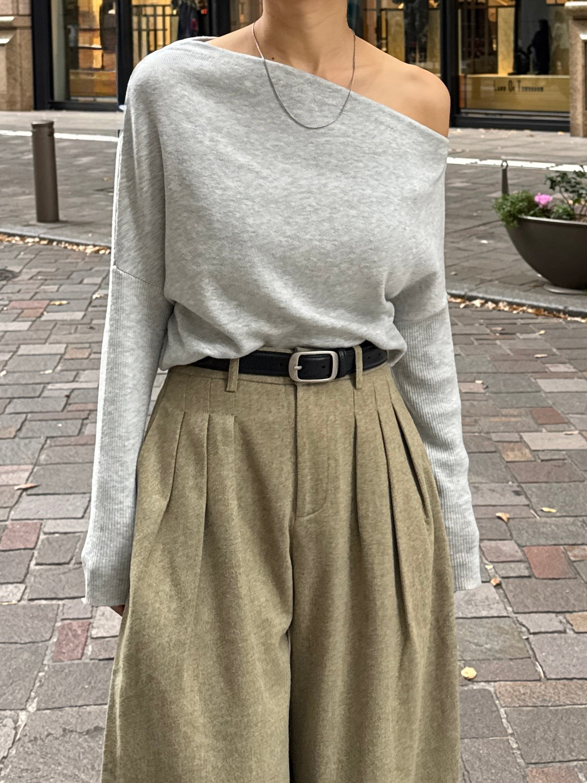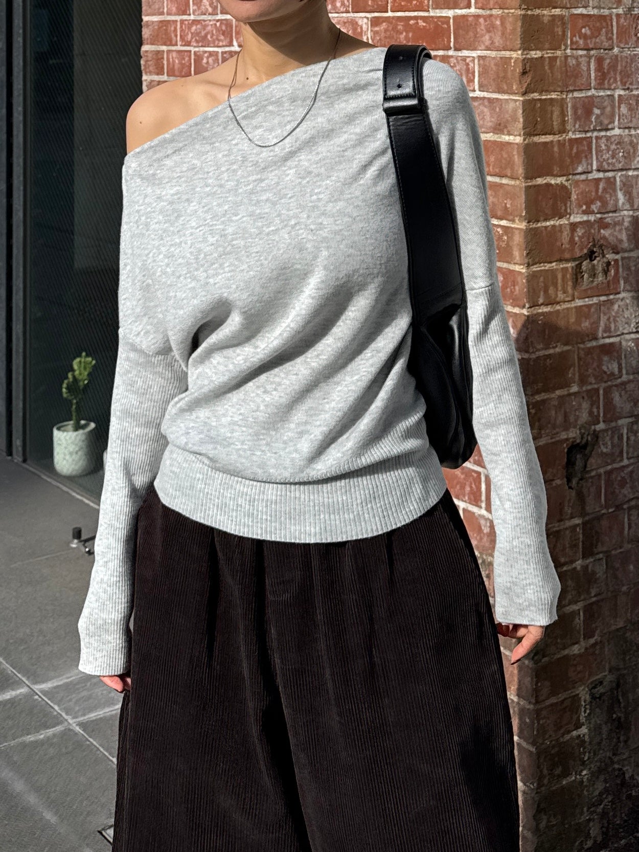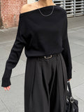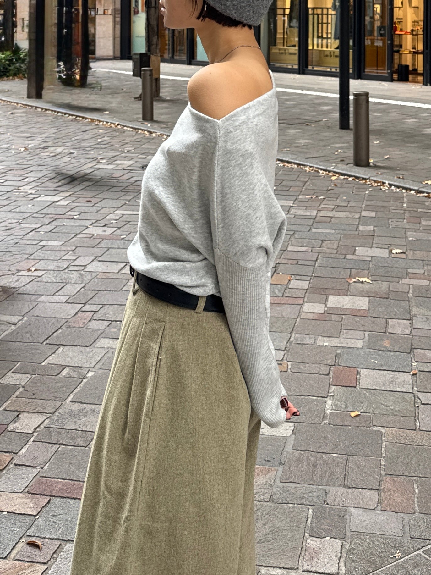 身体に沿って落ちるラインがきれいな、ワンショルダー仕様のニットトップス。 力を抜いたシルエットながら、着たときに自然と雰囲気の出る1枚です。 ネックラインは片側の肩がほどよく覗くカッティングにし抜け感がありつつ、肌見せが主張しすぎないバランスに仕上げています。 袖口と裾にはしっかり目のリブを効かせ、全体をすっきりと引き締めるディテールに。 薄すぎず厚すぎない素材感で、アウターの中にも収まりが良く冬場のレイヤードでも着膨れしにくいのも嬉しいポイントです。 カラーはアイボリーとネイビーの2色でワードローブに自然と馴染む落ち着いたラインナップです。