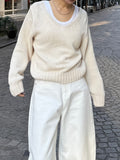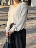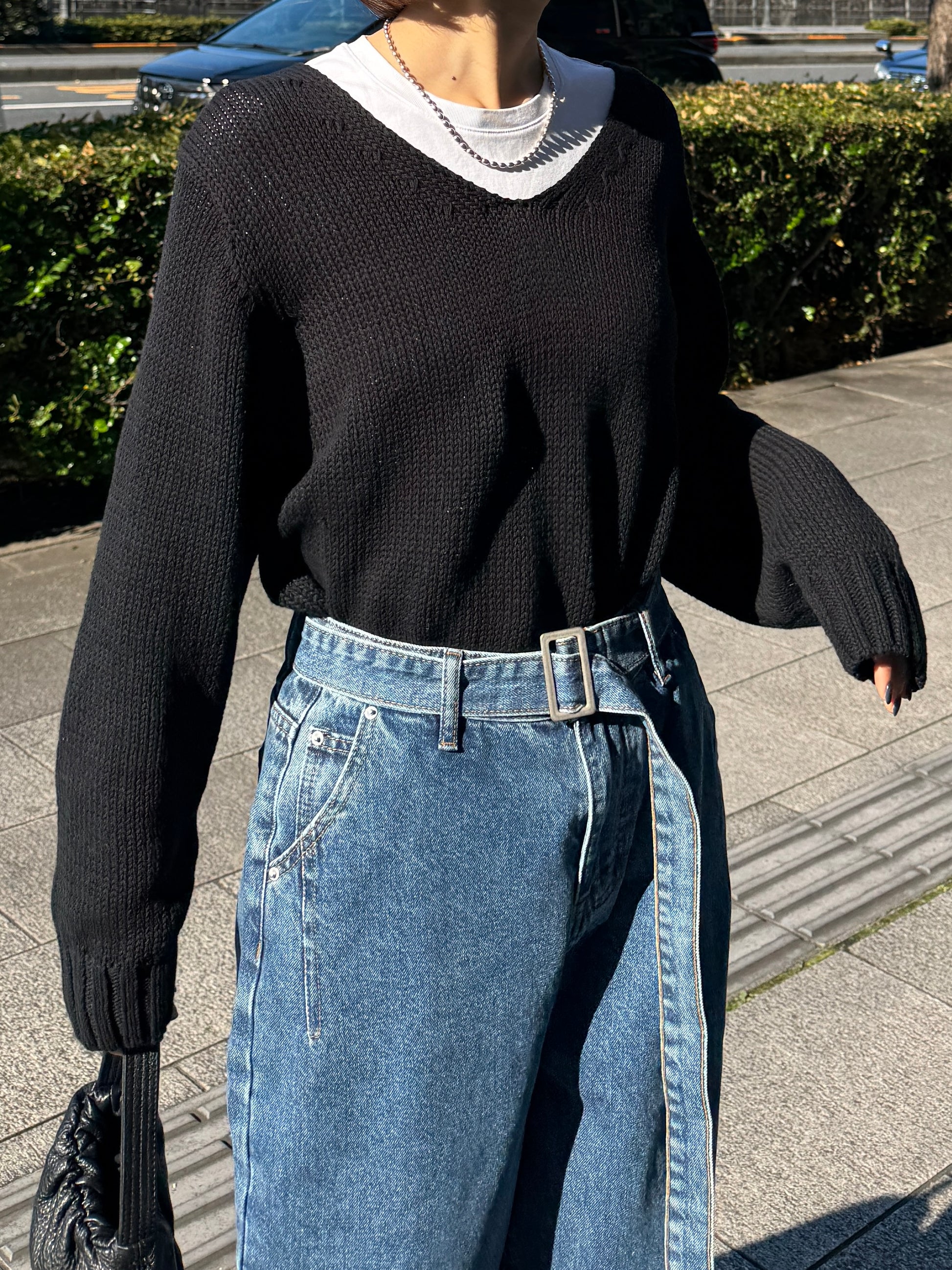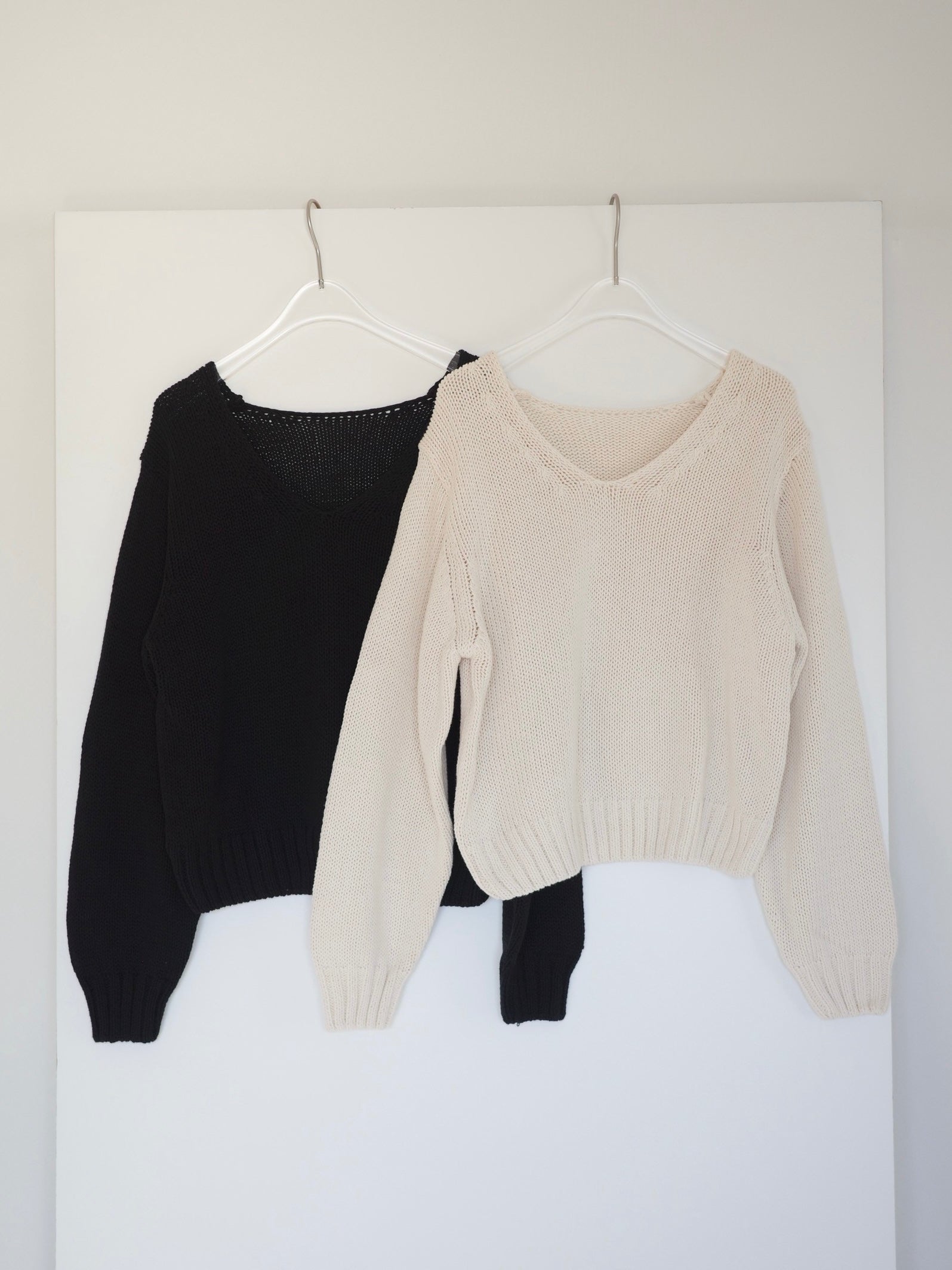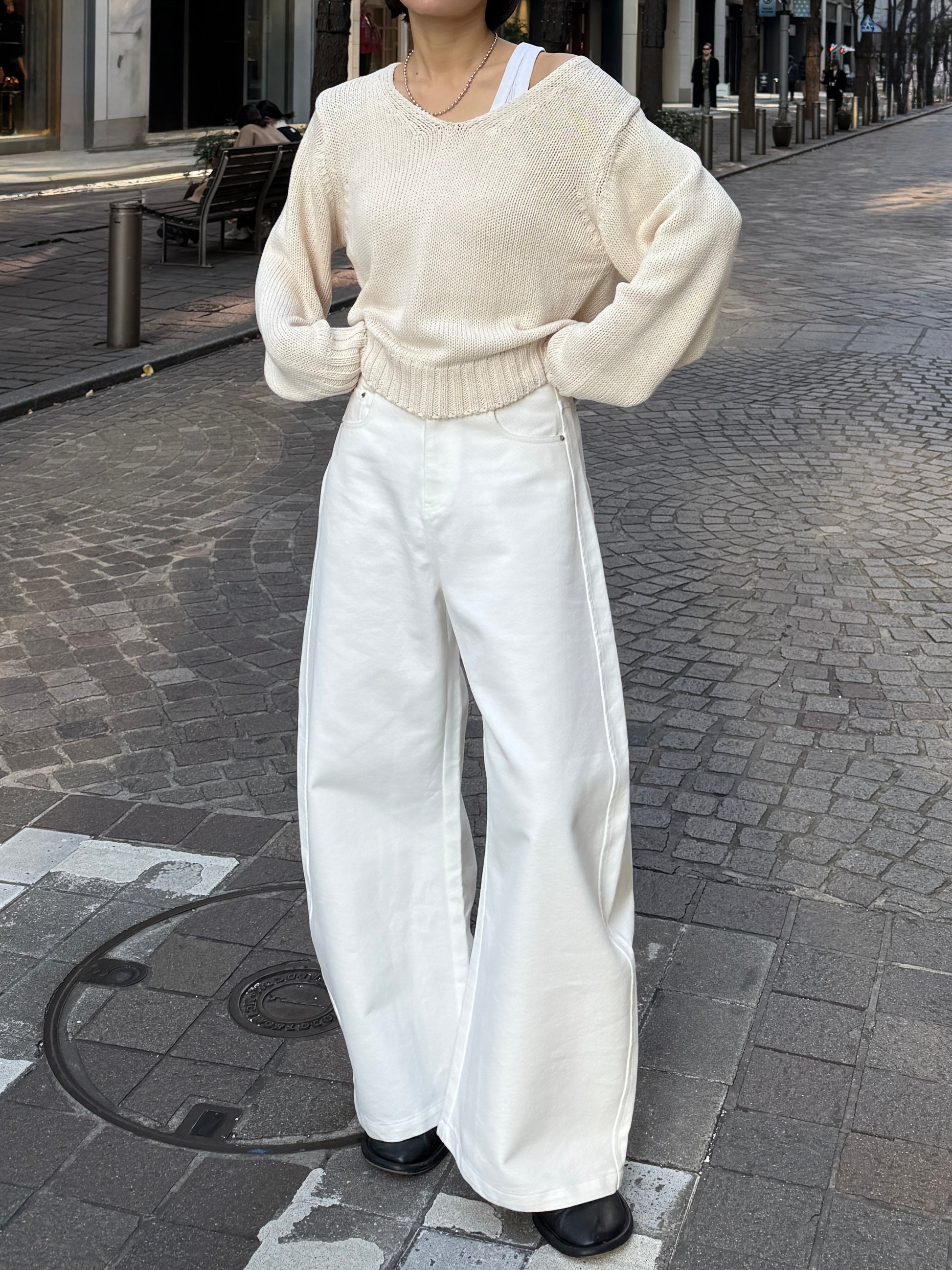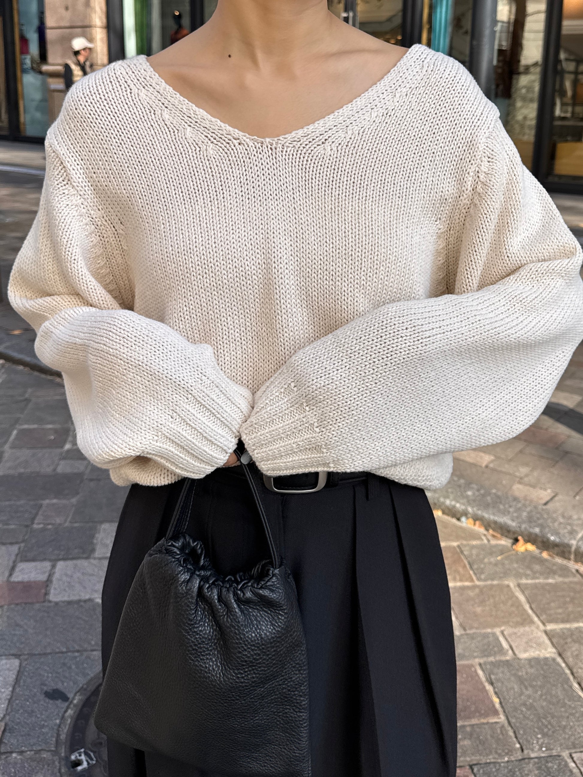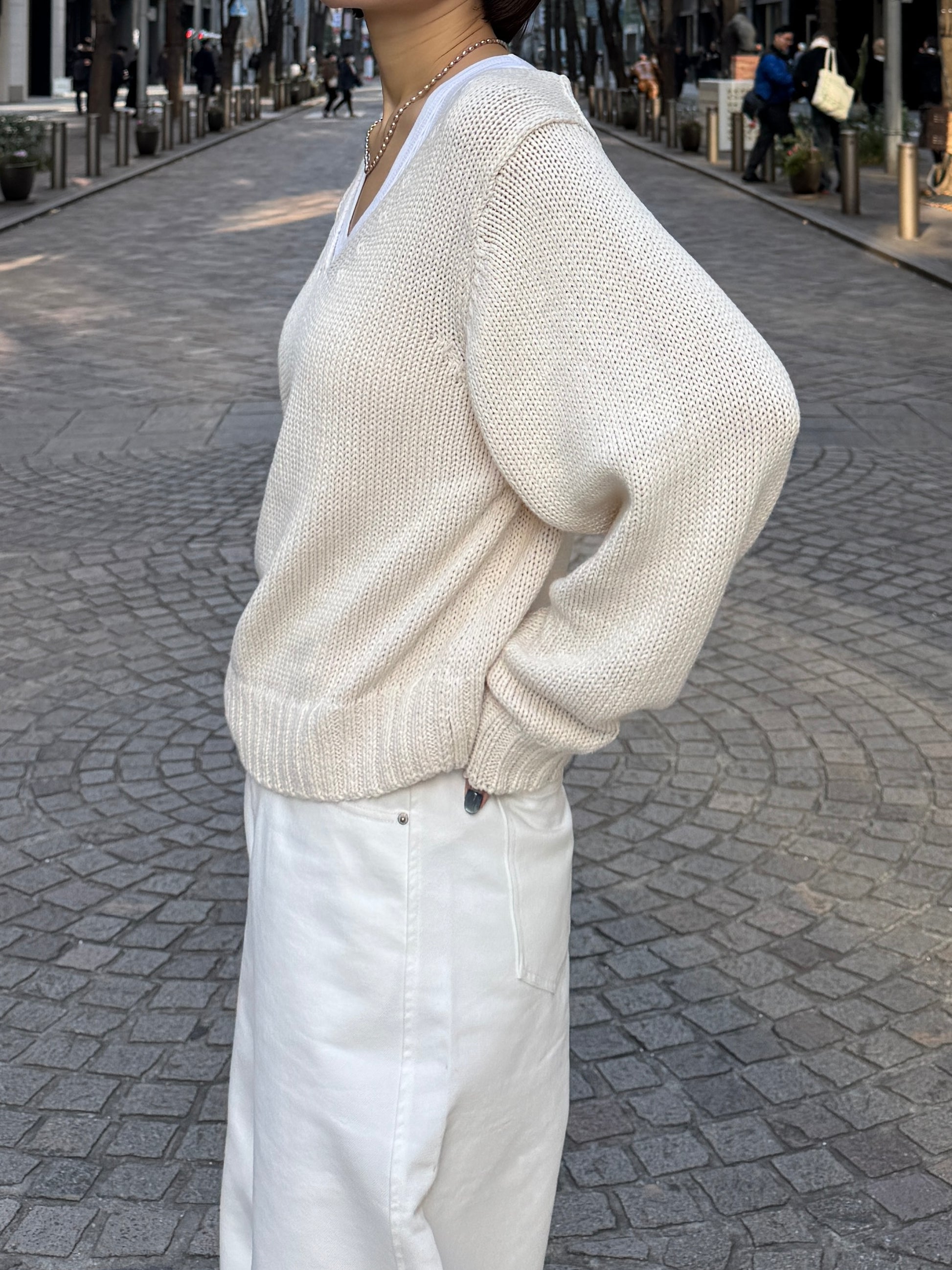 柔らかく軽やかな風合いが魅力のショート丈Vネックニット。