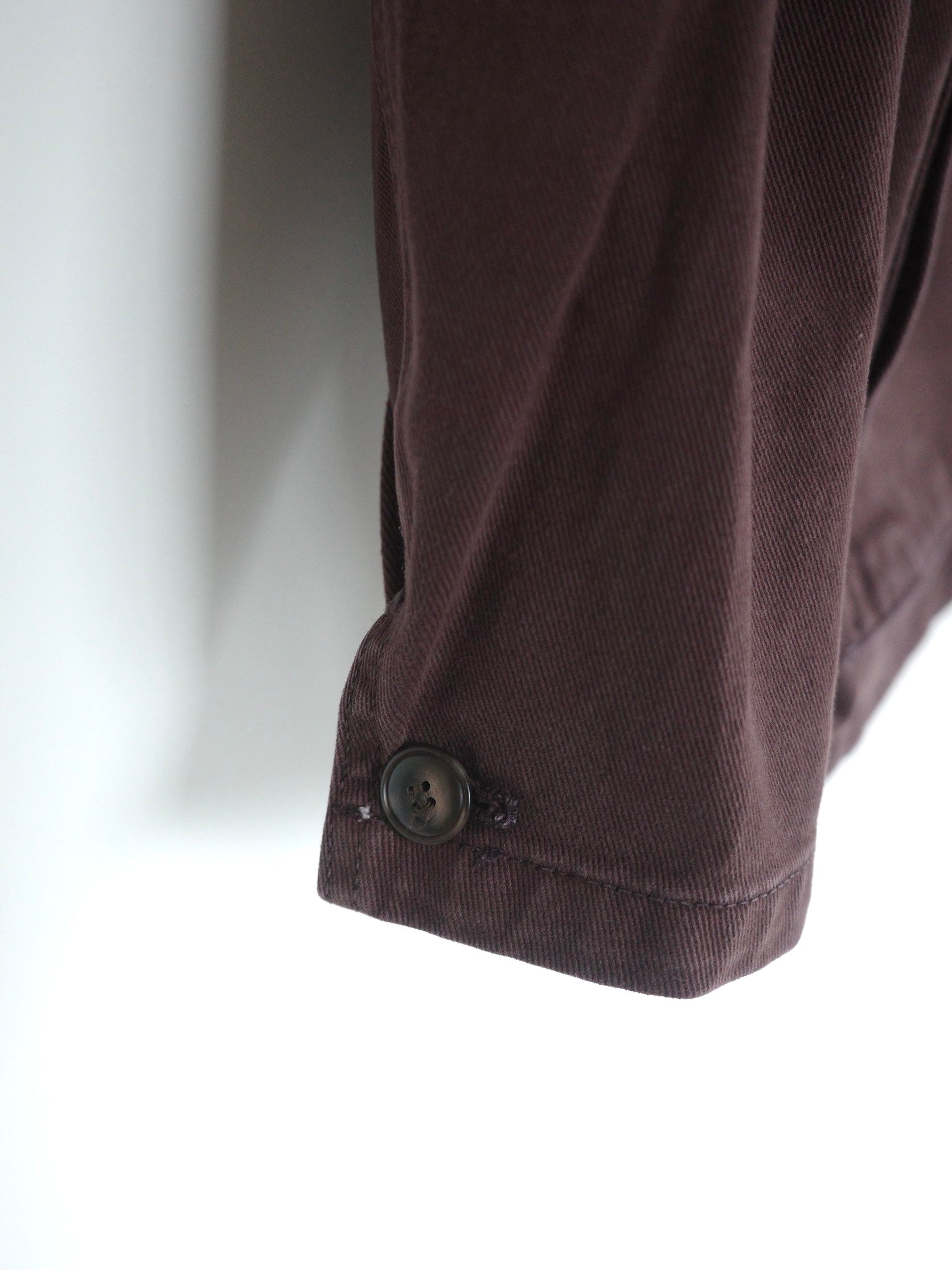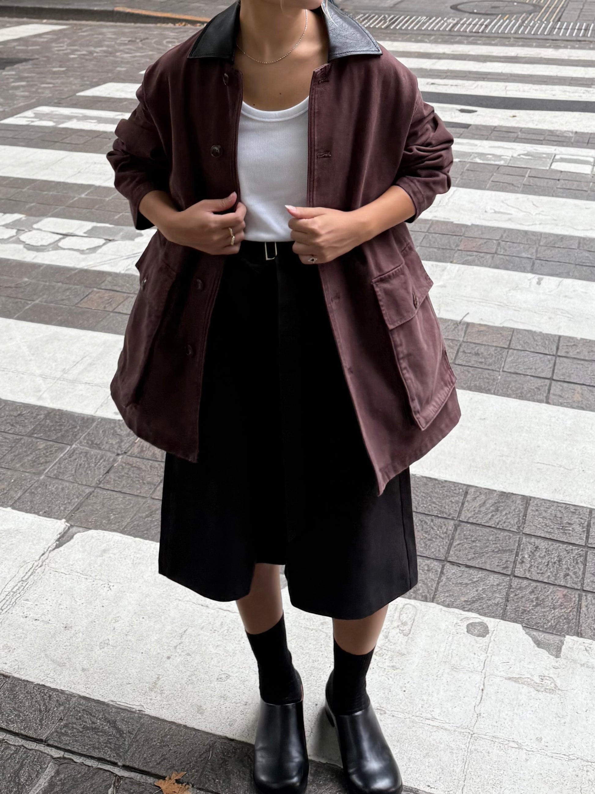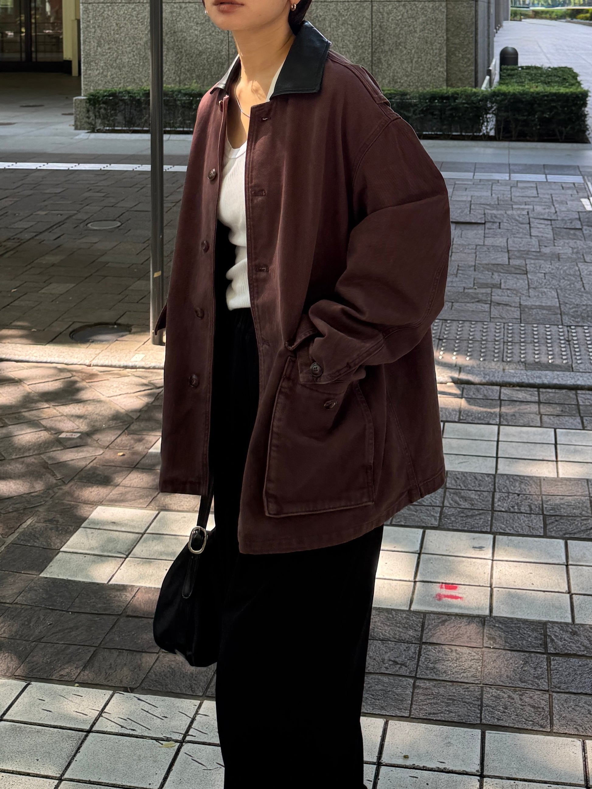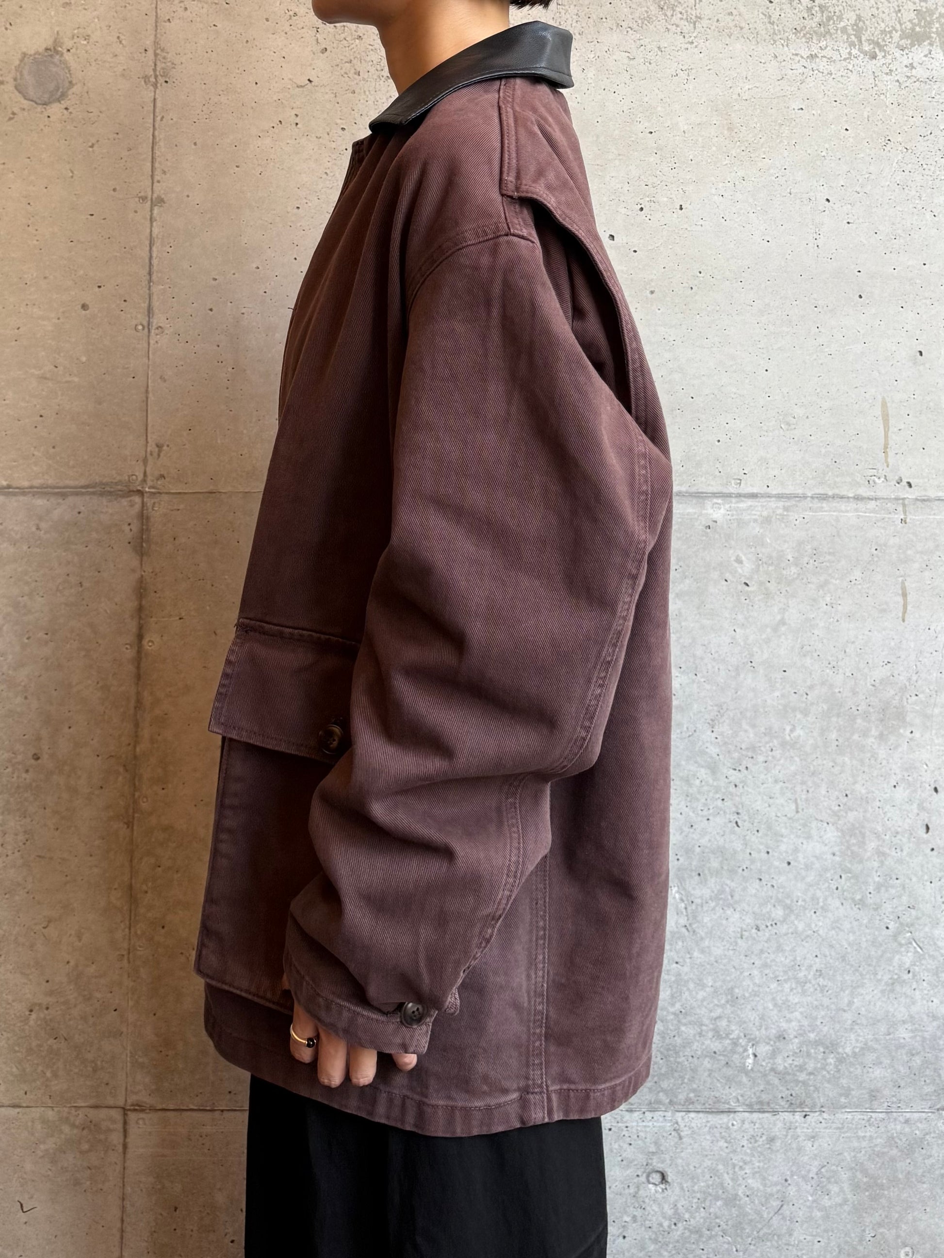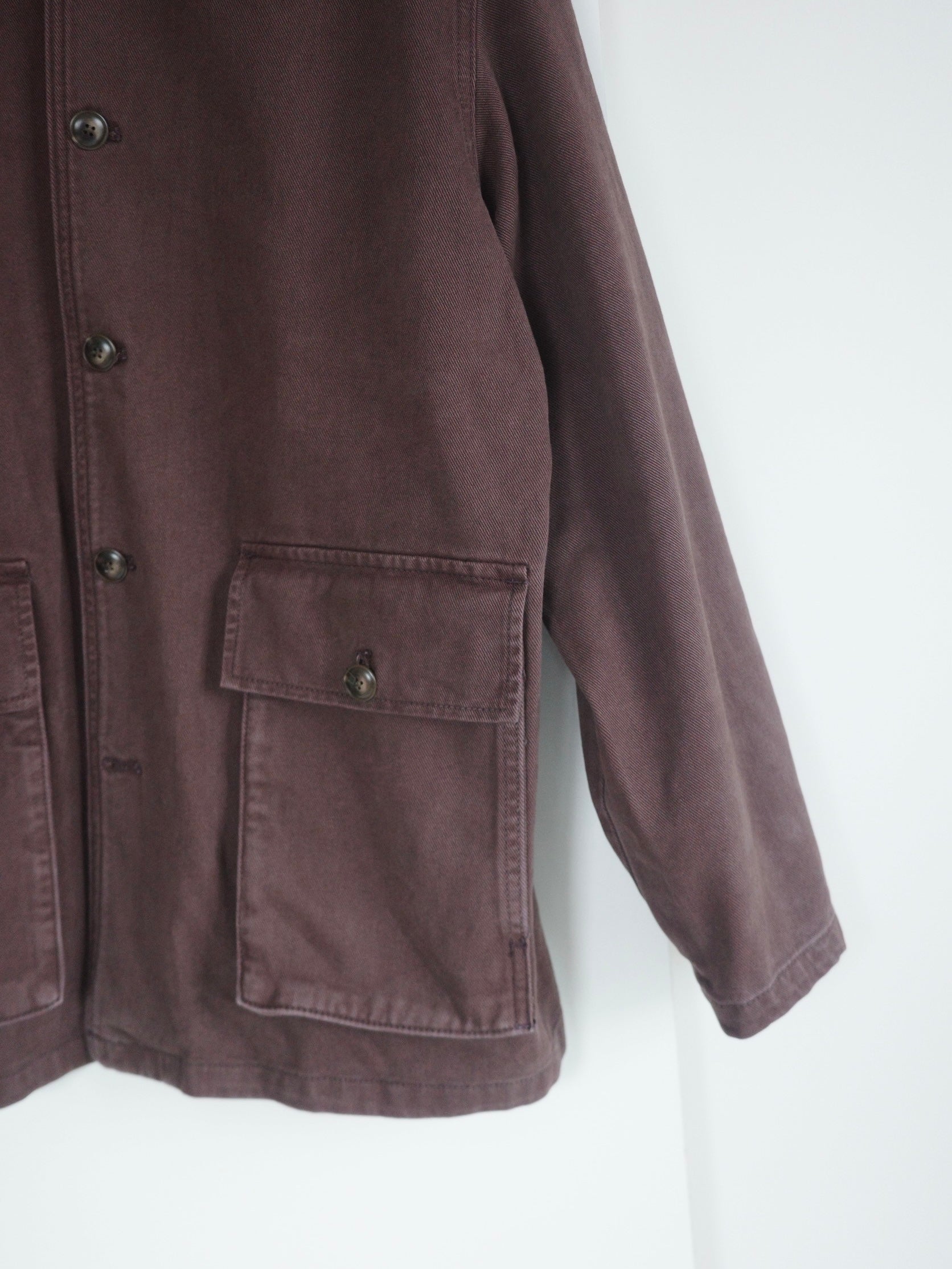 ワードローブで長く愛用できるハンティングジャケットにused感を加え、シンプルながら存在感ある1枚に。 程よくウォッシュのかかった風合いが大人のこなれた雰囲気を演出し、羽織るだけでスタイリングを格上げしてくれます。 軽やかなコットン素材は季節の変わり目にさらりと羽織るのはもちろん、 ゆとりあるサイズ感設定の為スウェットやニットとのレイヤードもお楽しみいただけます。 襟元のさりげない切替と大きめのポケットでアクセントをプラス。女性らしい深みがある色味も他にはない魅力の1着。