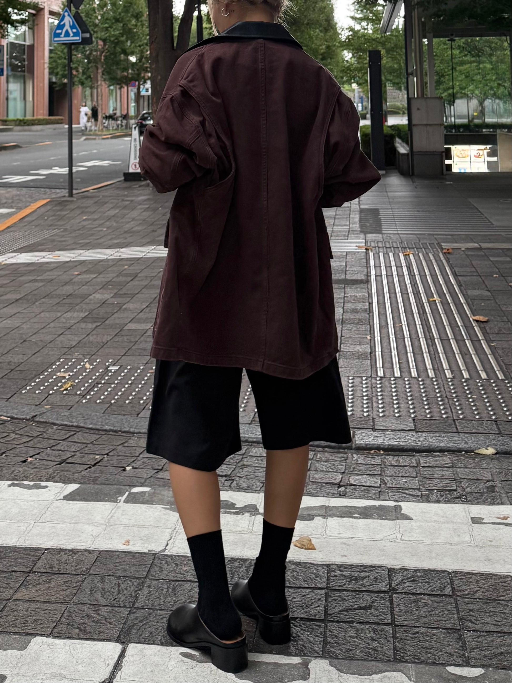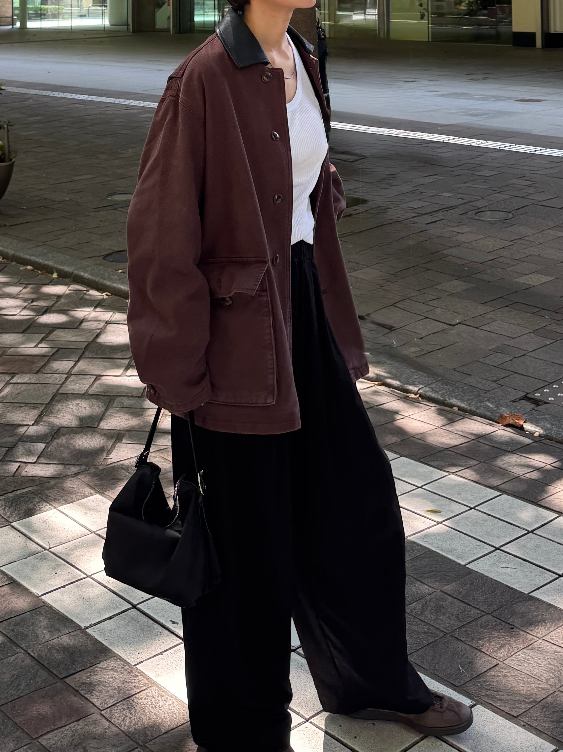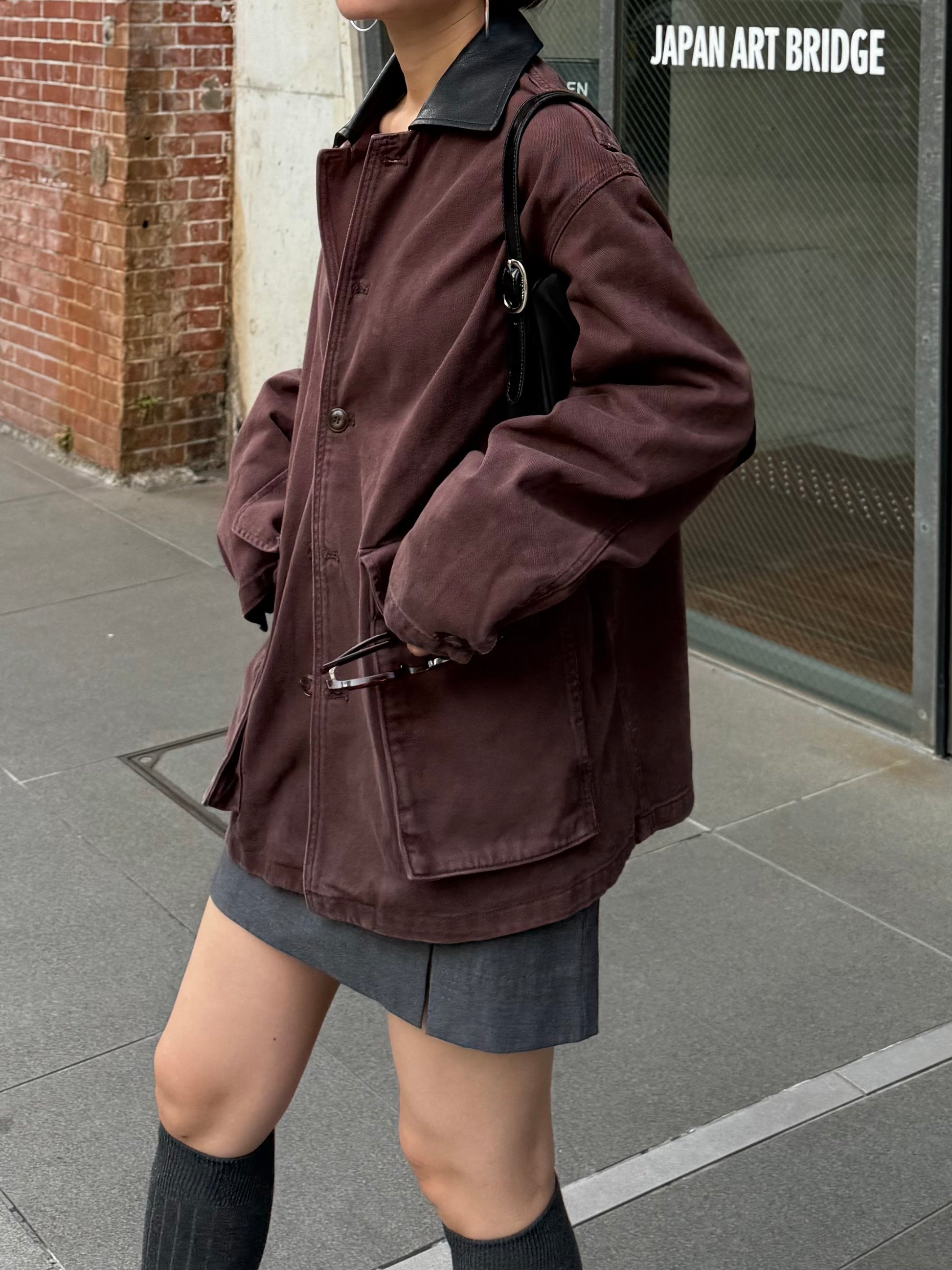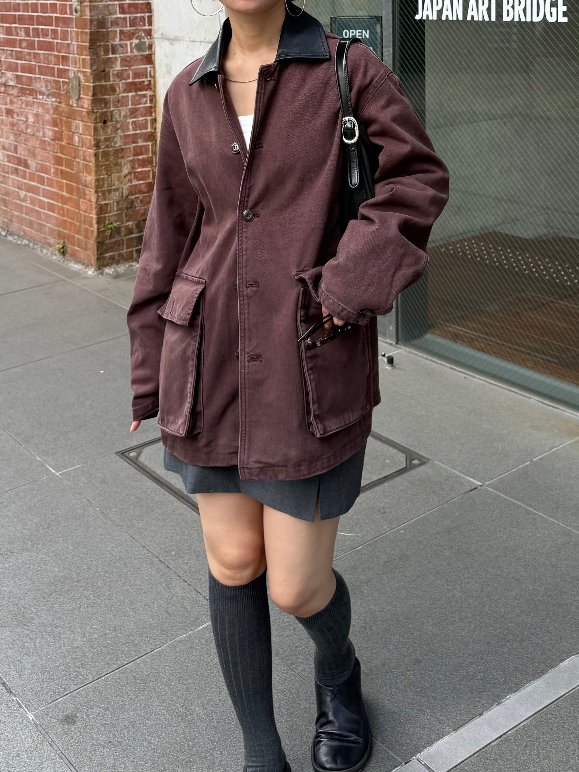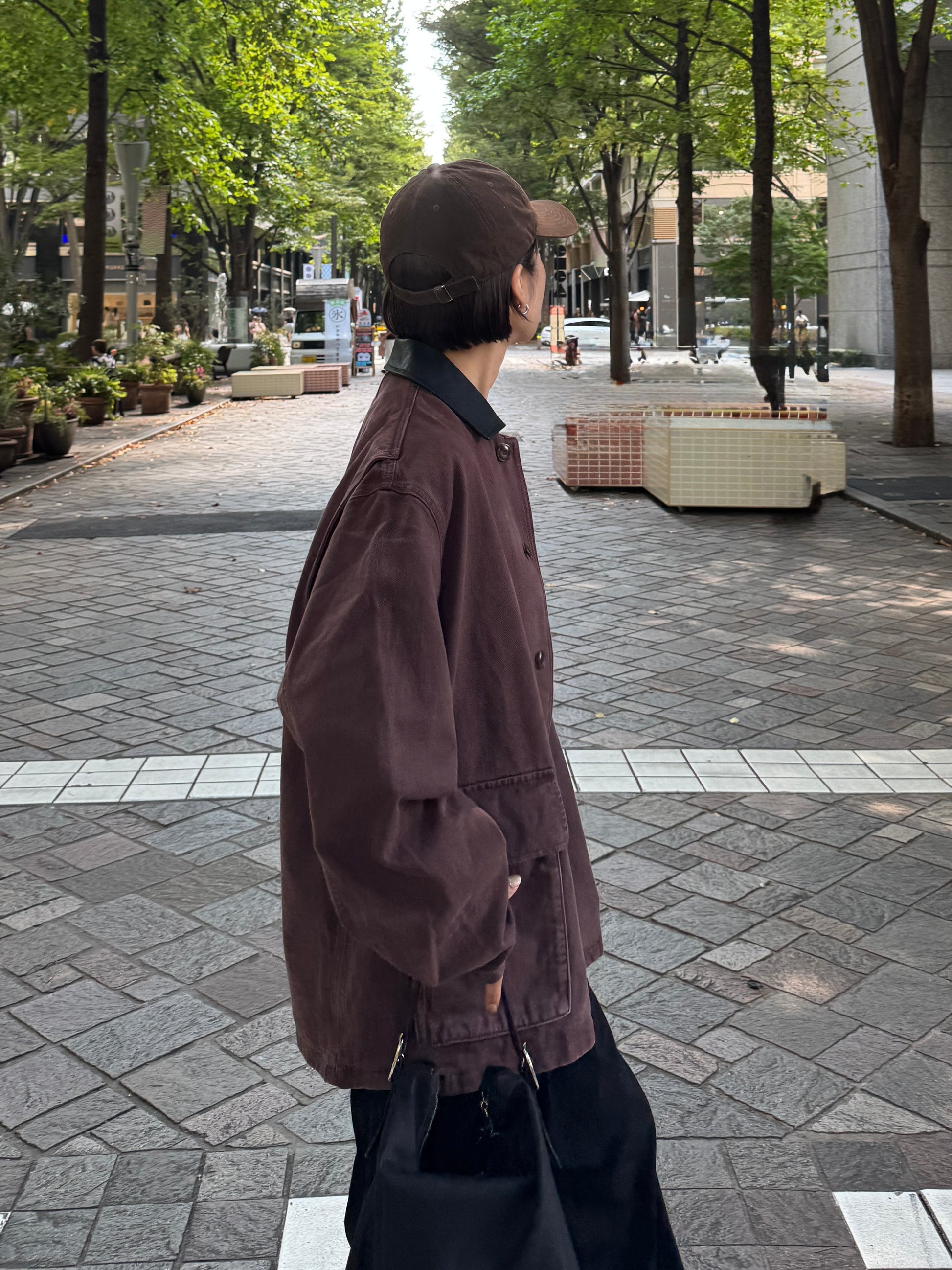 ワードローブで長く愛用できるハンティングジャケットにused感を加え、シンプルながら存在感ある1枚に。 程よくウォッシュのかかった風合いが大人のこなれた雰囲気を演出し、羽織るだけでスタイリングを格上げしてくれます。 軽やかなコットン素材は季節の変わり目にさらりと羽織るのはもちろん、 ゆとりあるサイズ感設定の為スウェットやニットとのレイヤードもお楽しみいただけます。 襟元のさりげない切替と大きめのポケットでアクセントをプラス。女性らしい深みがある色味も他にはない魅力の1着。
