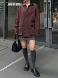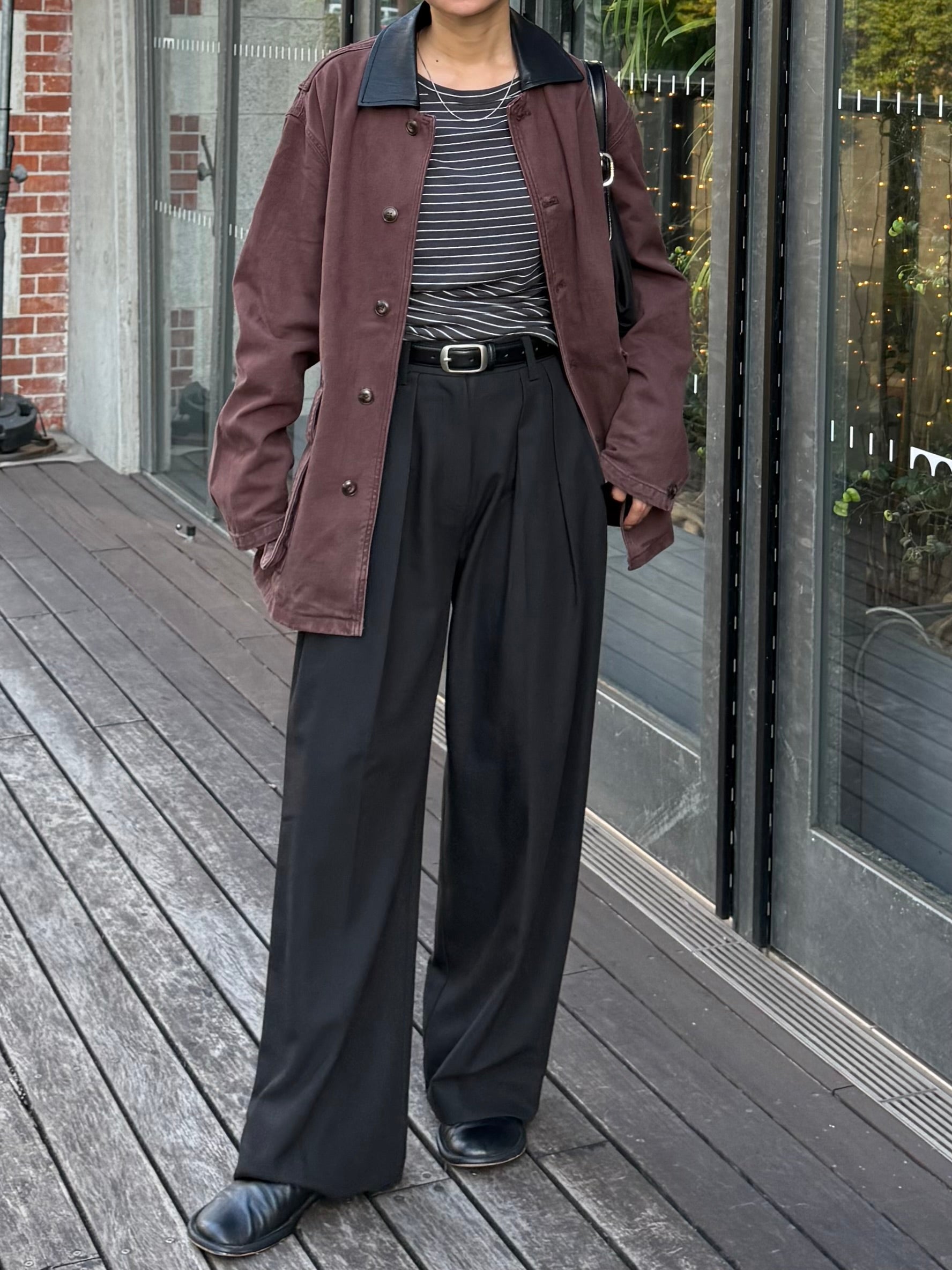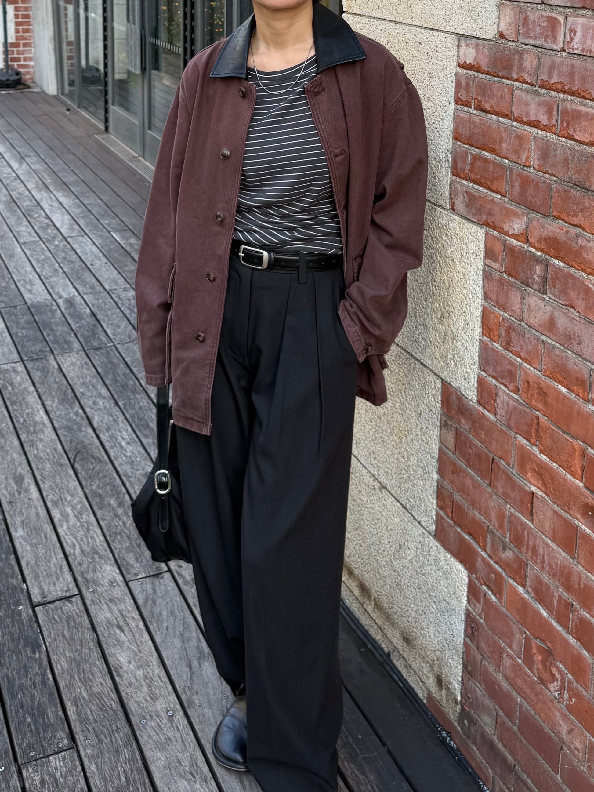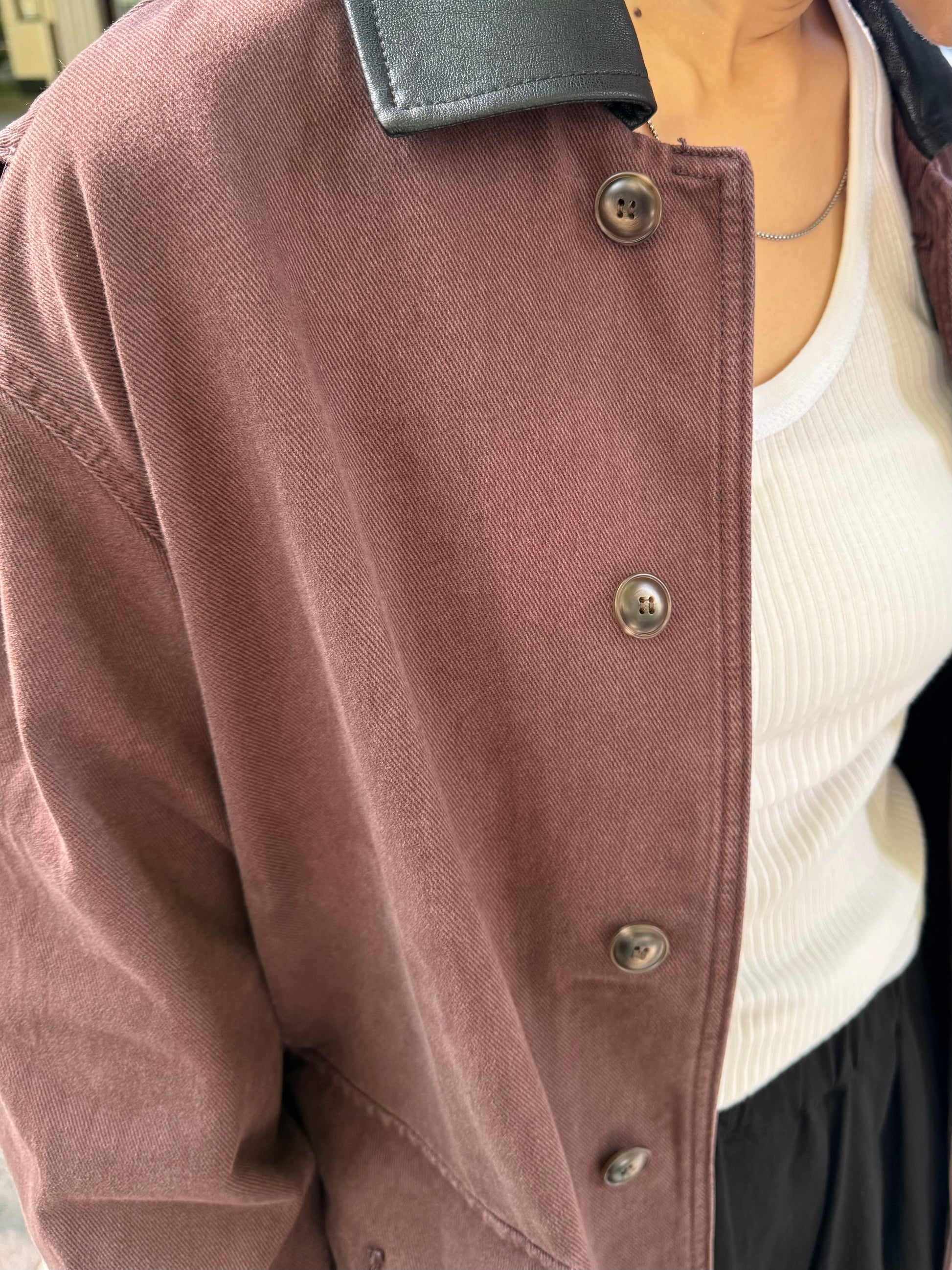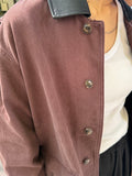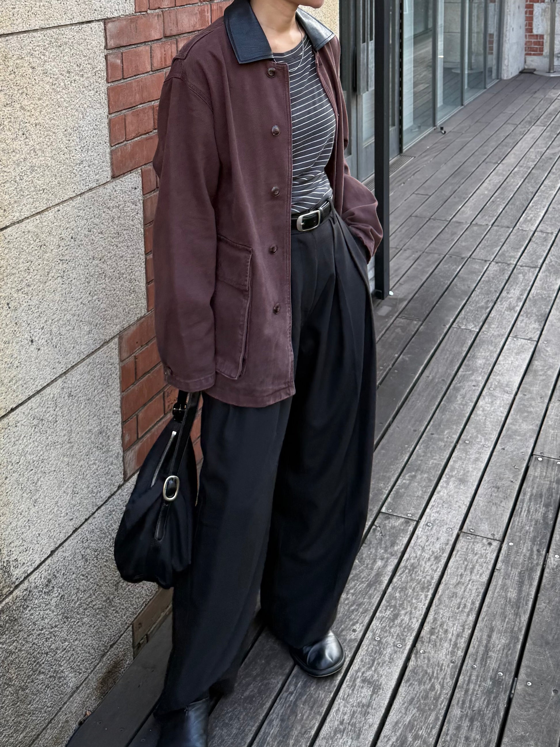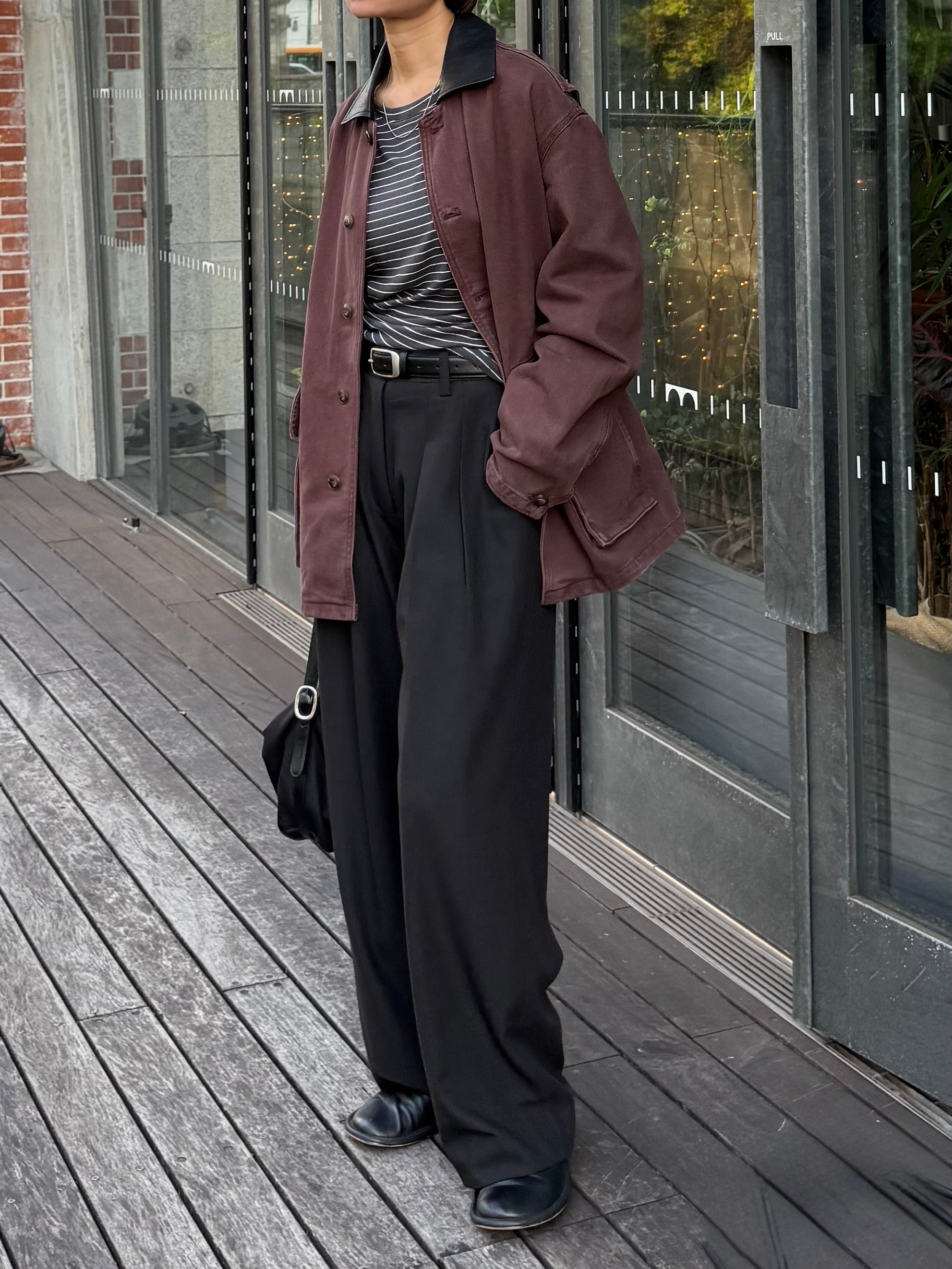 ワードローブで長く愛用できるハンティングジャケットにused感を加え、シンプルながら存在感ある1枚に。 程よくウォッシュのかかった風合いが大人のこなれた雰囲気を演出し、羽織るだけでスタイリングを格上げしてくれます。 軽やかなコットン素材は季節の変わり目にさらりと羽織るのはもちろん、 ゆとりあるサイズ感設定の為スウェットやニットとのレイヤードもお楽しみいただけます。 襟元のさりげない切替と大きめのポケットでアクセントをプラス。女性らしい深みがある色味も他にはない魅力の1着。