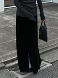しっとりとした光沢感が魅力のベロア素材を使用したスカート。 シンプルなストレートラインにバックスリットをプラスすることで、動きやすさと女性らしい抜け感を。 縦のラインを綺麗に見せながら、柔らかい生地と程よい伸縮性で心地よい着心地にもこだわりました。 カジュアルなカットソーやきれいめなブラウス、ジャケットとも馴染み良く シーズンを問わず着回しが効き、大人カジュアルからモードスタイルまで幅広く活躍してくれる1着です。