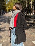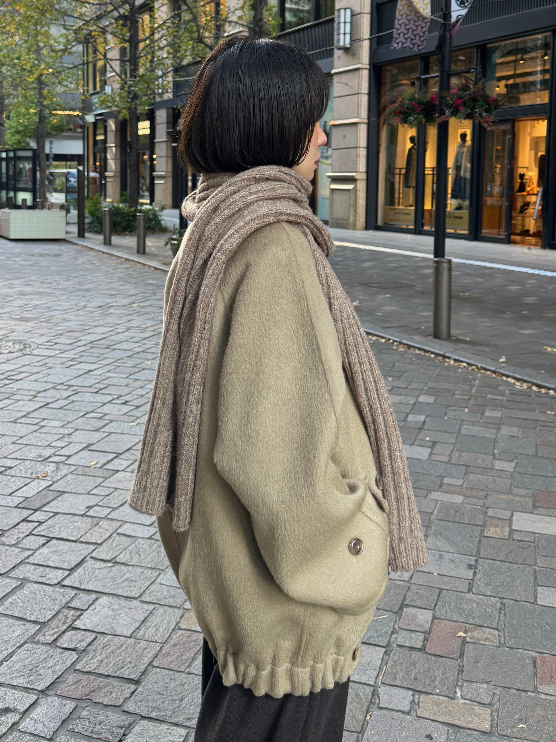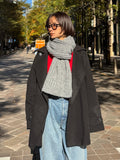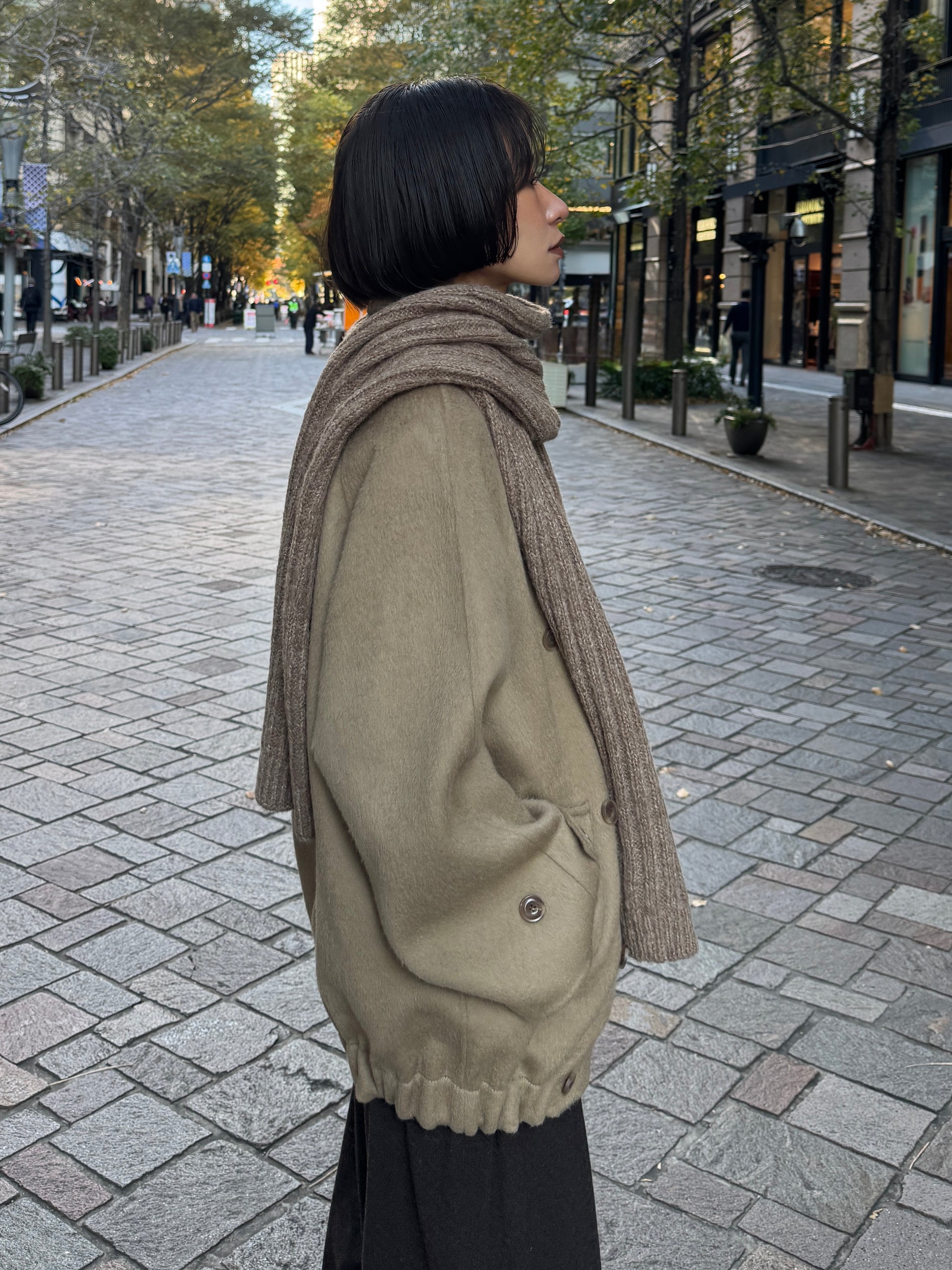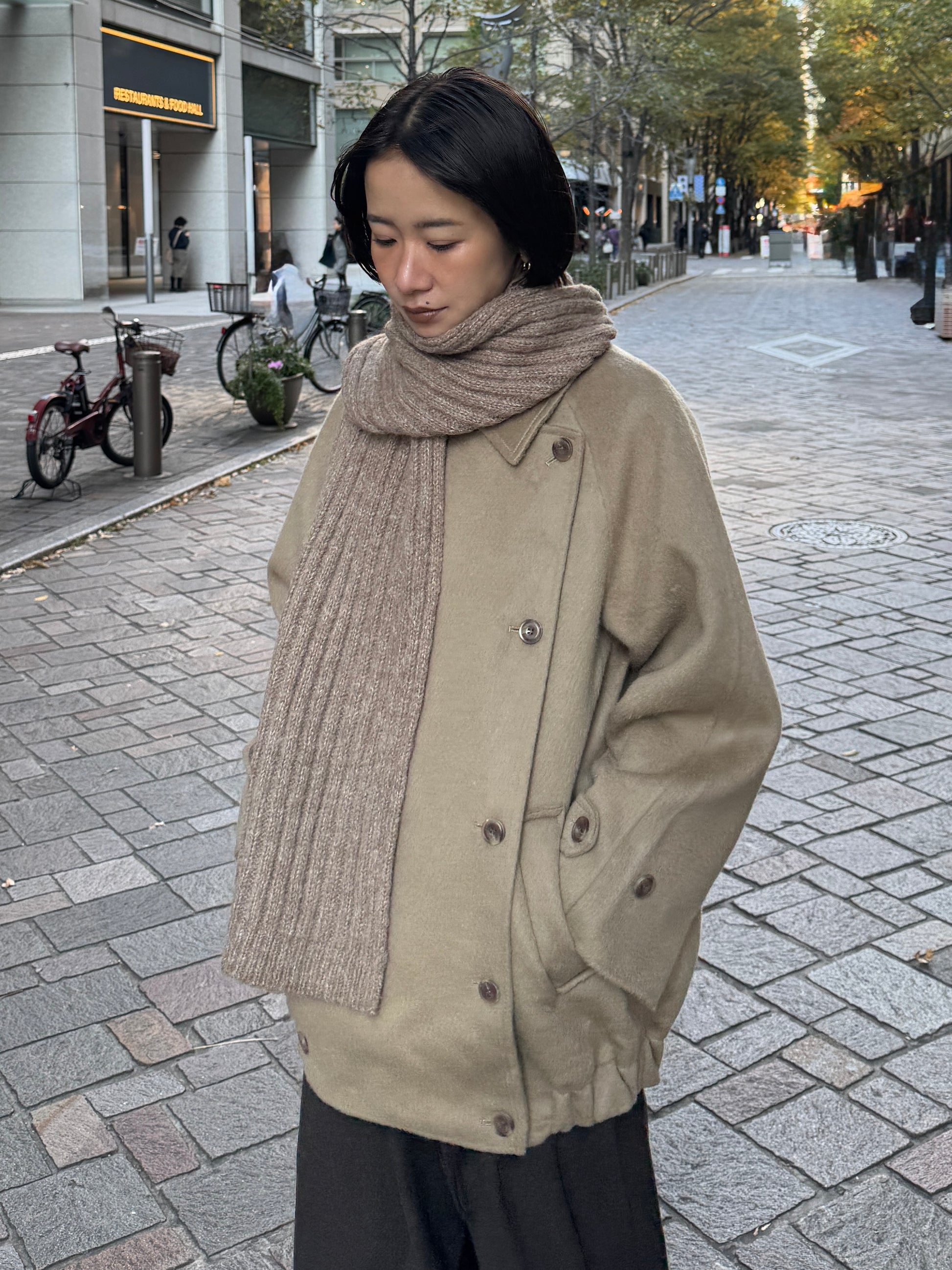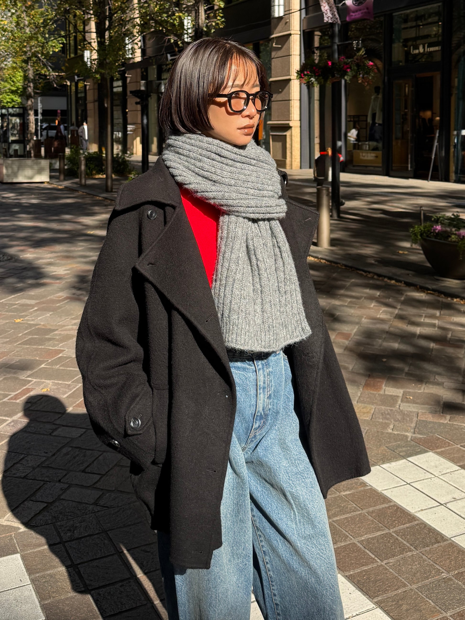 ふんわりと柔らかいタッチが魅力のリブ編みマフラー。 ポリエステル・アクリルの素材で、ウール特有のちくちく感なく 素肌に触れてもストレスを感じにくい快適なつけ心地に仕上げました。 程よくボリュームのある畦編みは、首元に巻くだけで自然と立体感が生まれ、シンプルなスタイリングにもこなれた雰囲気をプラス。 ロング丈で巻き方のアレンジがしやすく、ラフにひと巻きして垂らすだけでもバランス良く決まります。 防寒としての暖かさはもちろん、冬の着こなしに表情を添えるアクセントとしても活躍する1本です。 裾にはさりげなくブランドタブを配置しミニマルなデザインの中に、上質さを感じさせるディティールに。