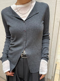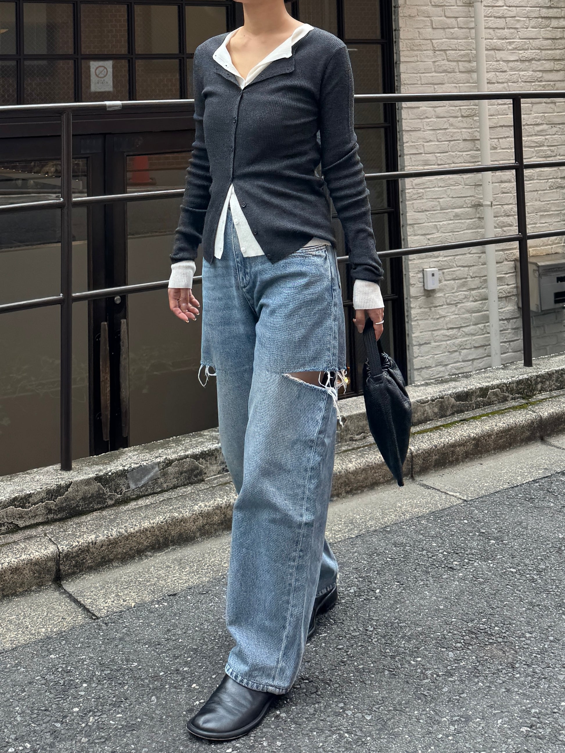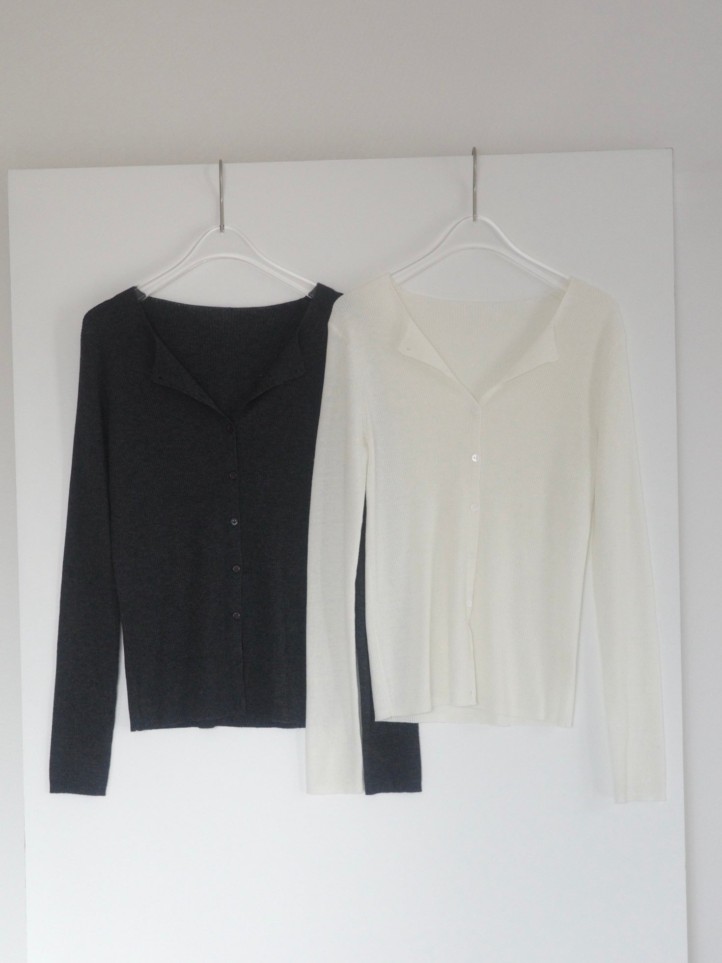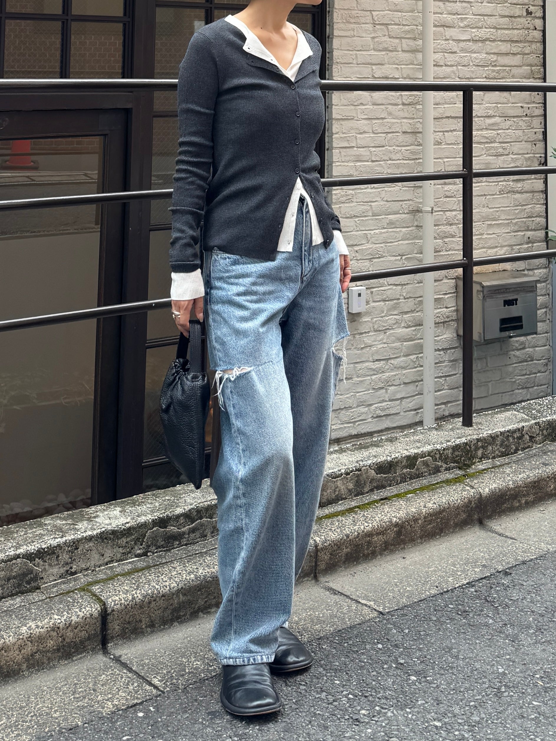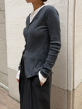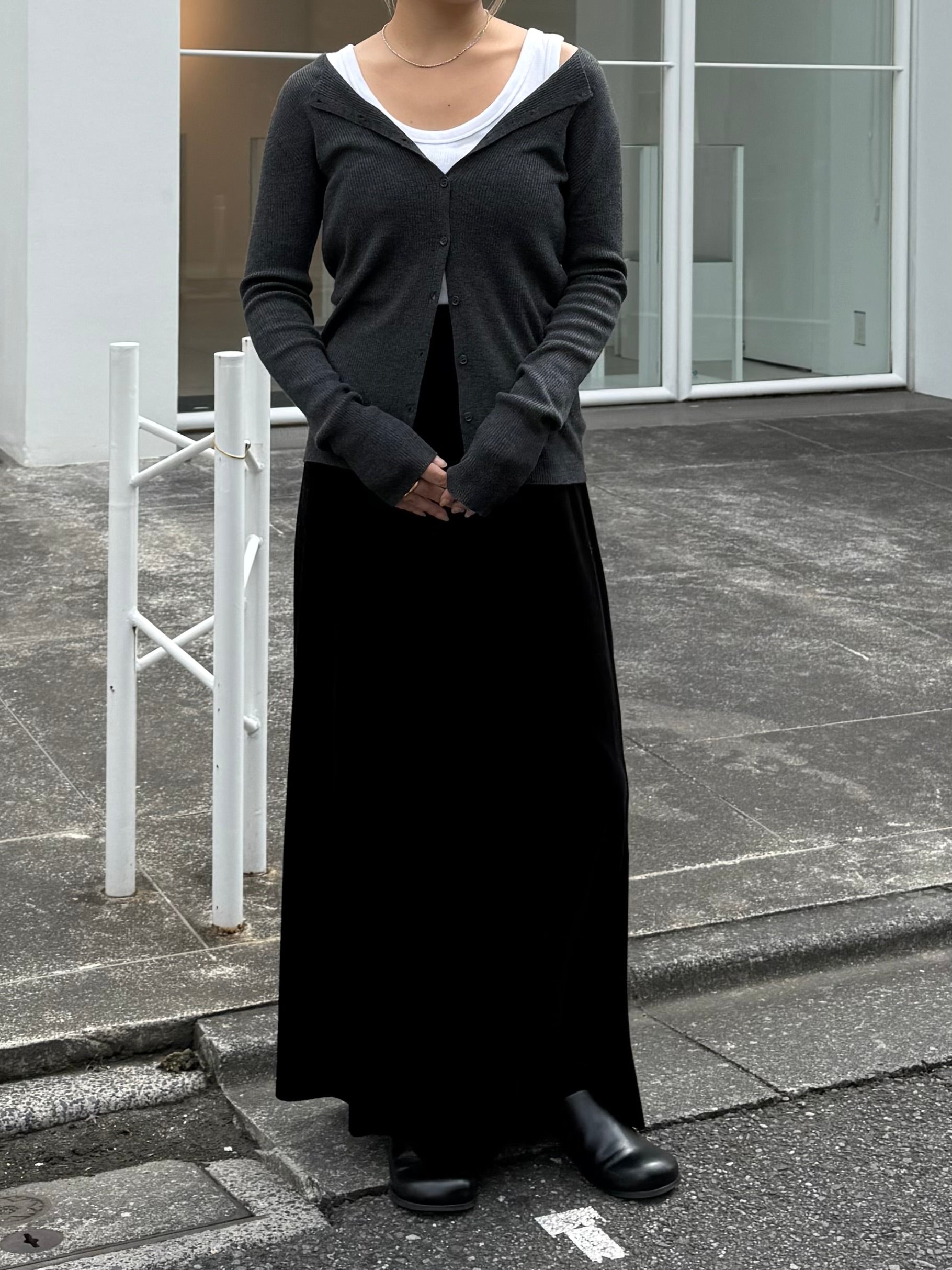 上品さとこなれ感を両立したレイヤードスタイルが楽しめる薄手のニットカーディガン。 程よく身体にフィットする細リブ素材で仕立てており、すっきりとしたシルエットを演出。 伸縮性ある肌あたりの優しい生地で、リラックス感ある着心地も魅力の1枚です。 1枚でのご着用はもちろん、2枚重ねたレイヤードスタイルも衿元や裾、袖口から覗く インナーがアクセントになり、シンプルながらも奥行きのある着こなしを叶えます。 軽い羽織りとしても、アウターのインナーにも映える万能アイテム。