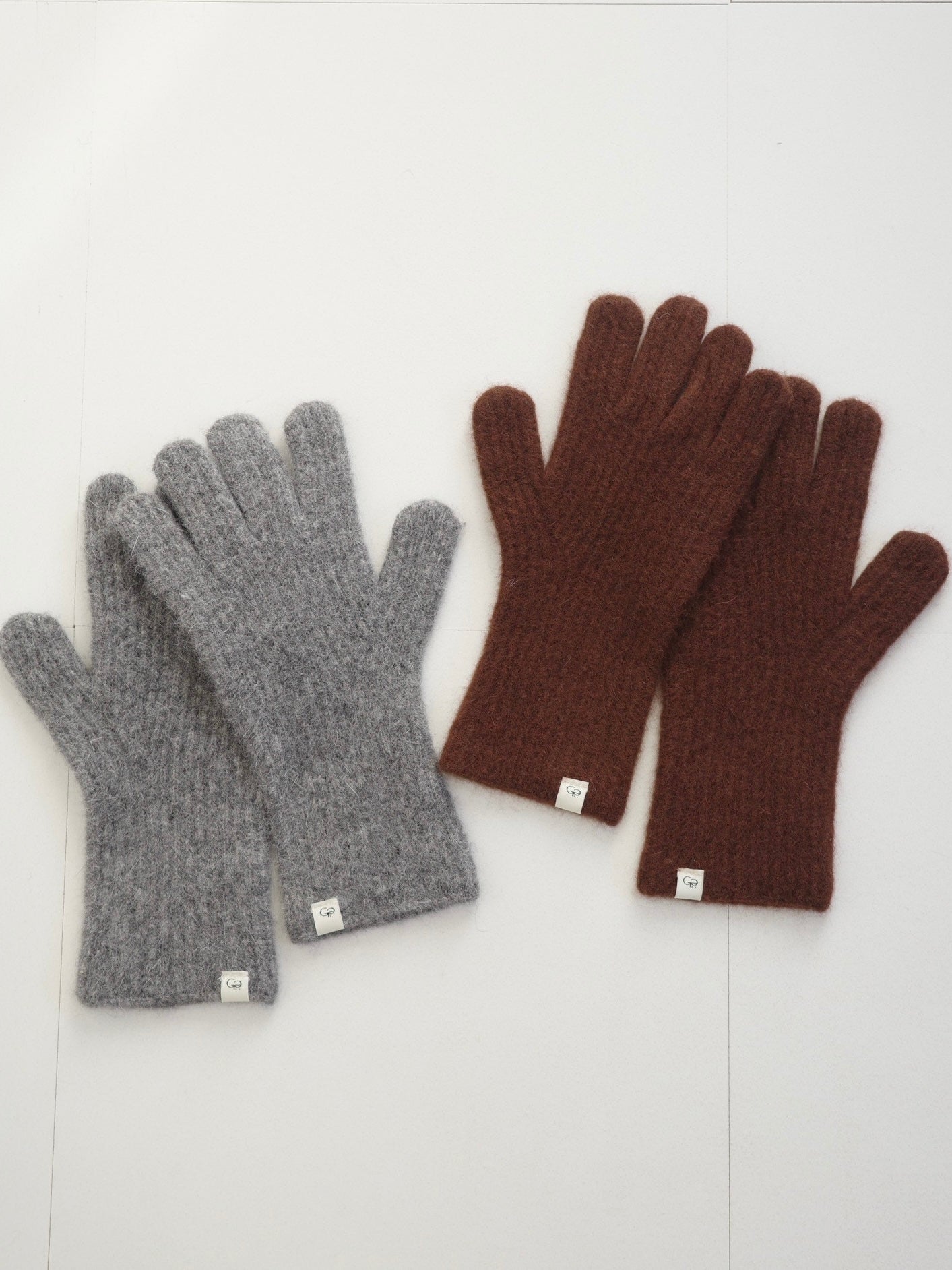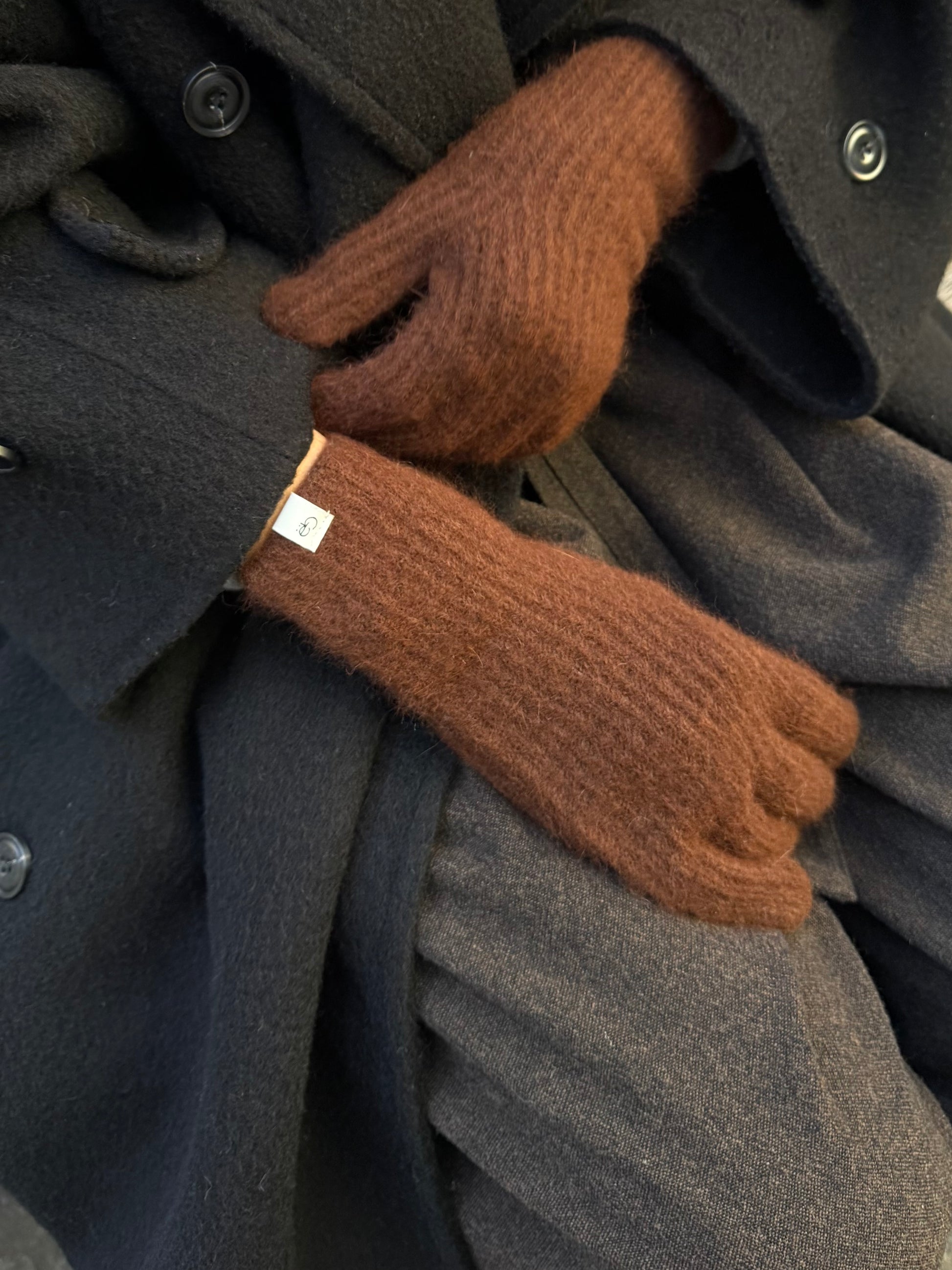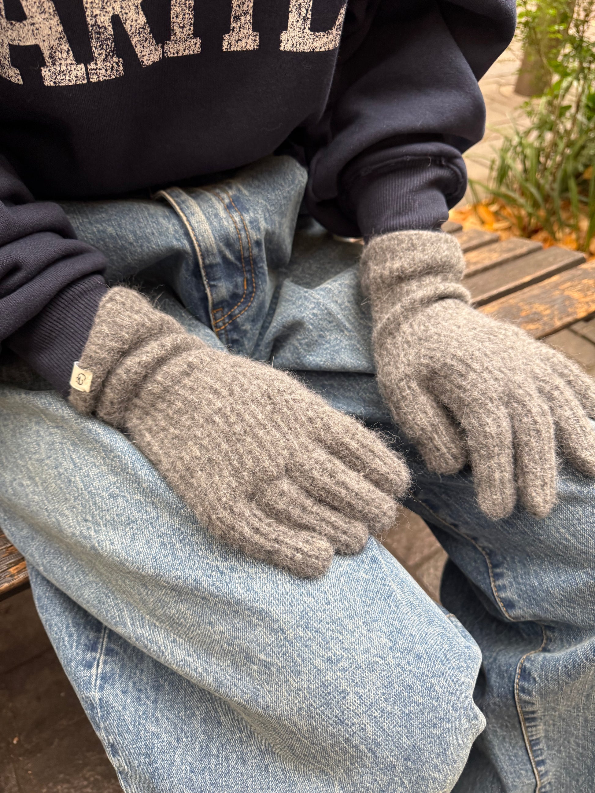 ふわりと柔らかなタッチが魅力のニットグローブ。 レーヨン・ラビット・ウールを贅沢にブレンドした素材は、軽さと暖かさに加え包み込むような滑らかな肌触りを兼ね備えています。 指先までしっかりフィットしながらも締め付け感がなく、長時間つけていてもストレスを感じにくい優しい着用感が魅力。 指先が自由に使える指穴付きデザインで、スマートフォン操作や細かな作業がしやすいのも嬉しいポイント。 冬のスタイリングにさりげないムードと温かさを添える、大人の冬スタイルにそっと寄り添う、上質なアイテムです。