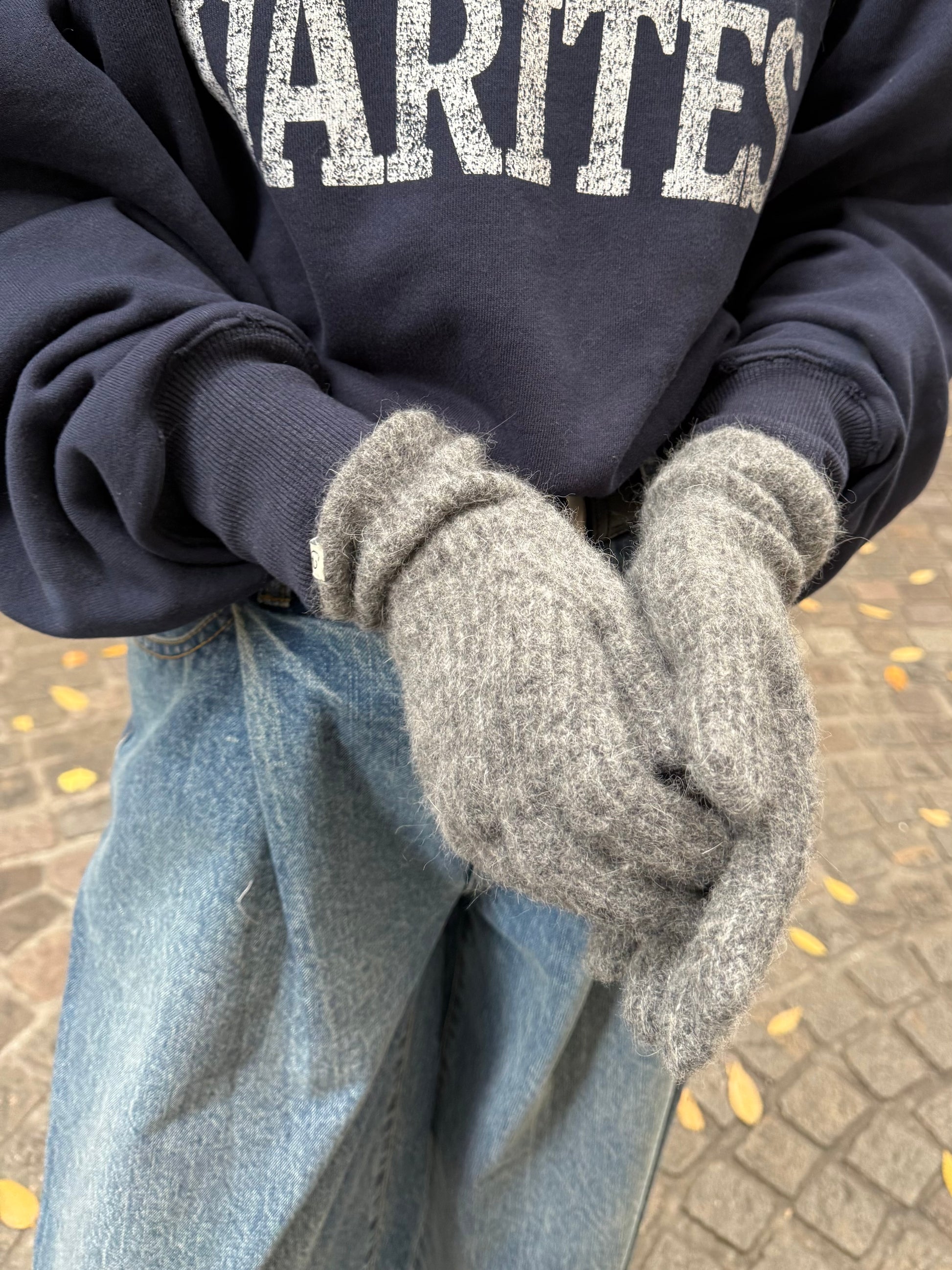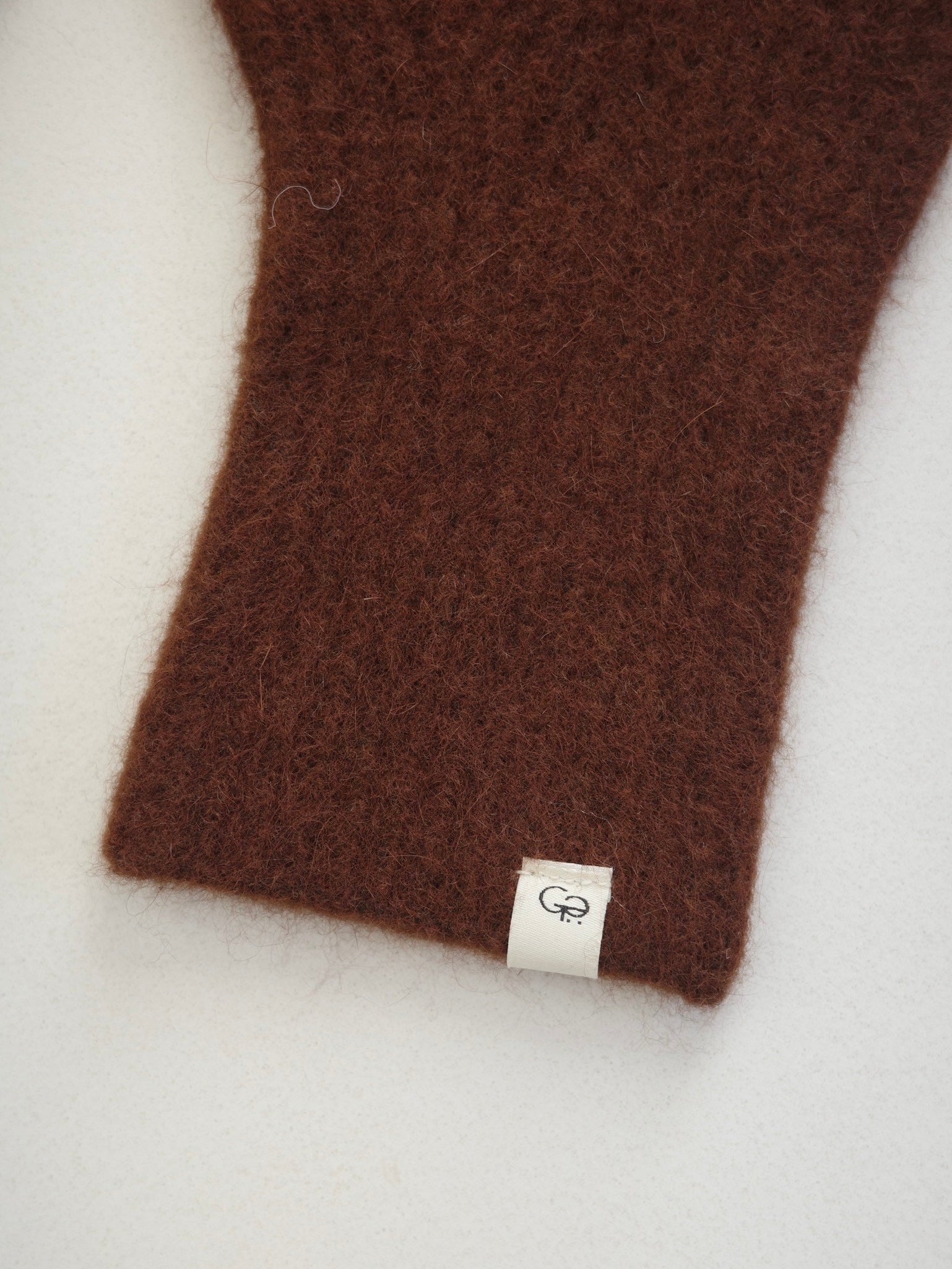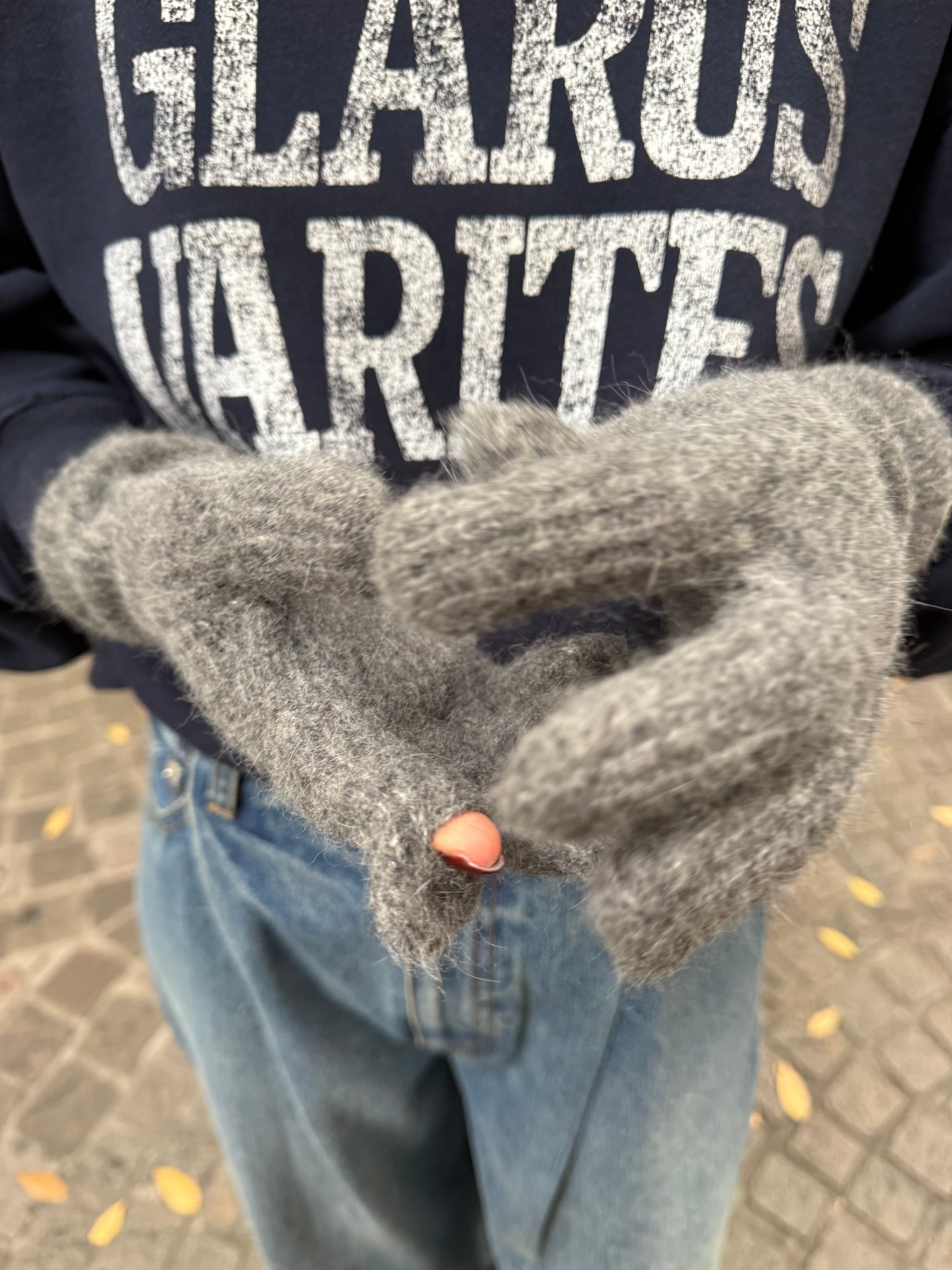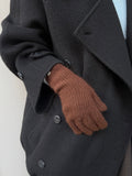 ふわりと柔らかなタッチが魅力のニットグローブ。 レーヨン・ラビット・ウールを贅沢にブレンドした素材は、軽さと暖かさに加え包み込むような滑らかな肌触りを兼ね備えています。 指先までしっかりフィットしながらも締め付け感がなく、長時間つけていてもストレスを感じにくい優しい着用感が魅力。 指先が自由に使える指穴付きデザインで、スマートフォン操作や細かな作業がしやすいのも嬉しいポイント。 冬のスタイリングにさりげないムードと温かさを添える、大人の冬スタイルにそっと寄り添う、上質なアイテムです。