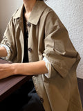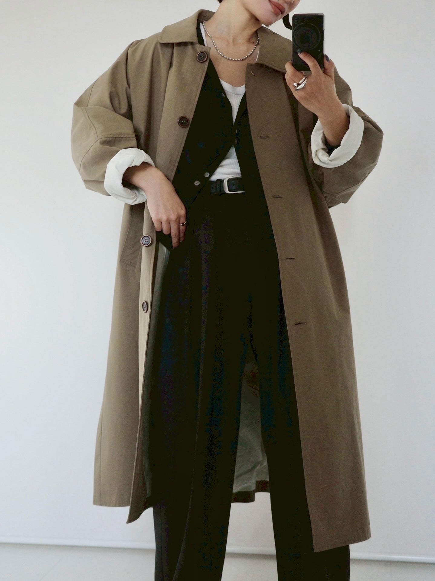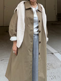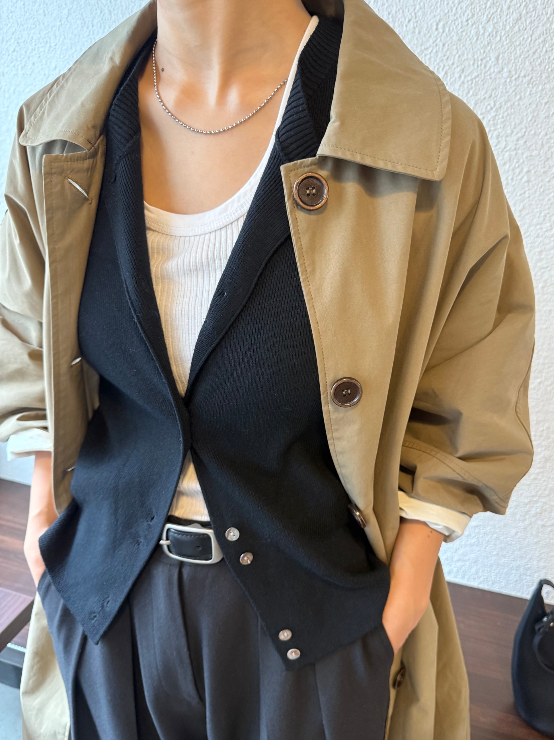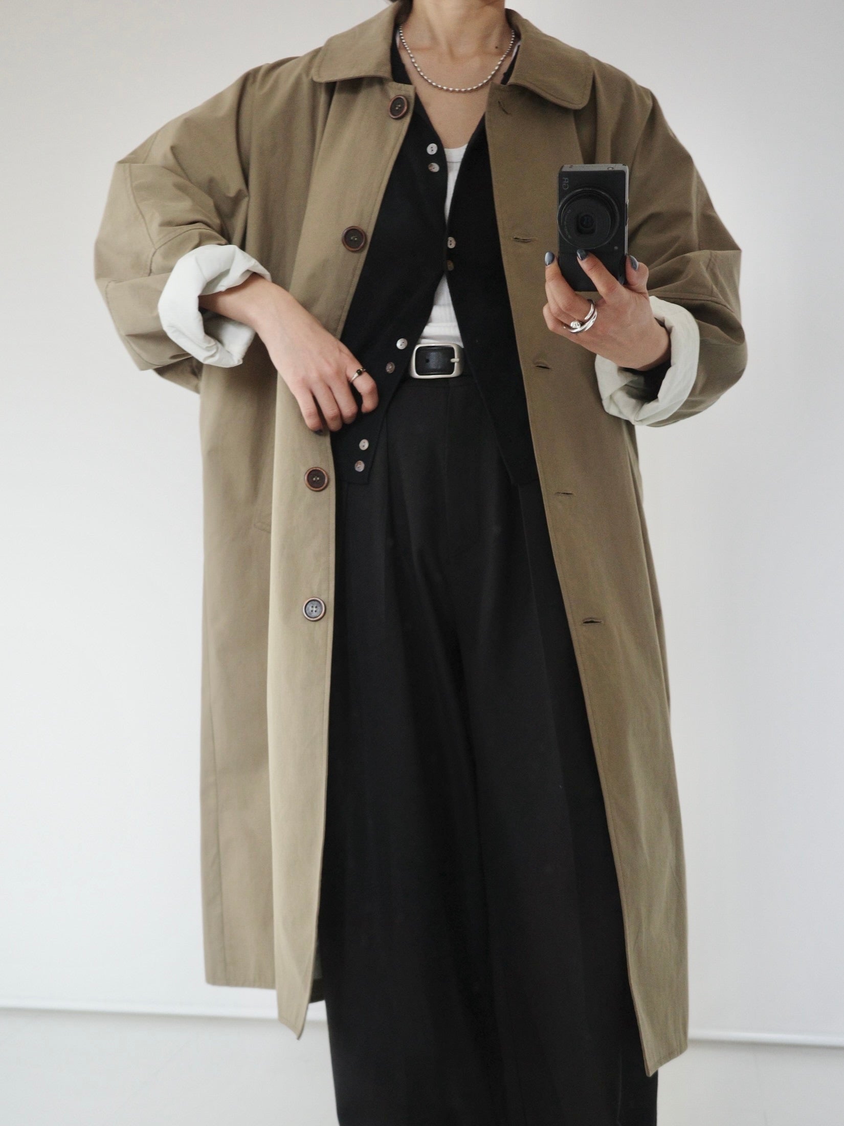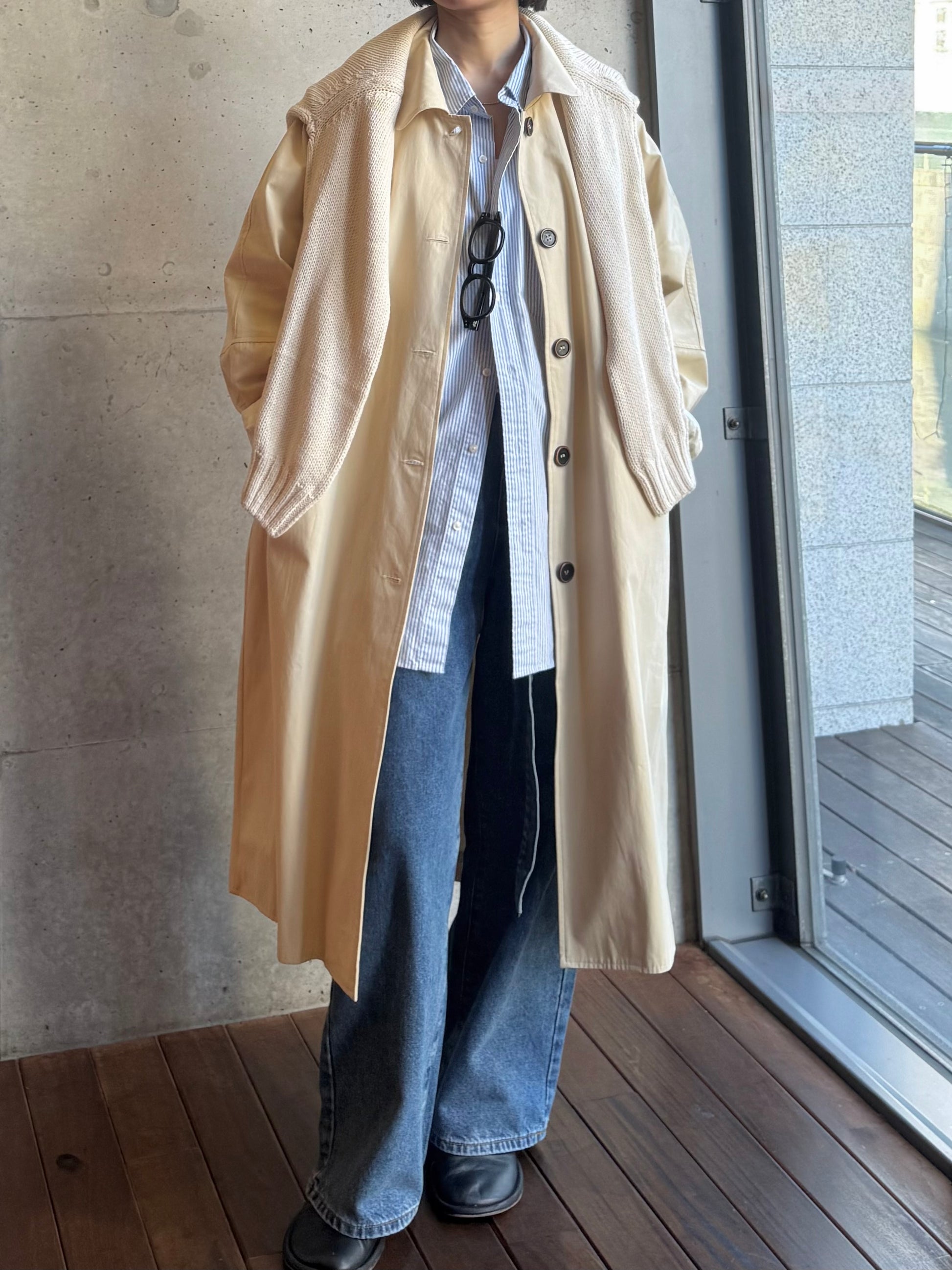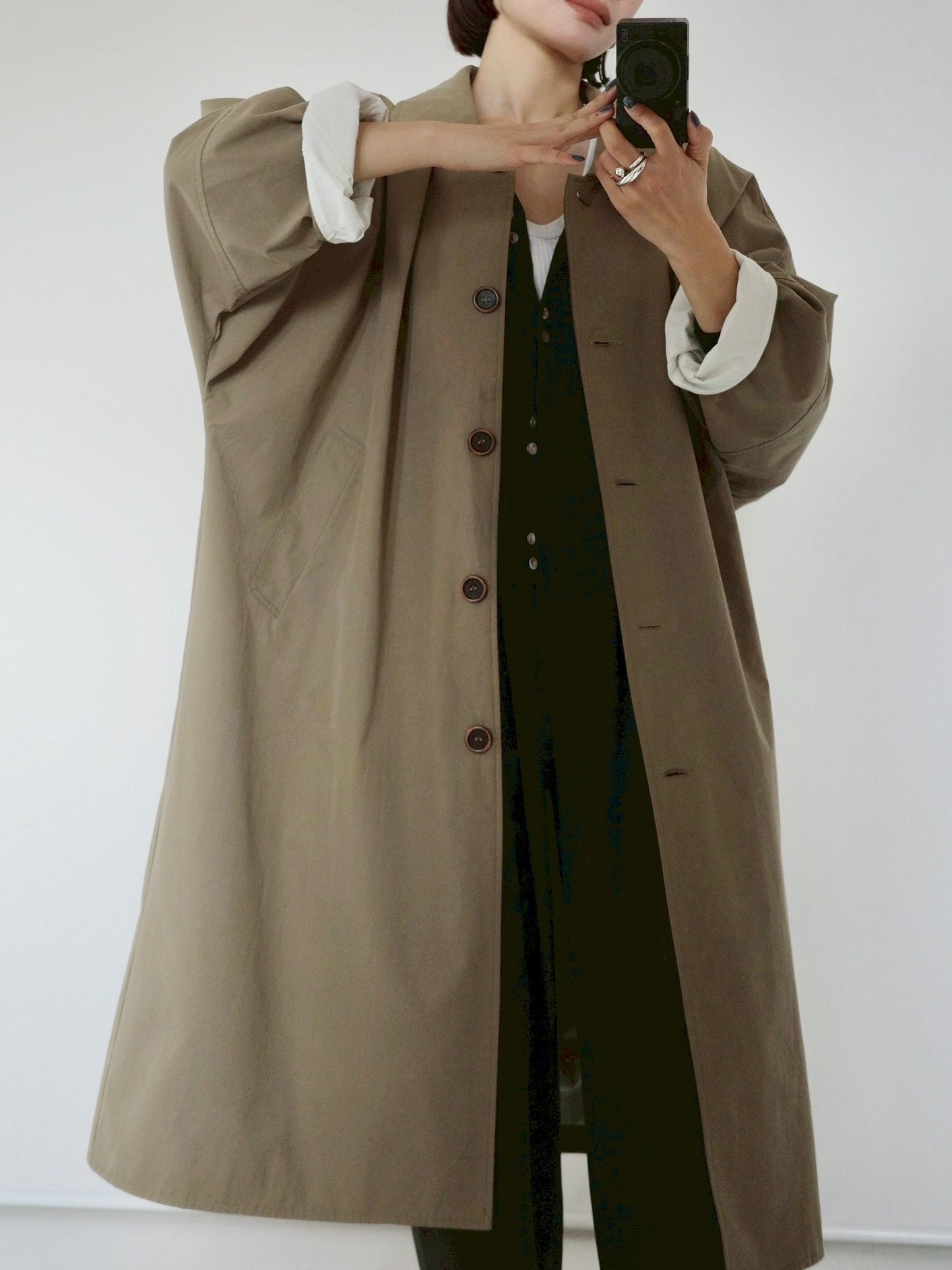 綿と麻を使用した、軽やかな着心地の春ロングコート。 天然素材ならではのナチュラルな風合いで、季節の変わり目にも手に取りやすい一枚です。 身幅をたっぷりと取ったリラックス感のあるシルエットに加え、袖に切り替えを入れることで、自然な丸みのあるフォルムに。 腕まわりにやさしい立体感が生まれ、シンプルながらも柔らかく、女性らしい印象を与えてくれます。 ボタンを留めても開けても様になるデザインにこだわり、ロールアップしたときの袖の表情もスタイリングのさりげないアクセントに◎ 春の空気に自然と馴染み、コーディネート全体を軽やかに見せてくれる色味も魅力です。