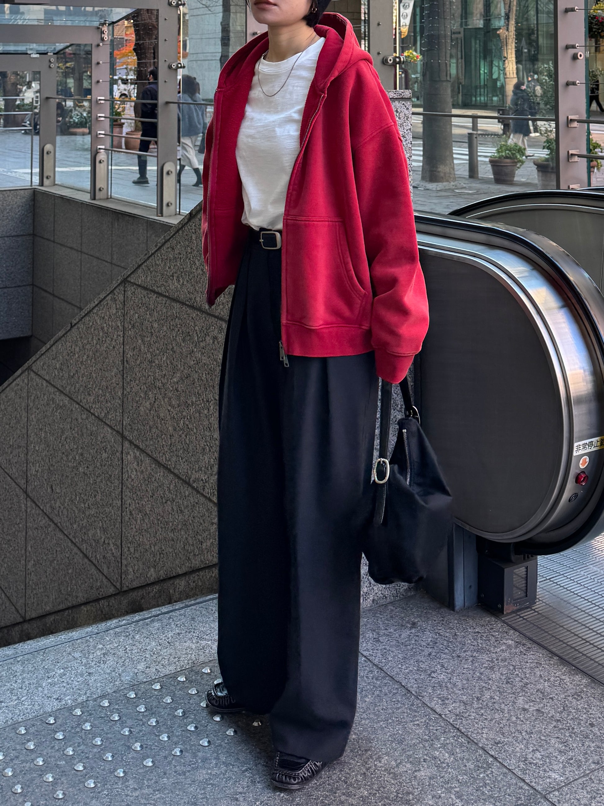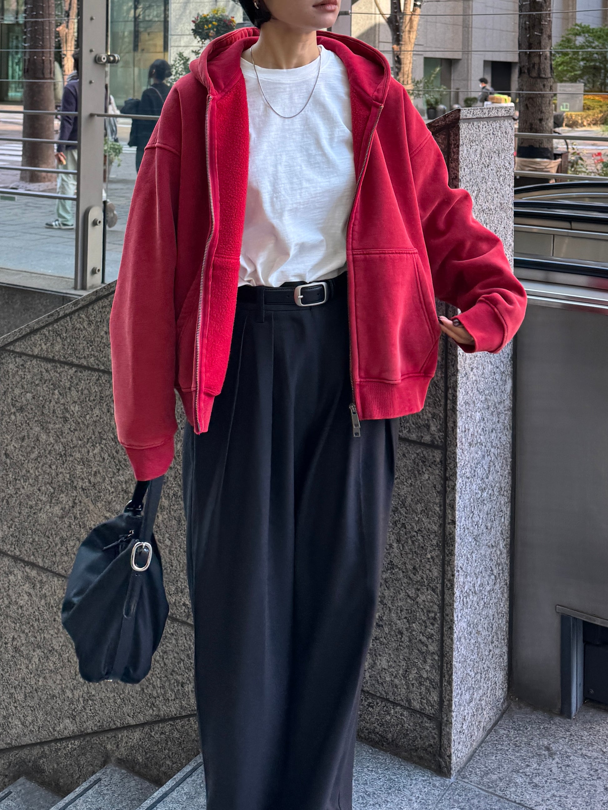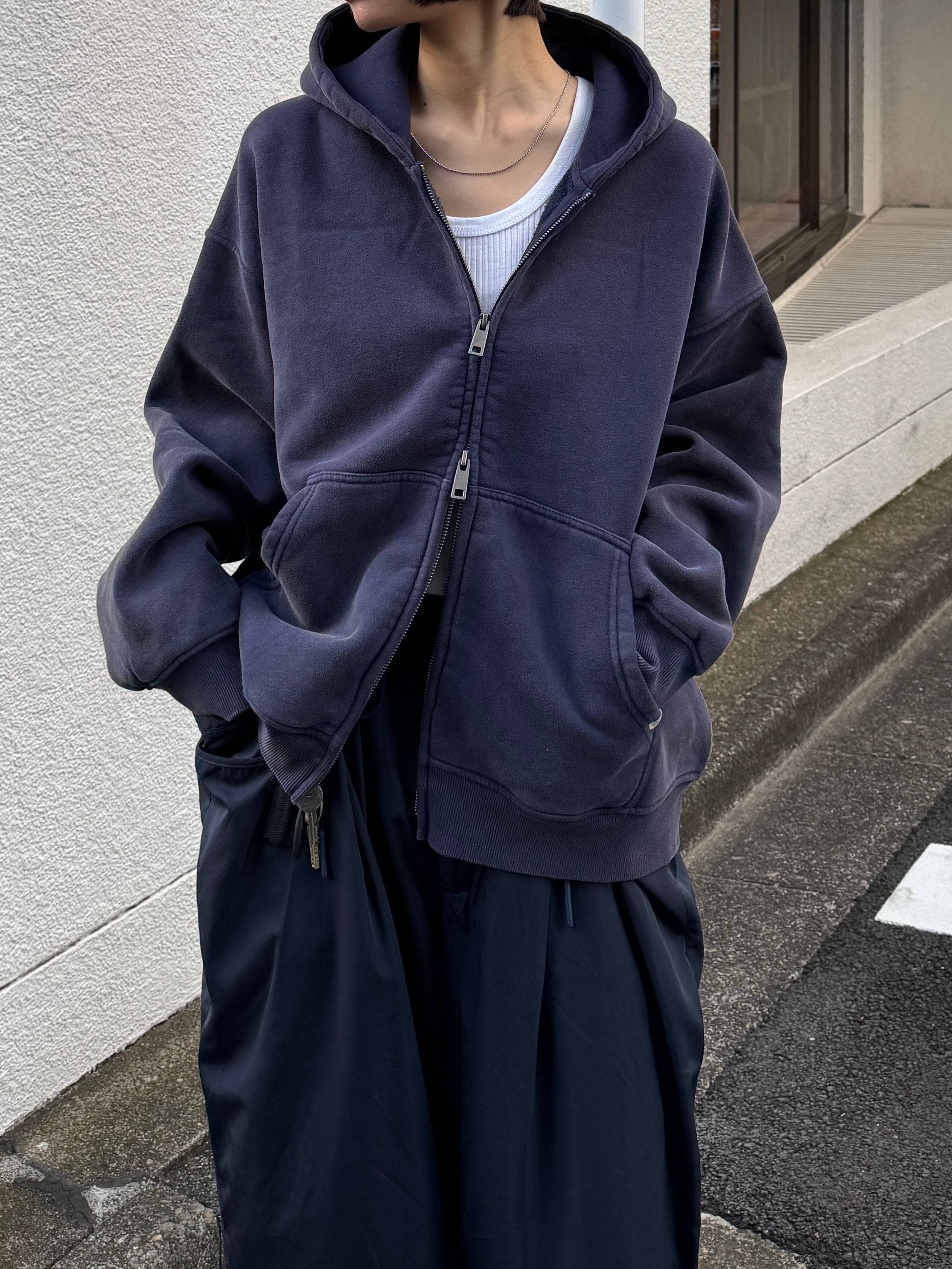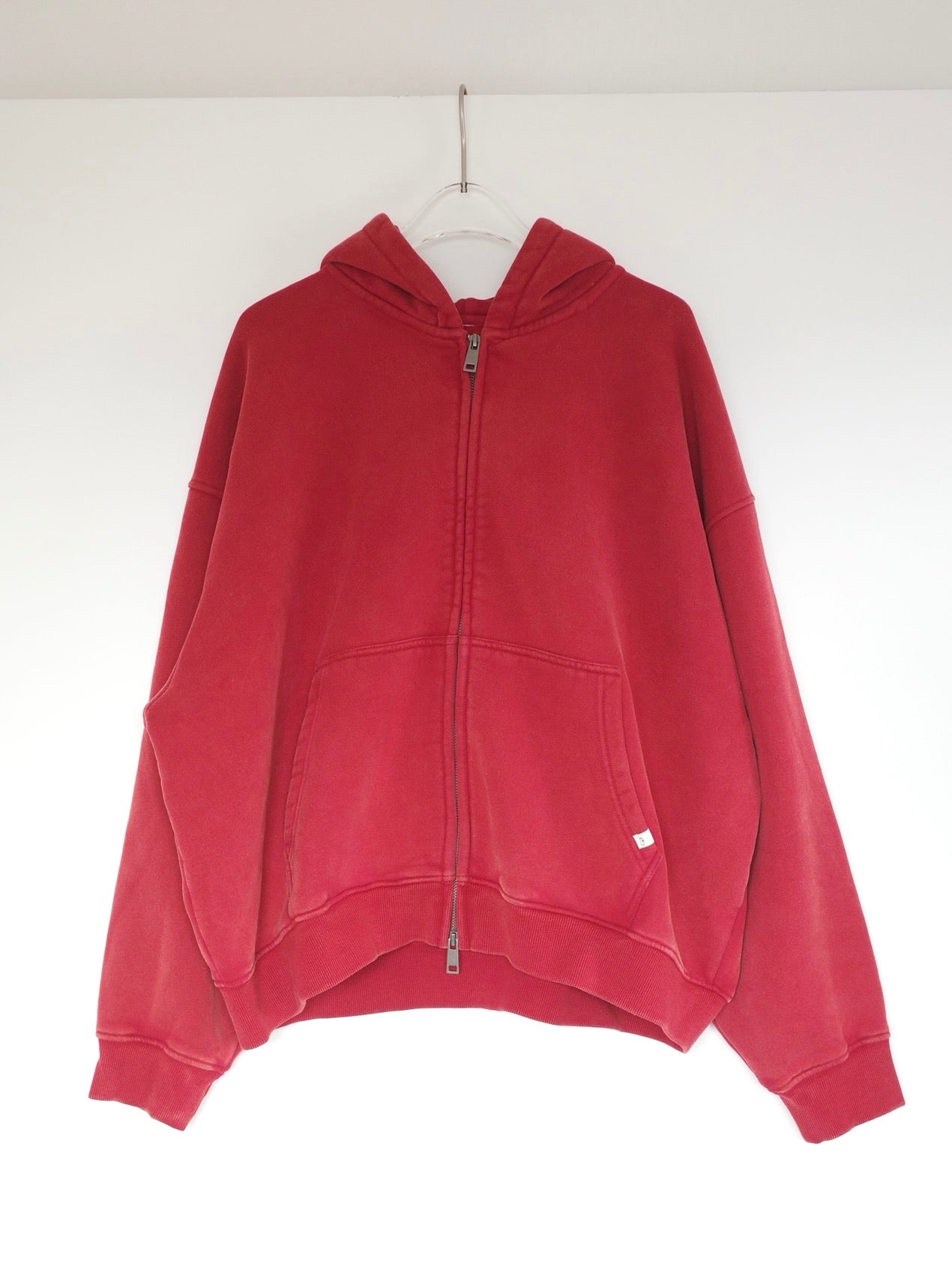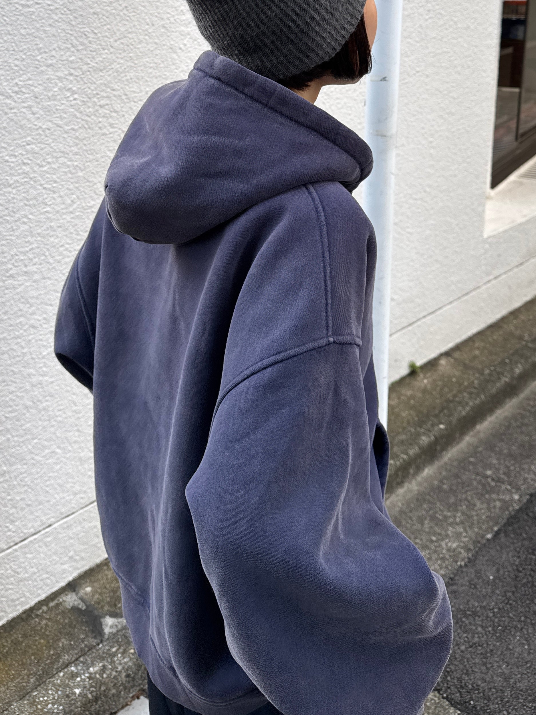 程よく色褪せたような風合いが魅力の、ヴィンテージライクなウォッシュフーディー。 やわらかく肌馴染みのいい生地に、裏起毛を施し冬から春にかけて心地よく着られる1枚。 肩のラインを落としたリラックス感のあるシルエットに、程よいボリュームの袖がラフさの中に女性らしいやわらかさをプラス。 様々なボトムスにバランス良く馴染みやすい、短すぎず長すぎない着丈設定で仕上げました。 フロントはWジップ仕様の為、ジップの開閉でスタイリングの変化もお楽しみいただけます。 寒い時期は防寒として、春先には軽い羽織りとしても、長い季節寄り添ってくれる、大人のためのフーディーです。