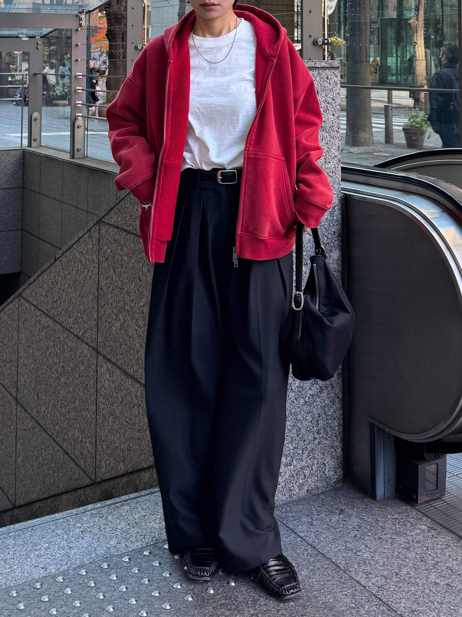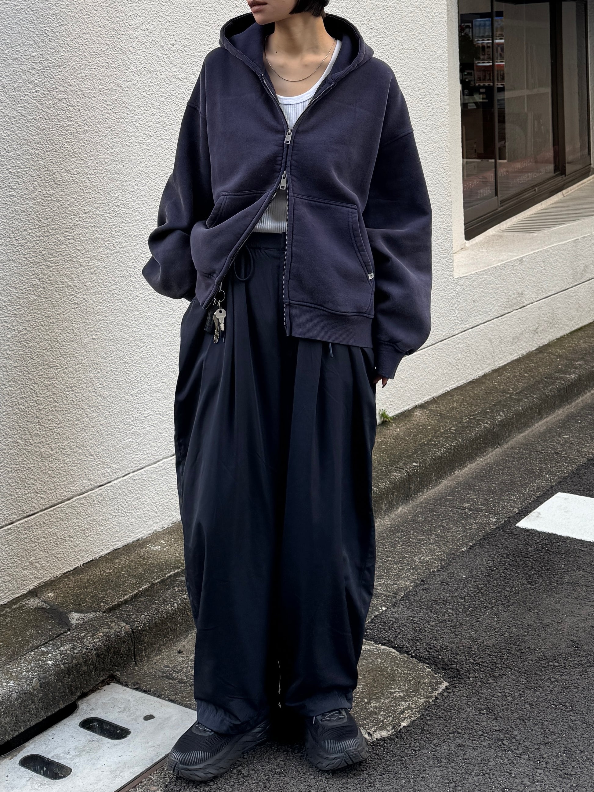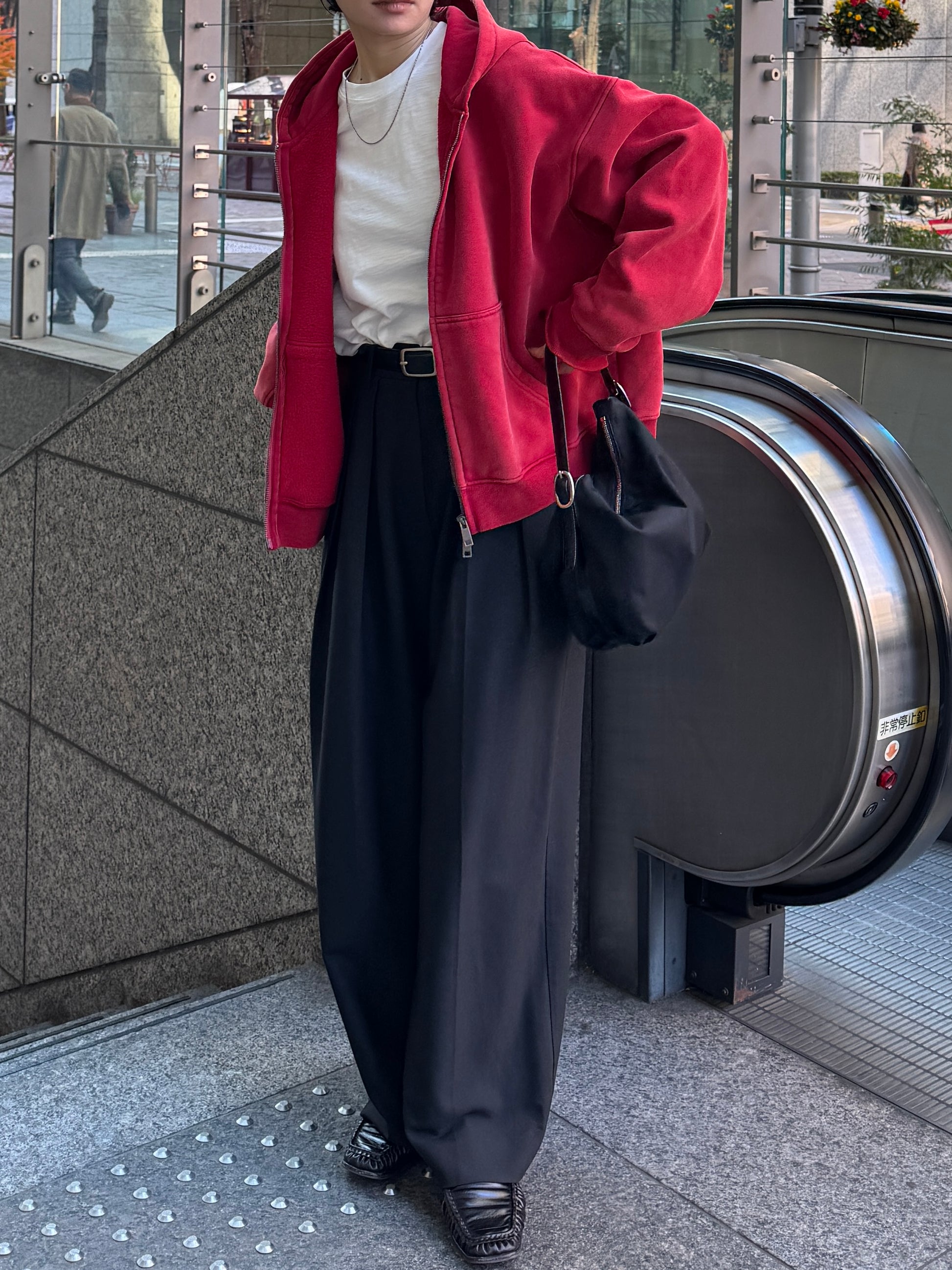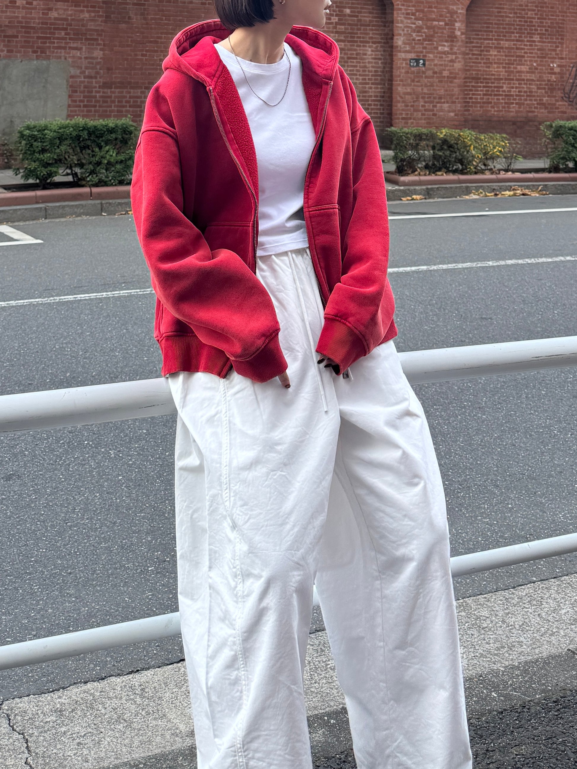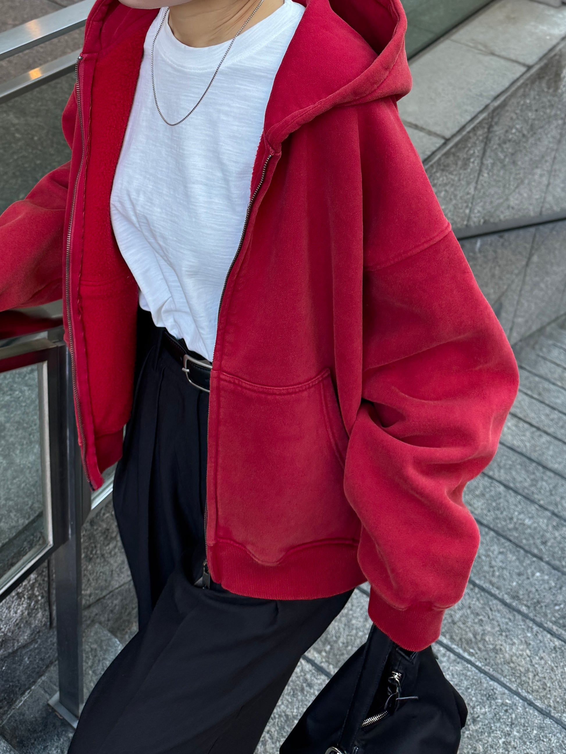 程よく色褪せたような風合いが魅力の、ヴィンテージライクなウォッシュフーディー。 やわらかく肌馴染みのいい生地に、裏起毛を施し冬から春にかけて心地よく着られる1枚。 肩のラインを落としたリラックス感のあるシルエットに、程よいボリュームの袖がラフさの中に女性らしいやわらかさをプラス。 様々なボトムスにバランス良く馴染みやすい、短すぎず長すぎない着丈設定で仕上げました。 フロントはWジップ仕様の為、ジップの開閉でスタイリングの変化もお楽しみいただけます。 寒い時期は防寒として、春先には軽い羽織りとしても、長い季節寄り添ってくれる、大人のためのフーディーです。