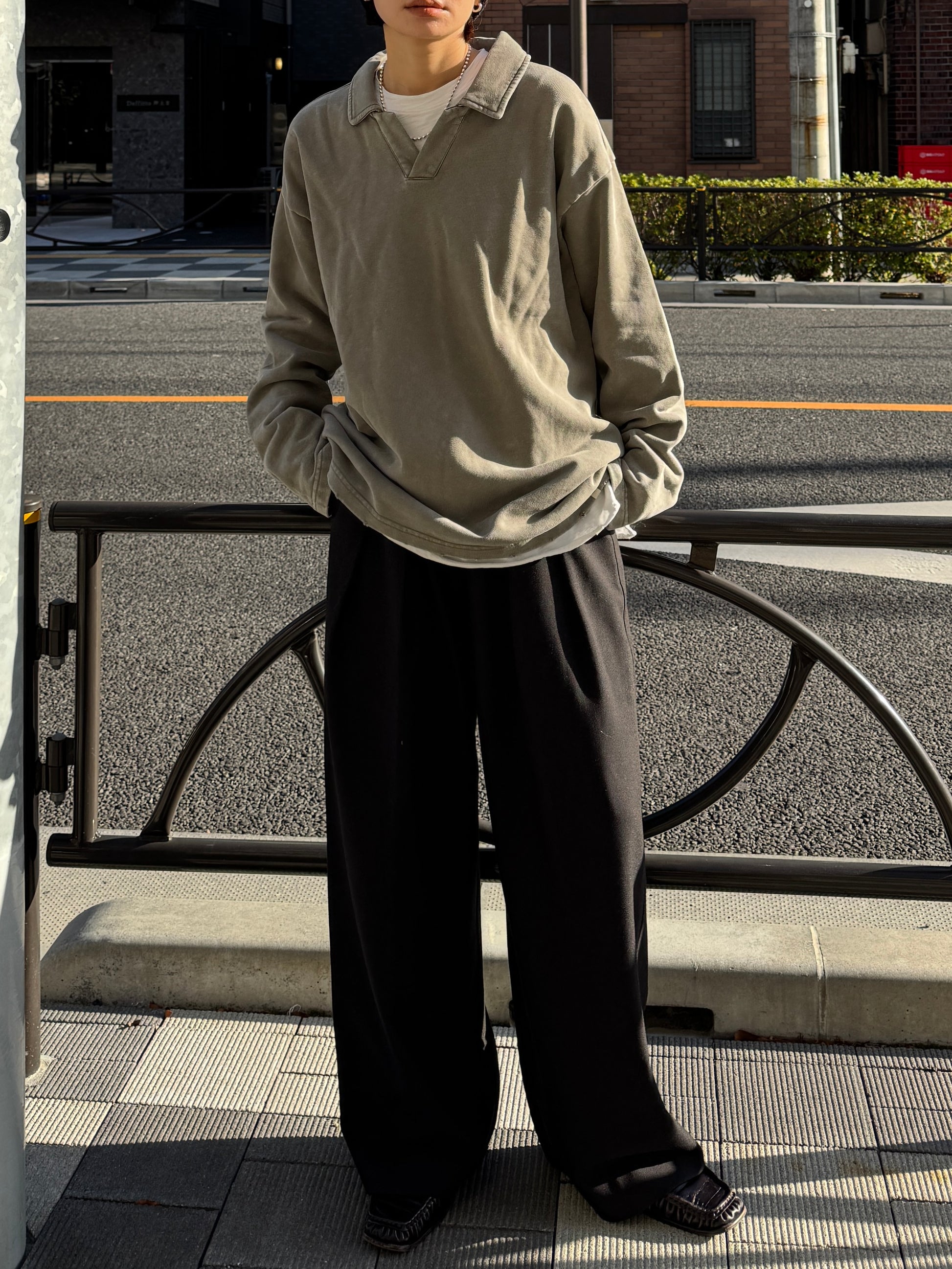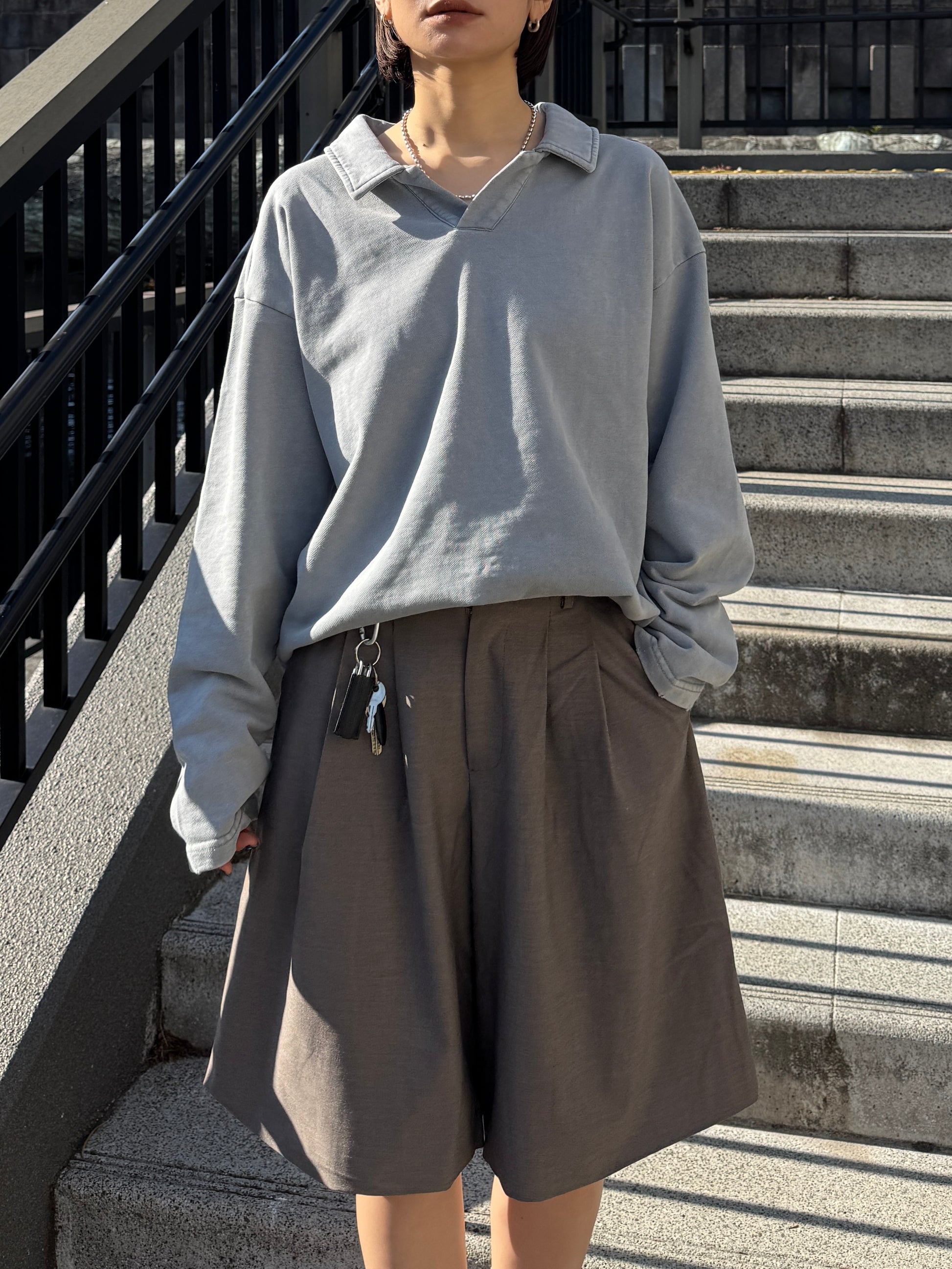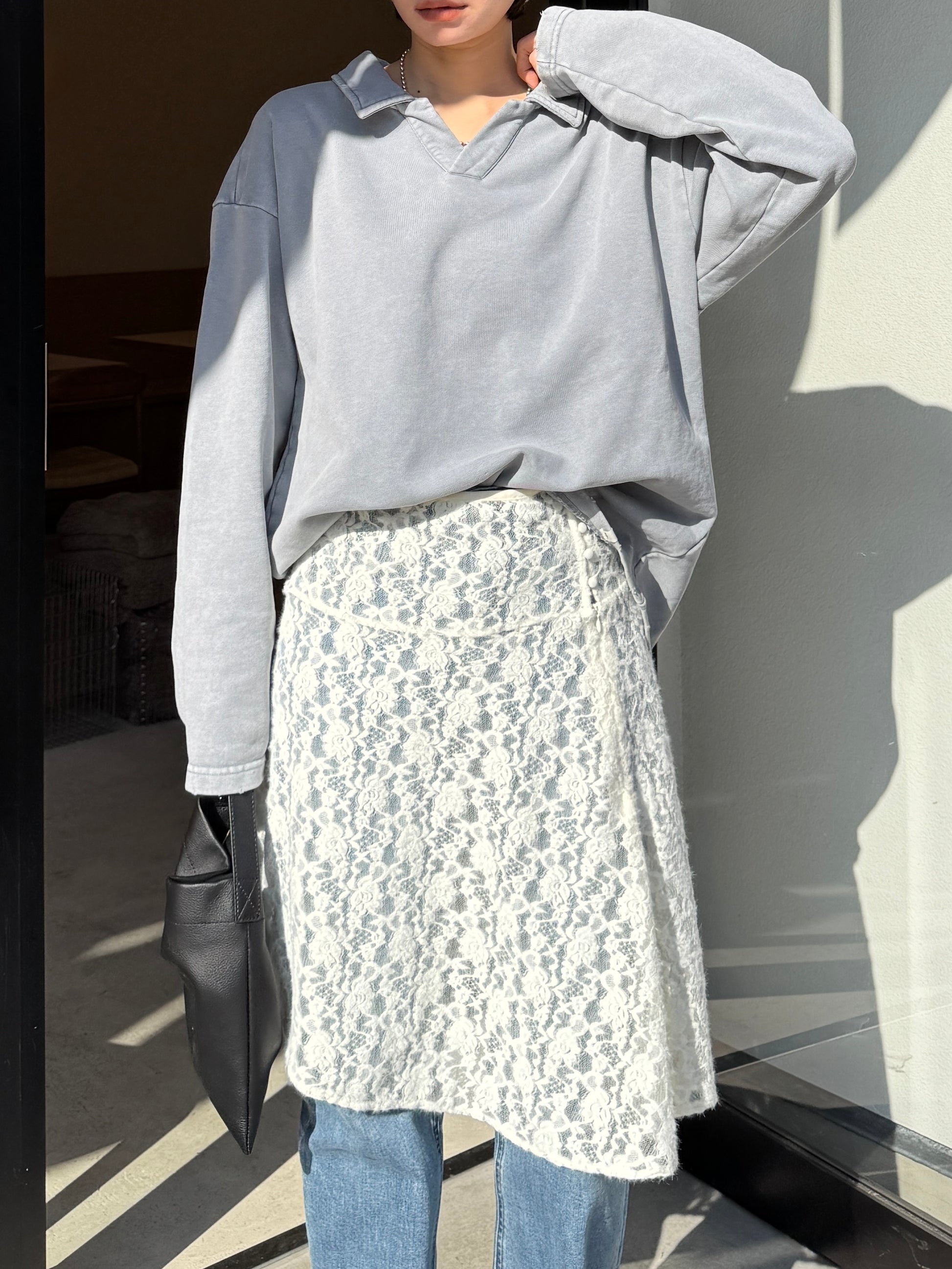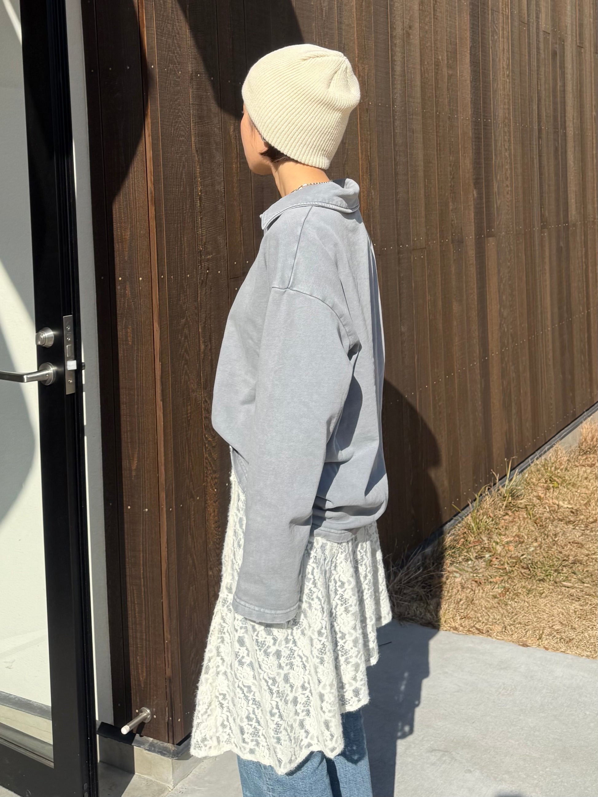 ヴィンテージライクなウォッシュ感が印象的な、襟付きスウェットトップス。 程よく色褪せた表情に加え、袖口と裾に施したさりげないダメージ加工が、ラフさの中に抜け感をプラスします。 肩の力を抜いて着られる、ほどよくゆとりのあるシルエットも魅力。 落ち感のある素材とやわらかなフォルムが、カジュアルになりすぎず、さりげなく女性らしい印象に仕上げてくれます。 肌寒い時期から春に向けて、レイヤード次第で軽やかな季節感を楽しめる1枚です。