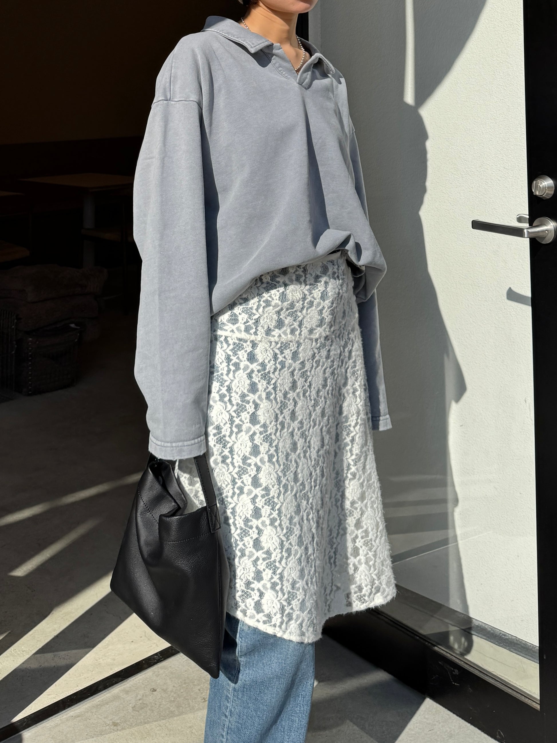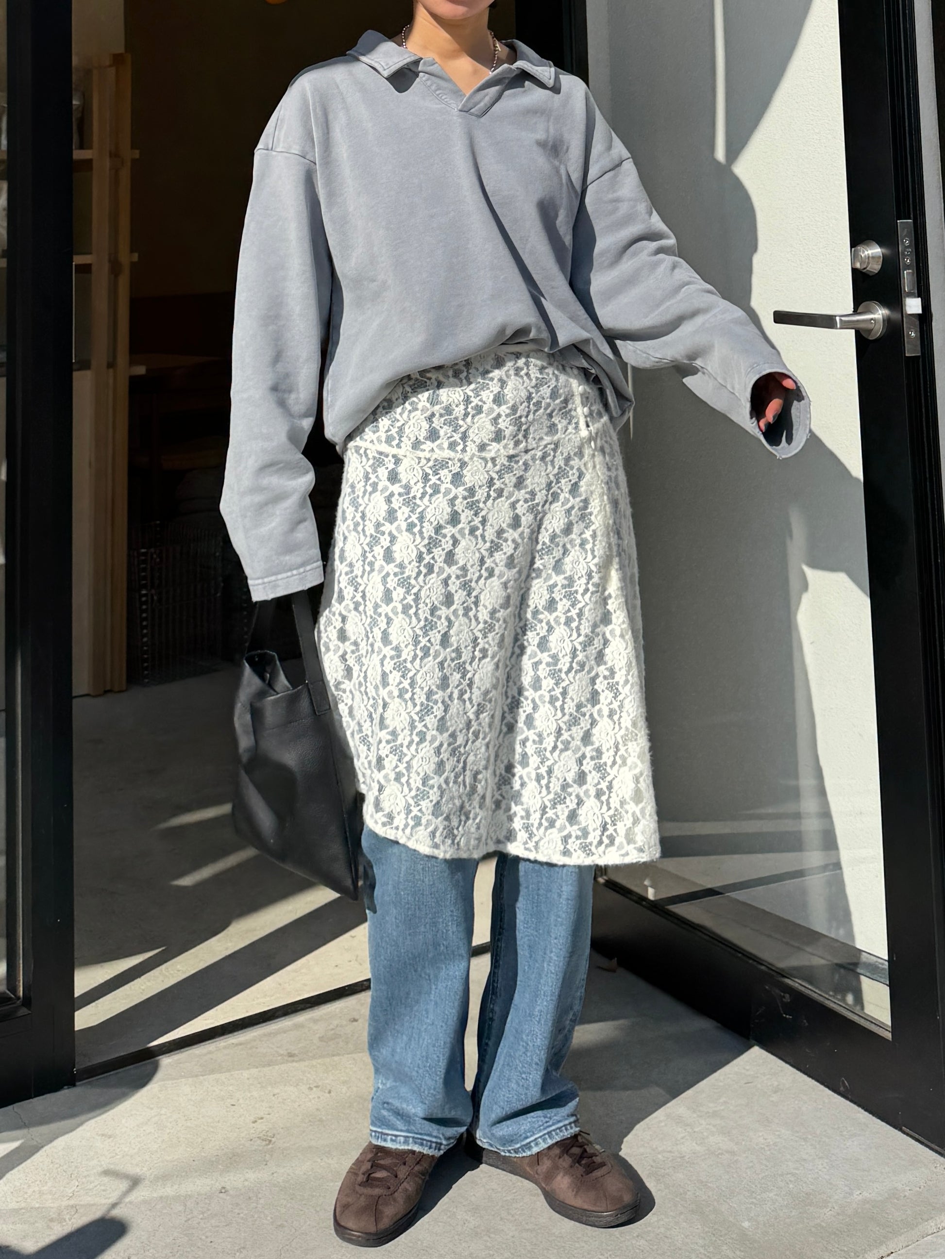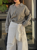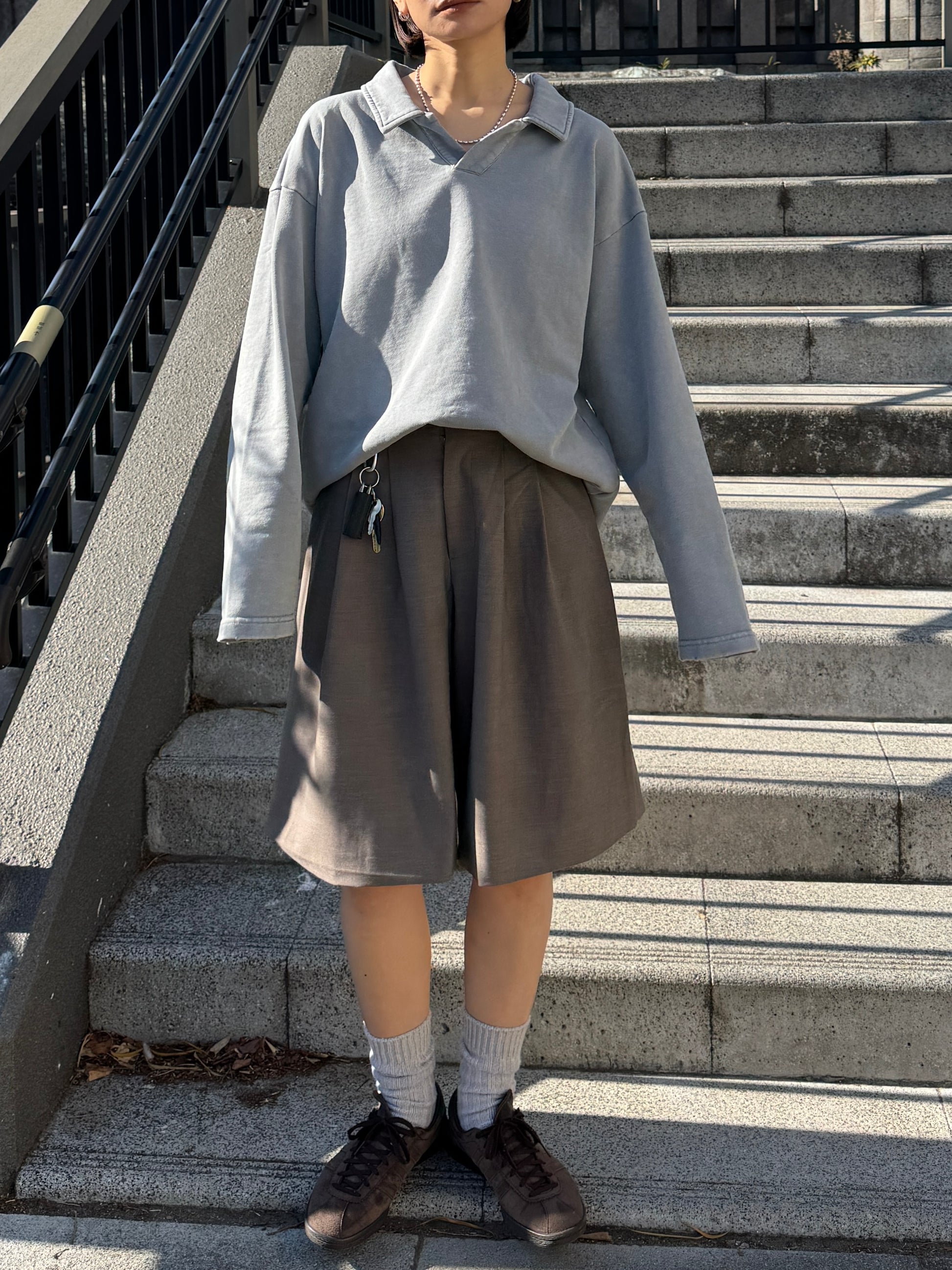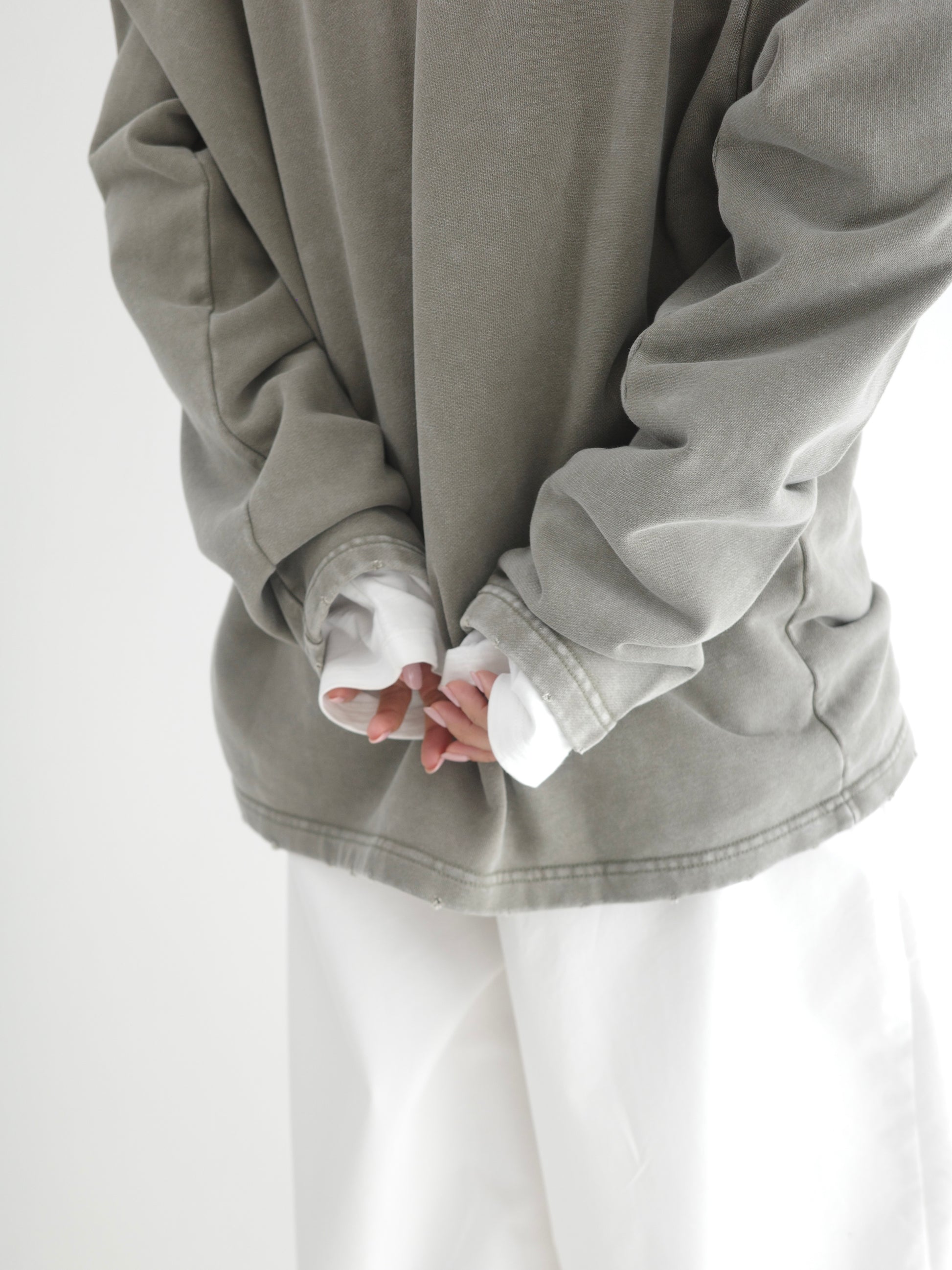 ヴィンテージライクなウォッシュ感が印象的な、襟付きスウェットトップス。 程よく色褪せた表情に加え、袖口と裾に施したさりげないダメージ加工が、ラフさの中に抜け感をプラスします。 肩の力を抜いて着られる、ほどよくゆとりのあるシルエットも魅力。 落ち感のある素材とやわらかなフォルムが、カジュアルになりすぎず、さりげなく女性らしい印象に仕上げてくれます。 肌寒い時期から春に向けて、レイヤード次第で軽やかな季節感を楽しめる1枚です。
