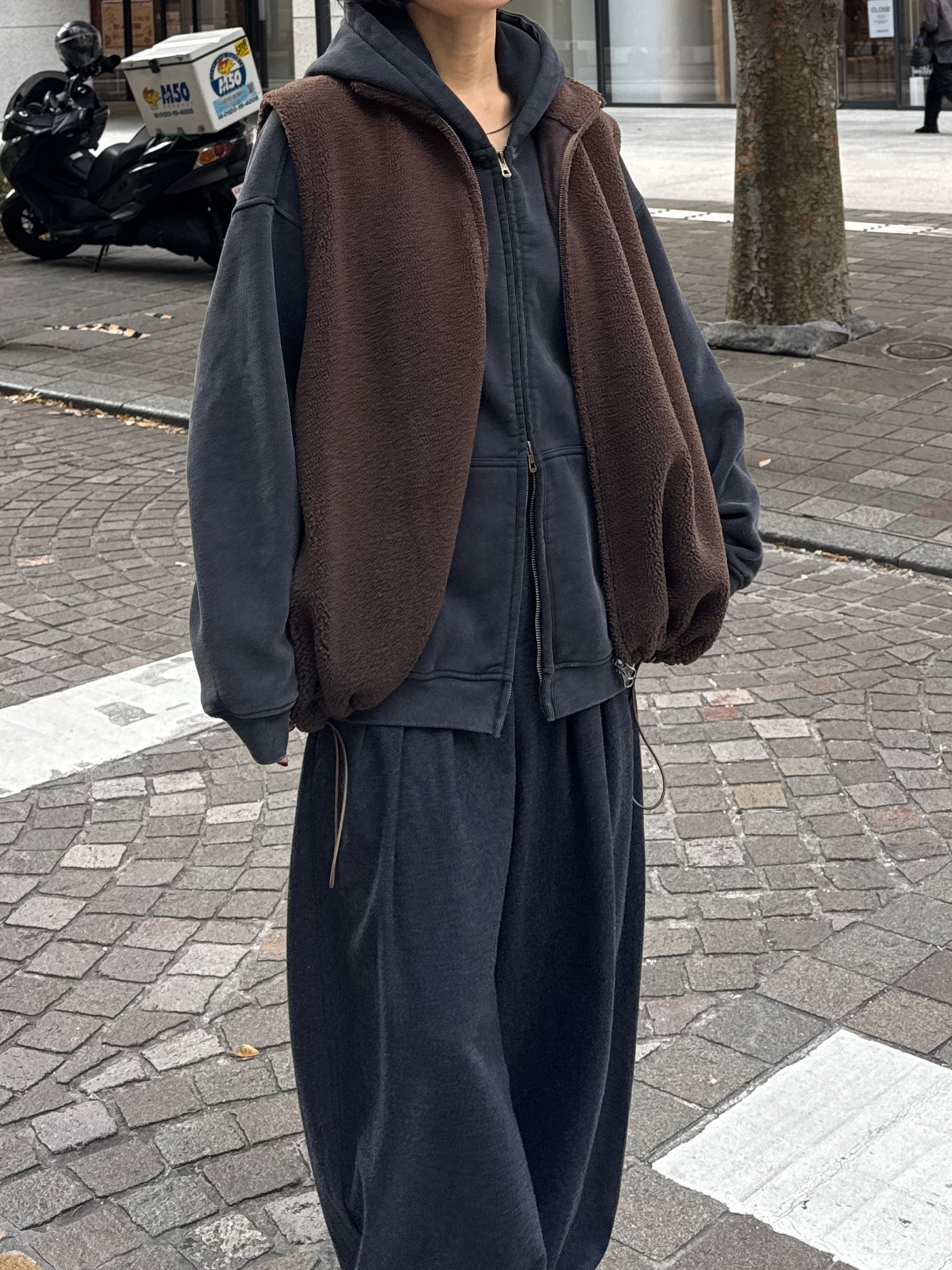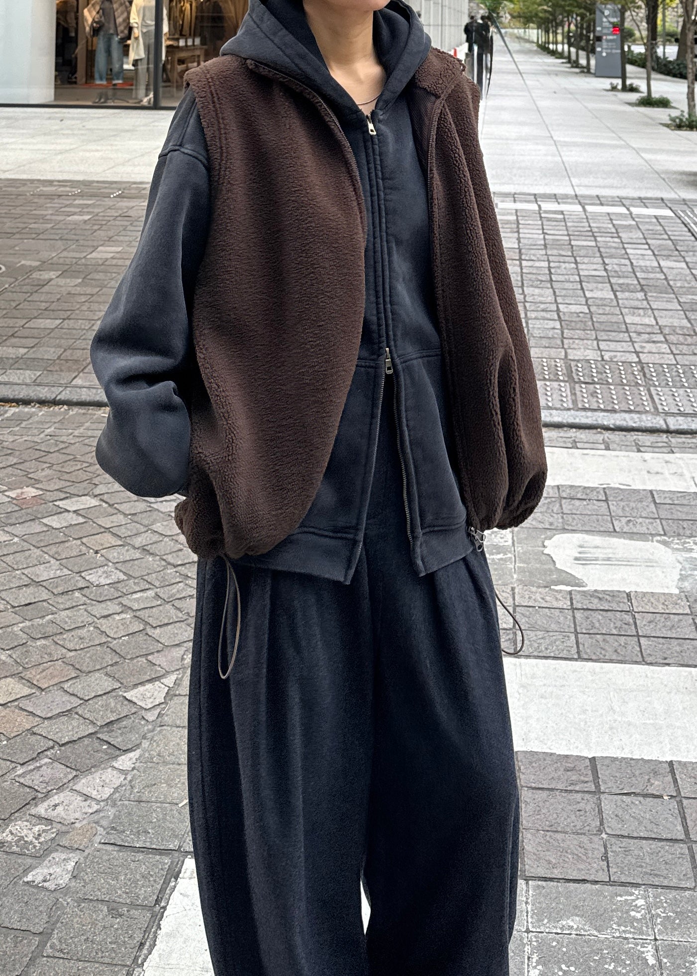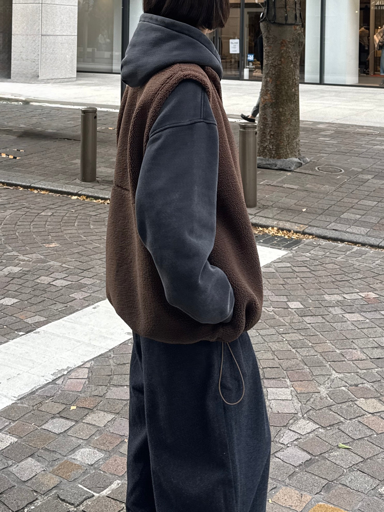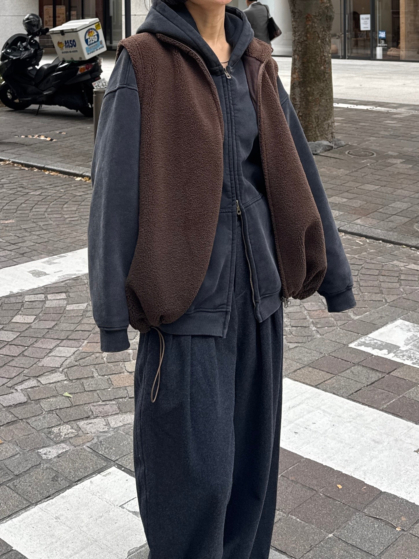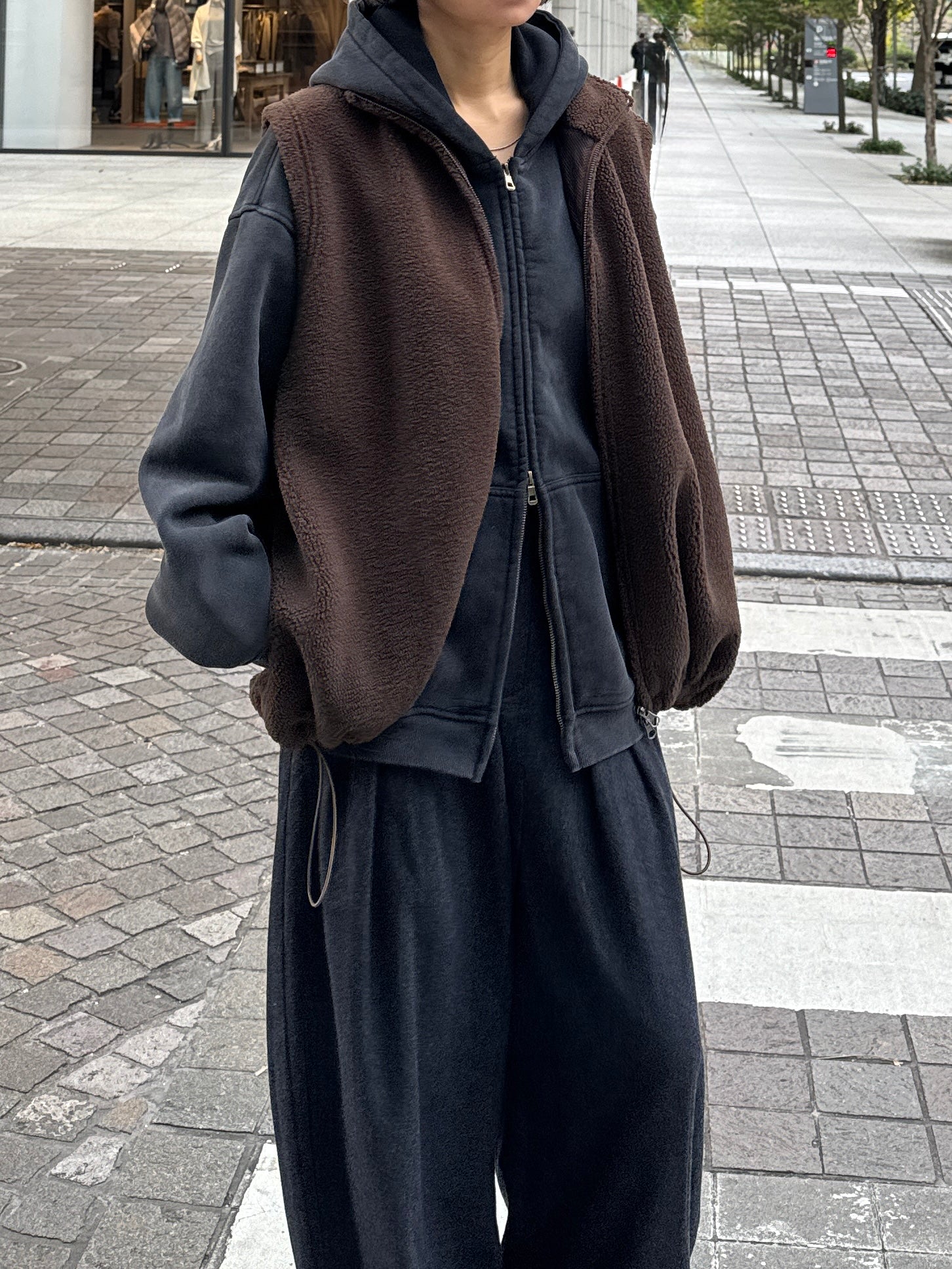 程よいウォッシュ感が魅力のダブルジップパーカー。 コットンとポリエステルをブレンドした生地は見た目以上の柔らかさと耐久性を兼ね揃え、着込むほどに味わいが増すヴィンテージライクな風合いに仕上げました。裏面にはふんわりとした起毛を施し秋冬のデイリー使いに嬉しい保温性を確保しながら、肌あたりの優しい着心地にもこだわった1着。 フロントはダブルジップ仕様でスタイリングや温度調整に自在なアレンジが可能。 ユニセックスで着用可能なゆったりとしたシルエットとドロップショルダーのラインが、程よい抜け感を演出しシンプルな着こなしもこなれた雰囲気に。 これからの時期はアウターのインナー使いとしても◎ デニムやワイドパンツはもちろん、スラックスで外した大人カジュアルにも相性抜群なアイテムです。