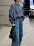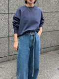 程よいヴィンテージライクなウォッシュ感が魅力のデニムパンツ。 落ち着いた自然な色落ち加工が、穿くだけでこなれた雰囲気を演出します。 ポケット下に施された切り替えデザインと、さりげなく効かせたステッチワークがシンプルな中にも表情をプラス。 細部までこだわったディティールが、ベーシックなデニムスタイルを一段引き上げてくれます。 ハイウエスト仕様で腰まわりはすっきりと見せつつ、ワイドシルエットがリラックス感のある履き心地に。 デニムと同素材で仕立てたロングベルトがアクセントとなり、トップスをインしたスタイリングも、バランス良く決まります。 シンプルなトップスが増えてくる春先、軽やかに取り入れたい1本です。