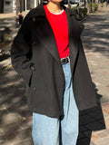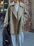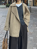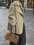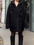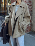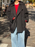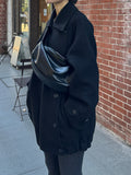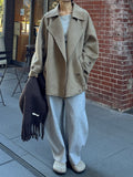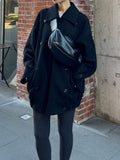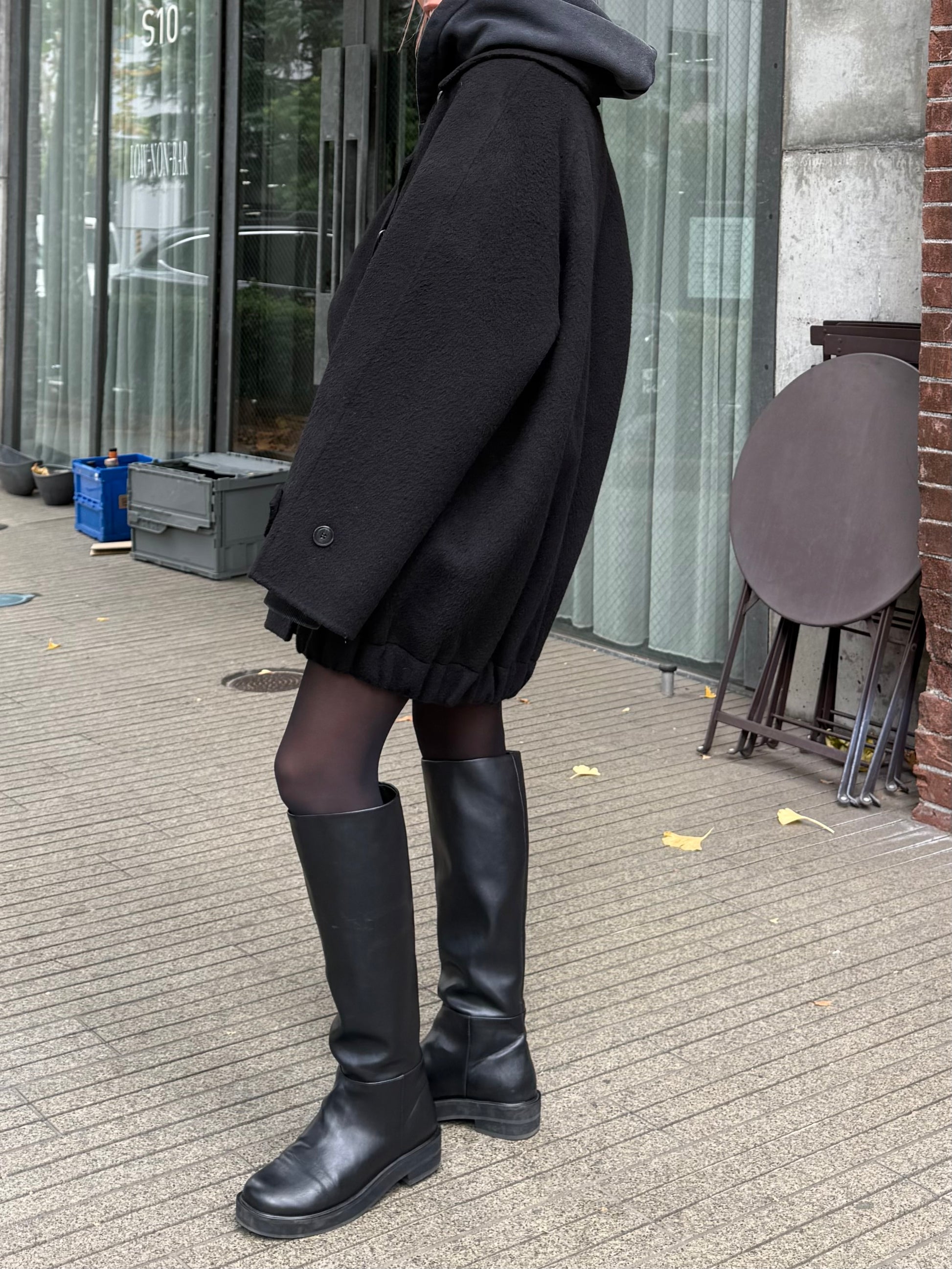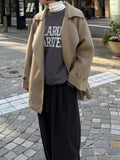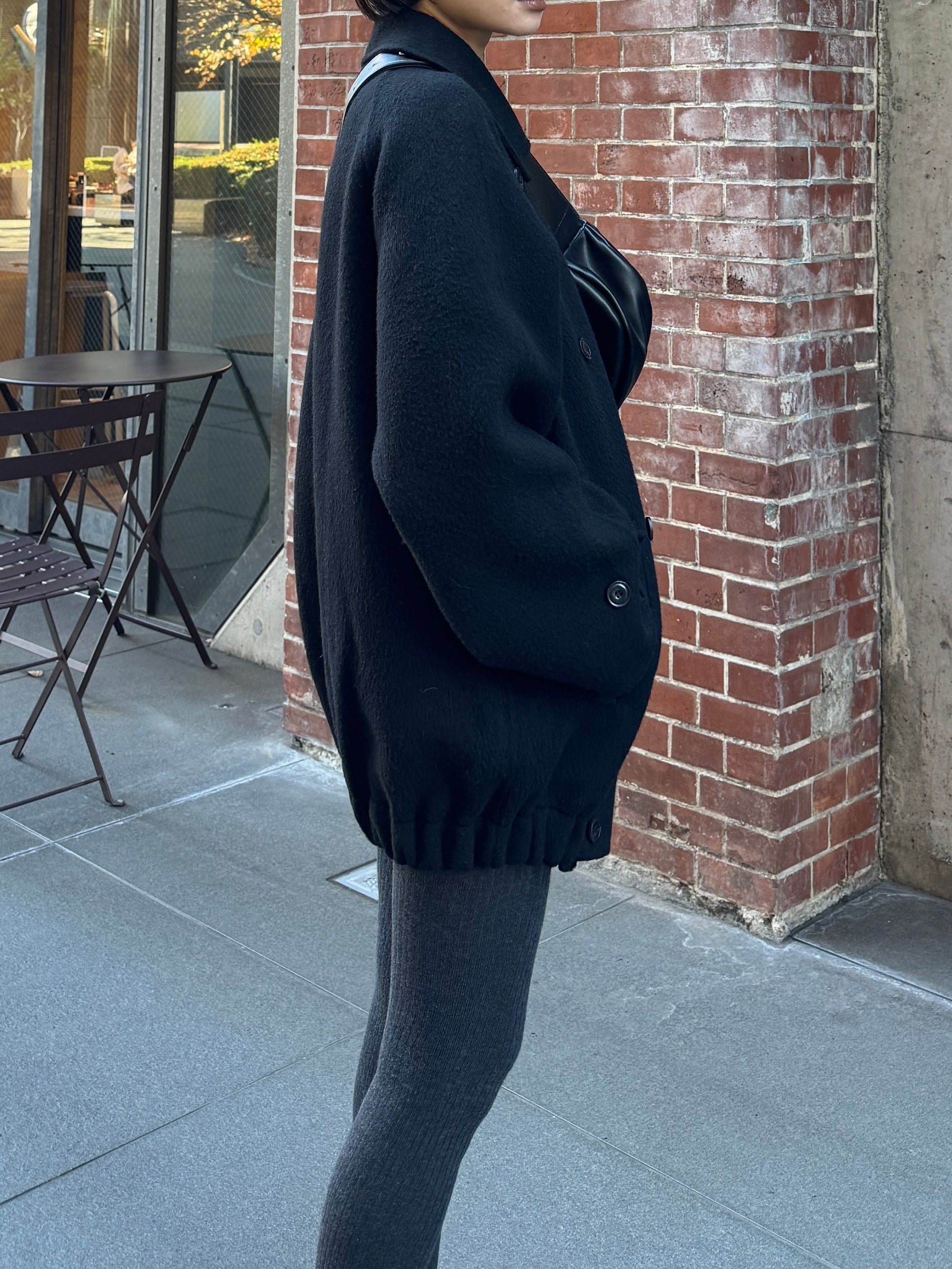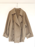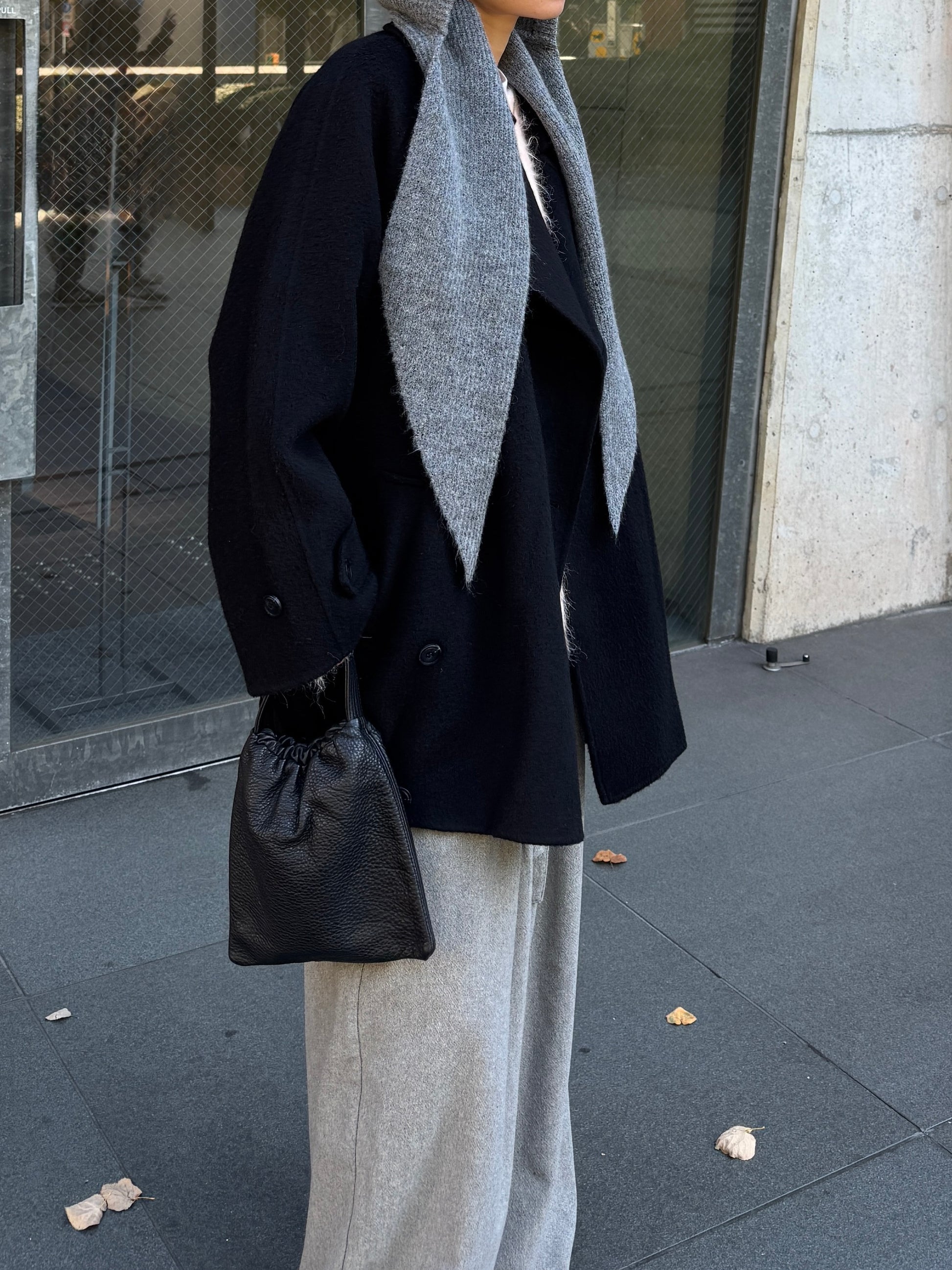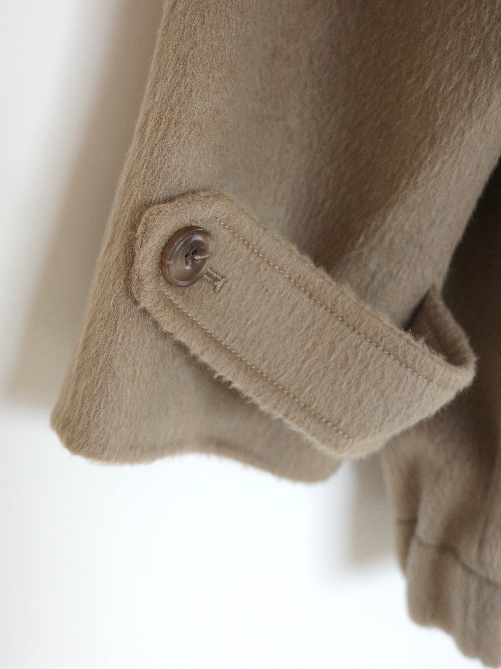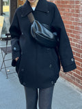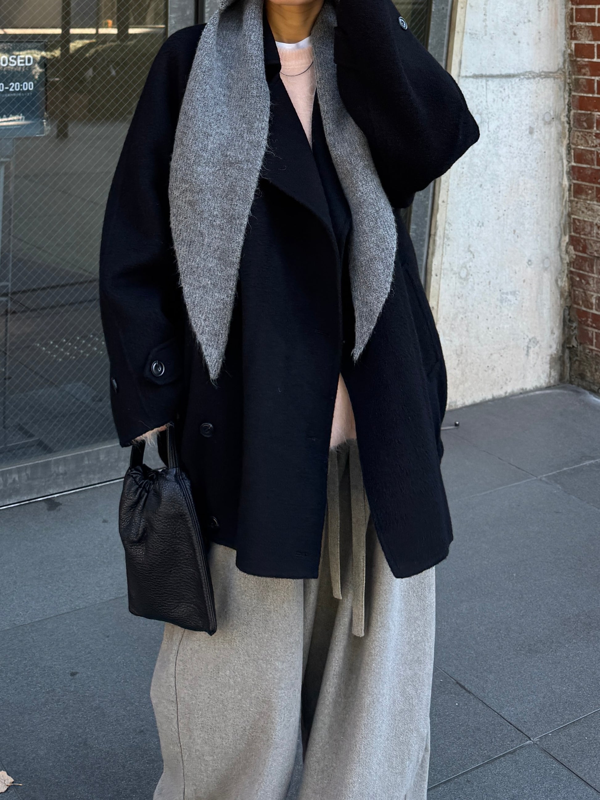 クラシックなPコートを、ゆったりと今のムードに落とし込んだ冬のオーバージャケット。 ウール100%の上質な素材ながら、軽やかで見た目以上に負担のない着心地が魅力です。 ゆとりのあるワイドシルエットに、肩線を落としたラグランスリーブを組み合わせリラックス感と程よい抜けをプラス。 厚手のニットやスウェットなどのレイヤードももたつきにくい、余白のあるフォルムが◎ フロントはクラシックな雰囲気のダブルボタン、低めに配置されたボタンが重心を落ち着かせシンプルながらこなれたムードに。 袖口のストラップボタンや、裾に入ったギャザー切り替えなど細部のディティールにもこだわりシンプルながら立体感あるデザインに仕上げました。 バランスが取りやすいミドル丈に設定し、デイリーに羽織れる気軽さがありながら品よくまとまる1着。
